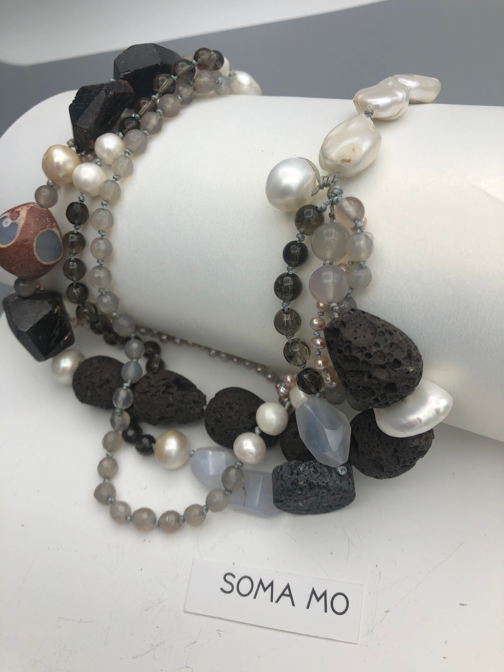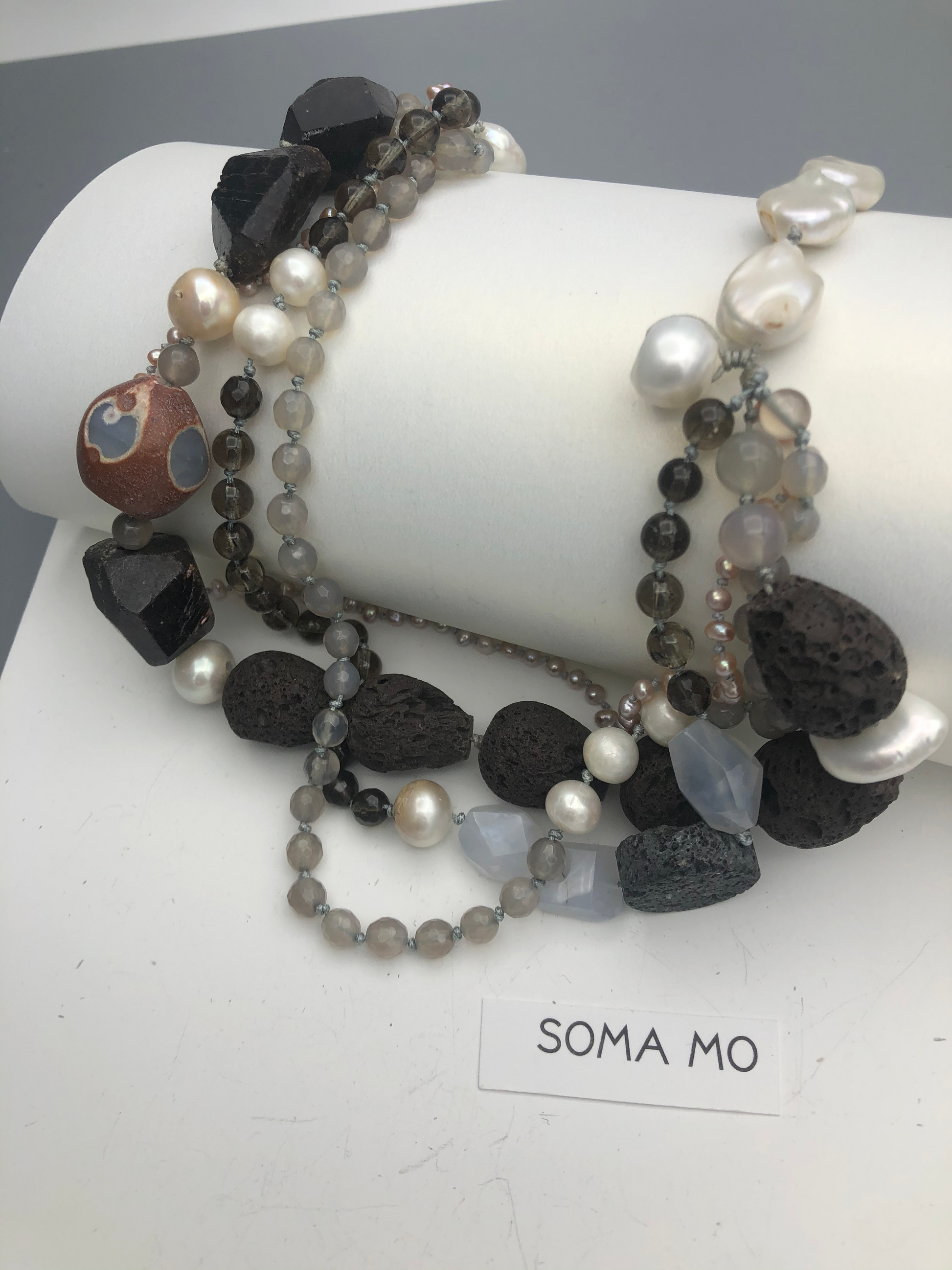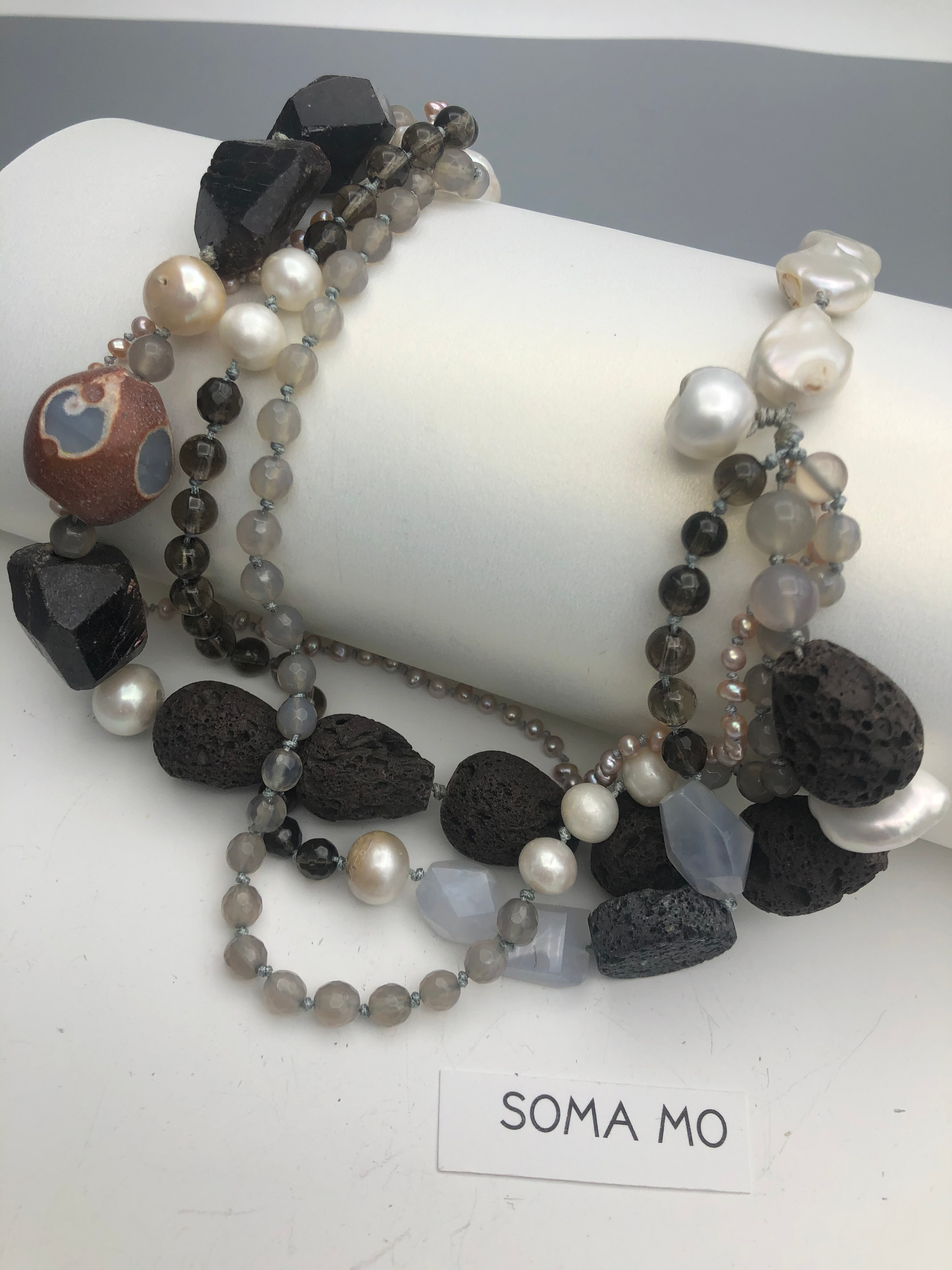 Materials : lava, agate, fresh water pearl, blue lace agate