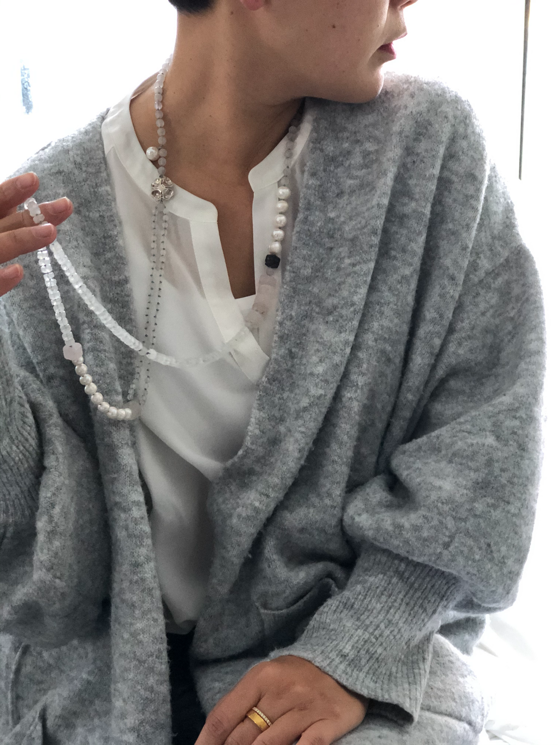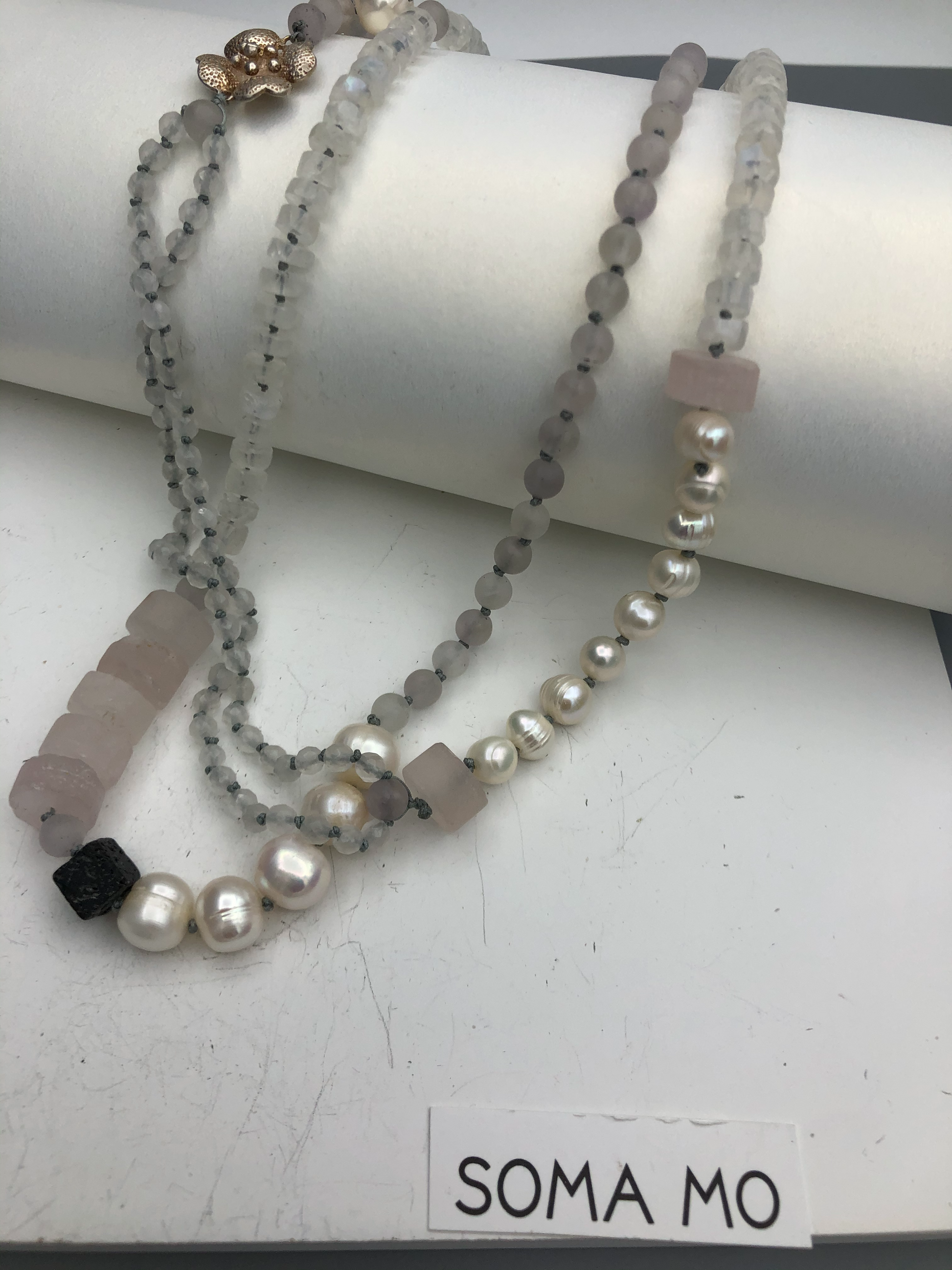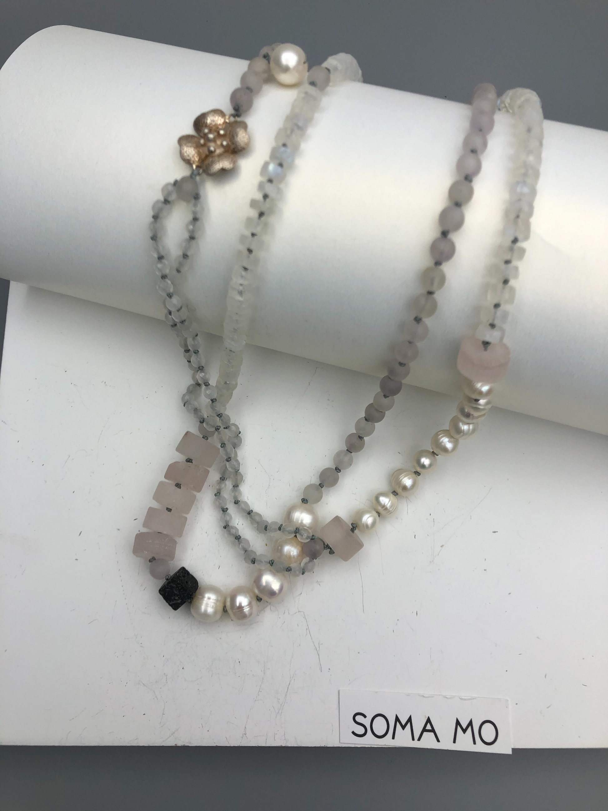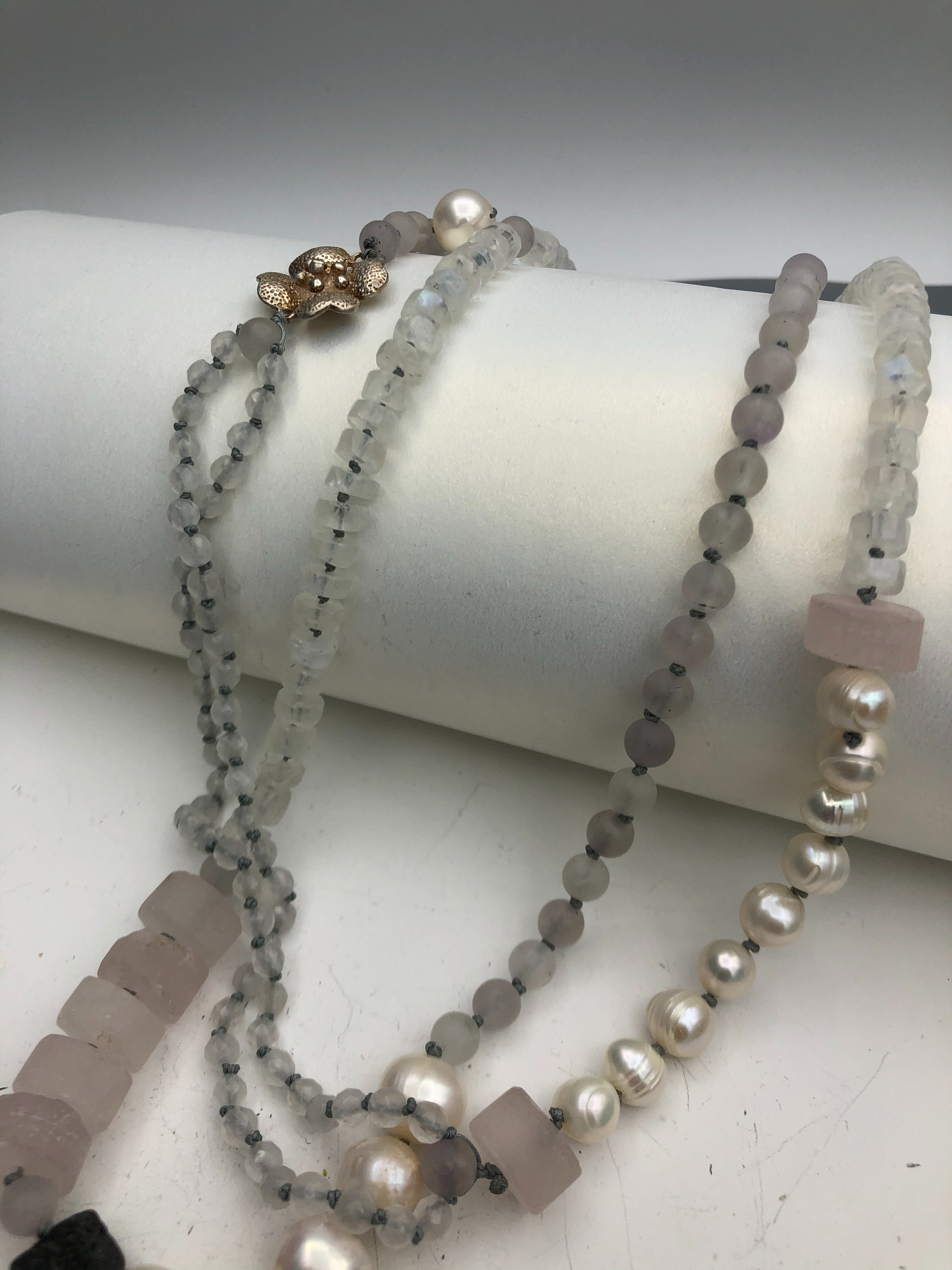 Materials : Moon stone, rose quartz, fine silver, agate, fresh water pearl