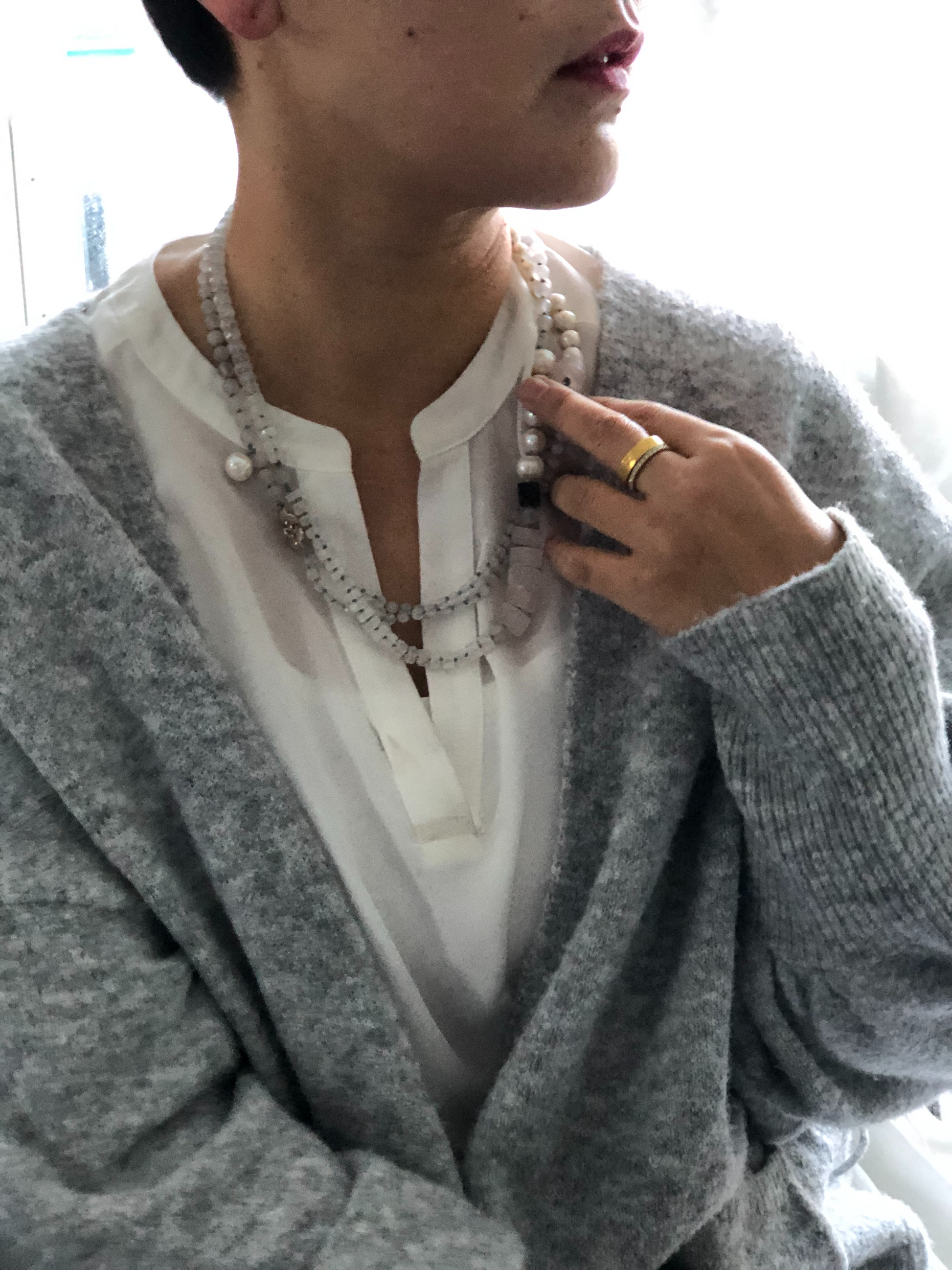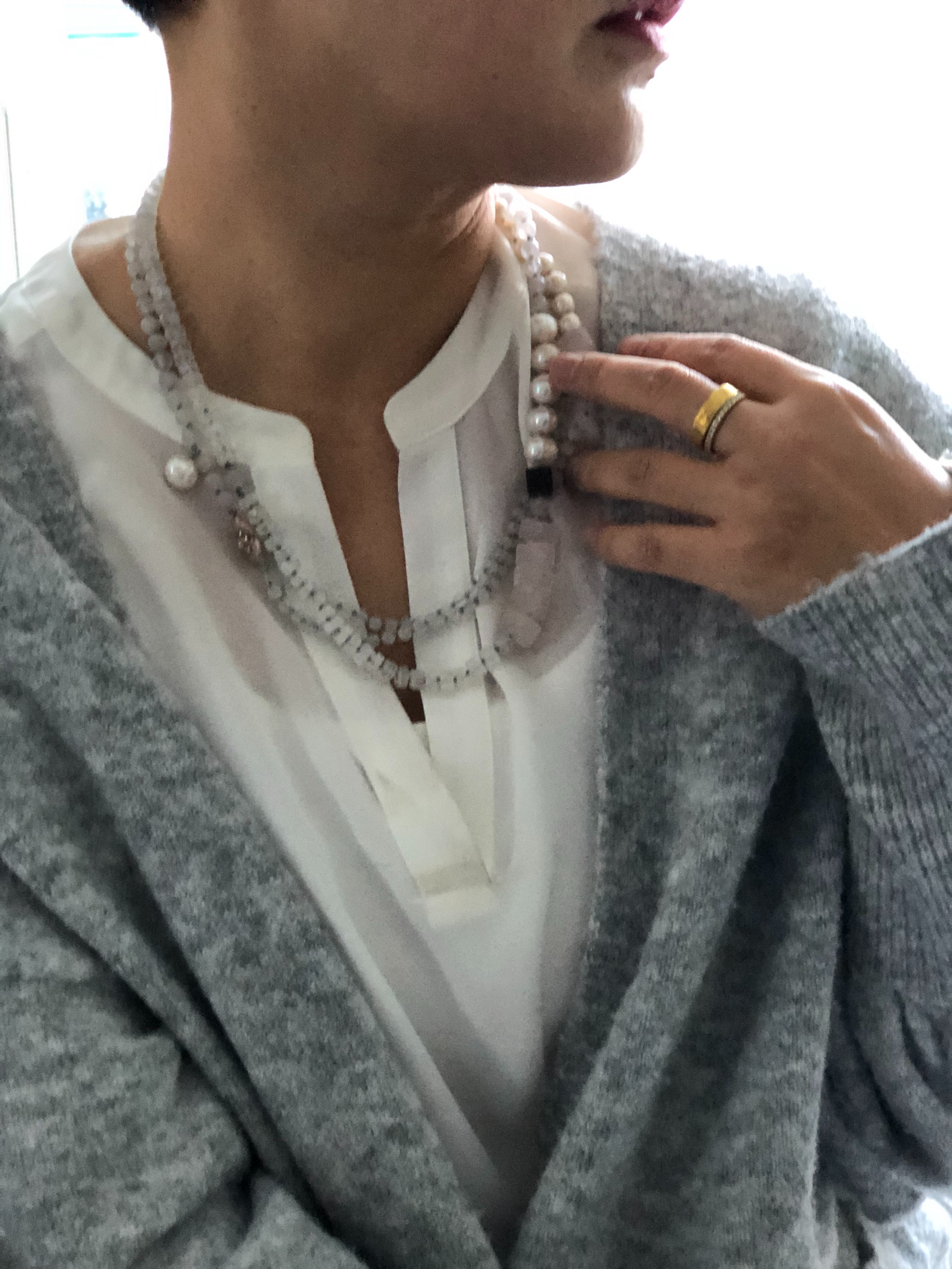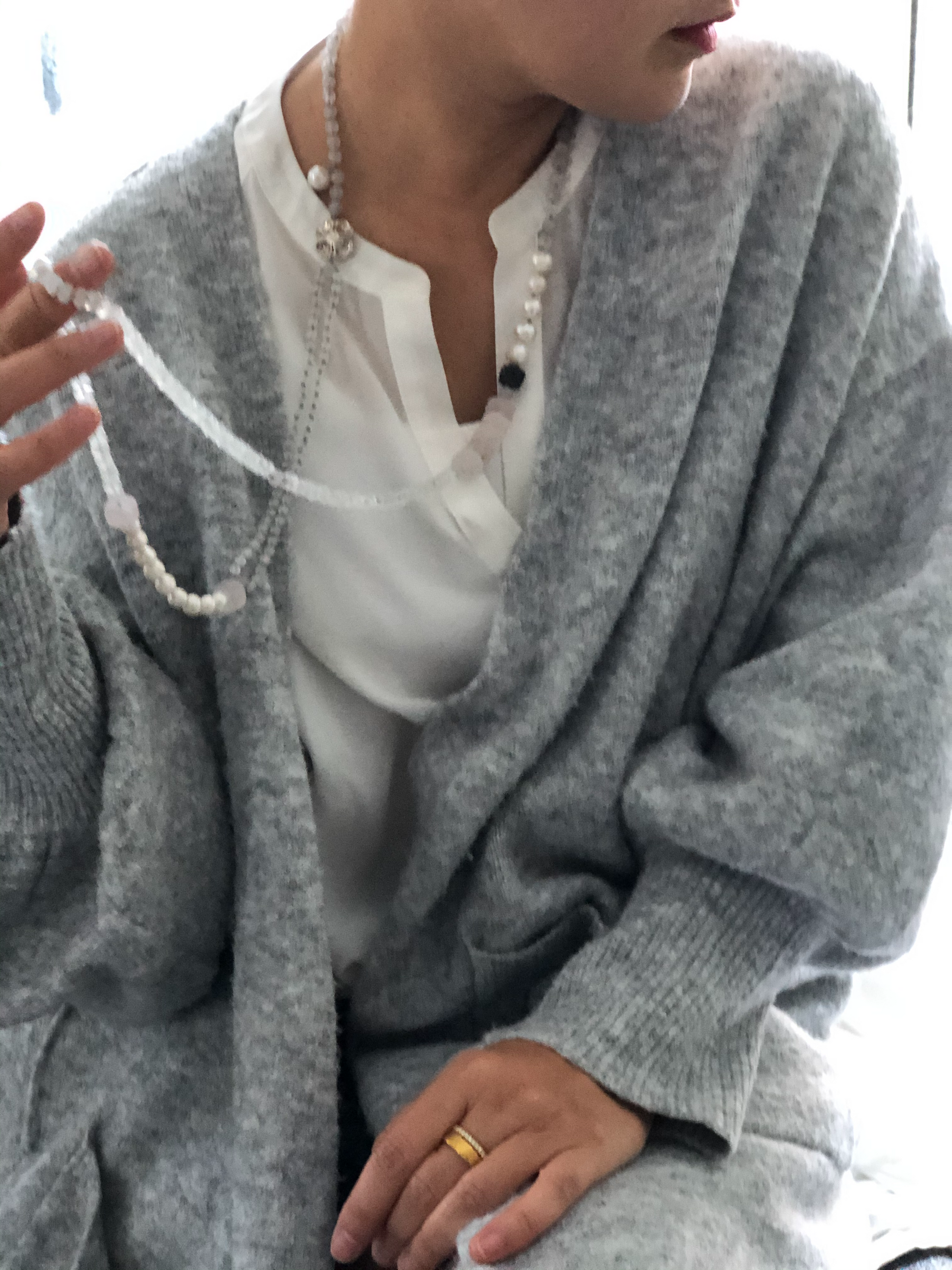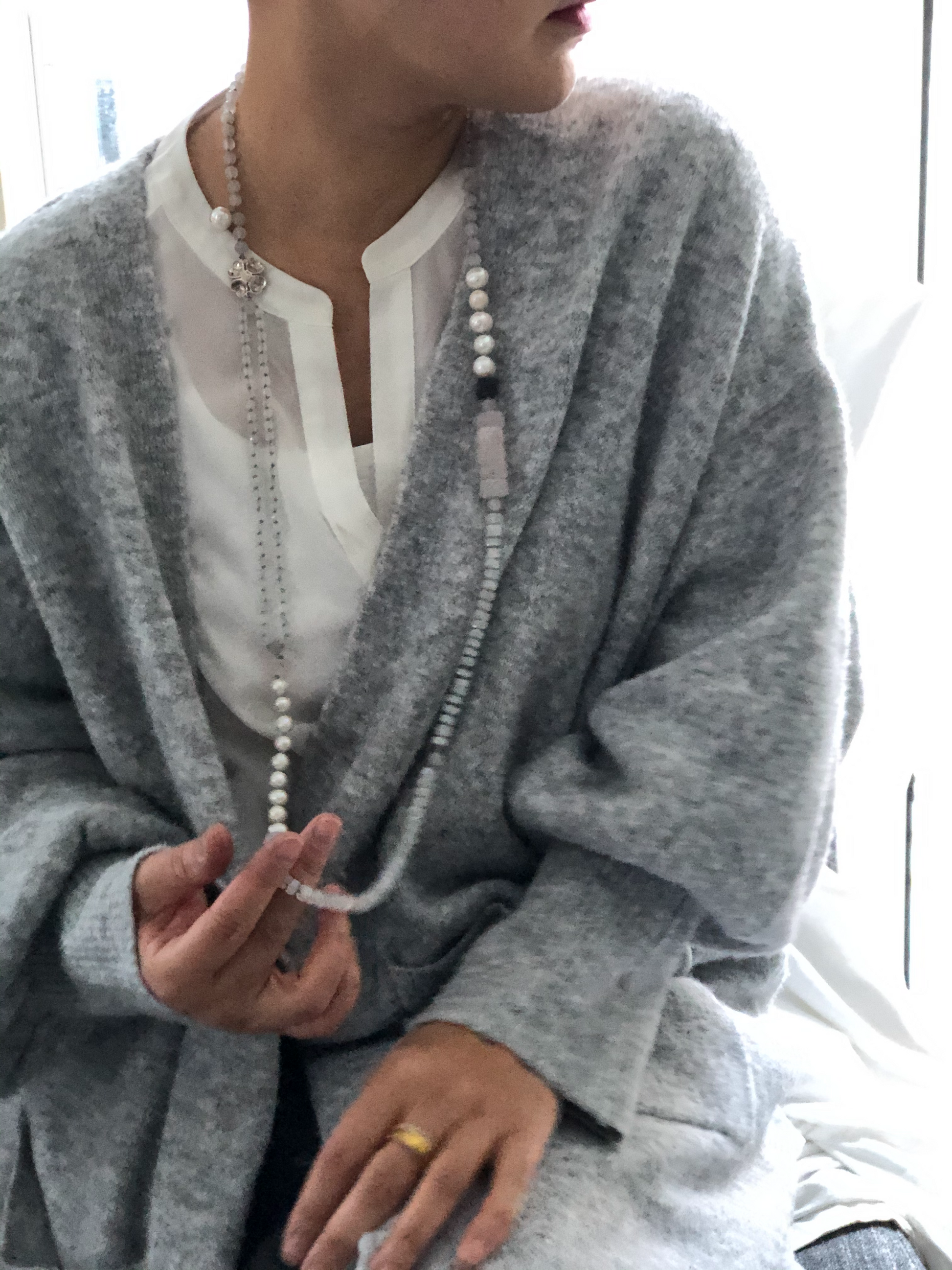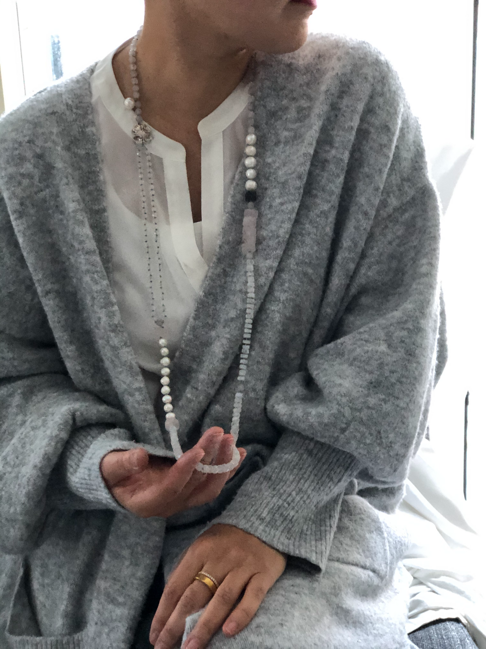 Materials : Moon stone, rose quartz, fine silver, agate, fresh water pearl