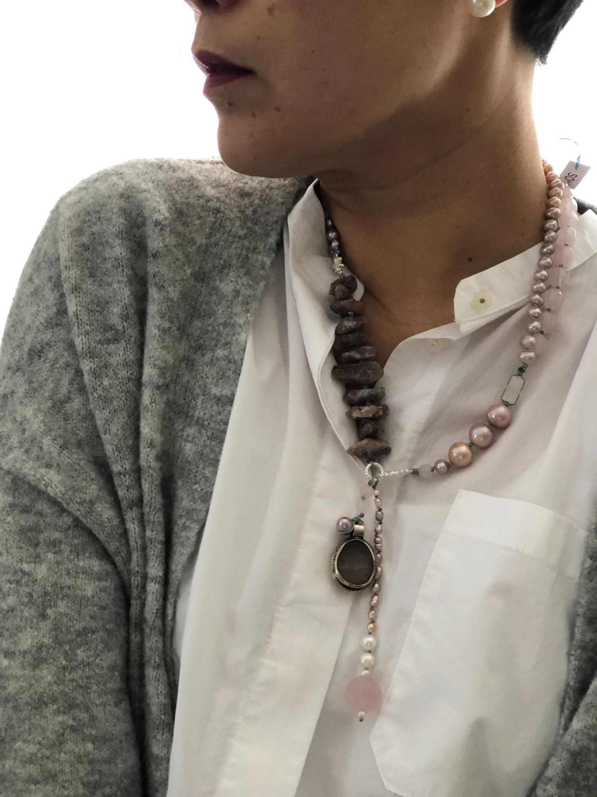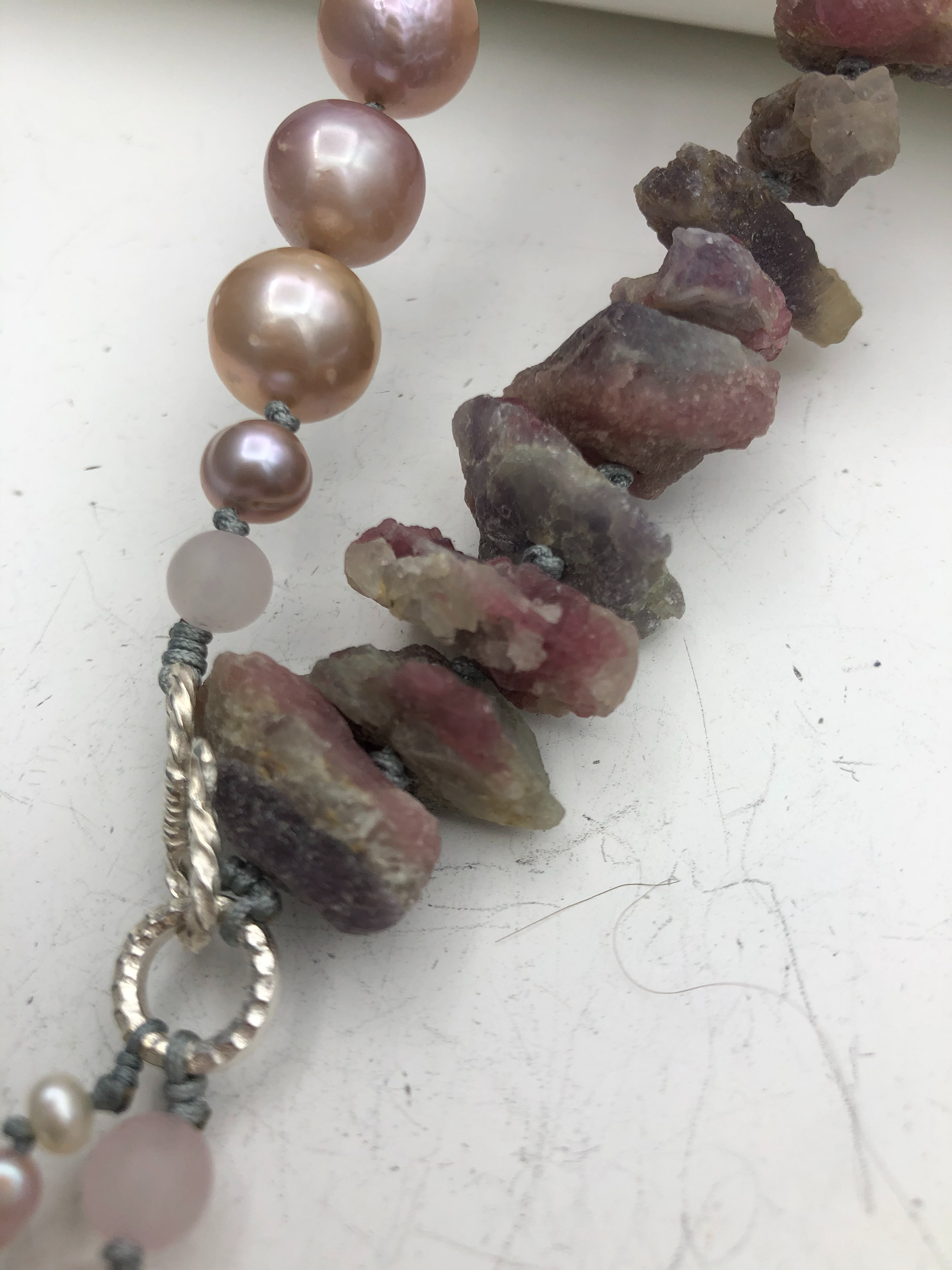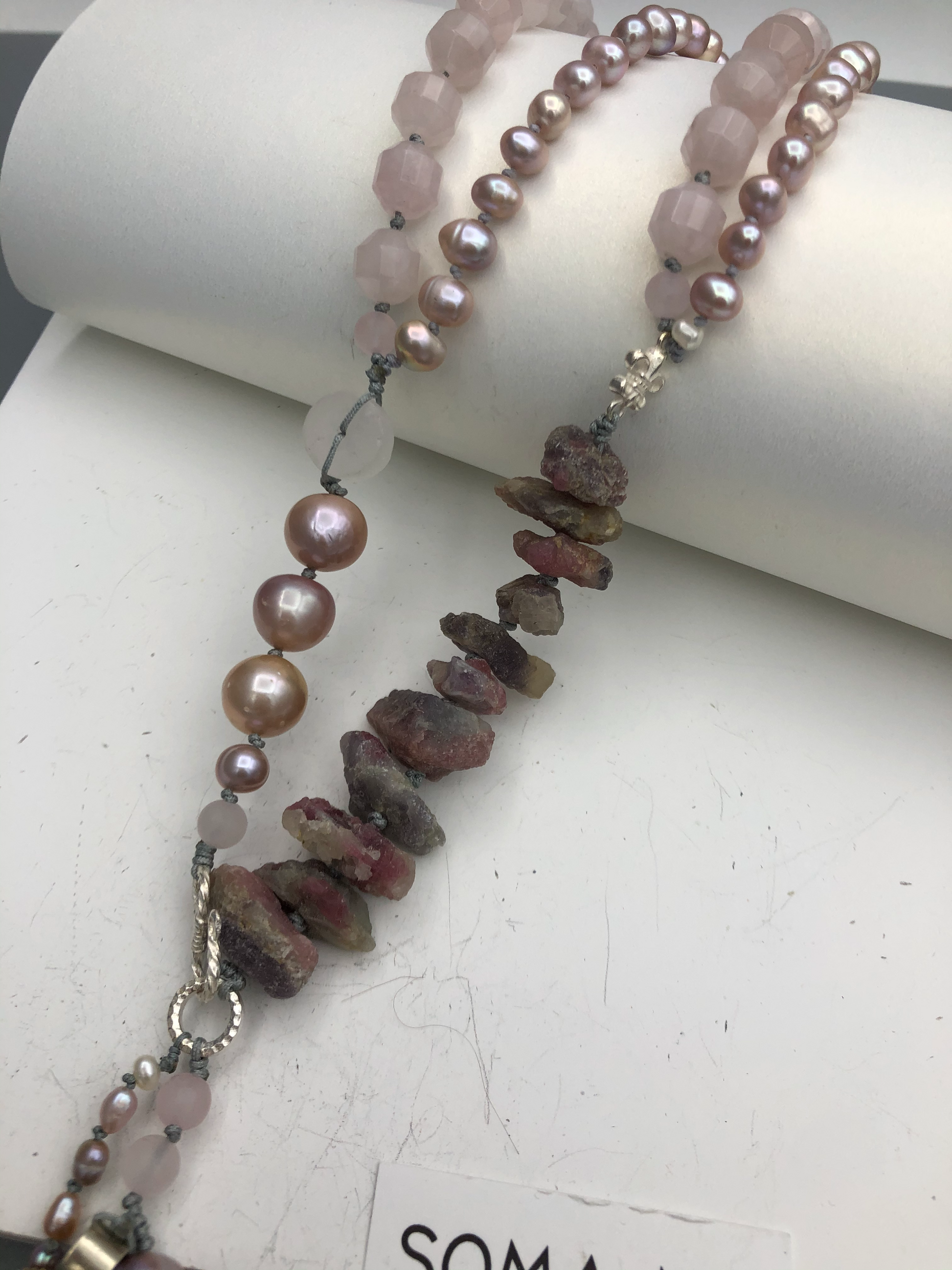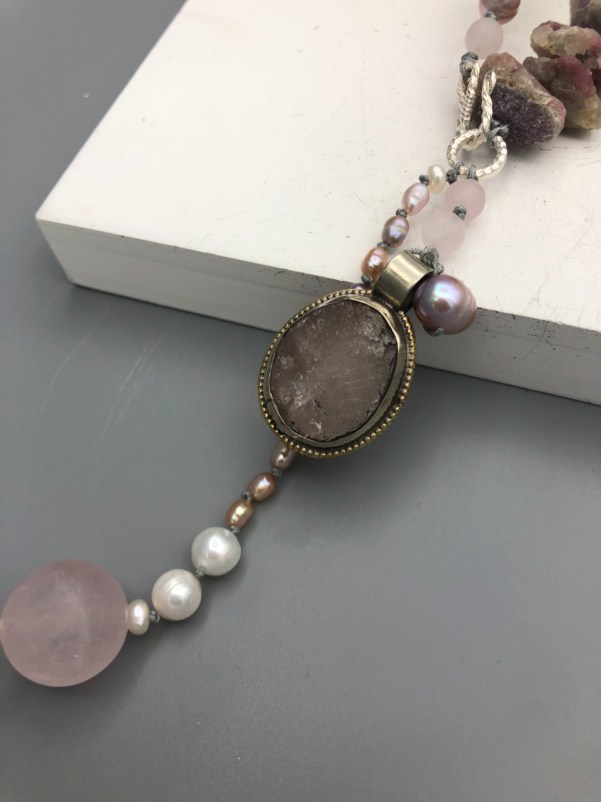 Materials : Strawberry quartz, fresh water pearl, rose quartz , Tibetan pendent with strawberry quartz.