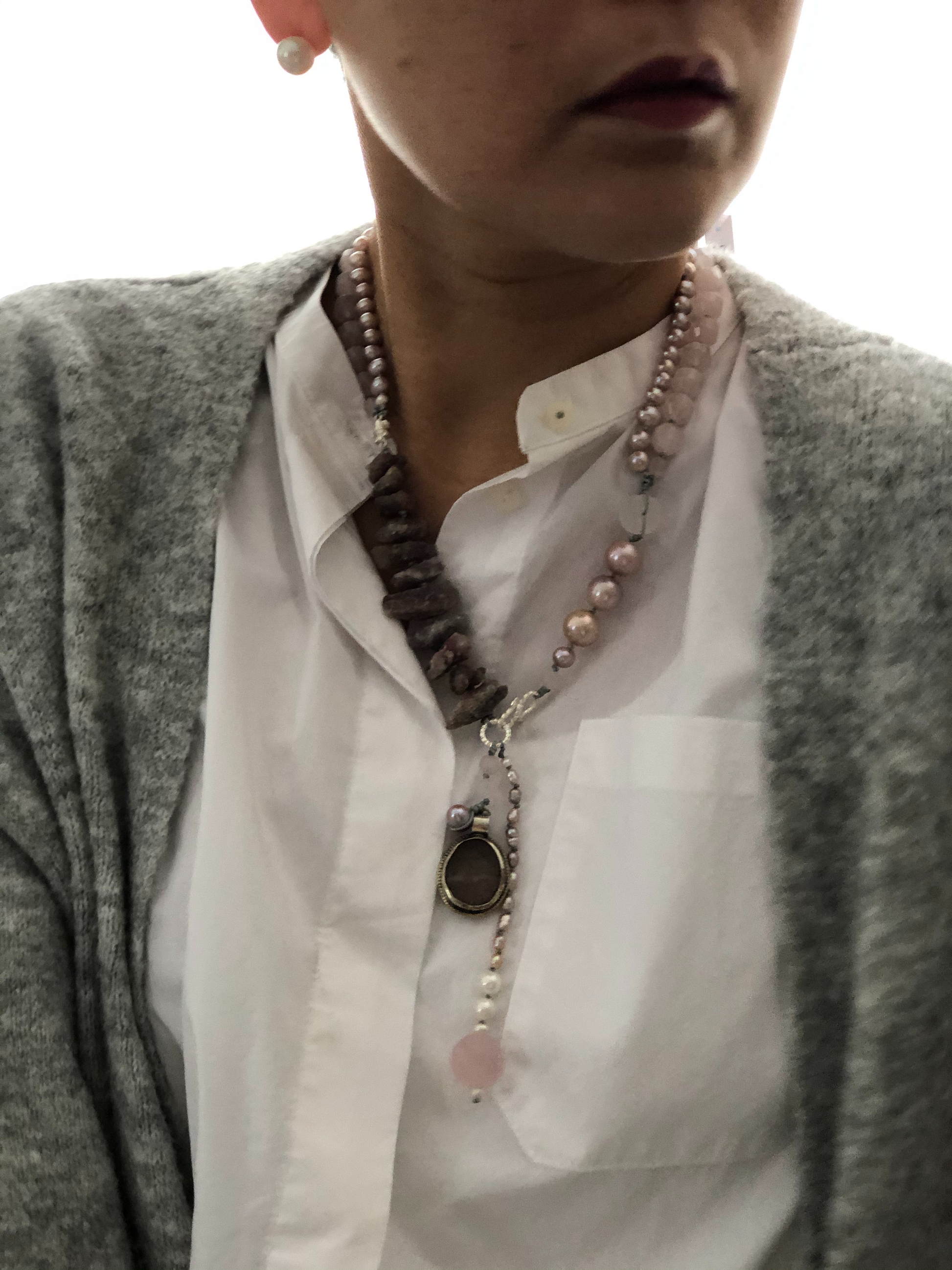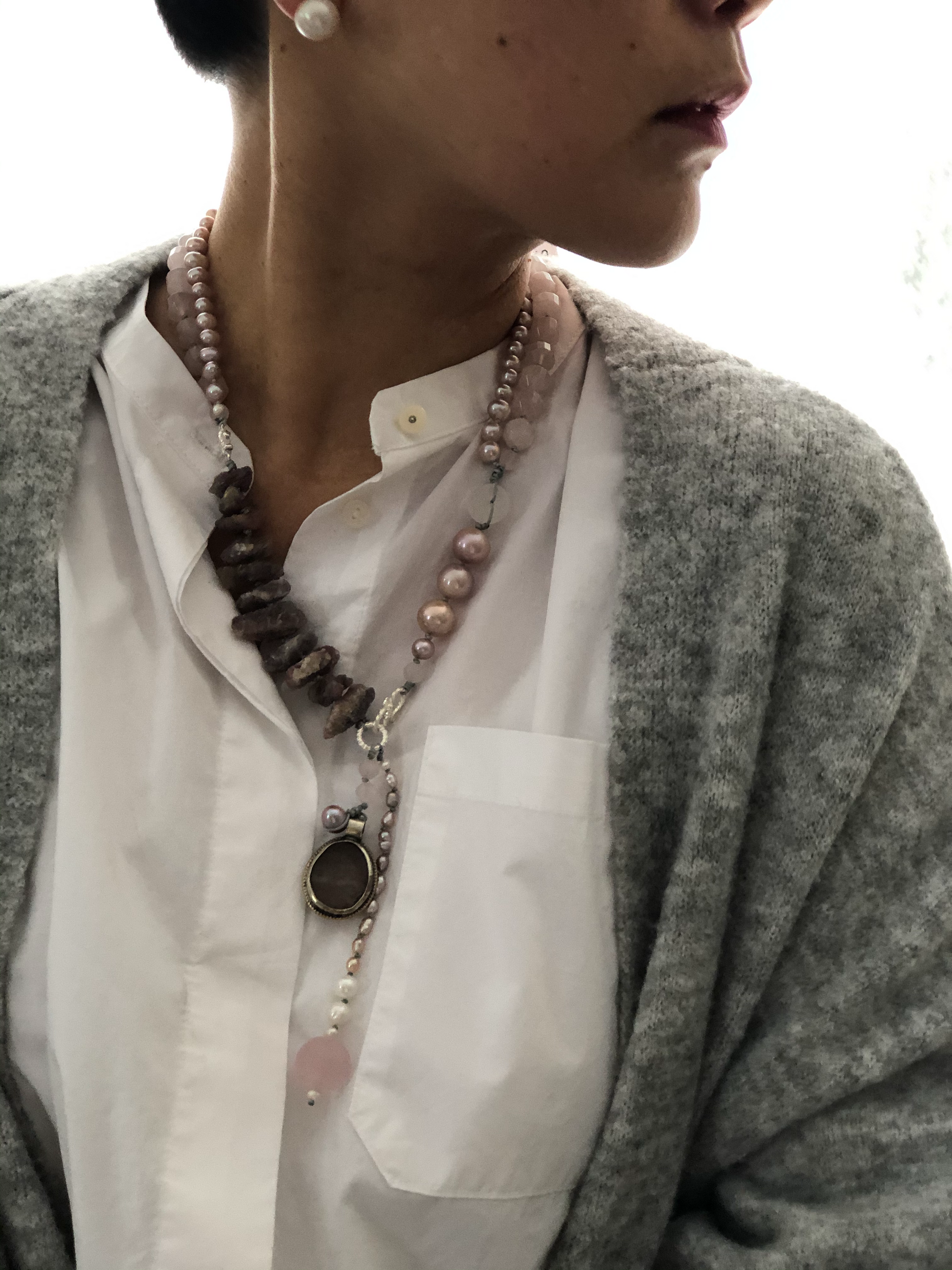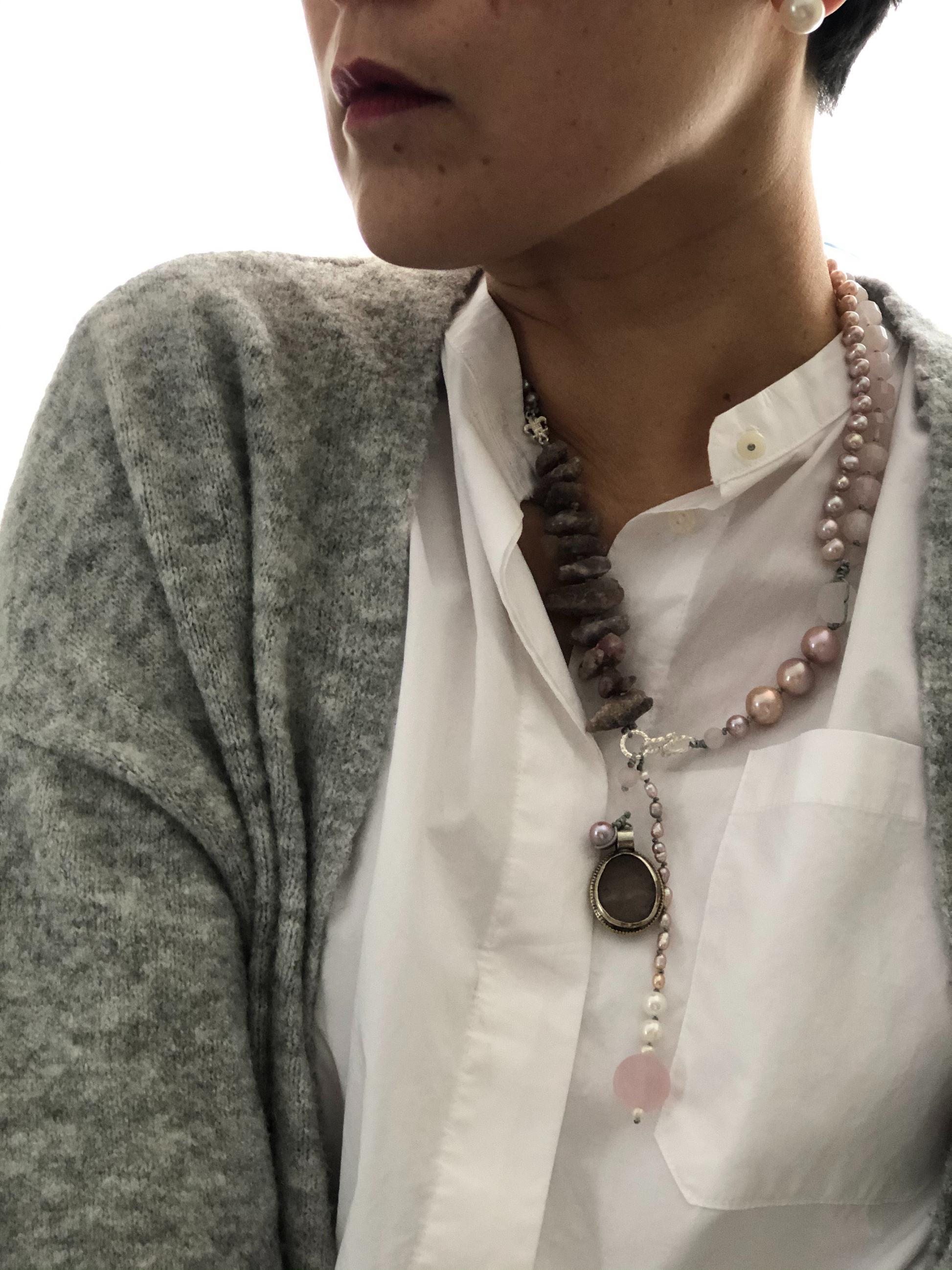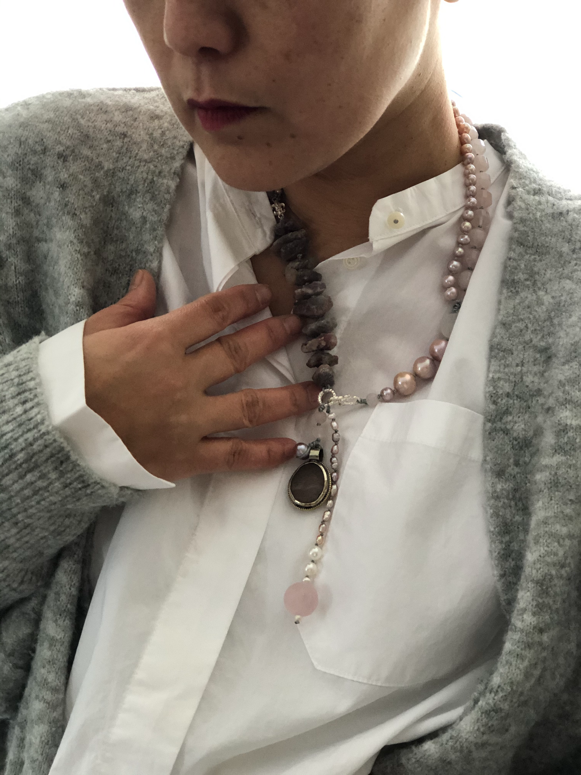 Materials : Strawberry quartz, fresh water pearl, rose quartz , Tibetan pendent with strawberry quartz.