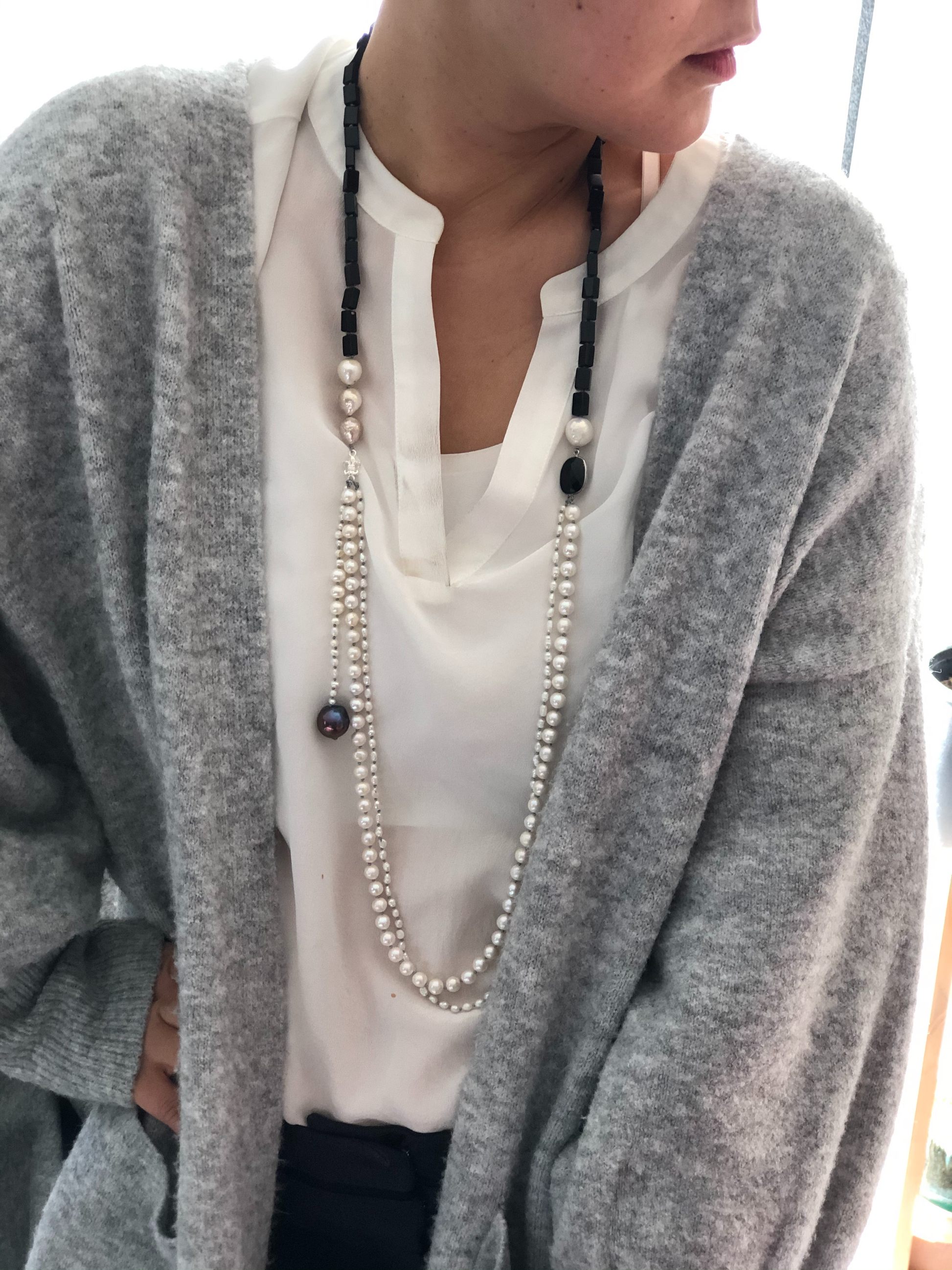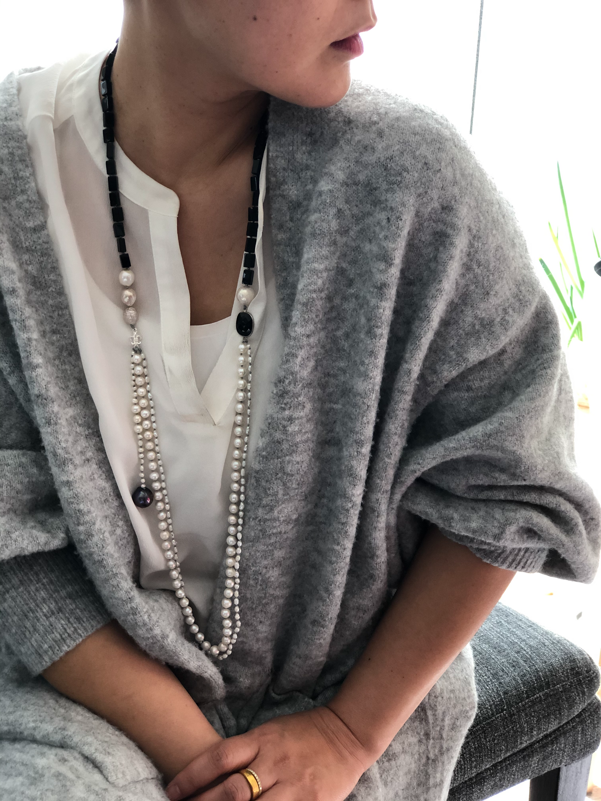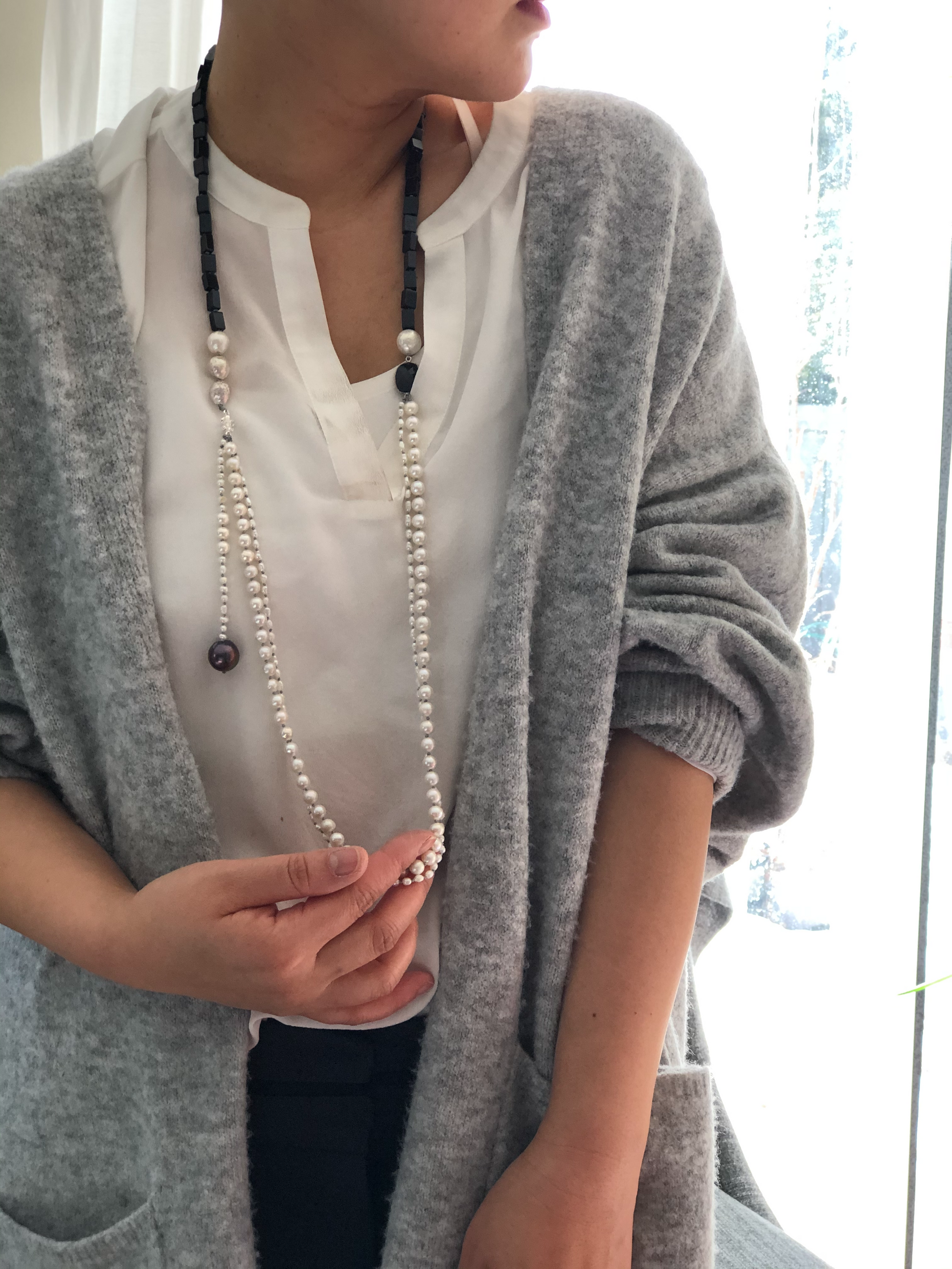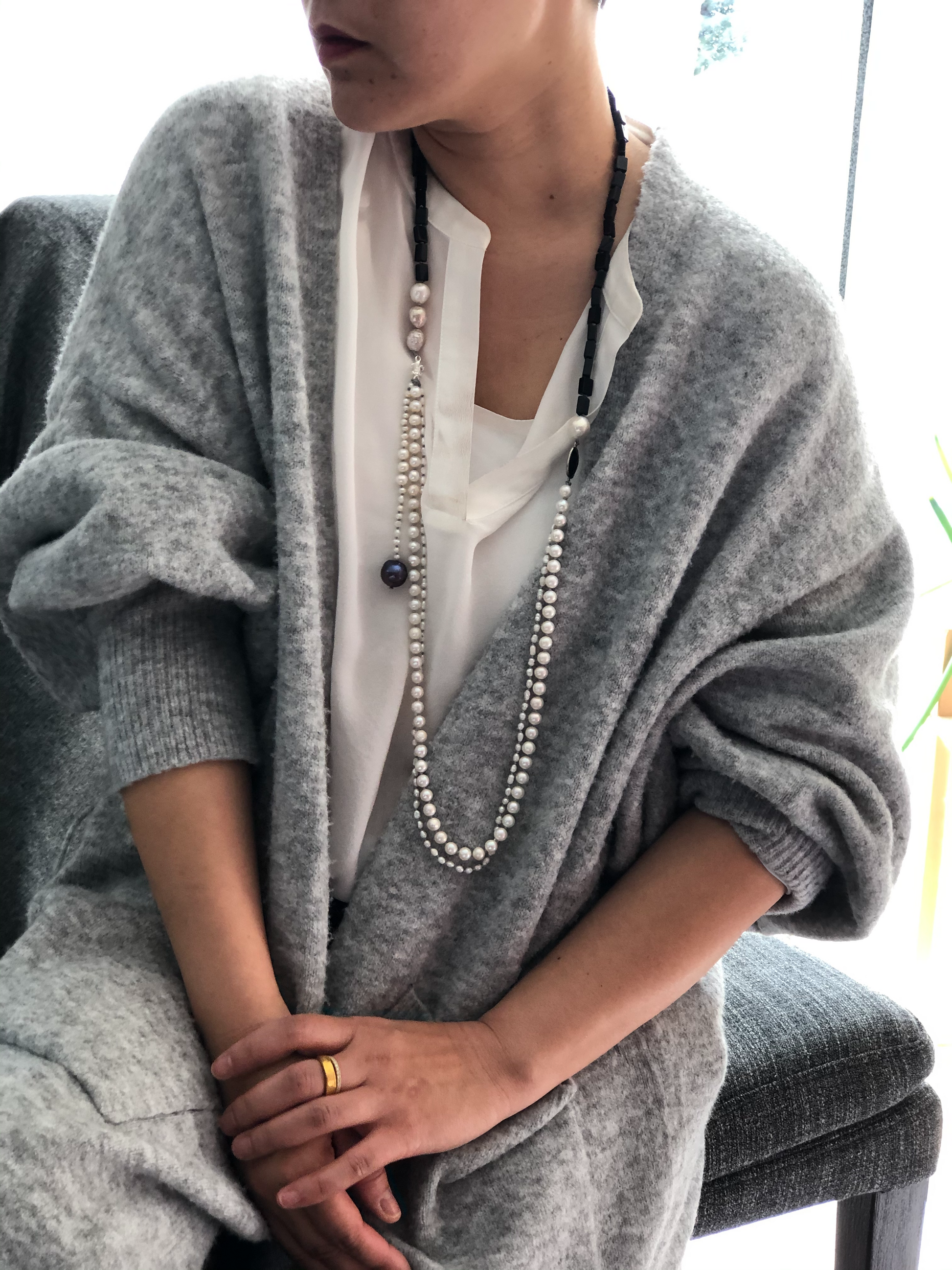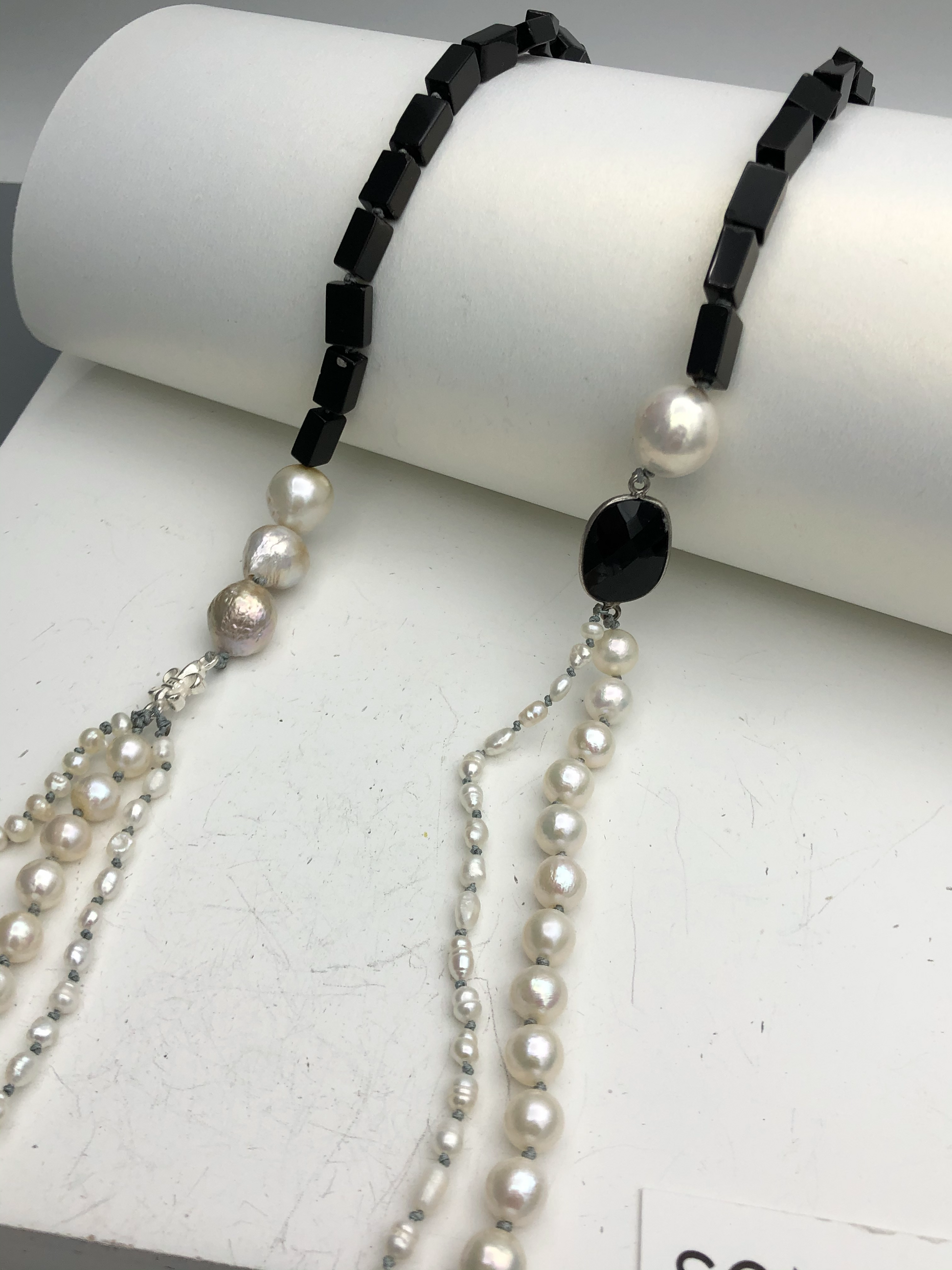 Materials : Fresh water pearl, black onyx, fine silver pendent with onyx