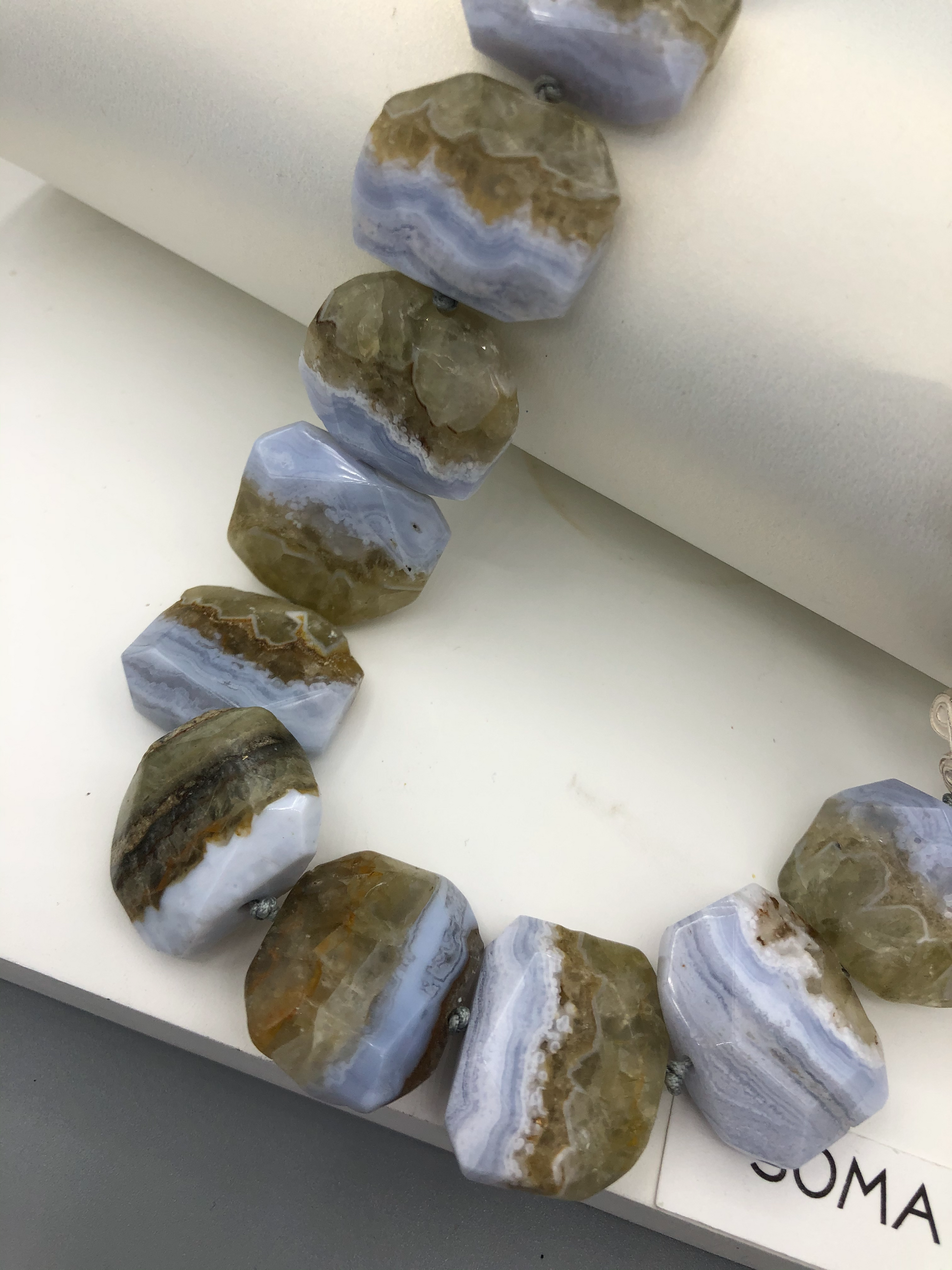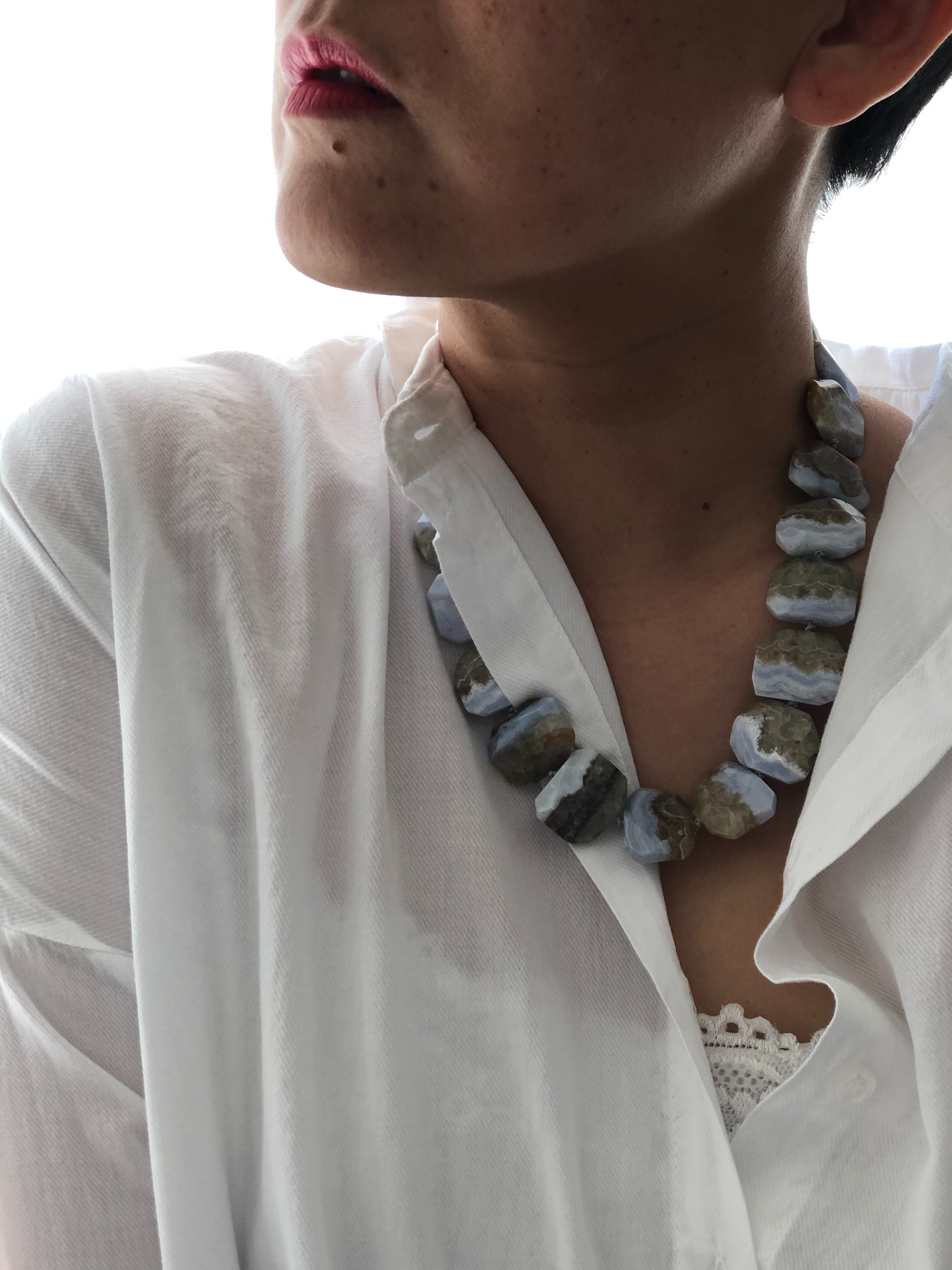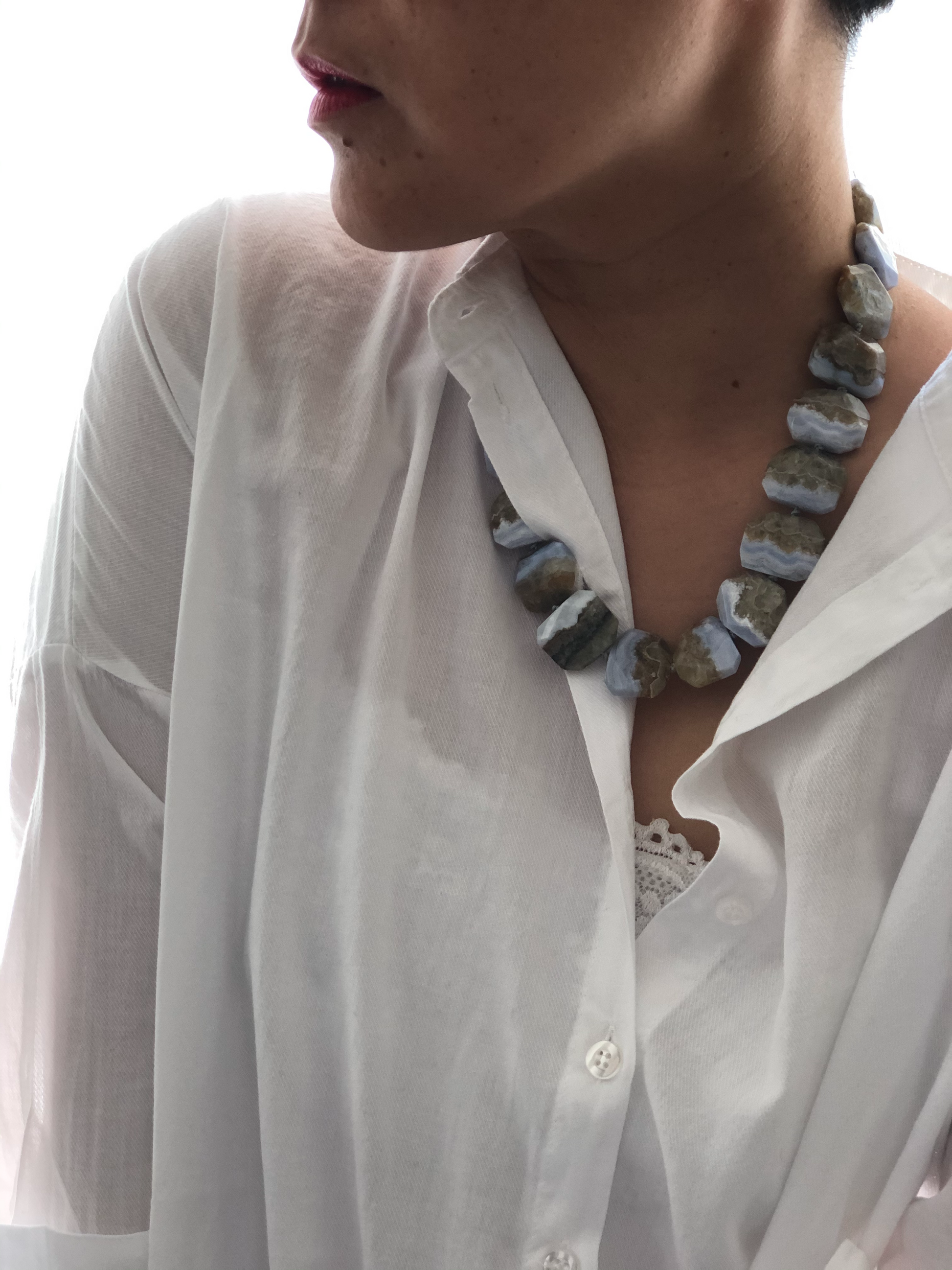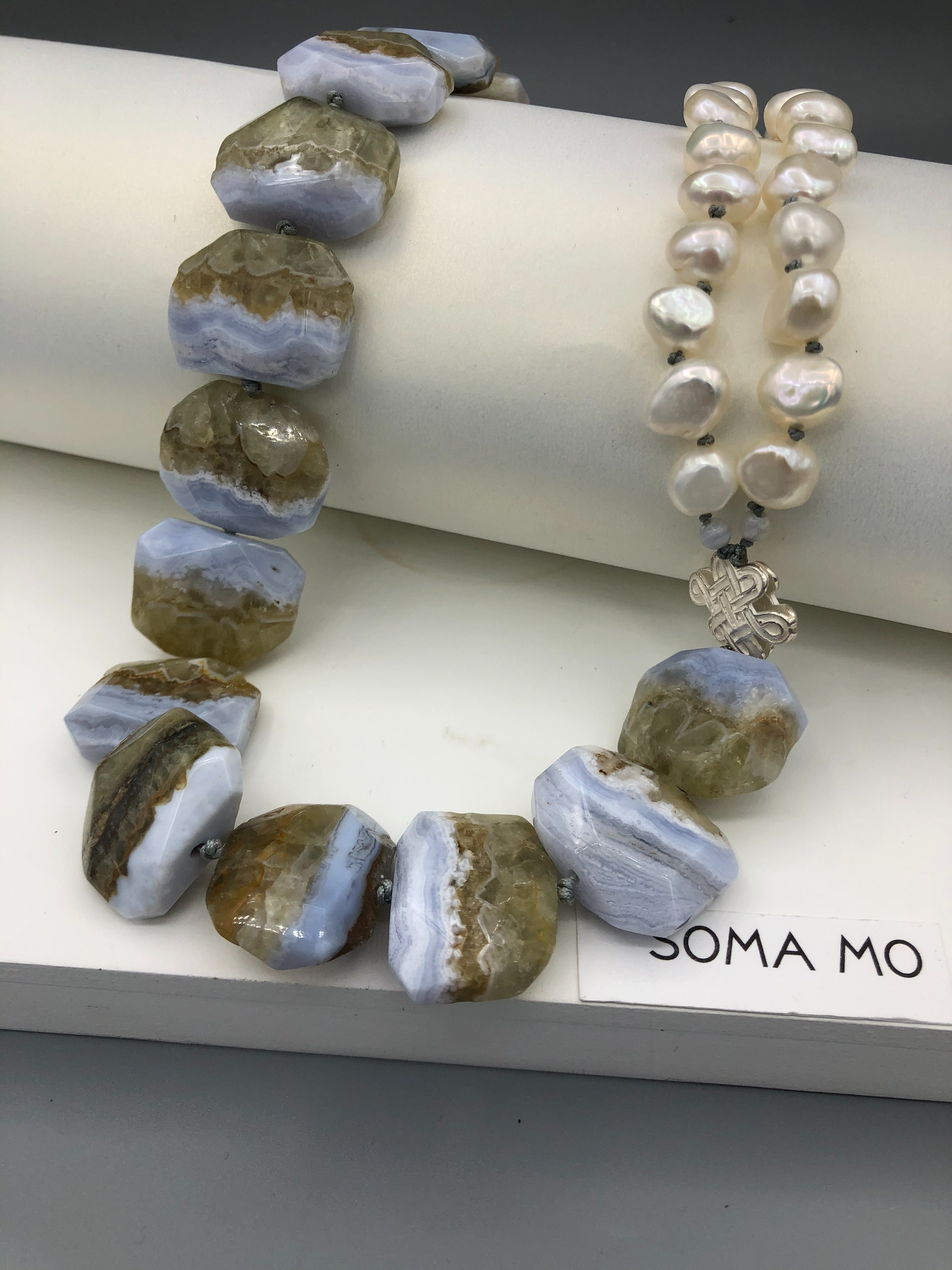 Materials : Blue lace agate, fresh water pearl , fine silver