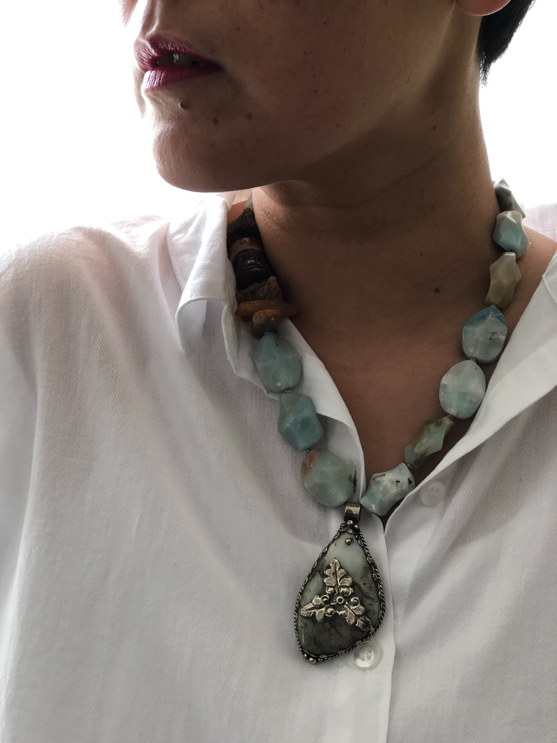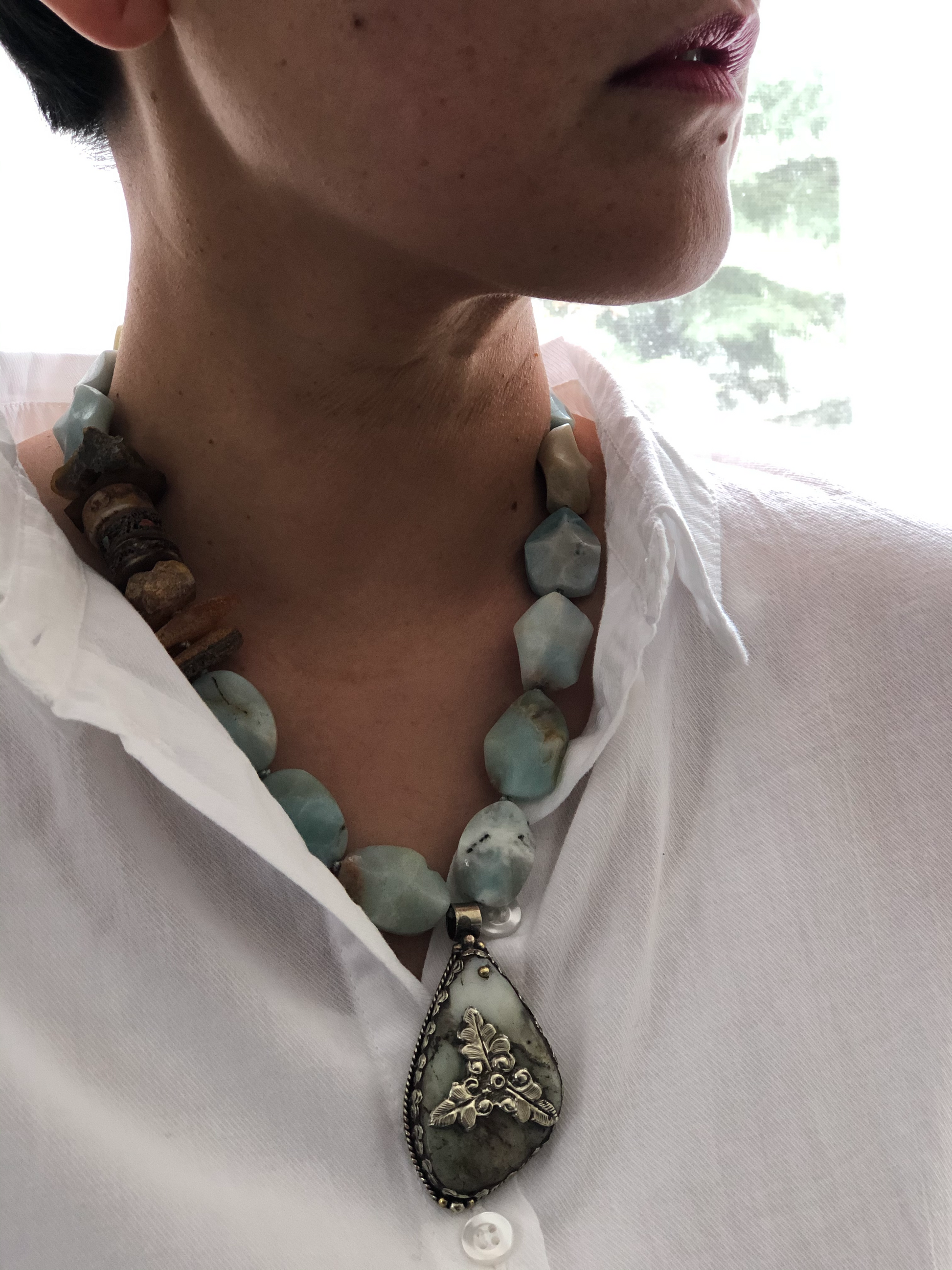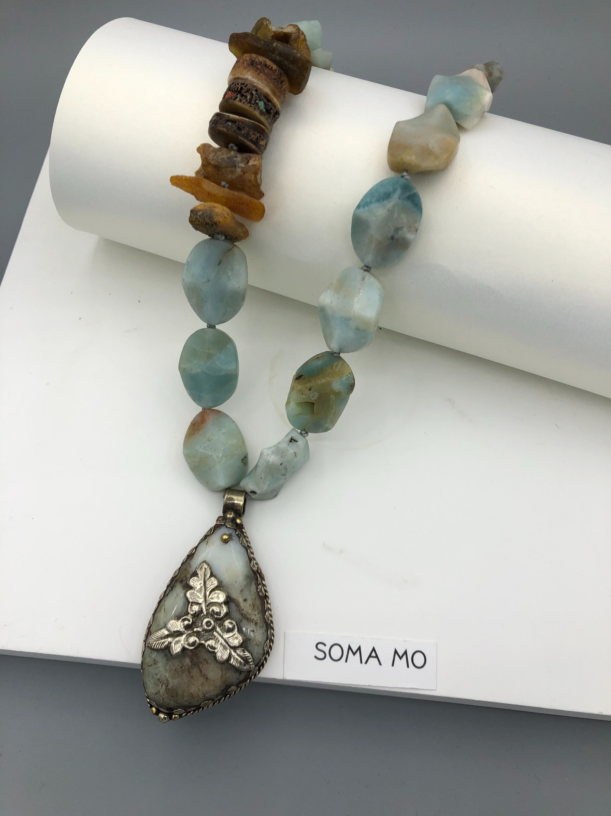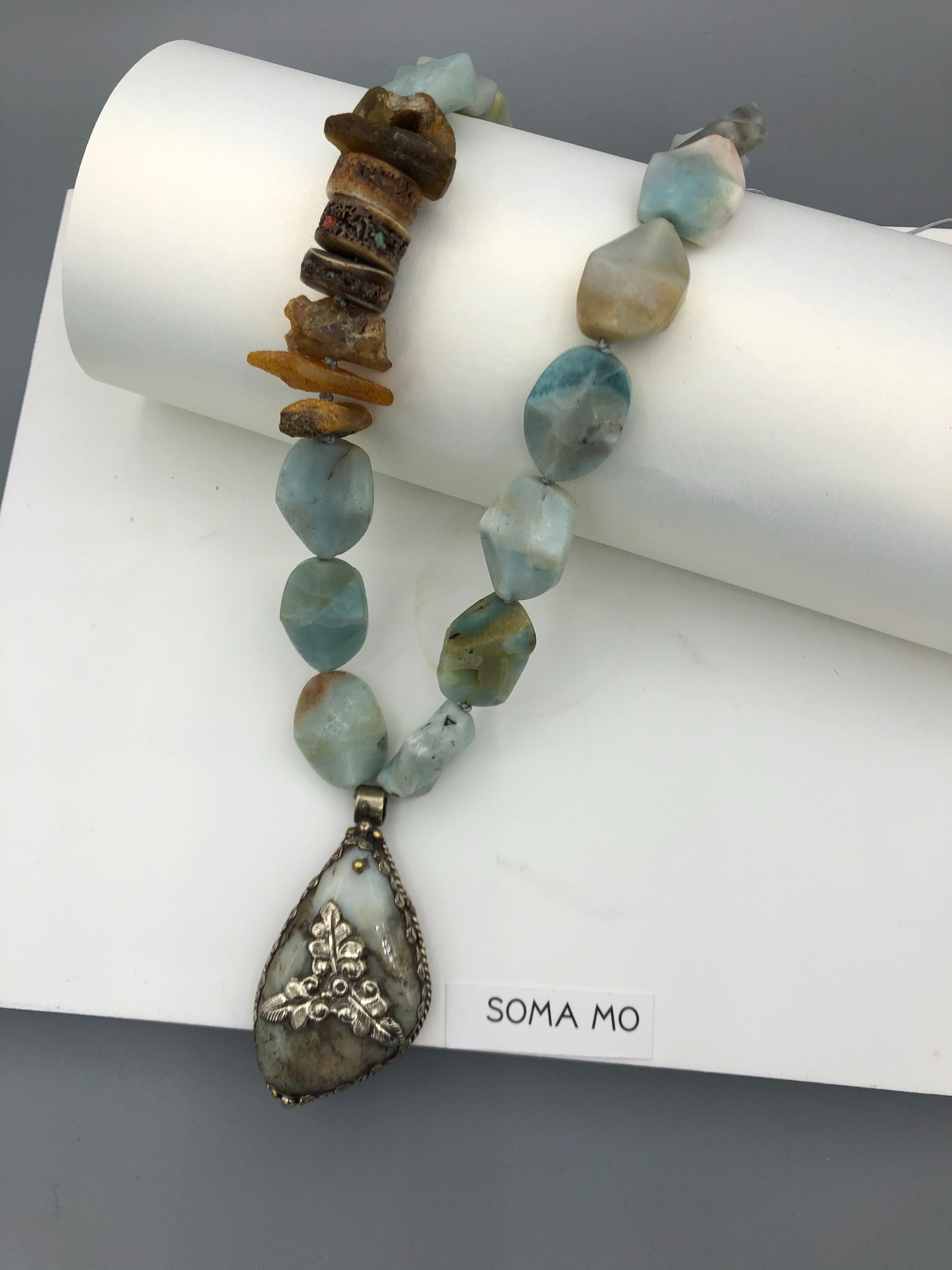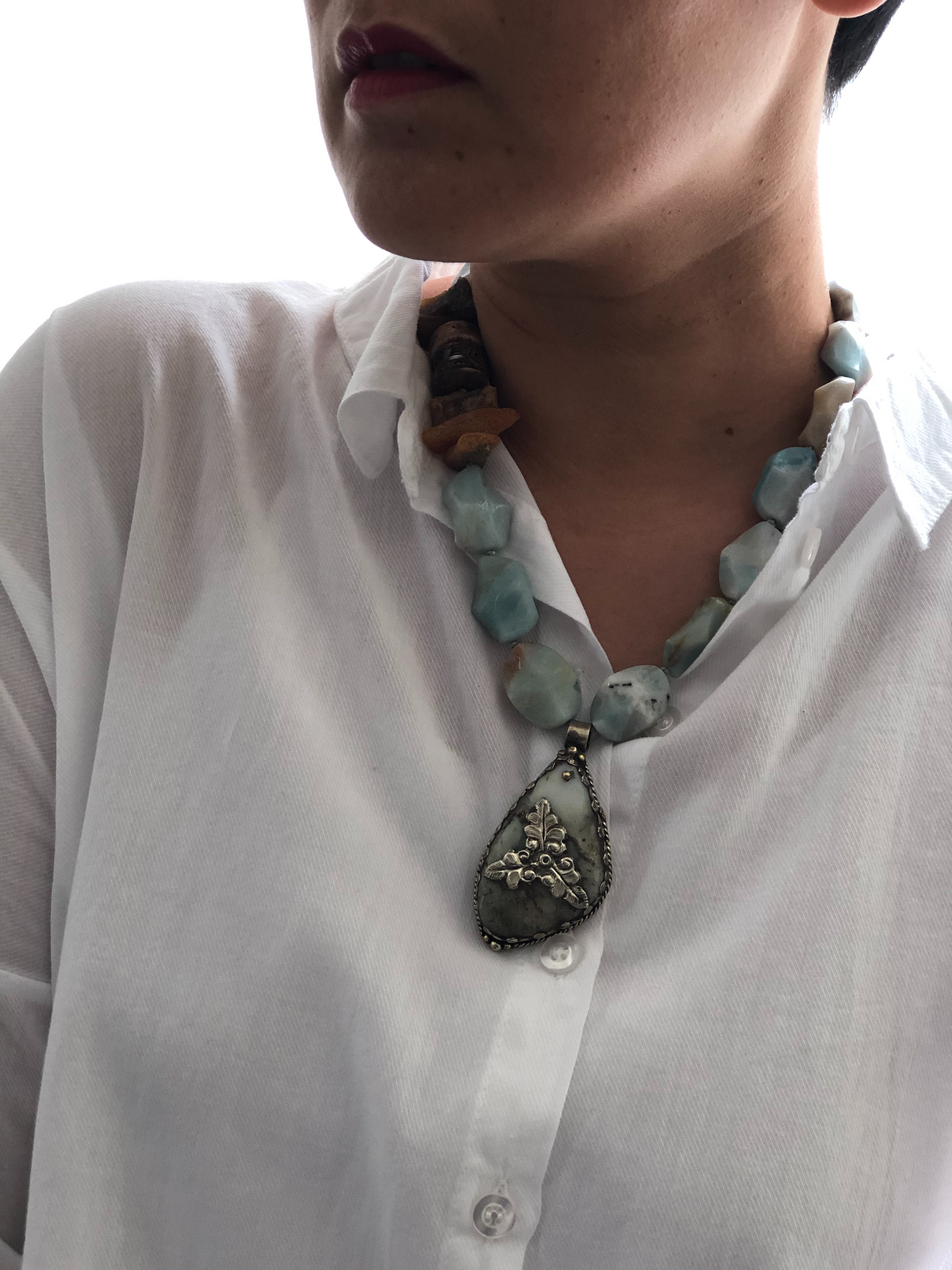 Materials : Amazonite, baltic amber, Tibetan pendent