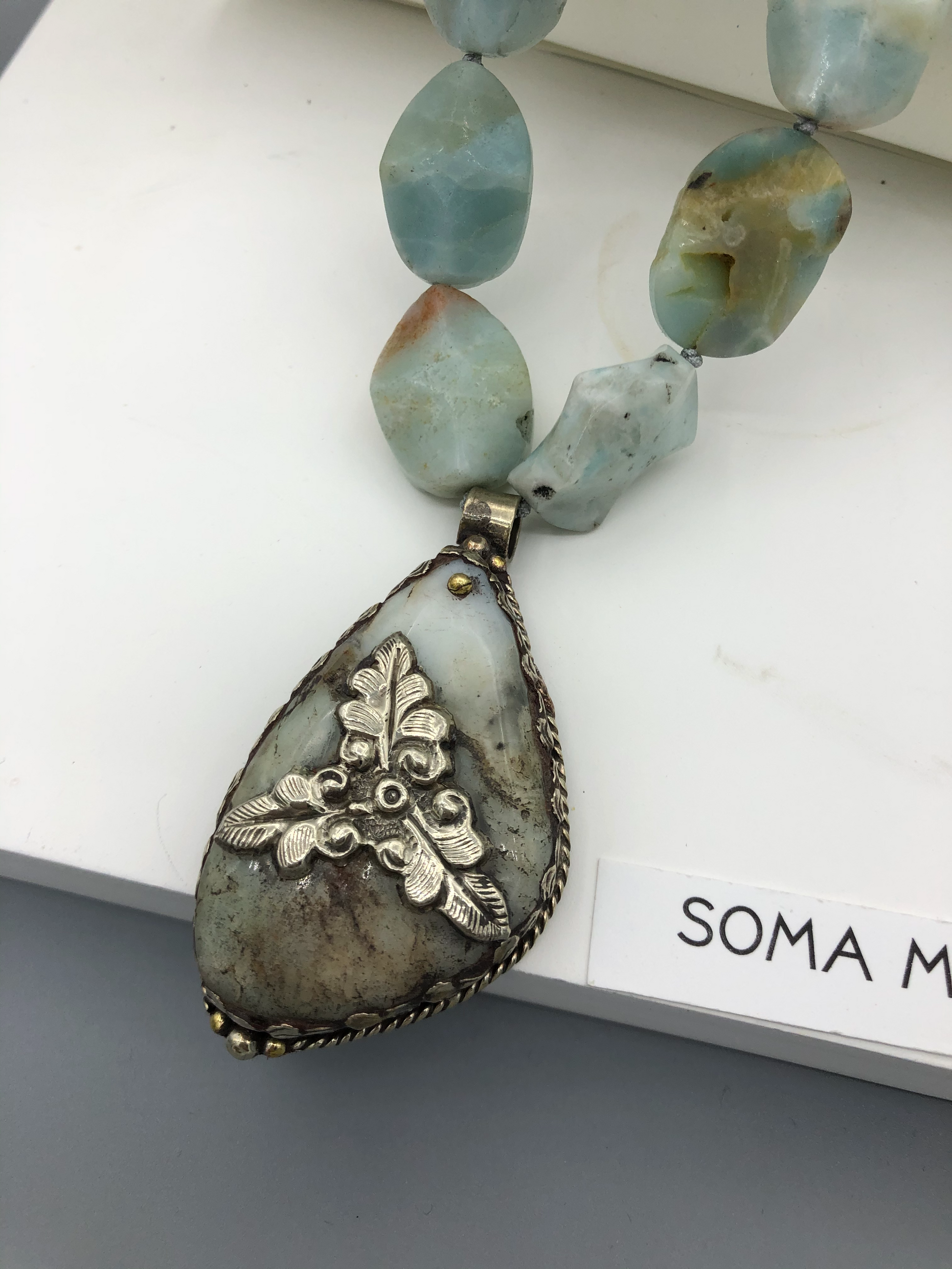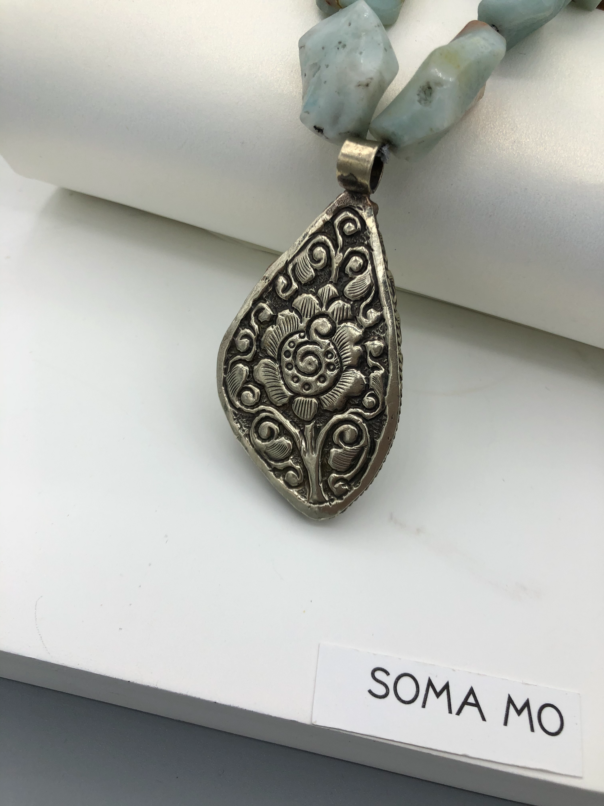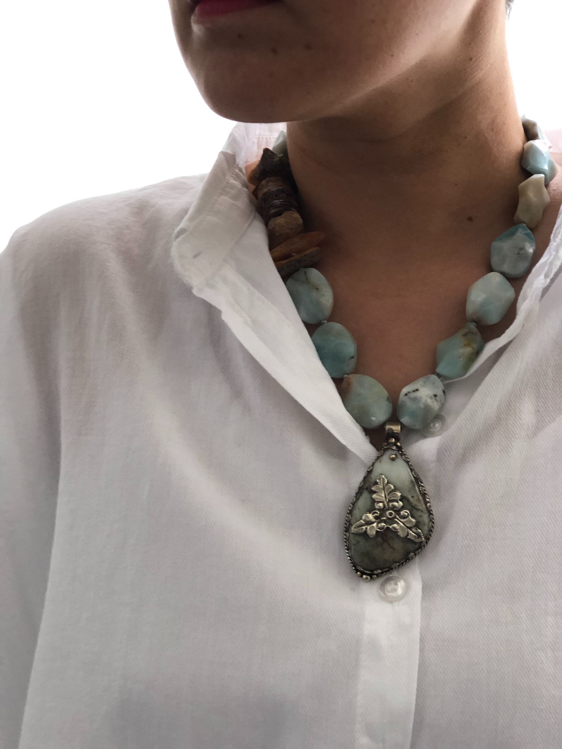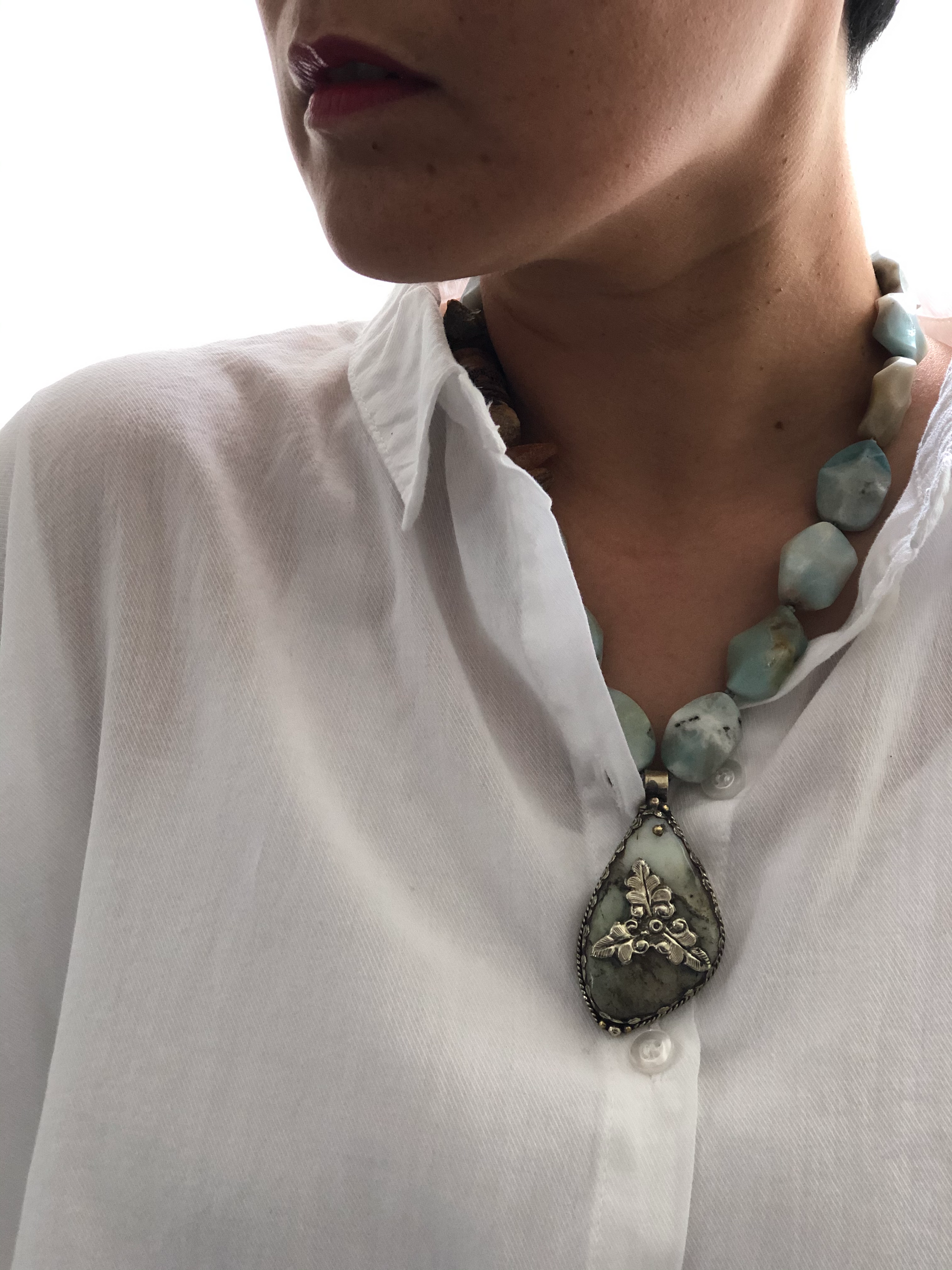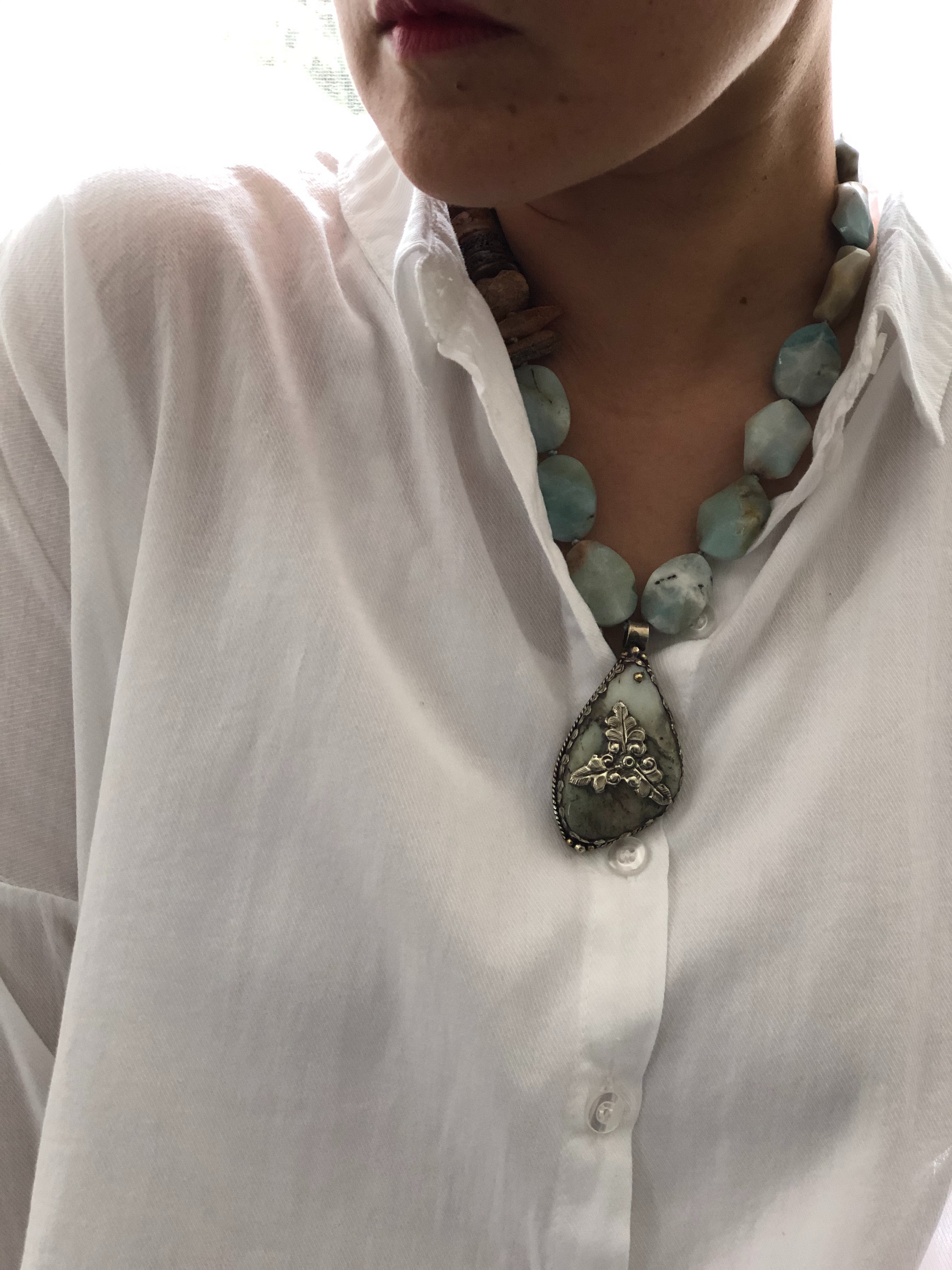 Materials : Amazonite, baltic amber, Tibetan pendent