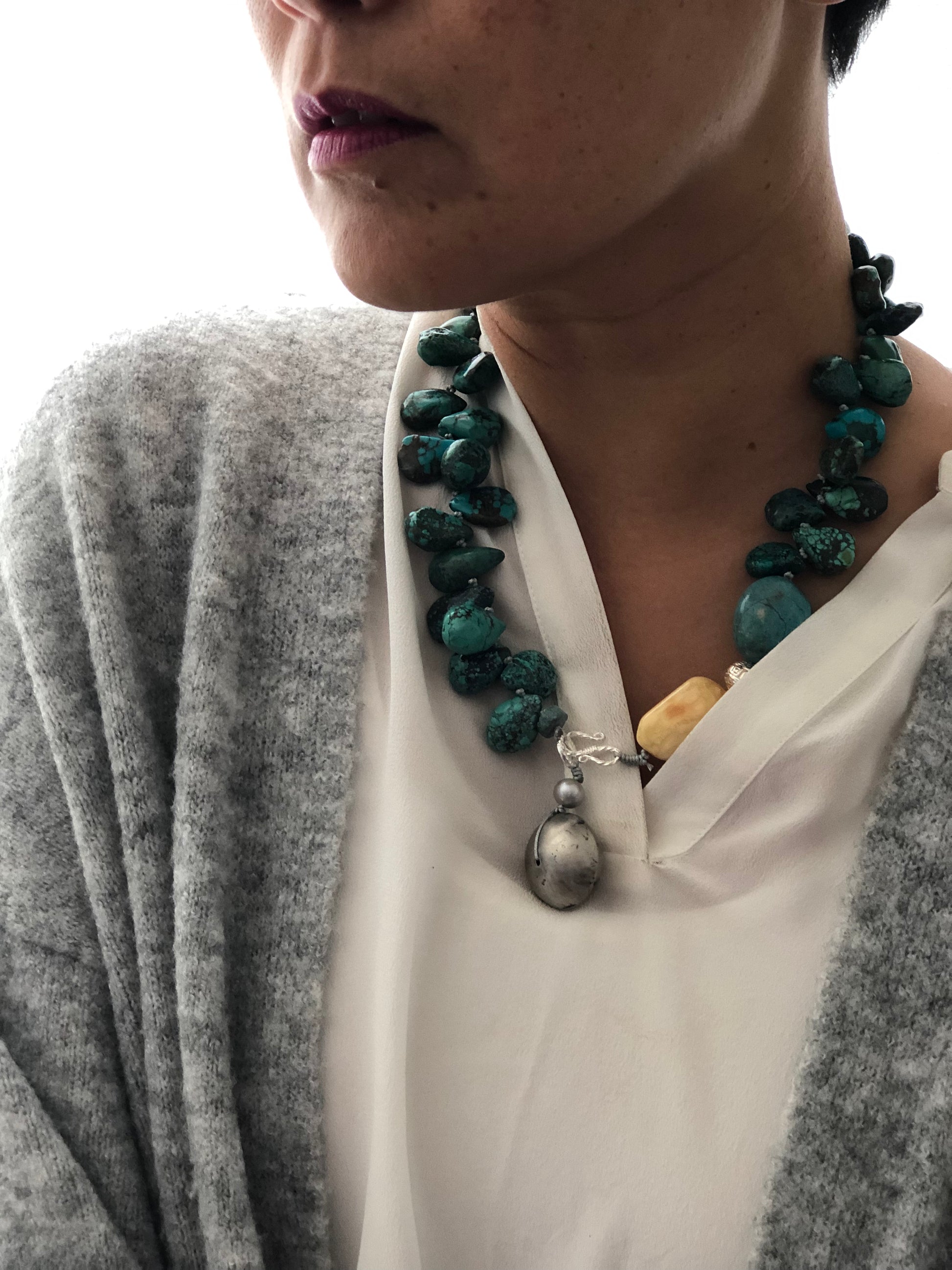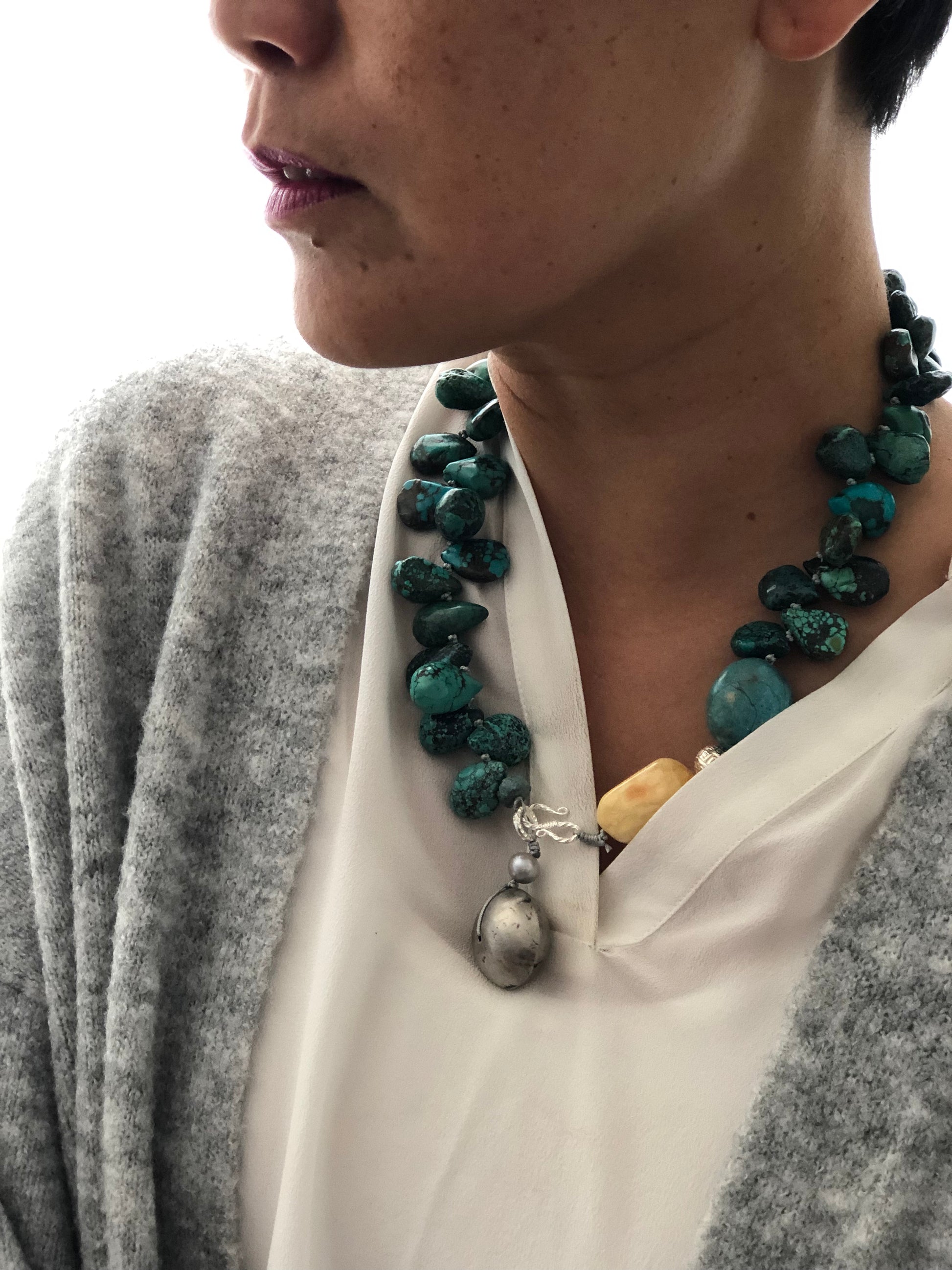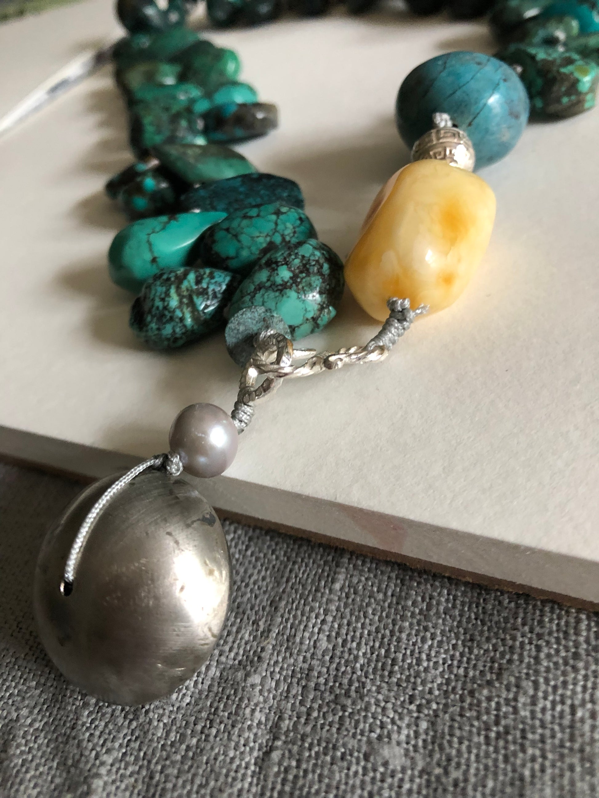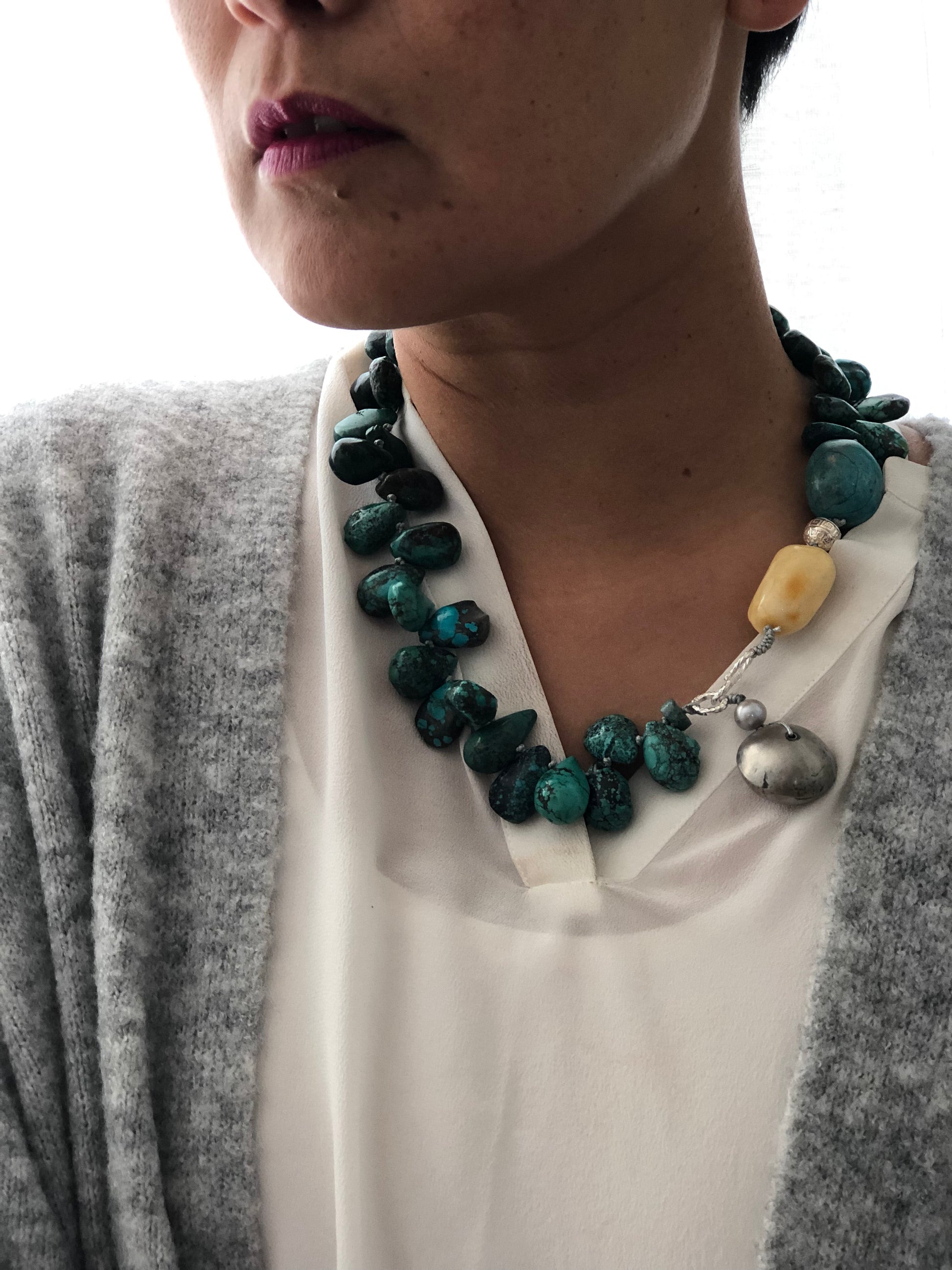 Materials : Tibetan Tequoise, silver, baltic amber