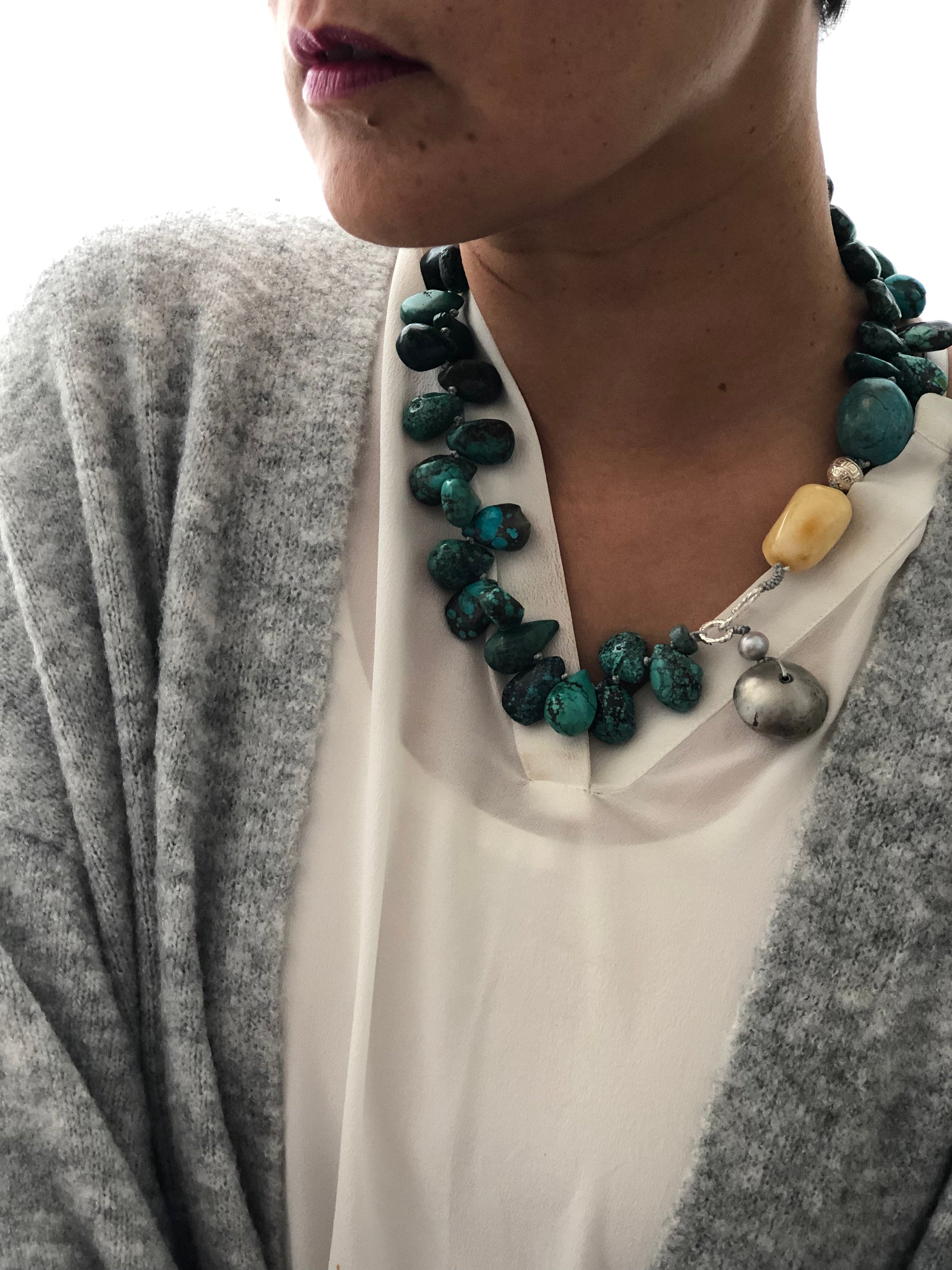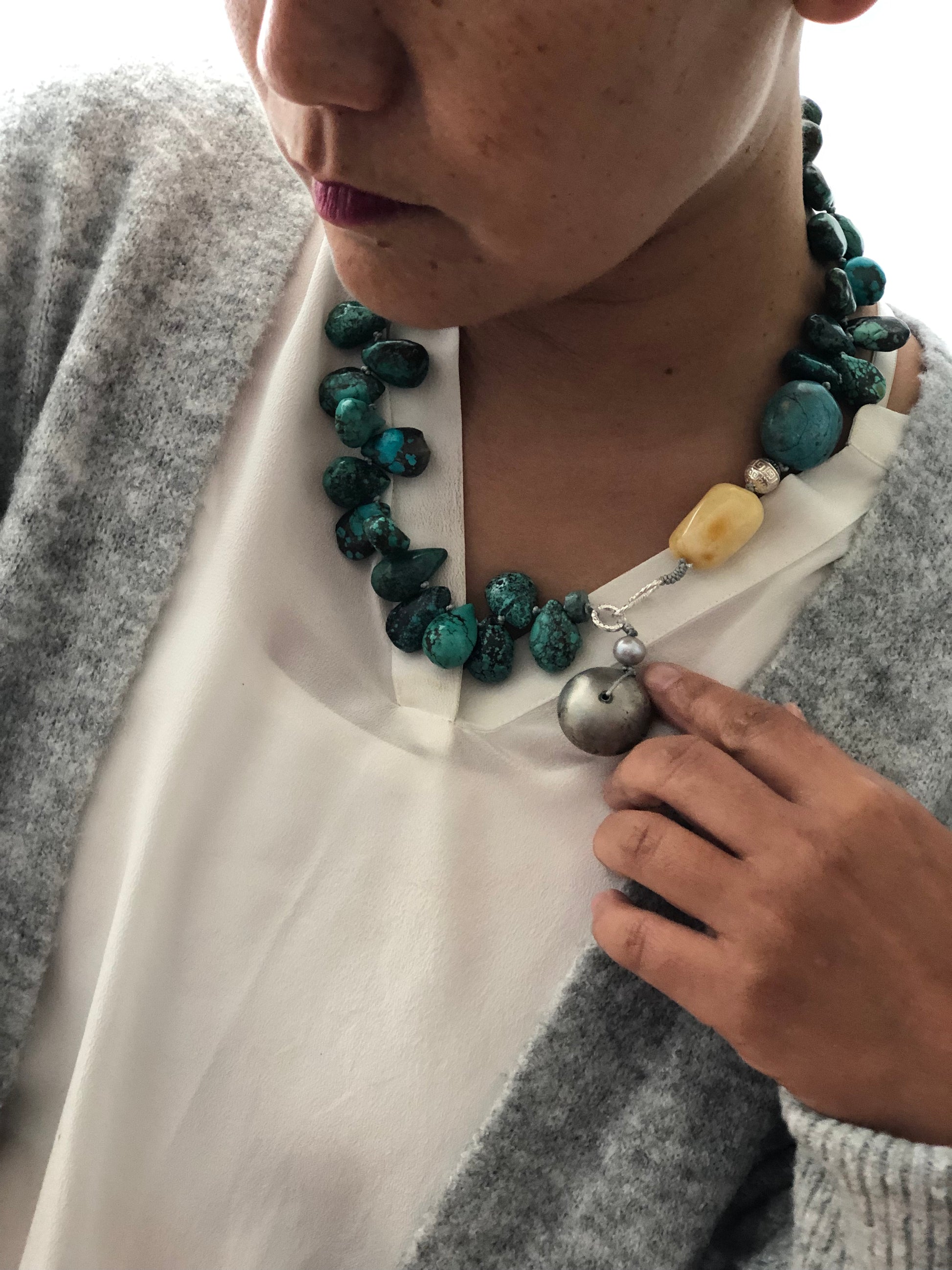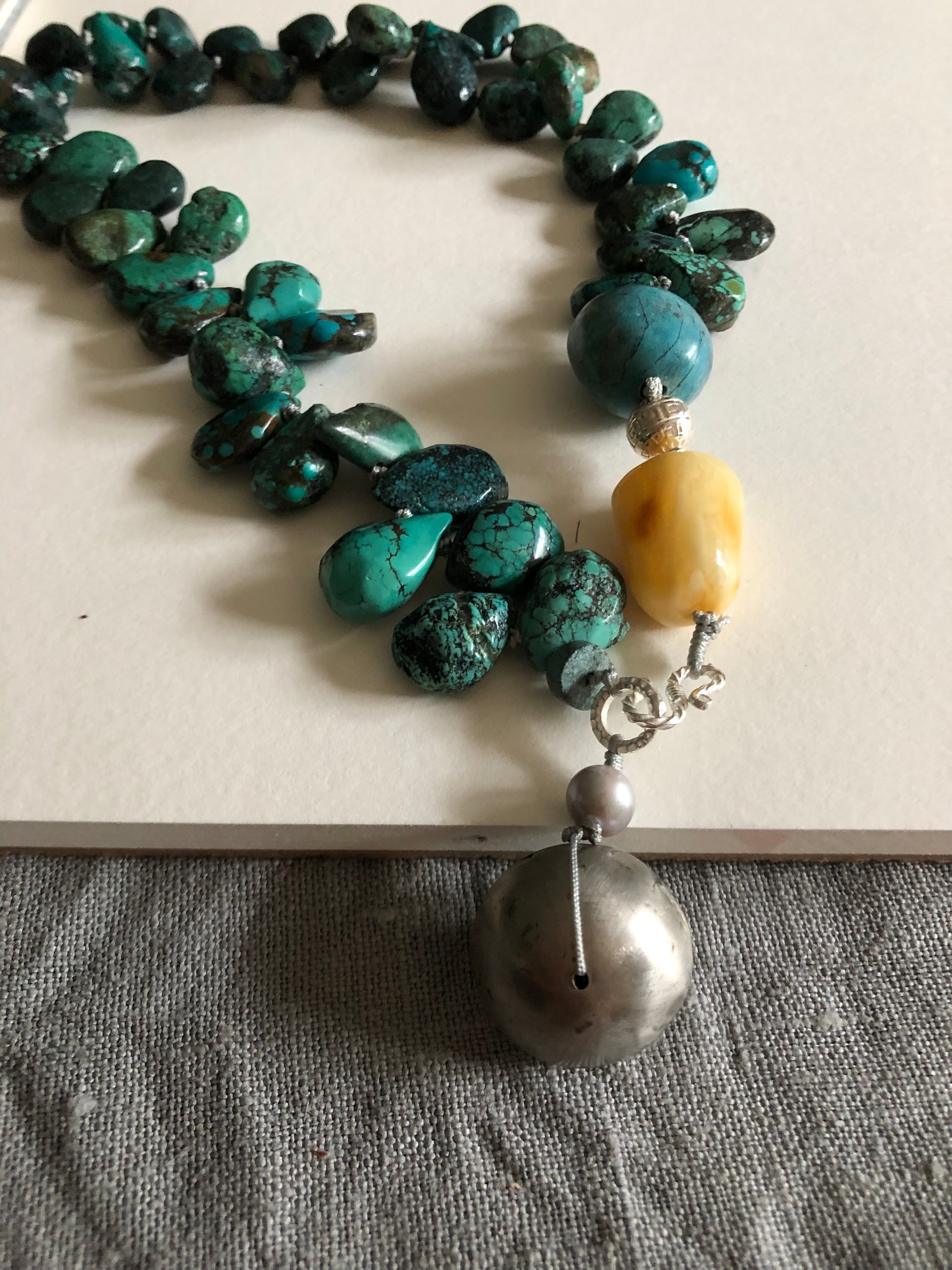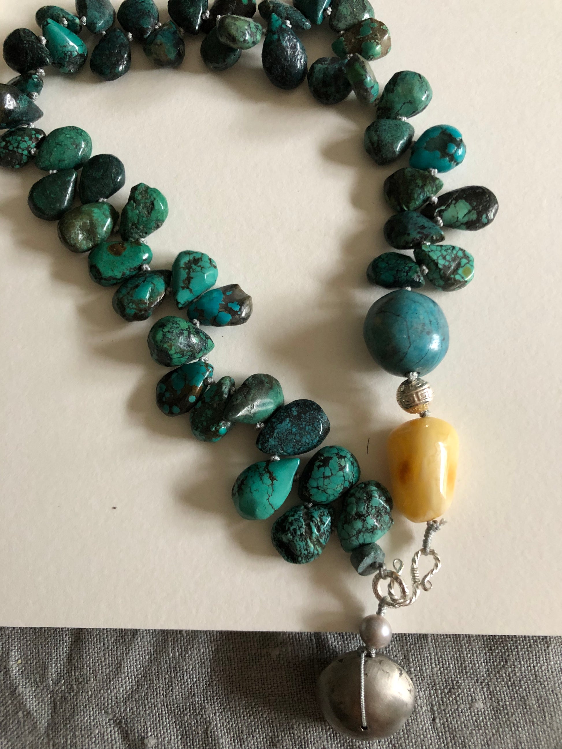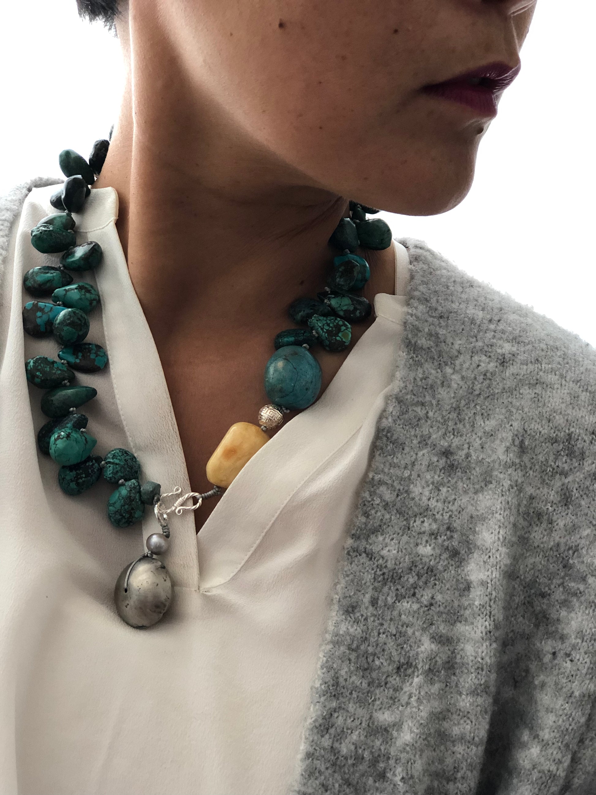 Materials : Tibetan Tequoise, silver, baltic amber