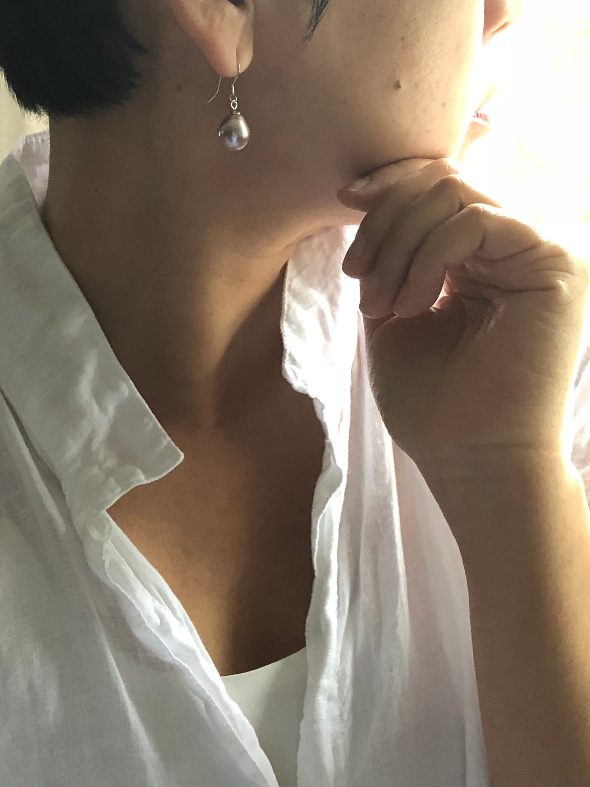 Materials : Fresh water baroque pearl in purple, sterling silver
