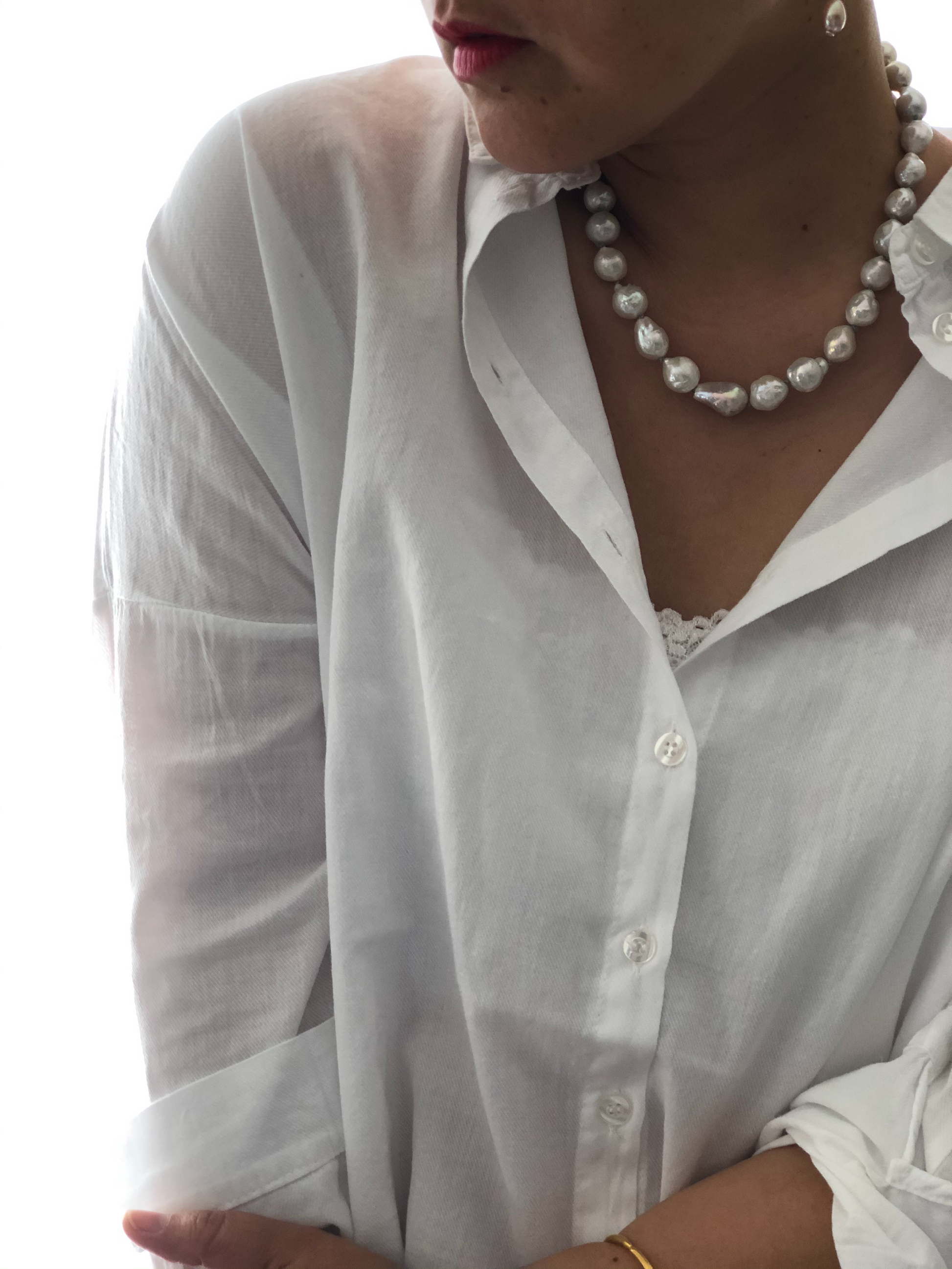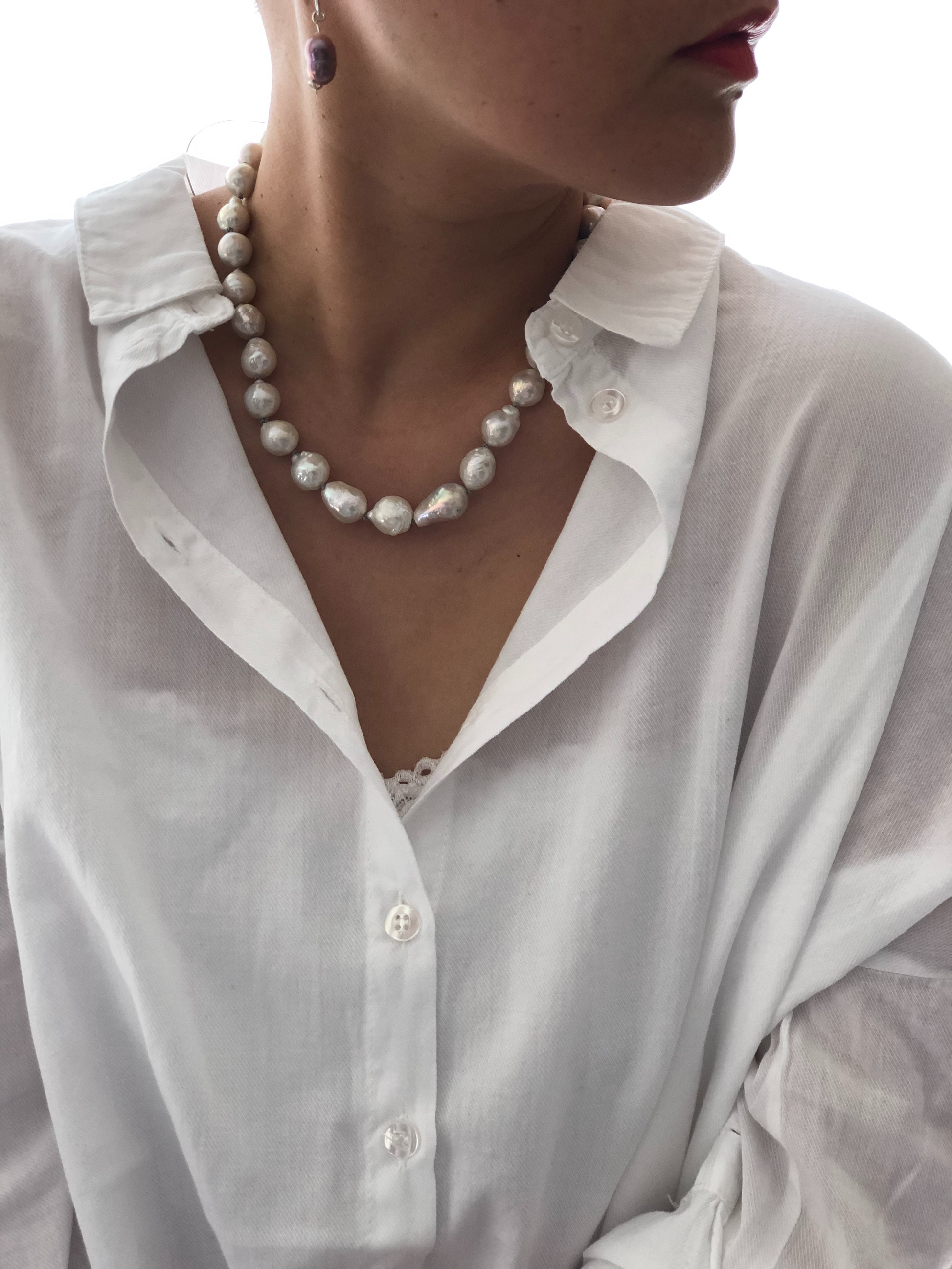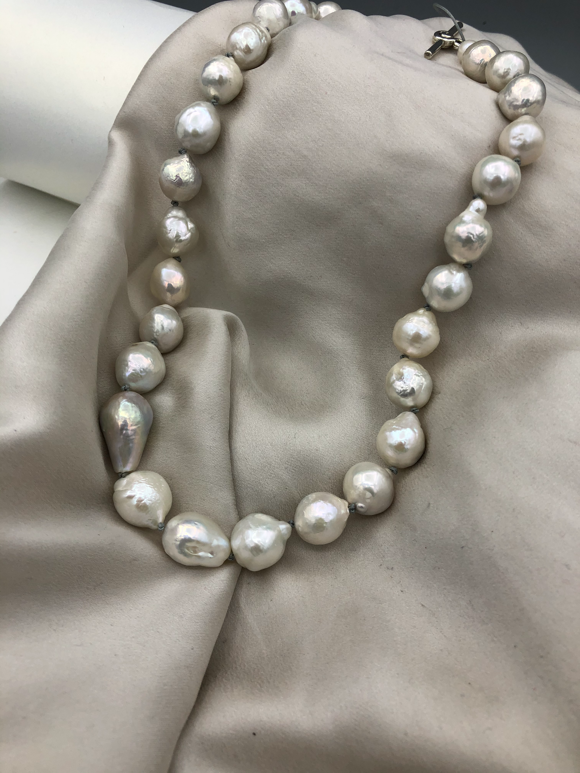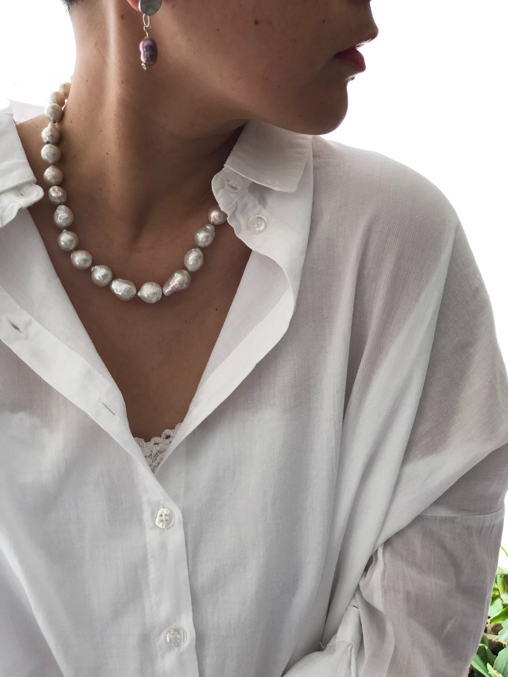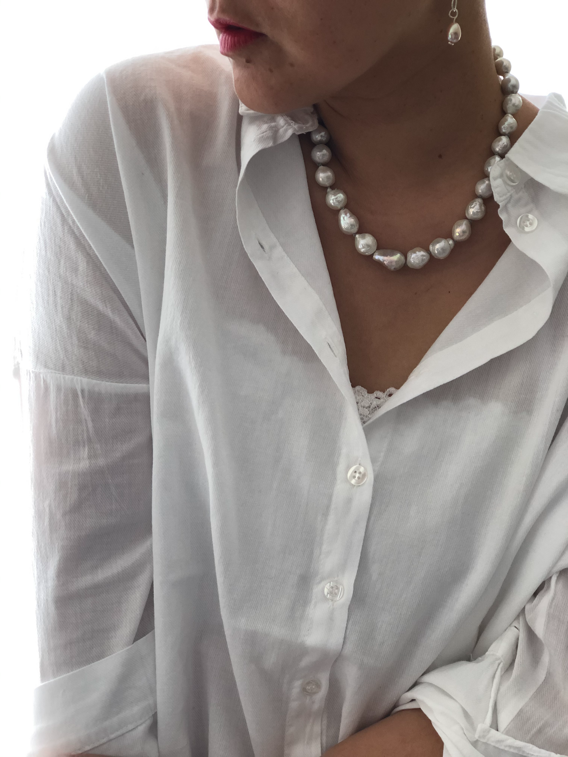 Materials : Fresh water Edson pearl in white color , this type of pearl is shinning but also has textures , not perfectly round shape