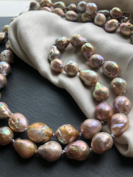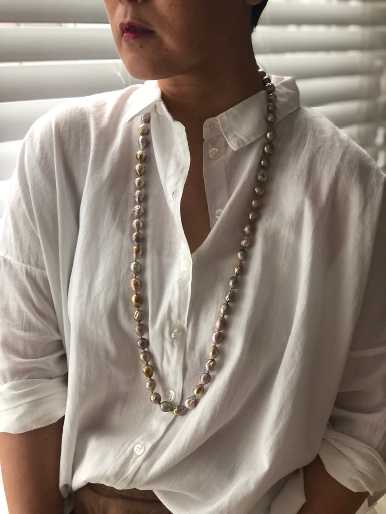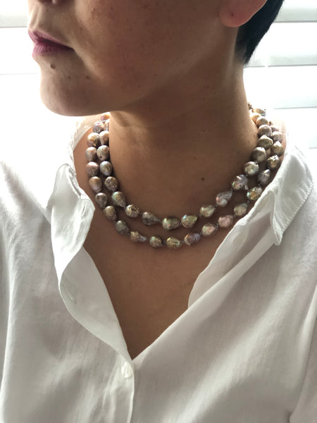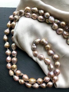 Very special natural textured pearls, hand knotted between each pearls, can be wore long or doubled.