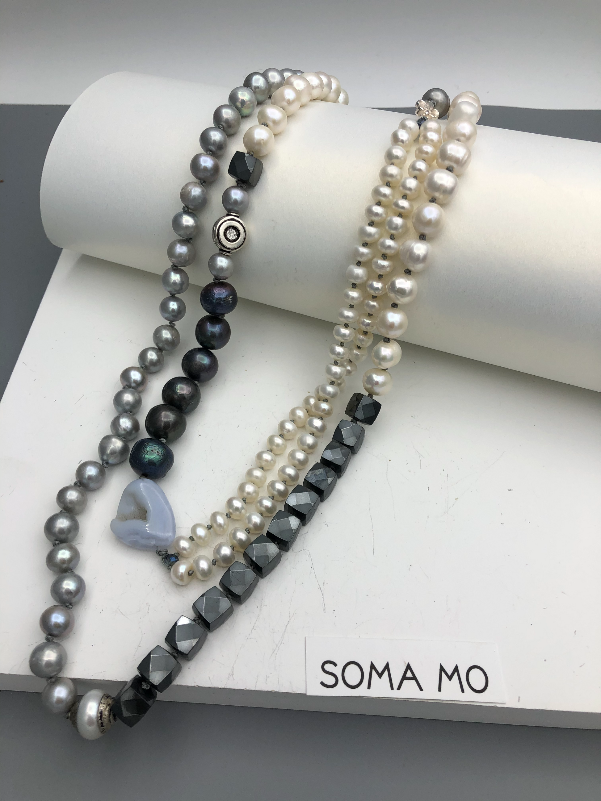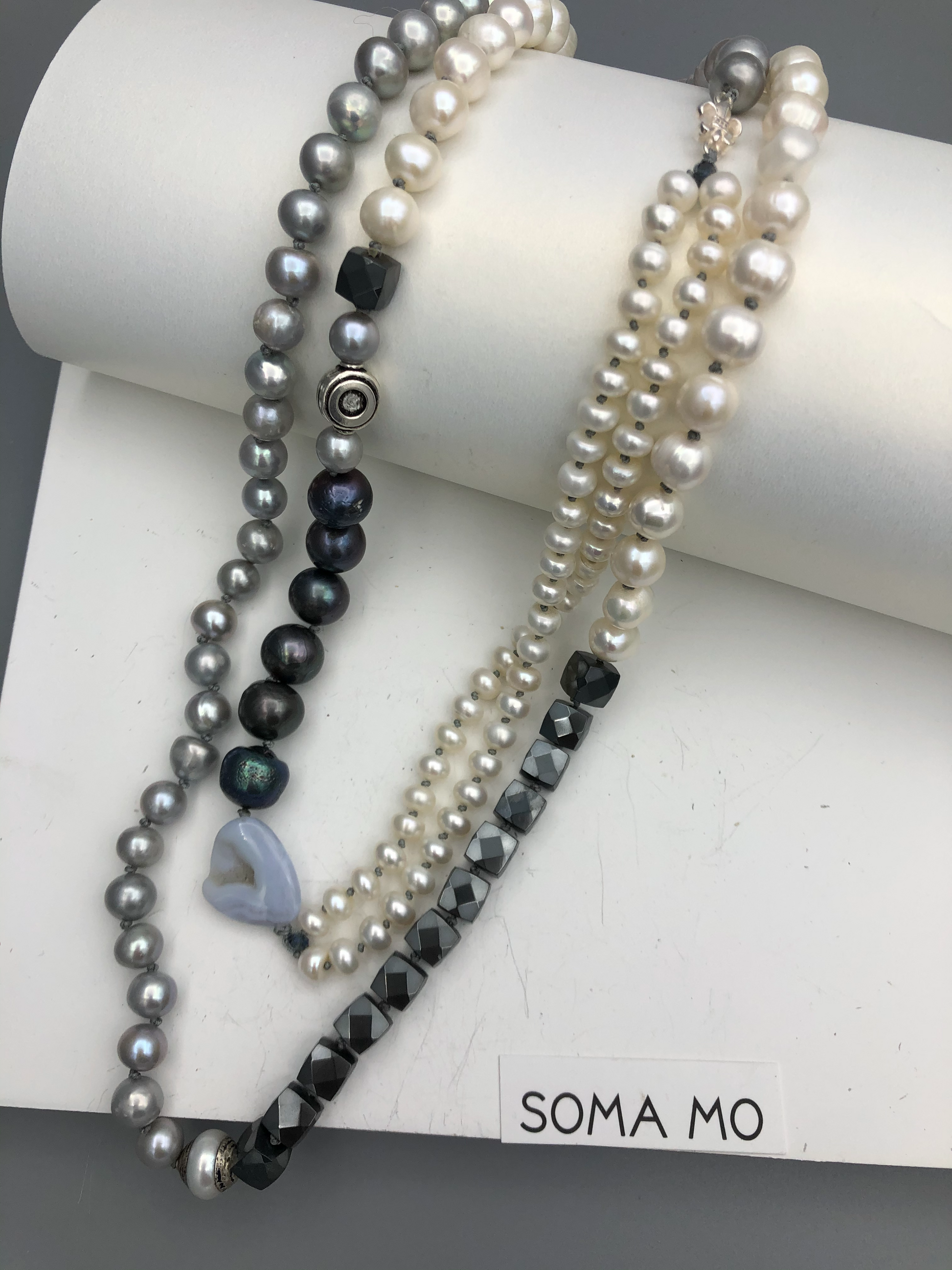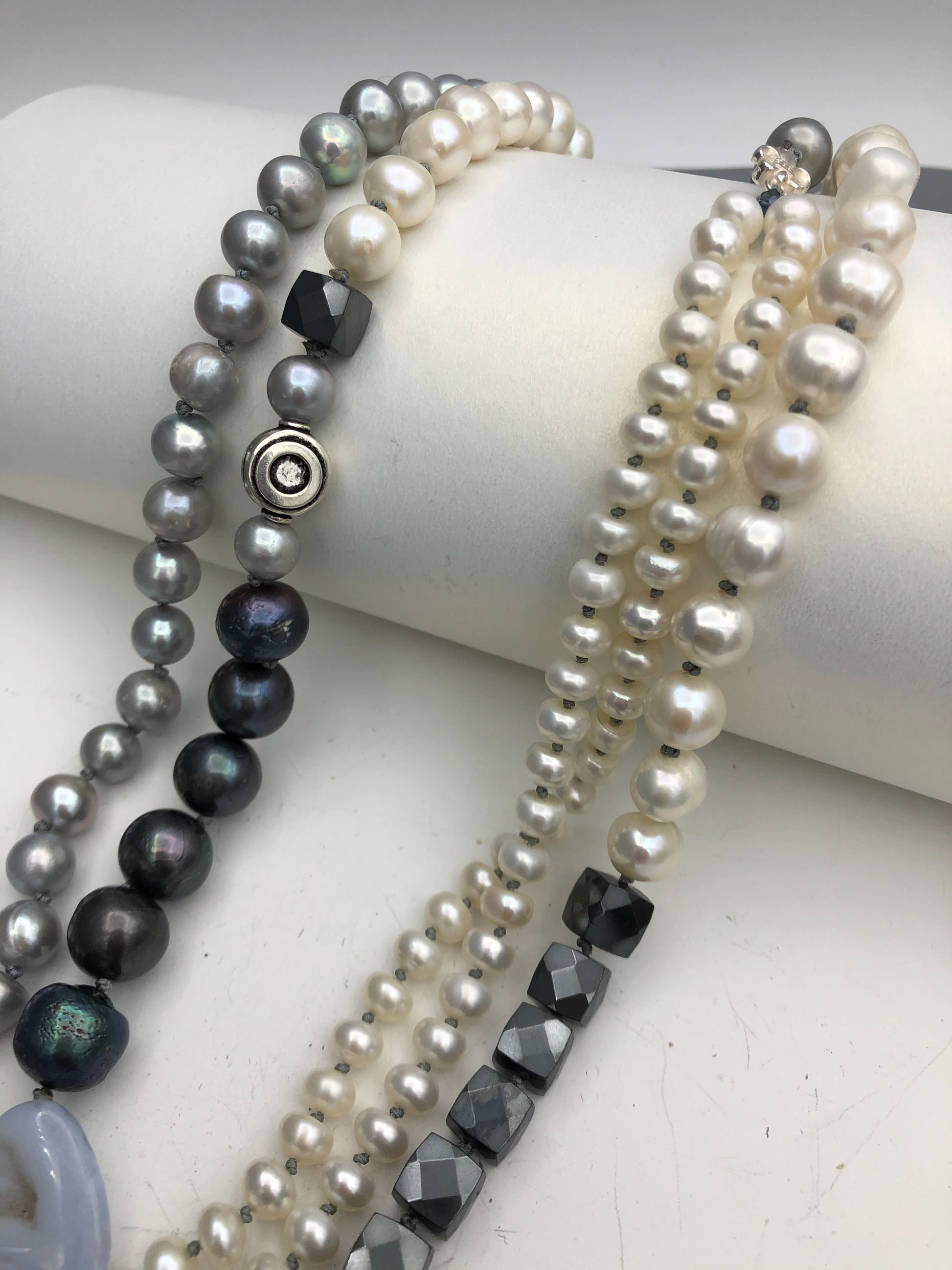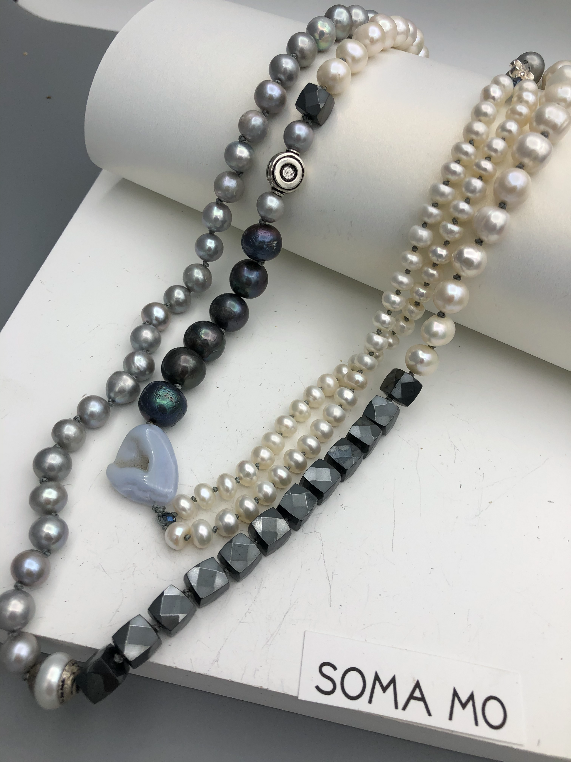 Materials : Fresh water pearl, hematiet, blue lace agate, sterling silver