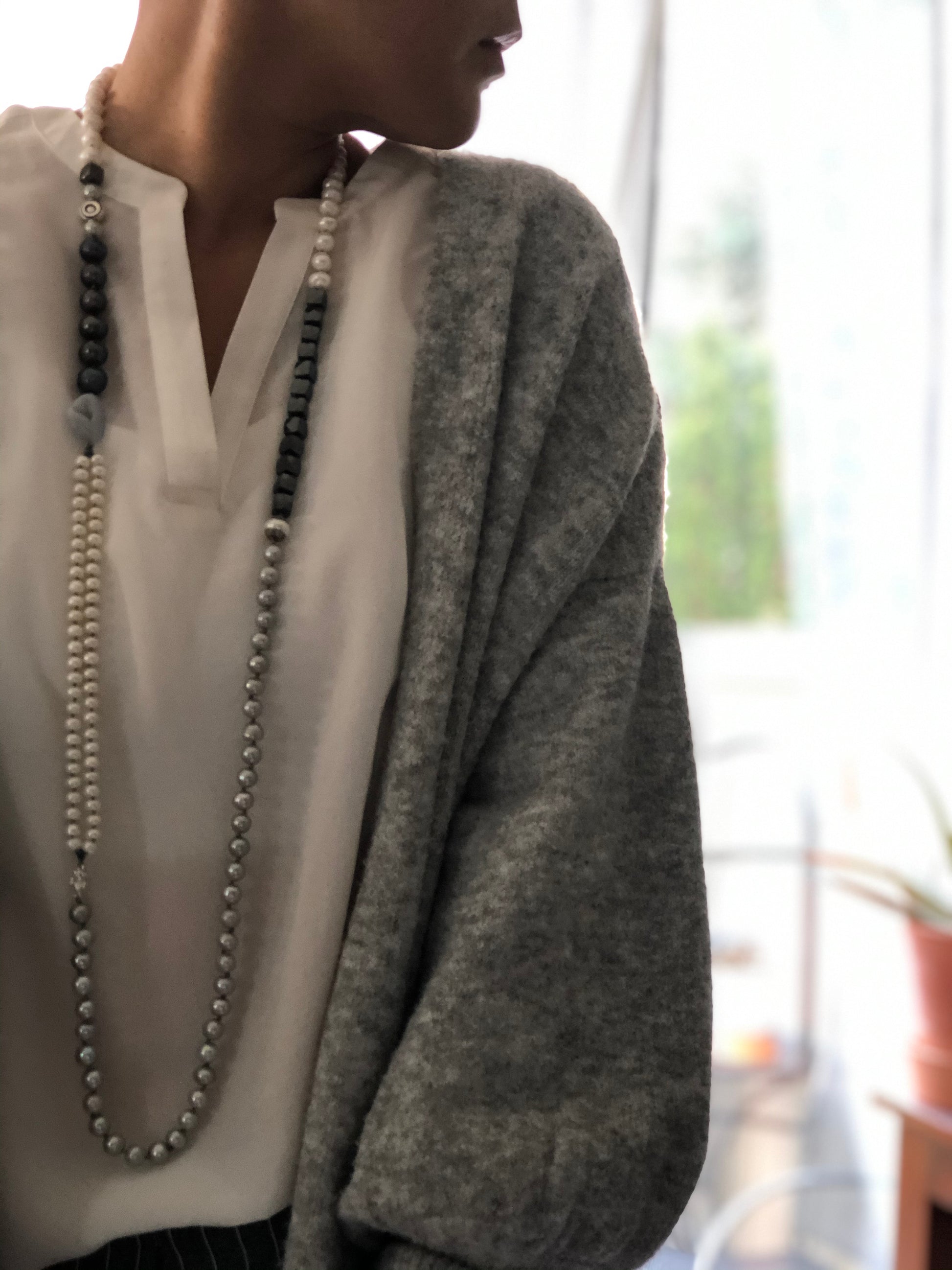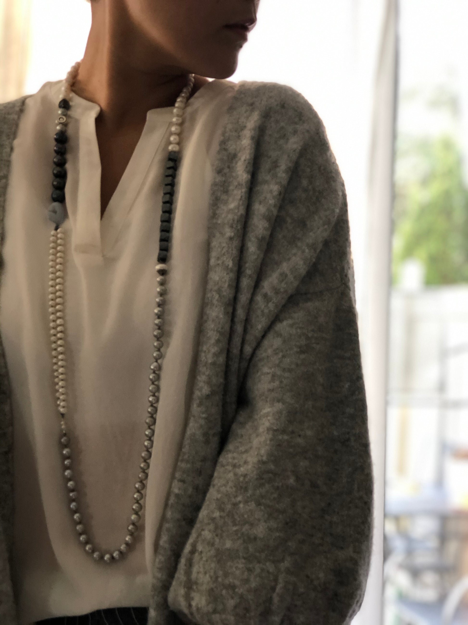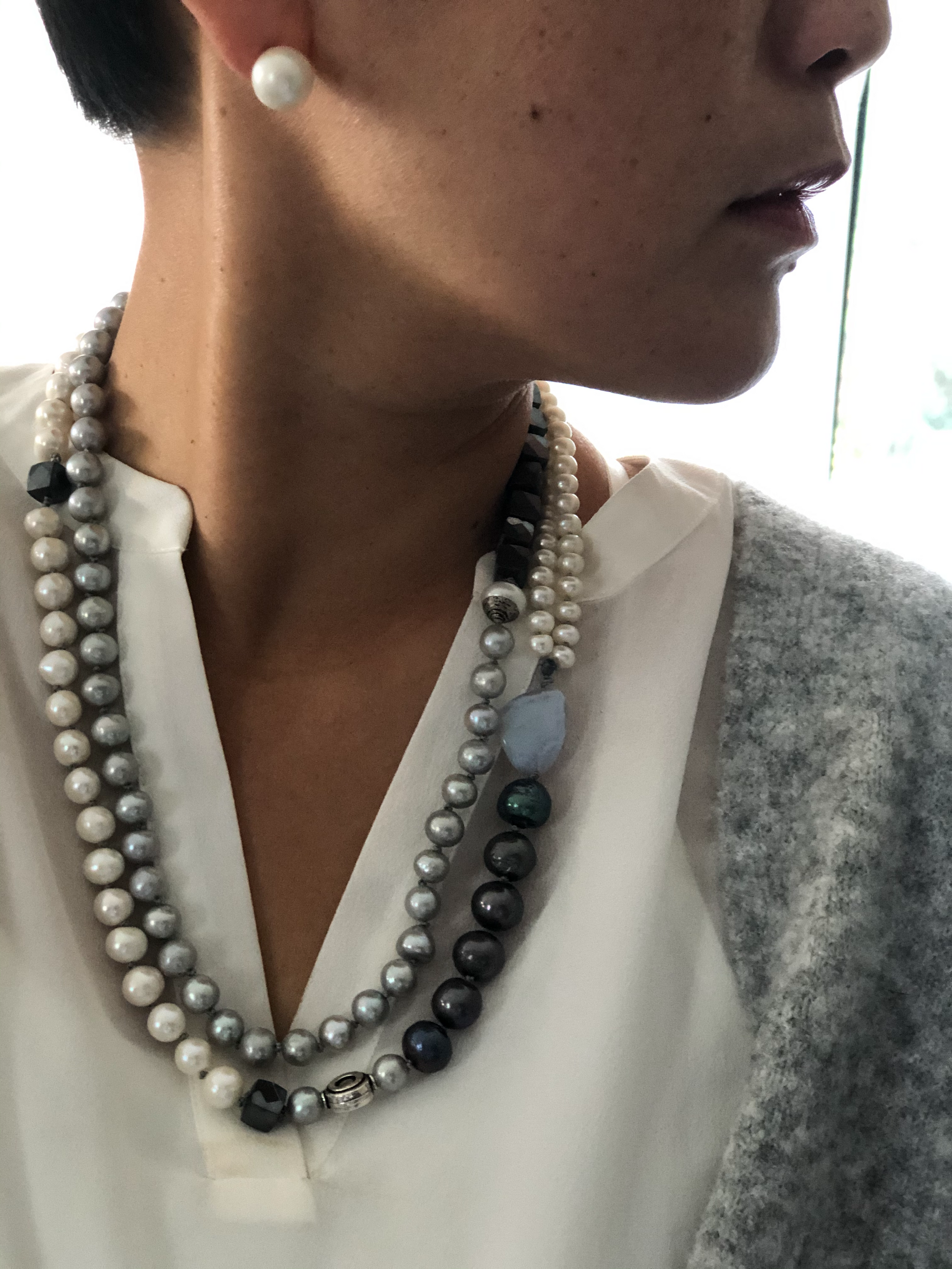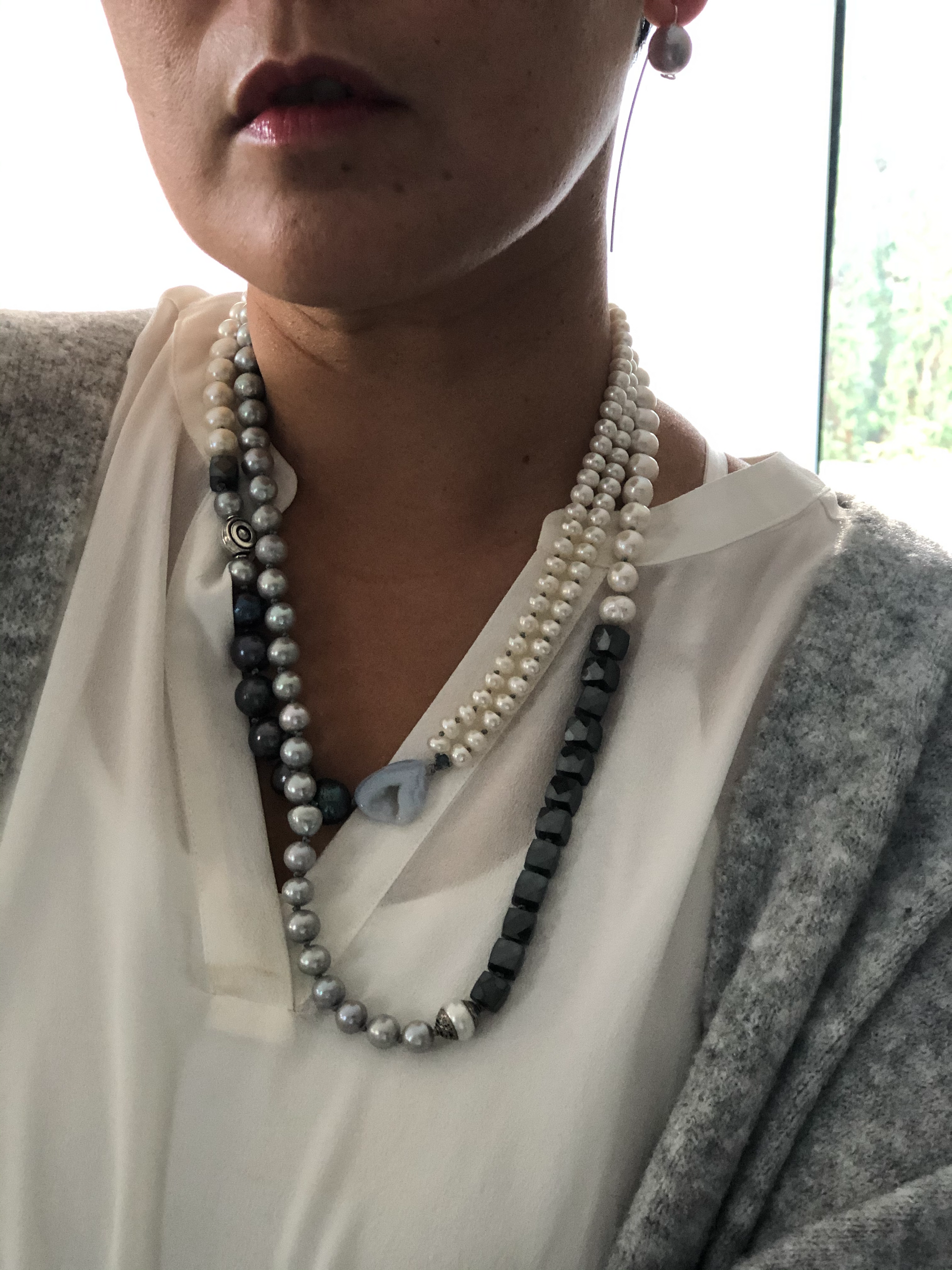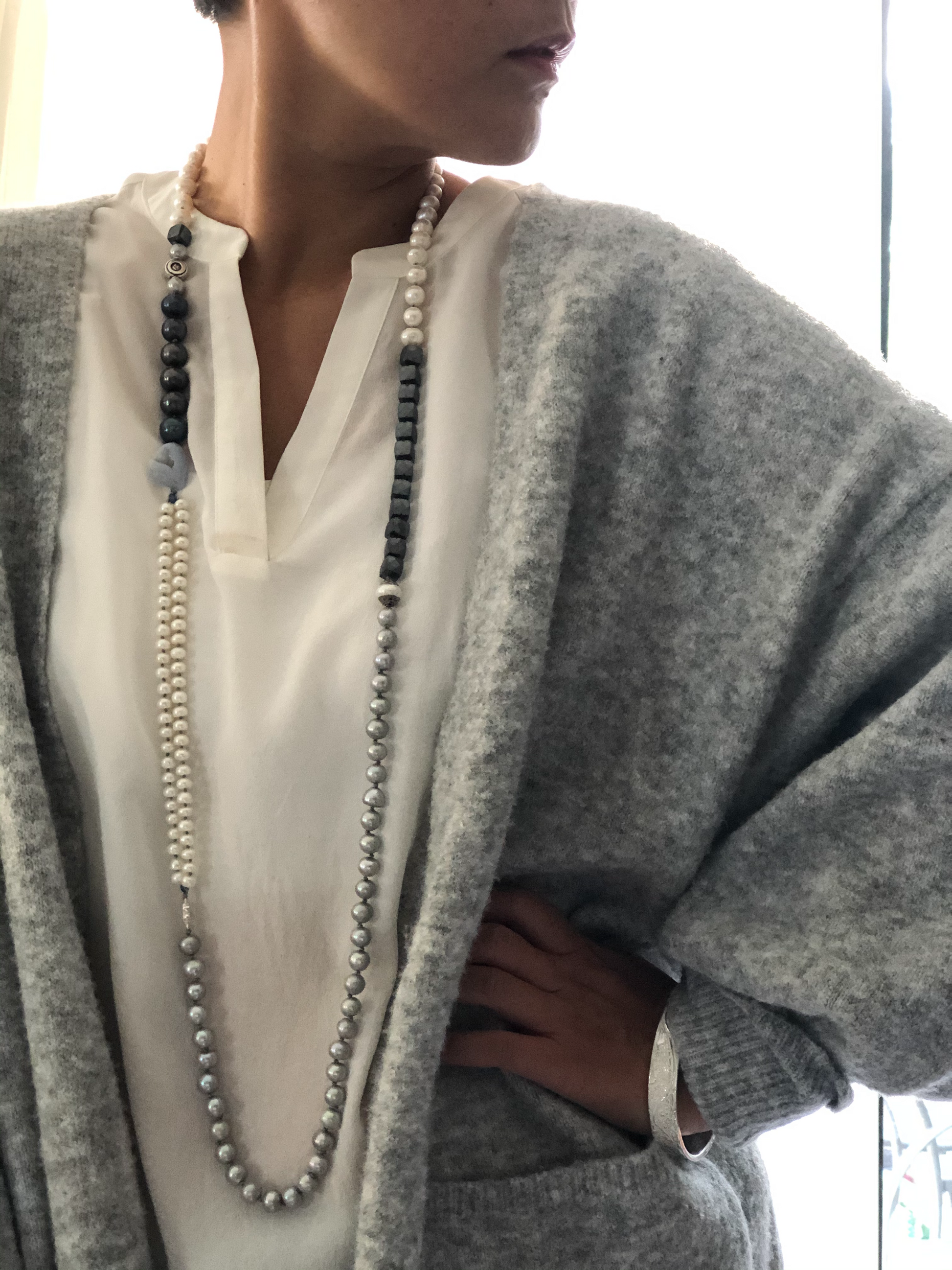 Materials : Fresh water pearl, hematiet, blue lace agate, sterling silver