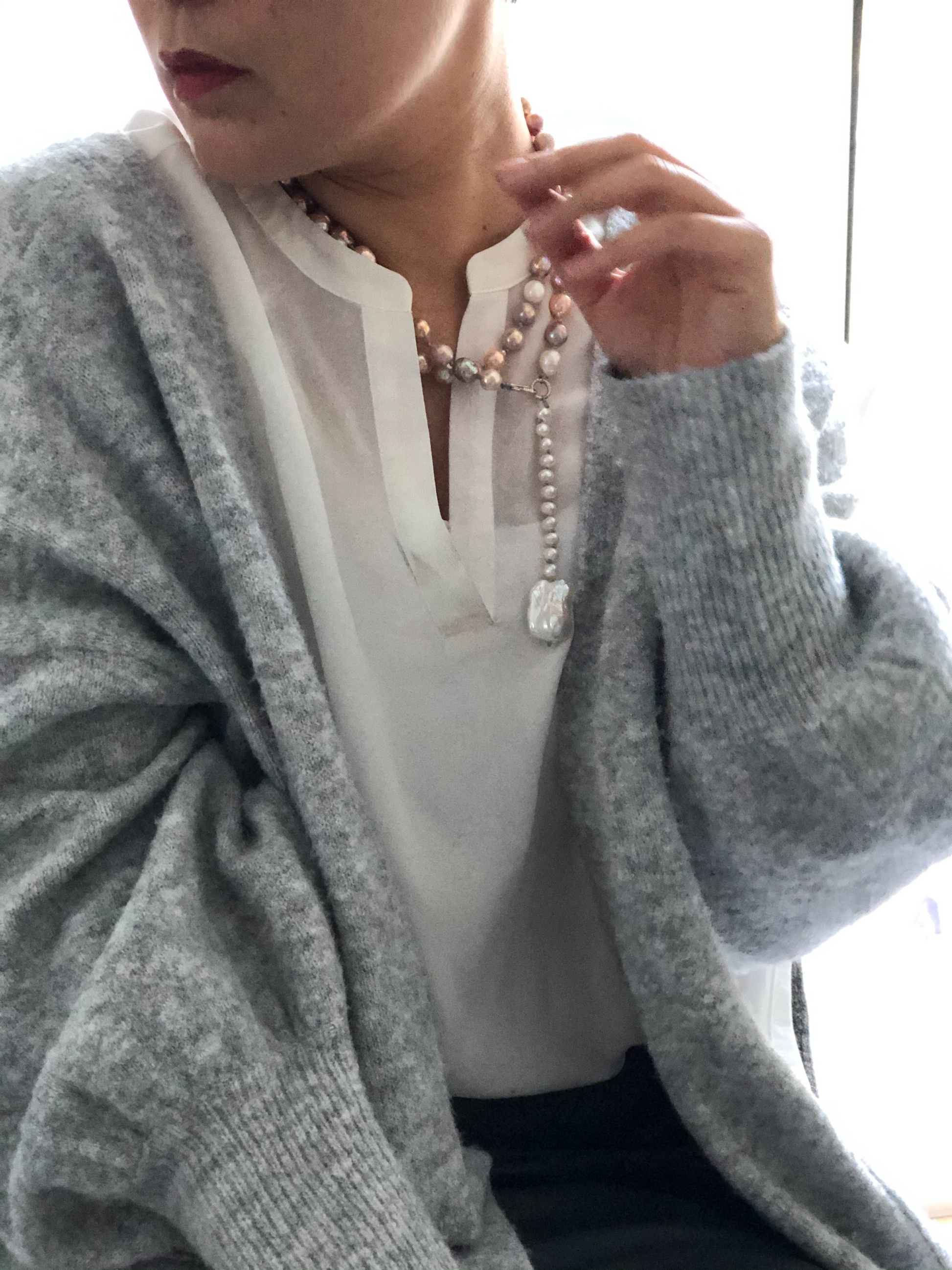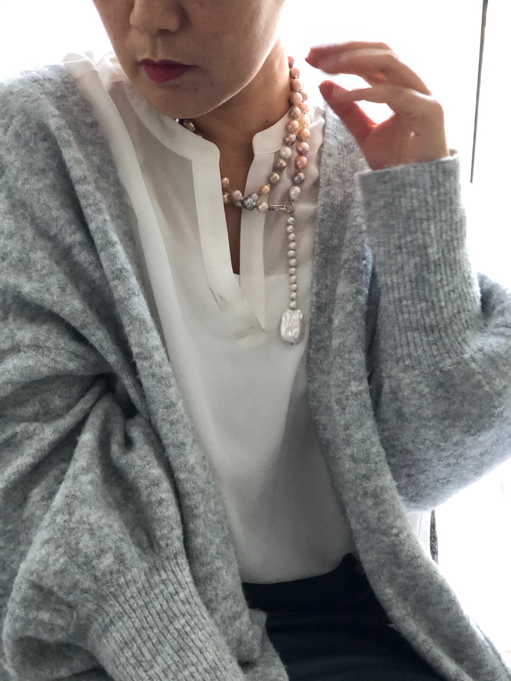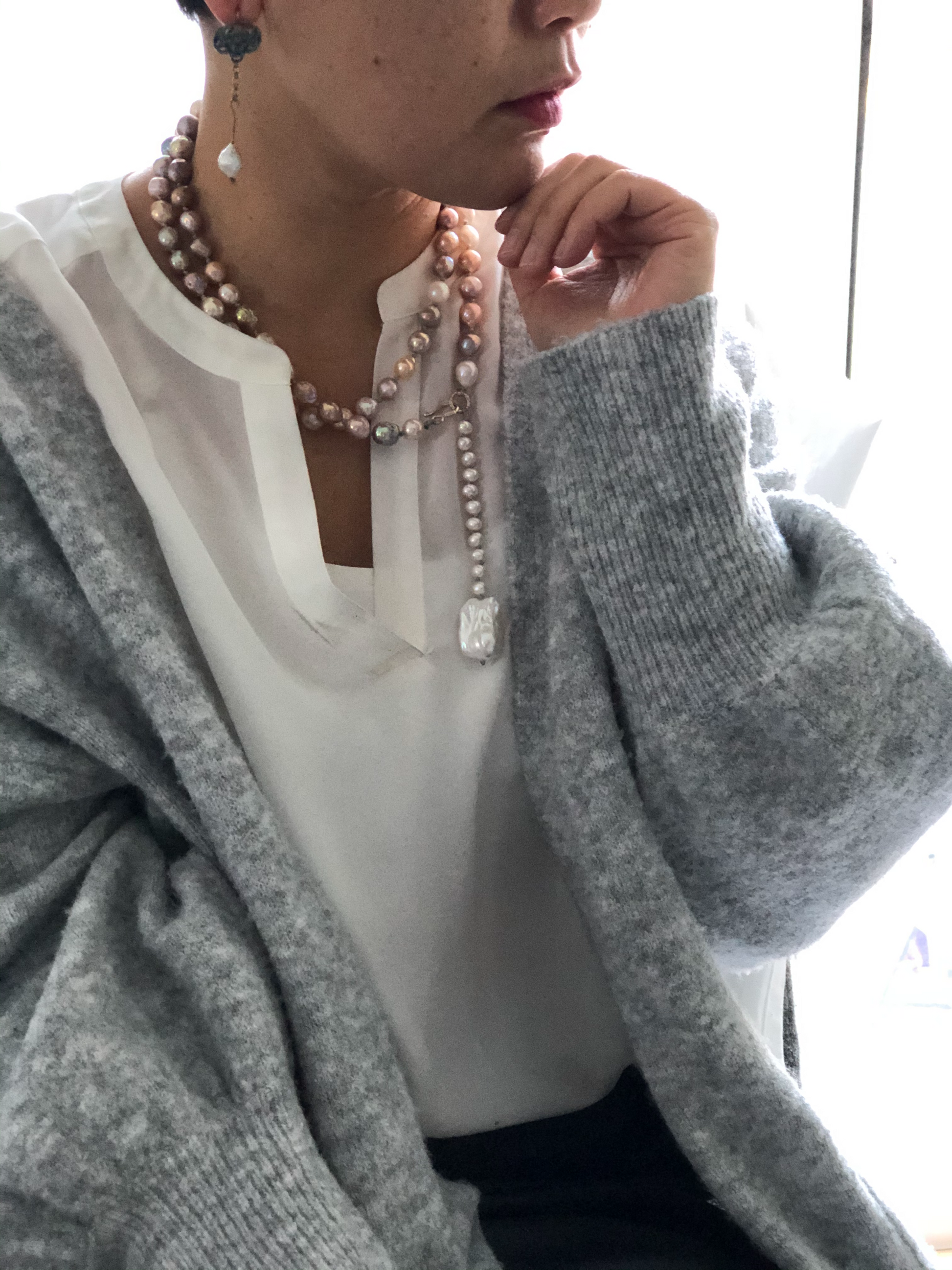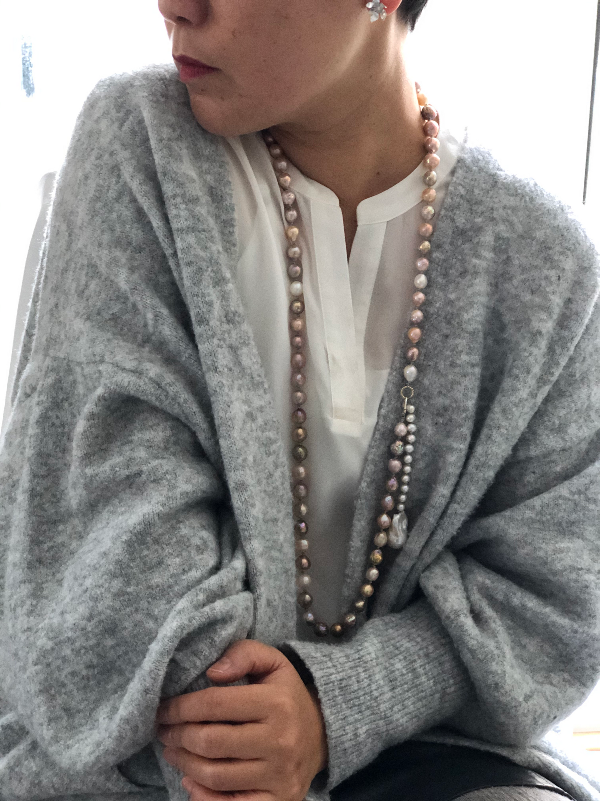 Very rich color , Edson pearl . Hand knotted between each beads, can be worn long or doubled .