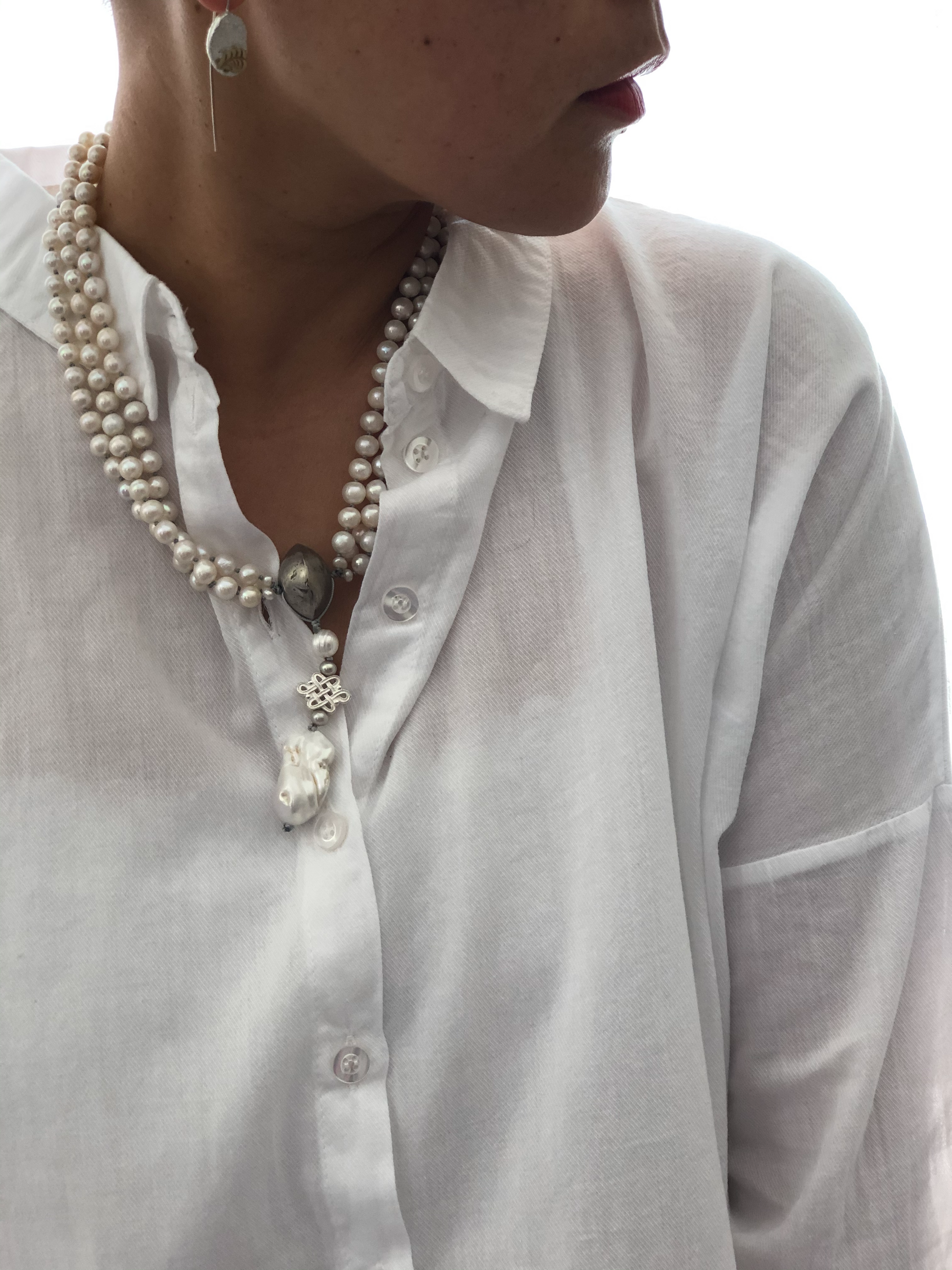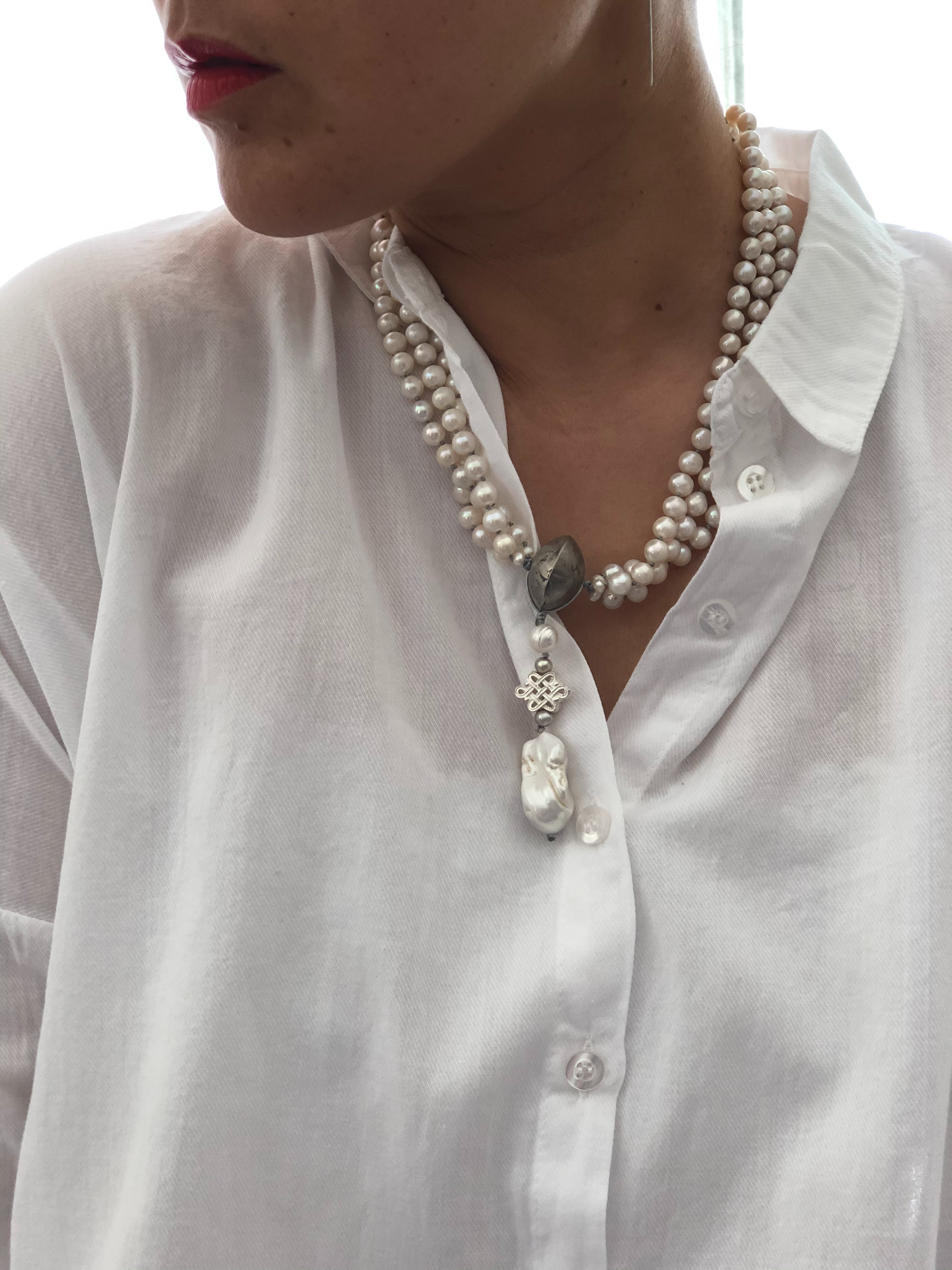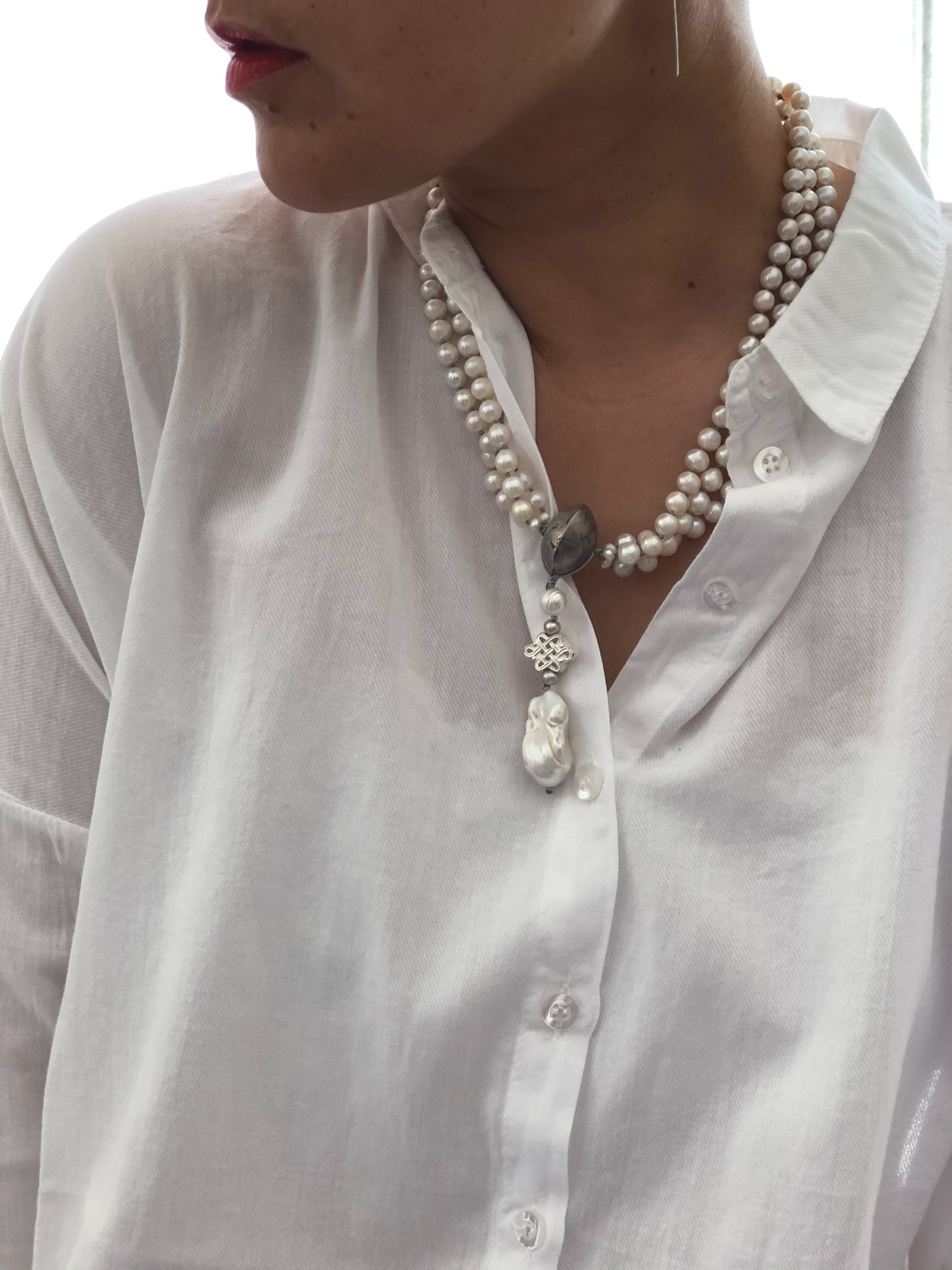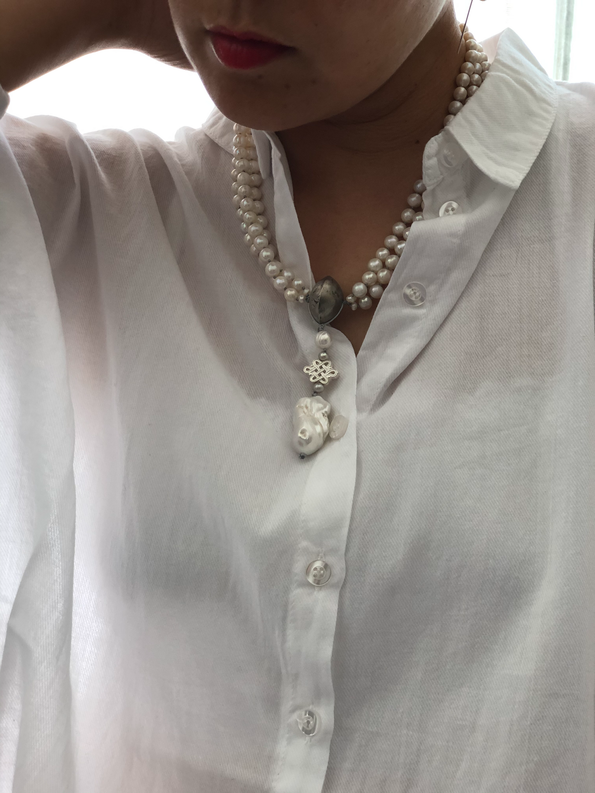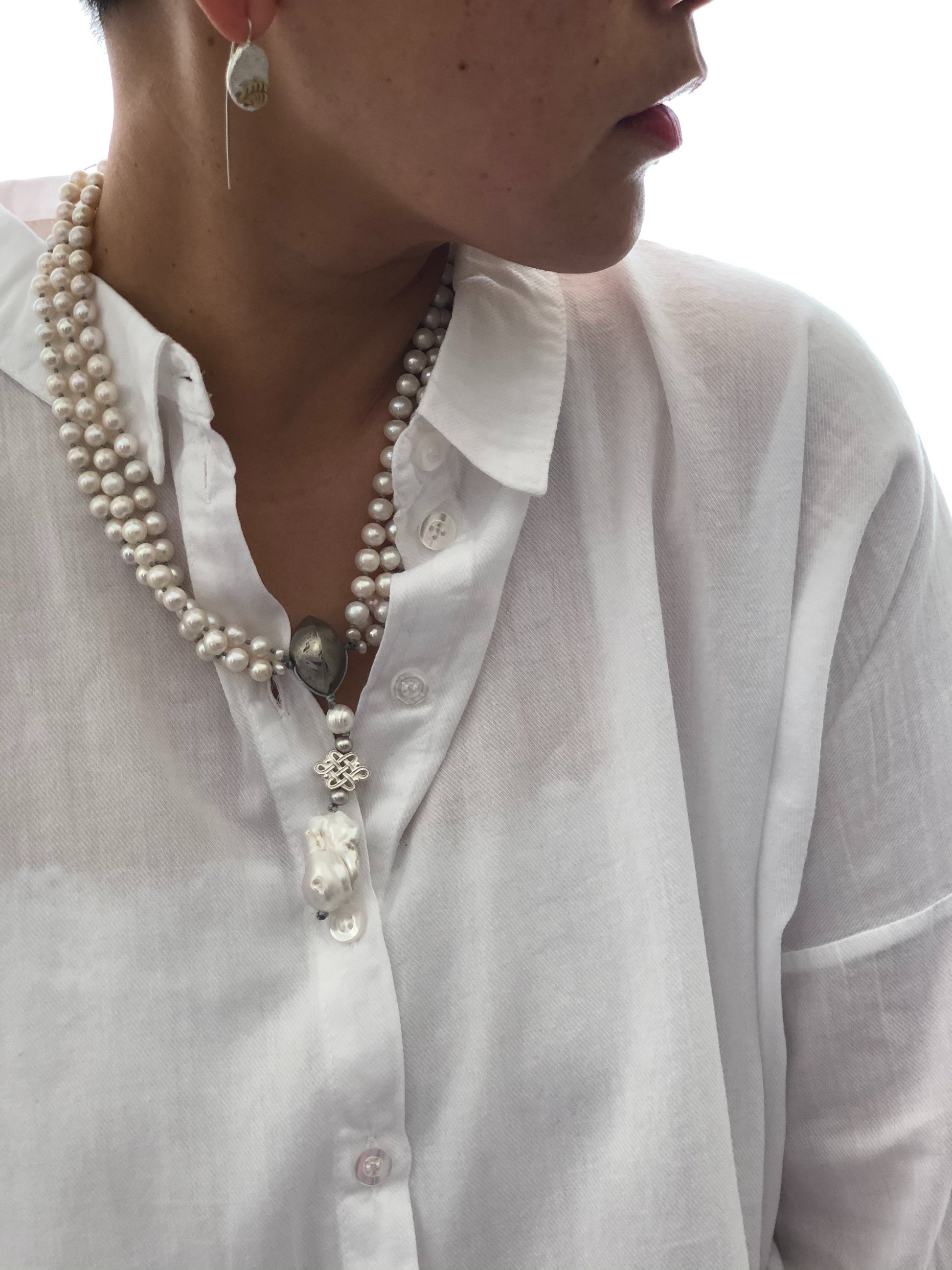Materials : Fresh water pearl ( Ayoka pearls ), sterling silver , fine silver