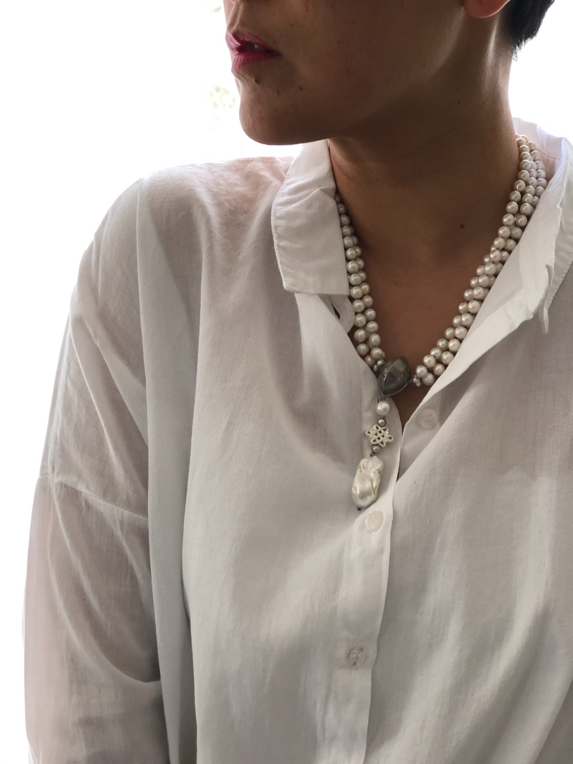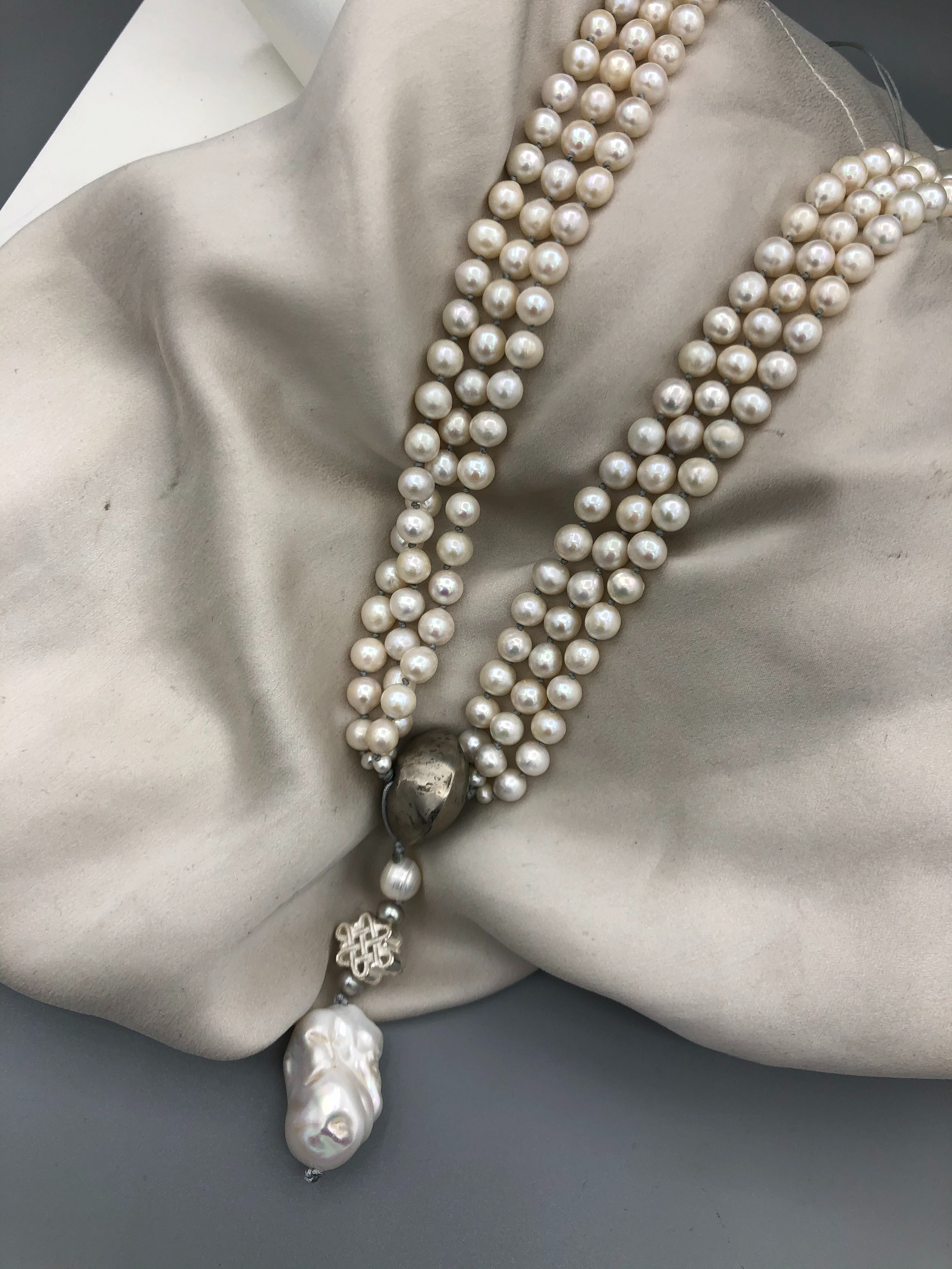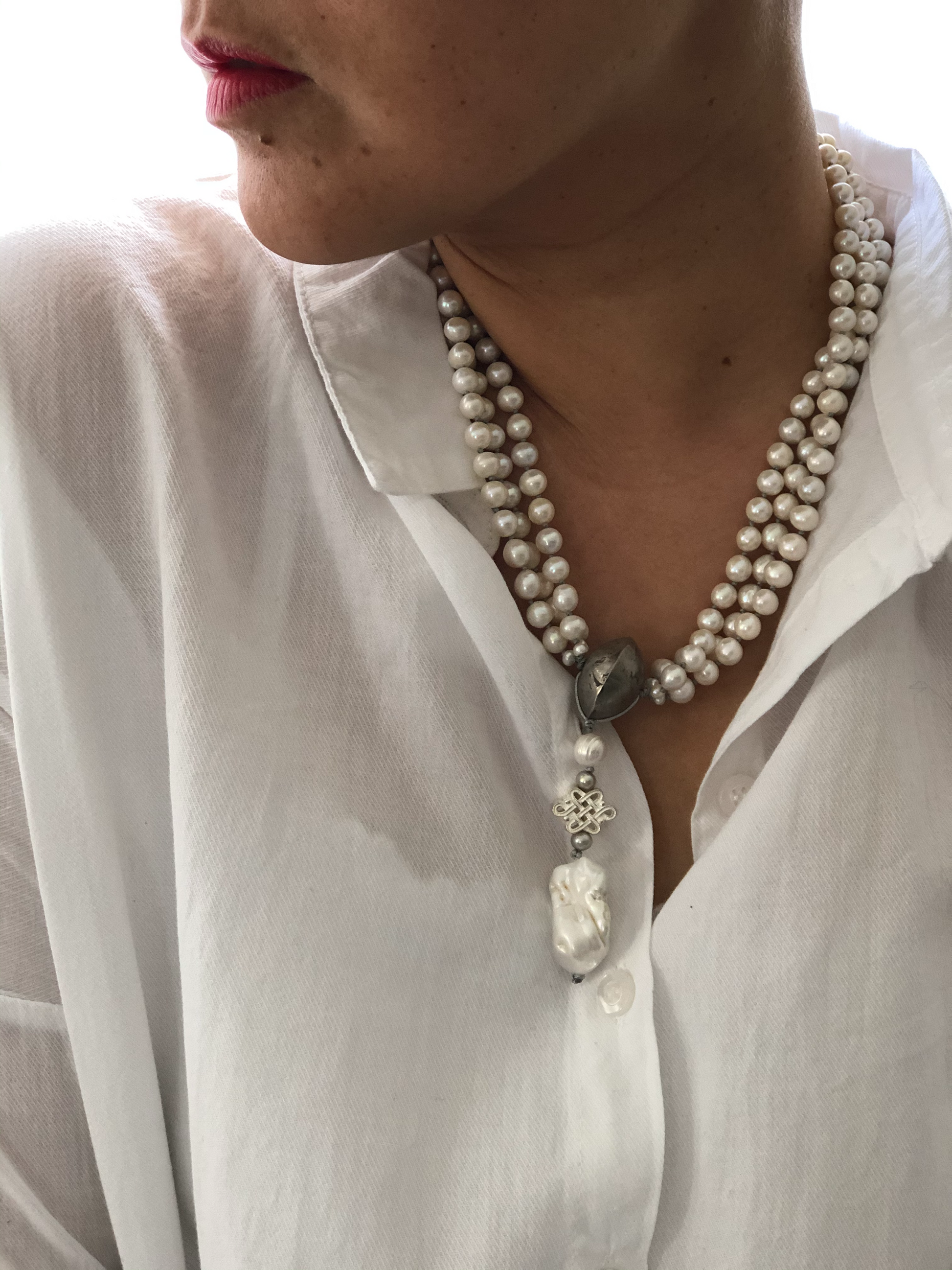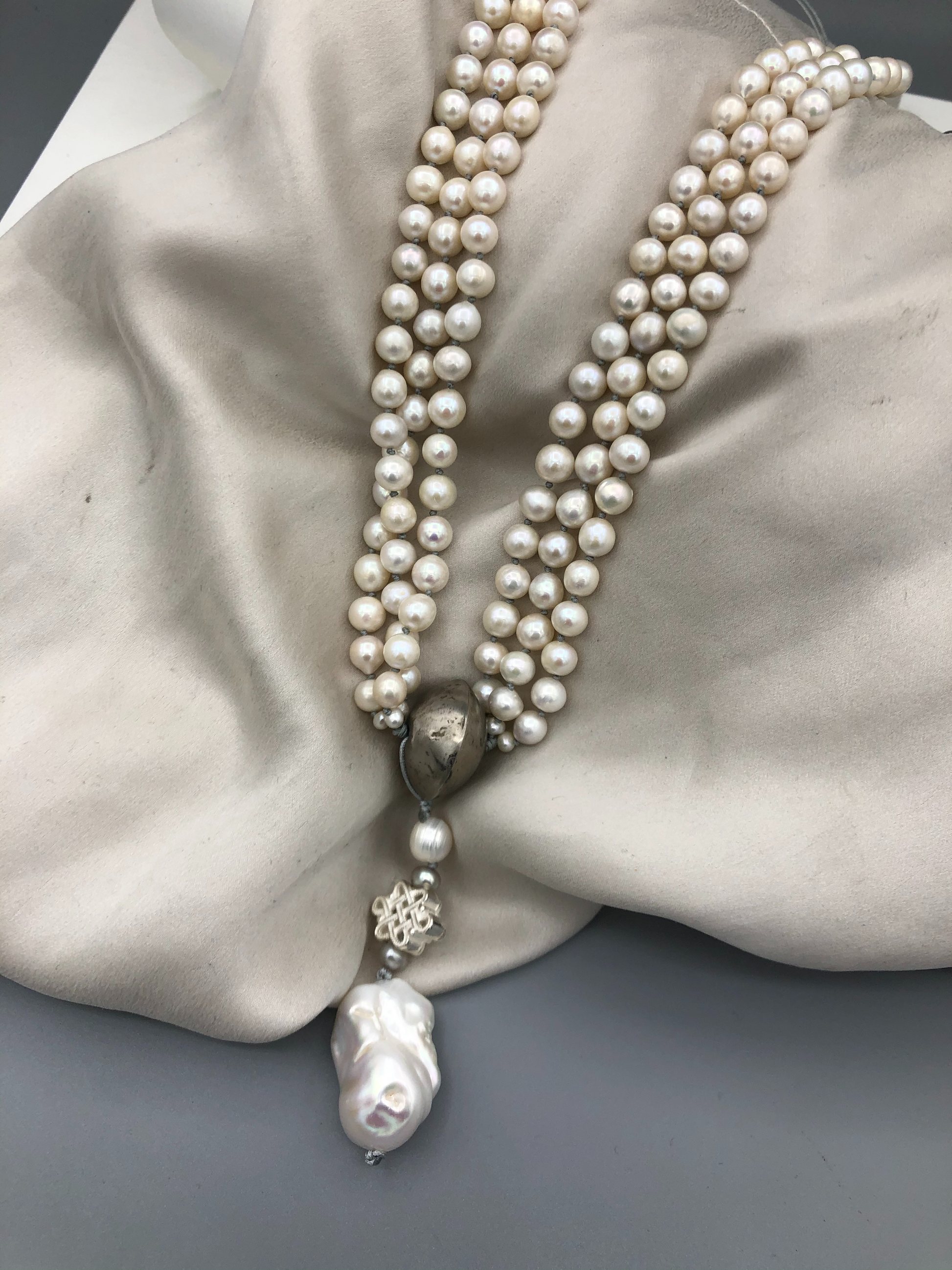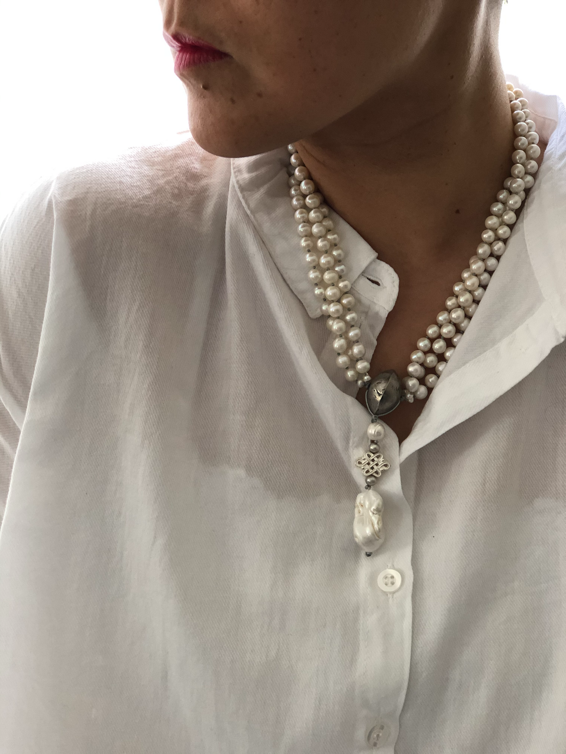 Materials : Fresh water pearl ( Ayoka pearls ), sterling silver , fine silver