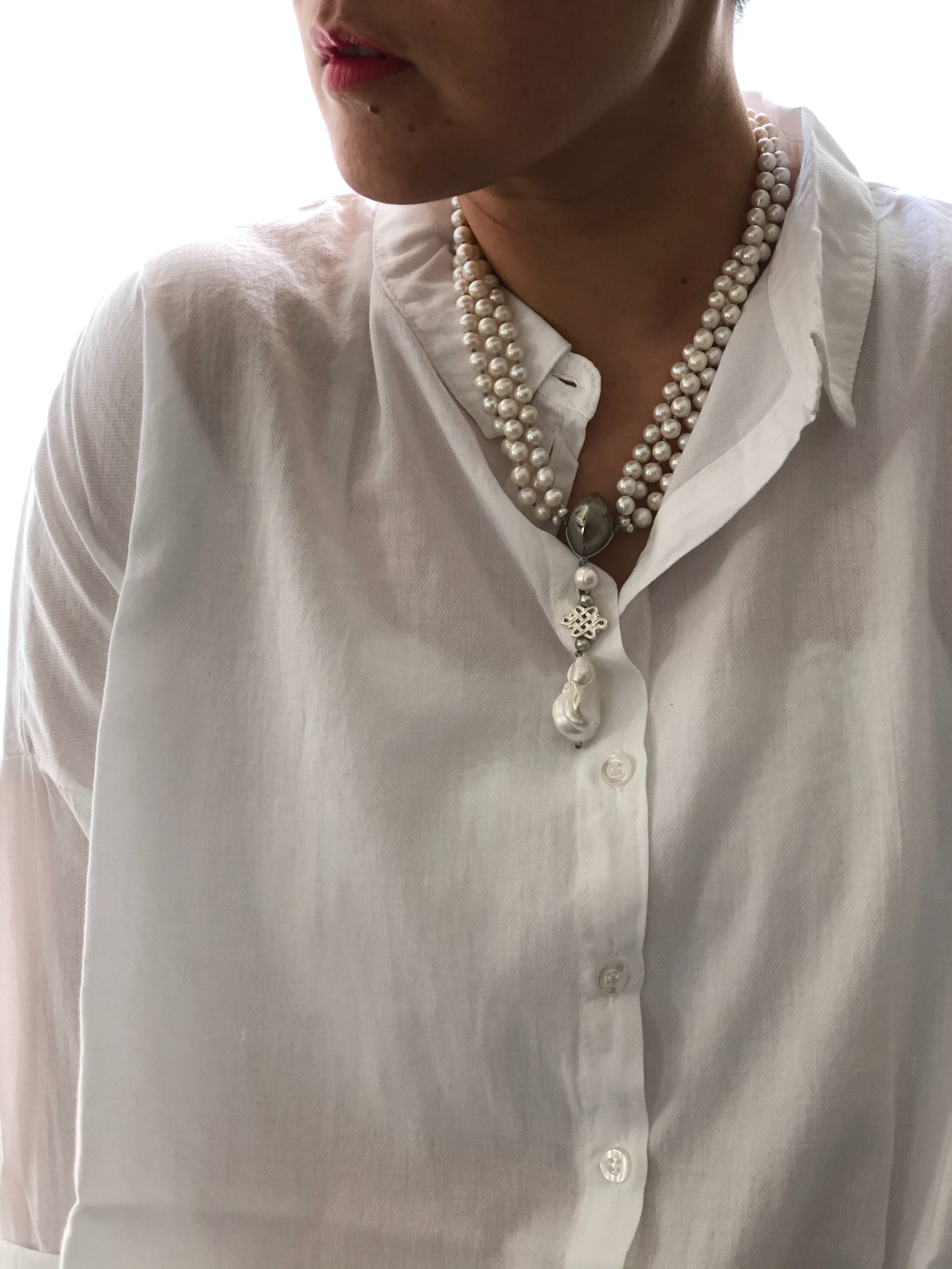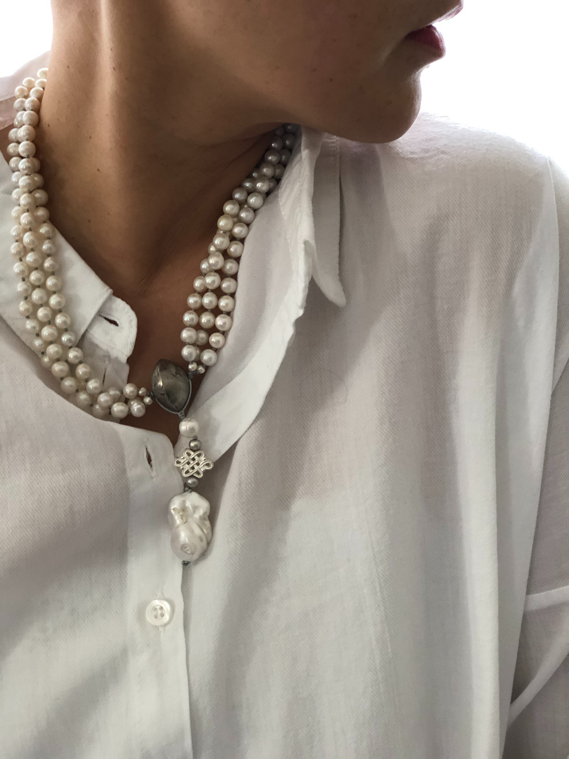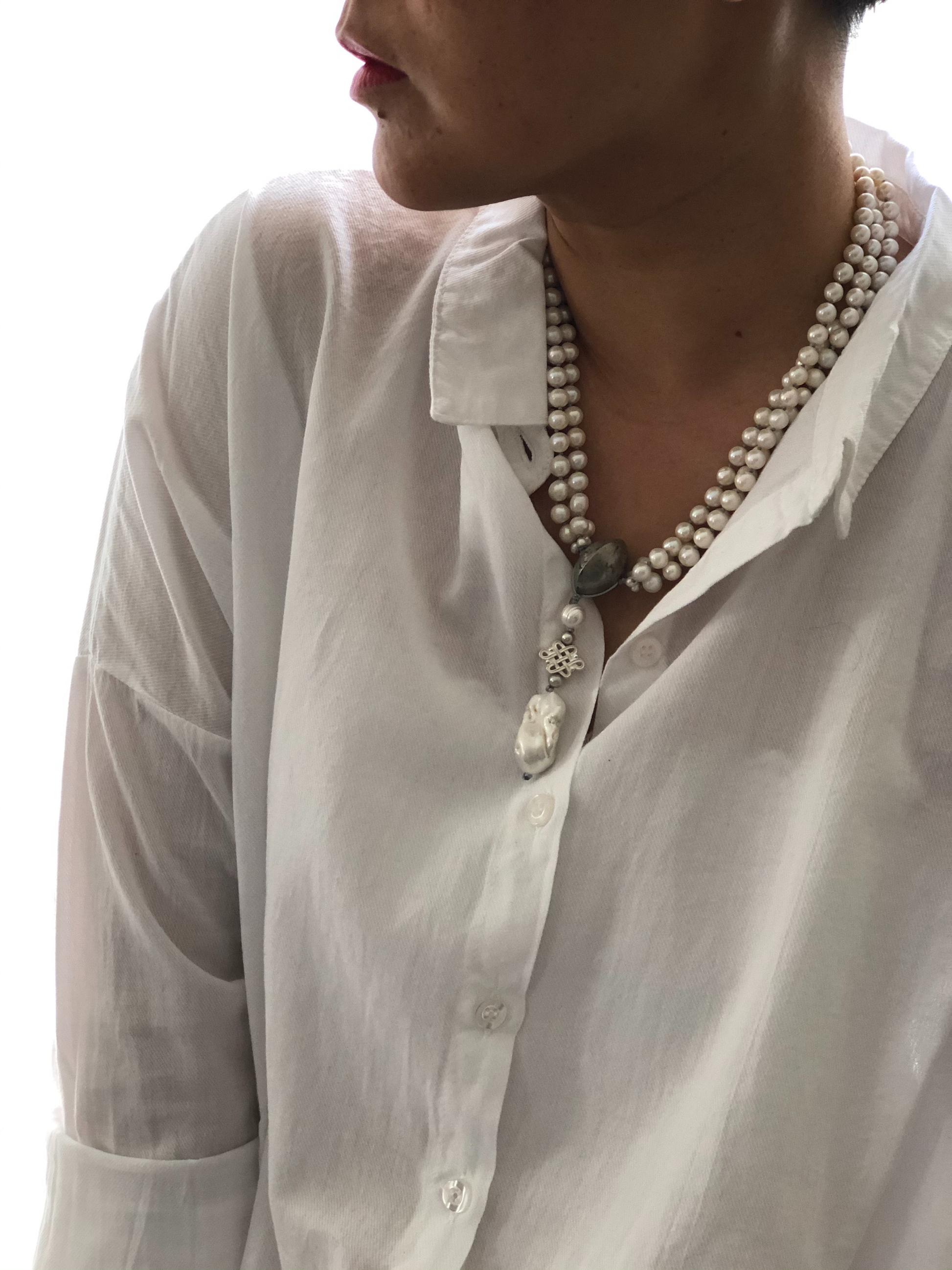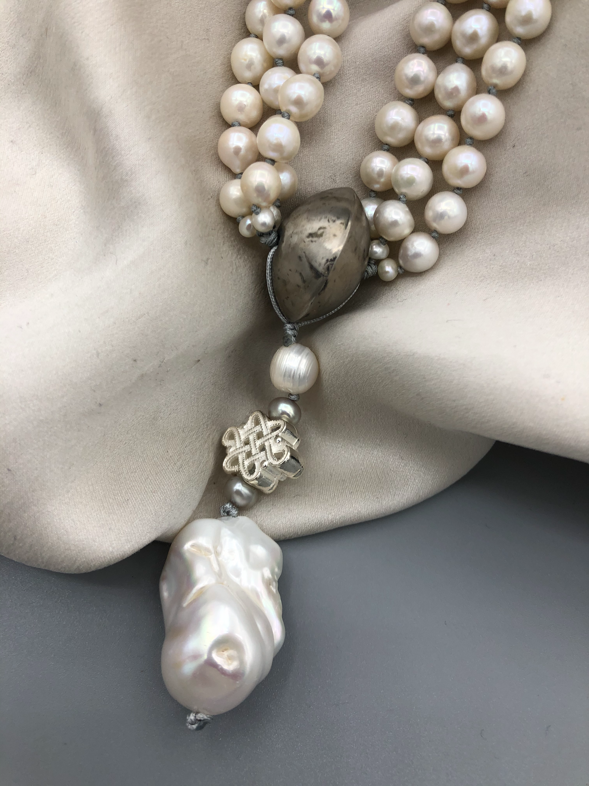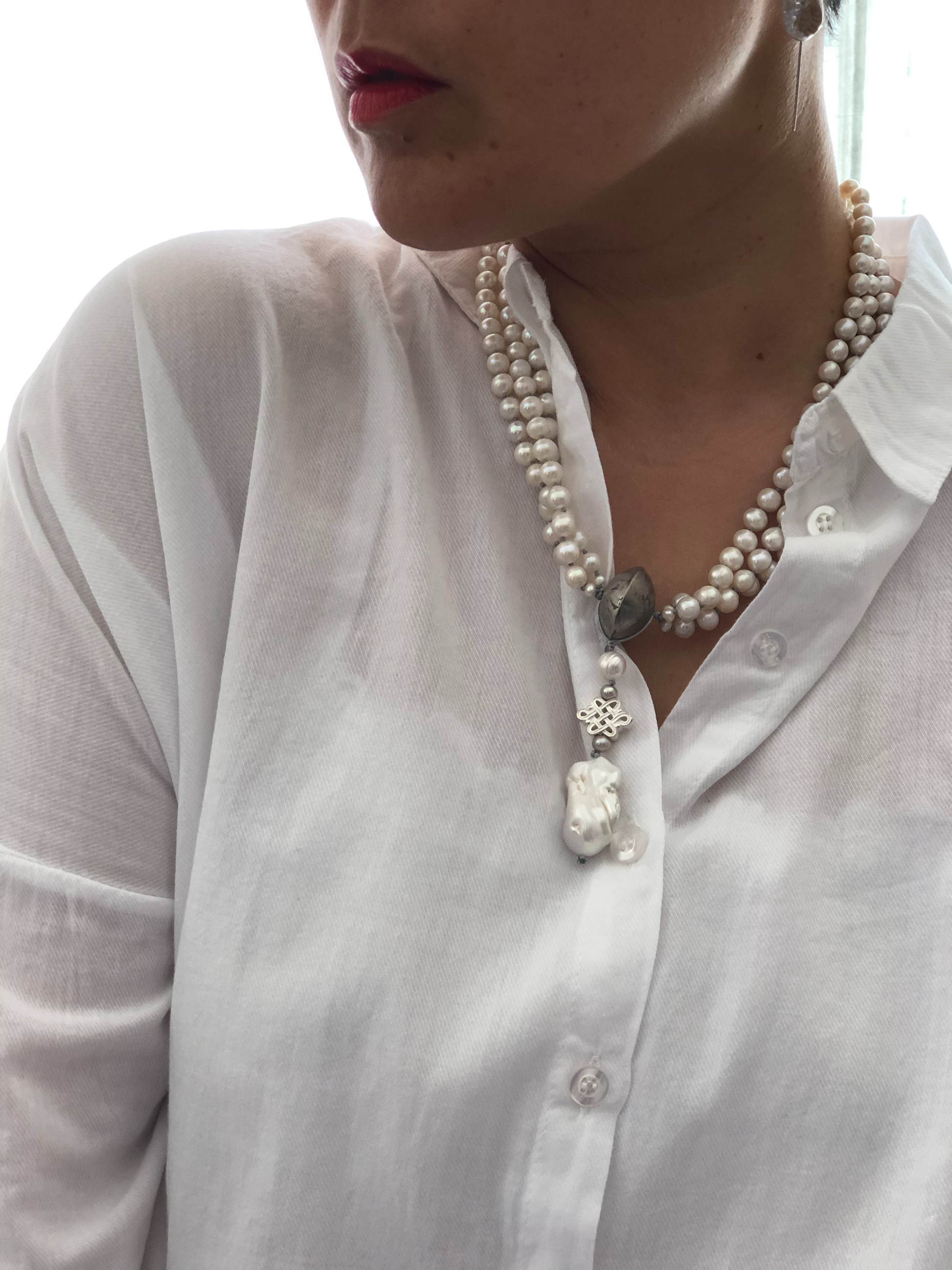 Materials : Fresh water pearl ( Ayoka pearls ), sterling silver , fine silver