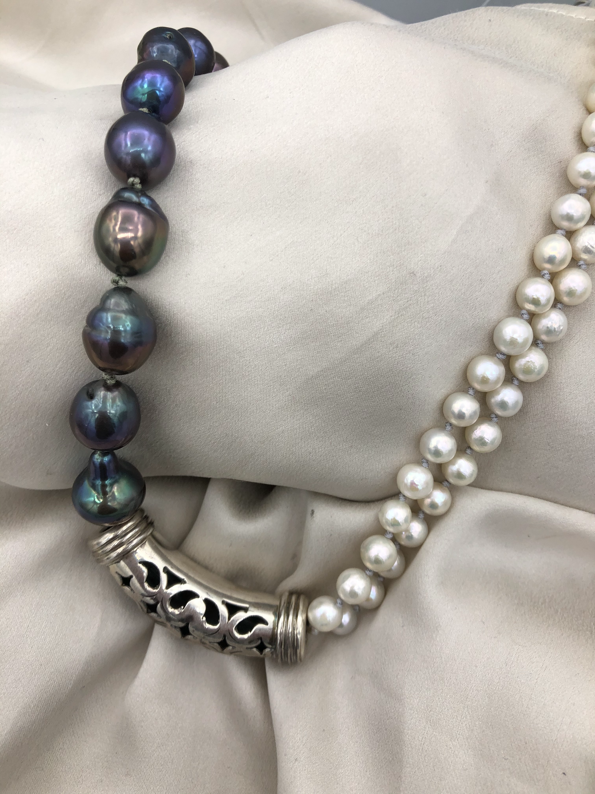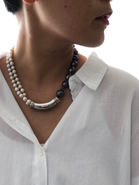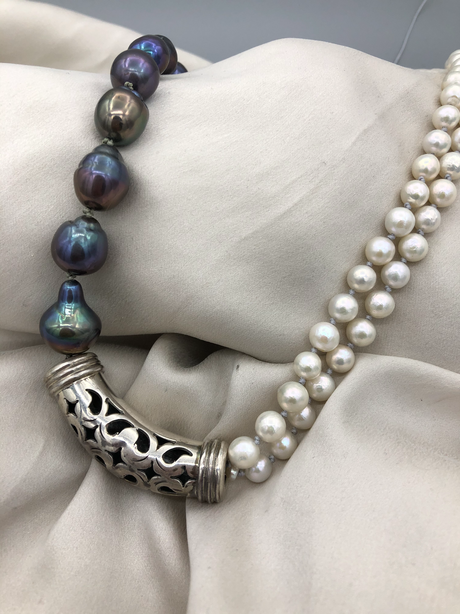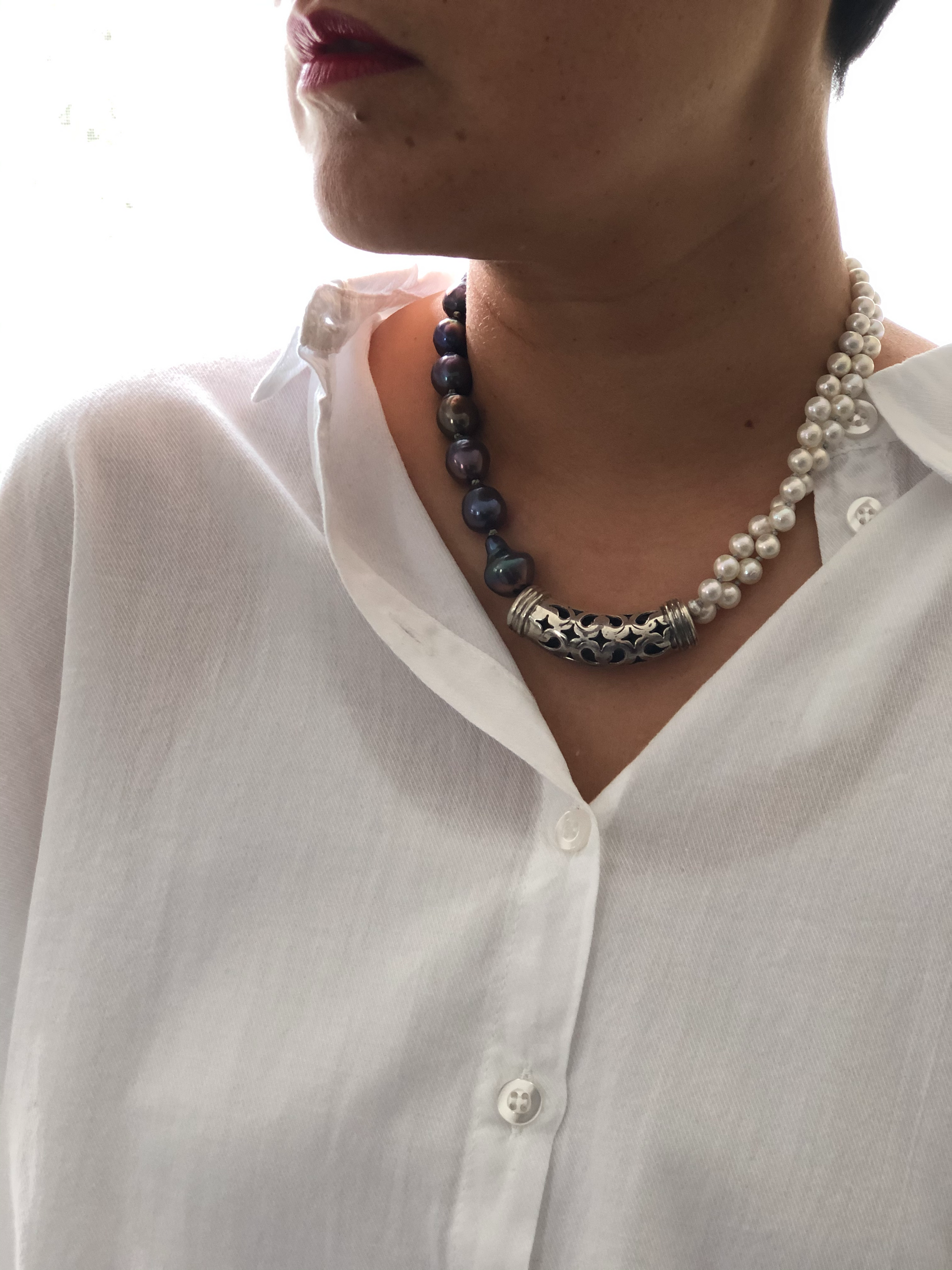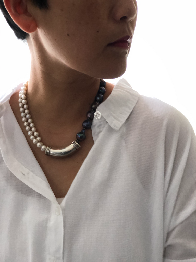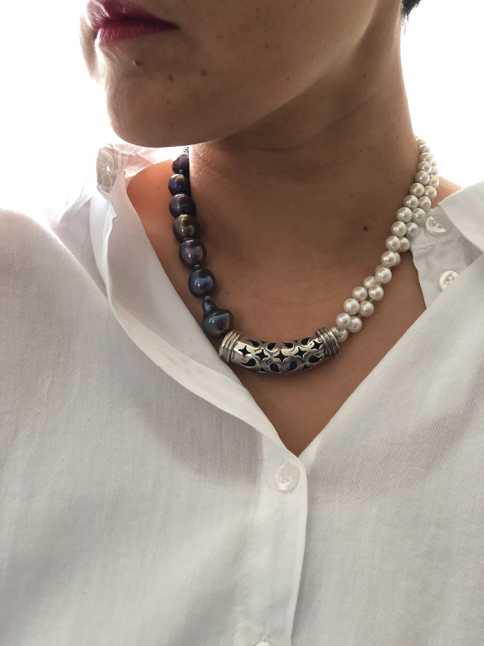 Materials : Sterling silver, fresh water pearl in two colors .