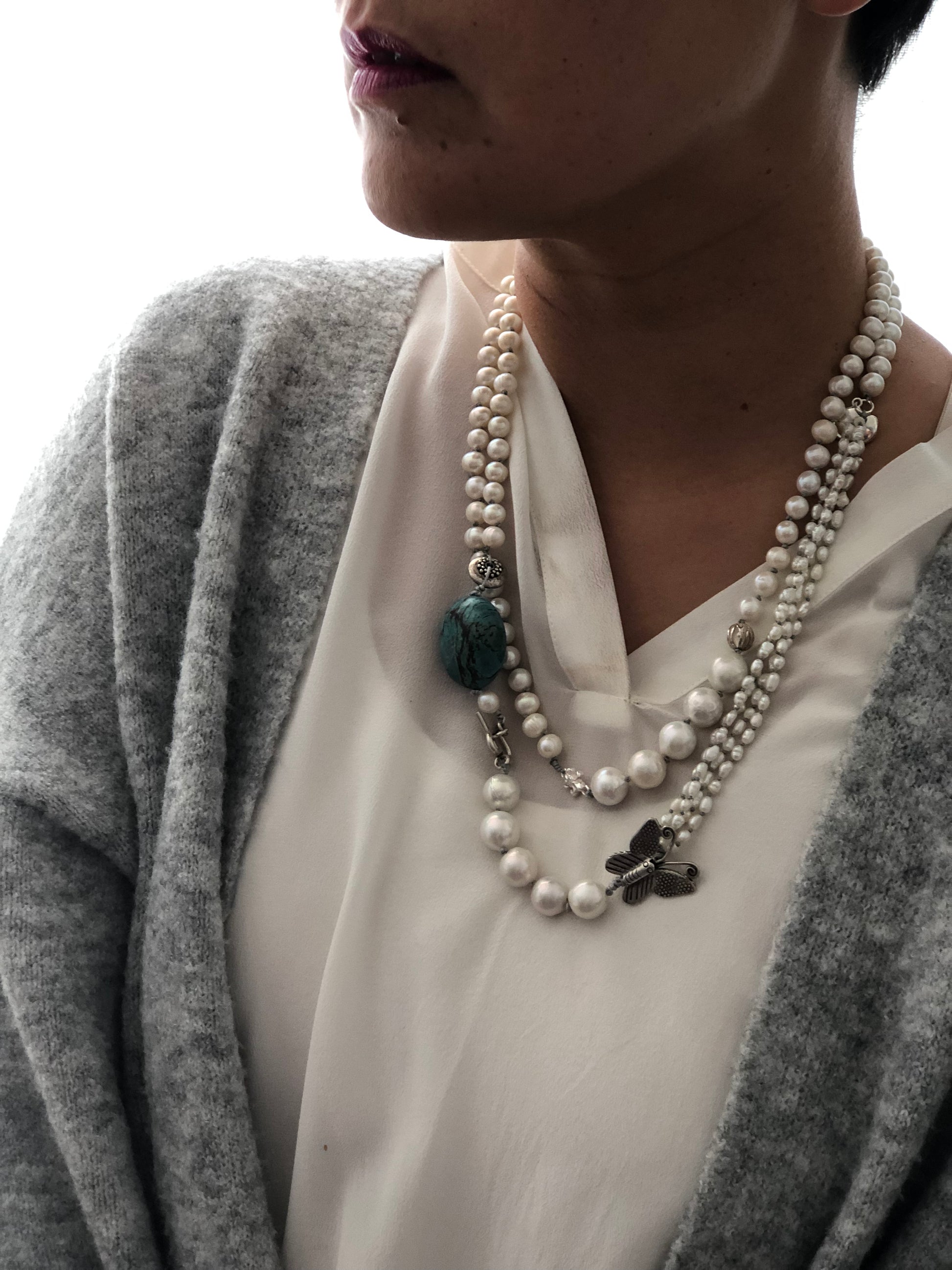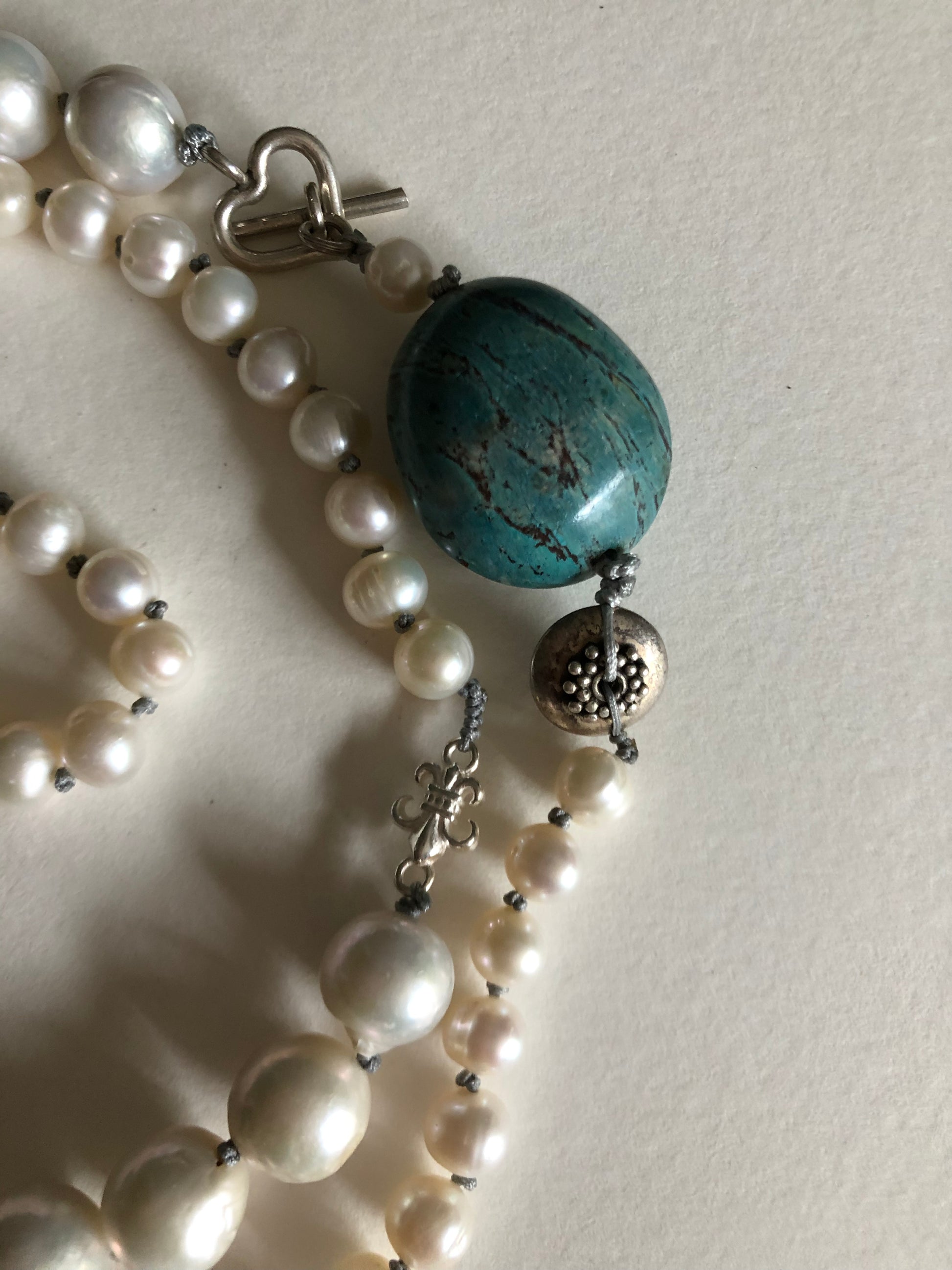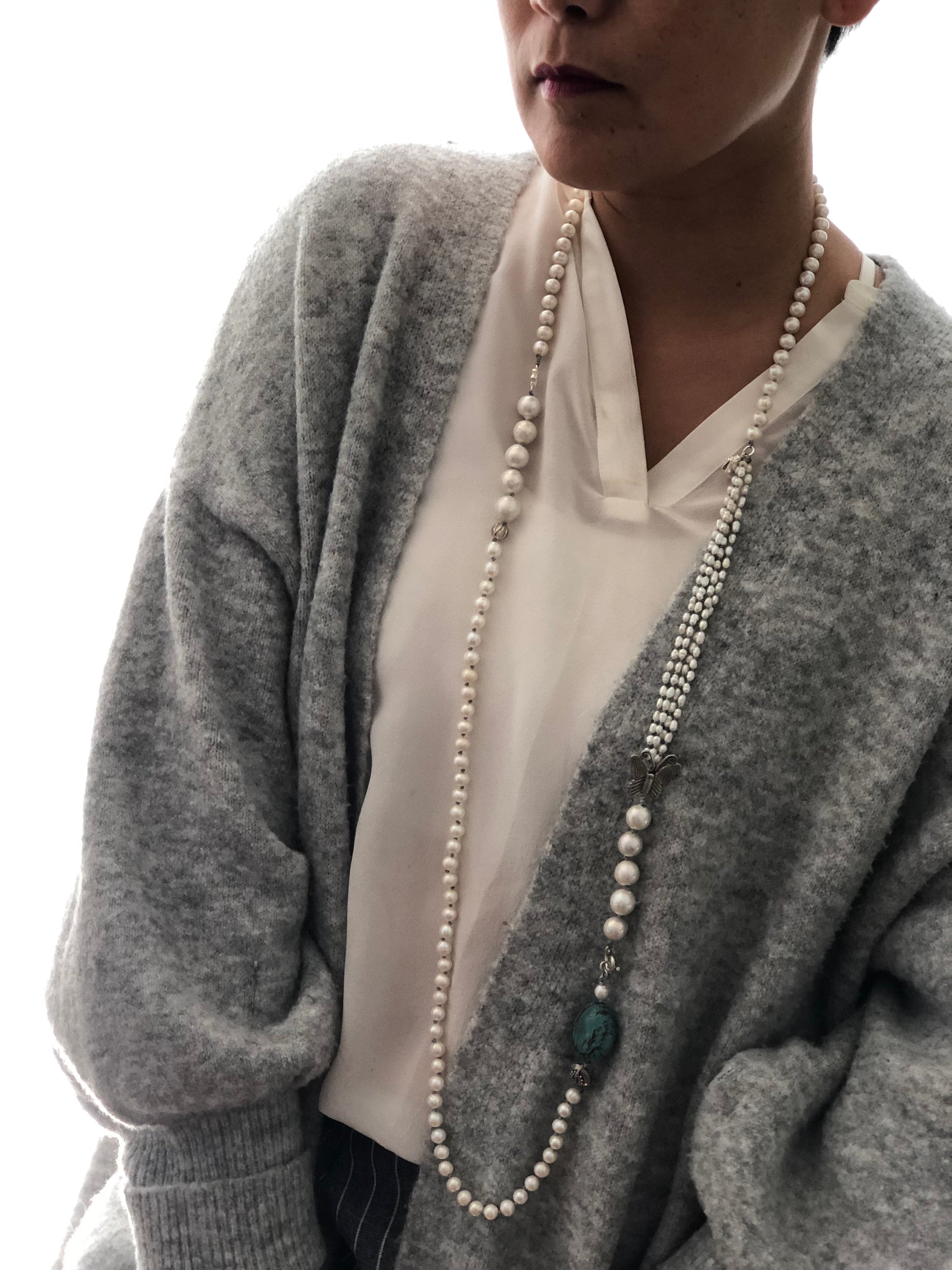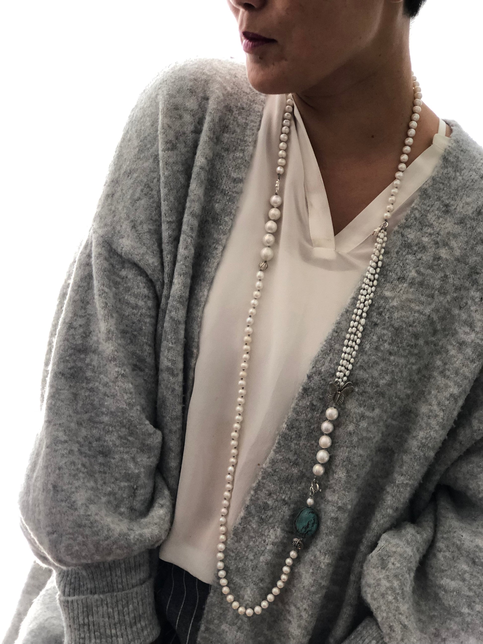 Materials : Fresh ayoka pearl, turquoise, fine silver