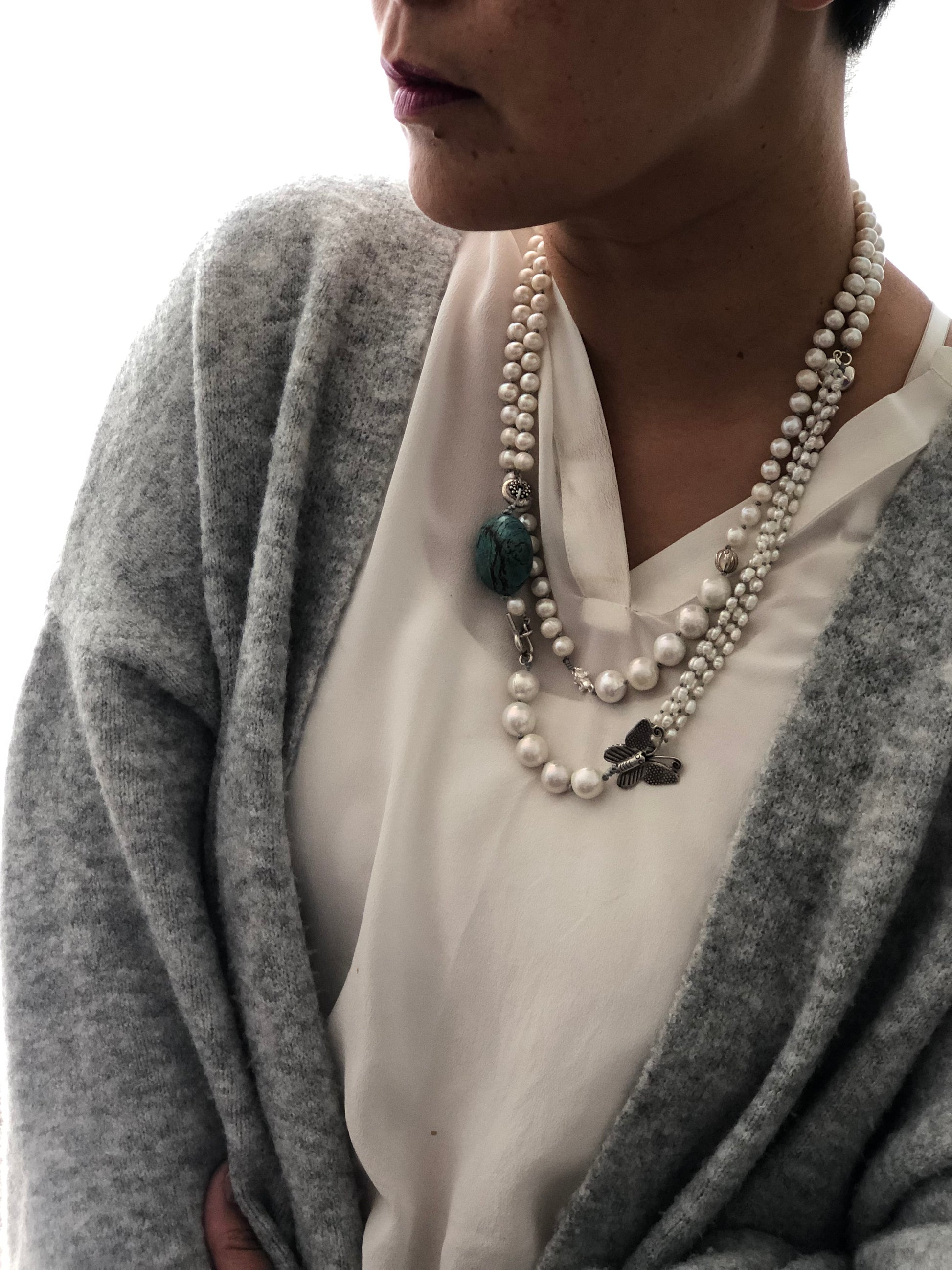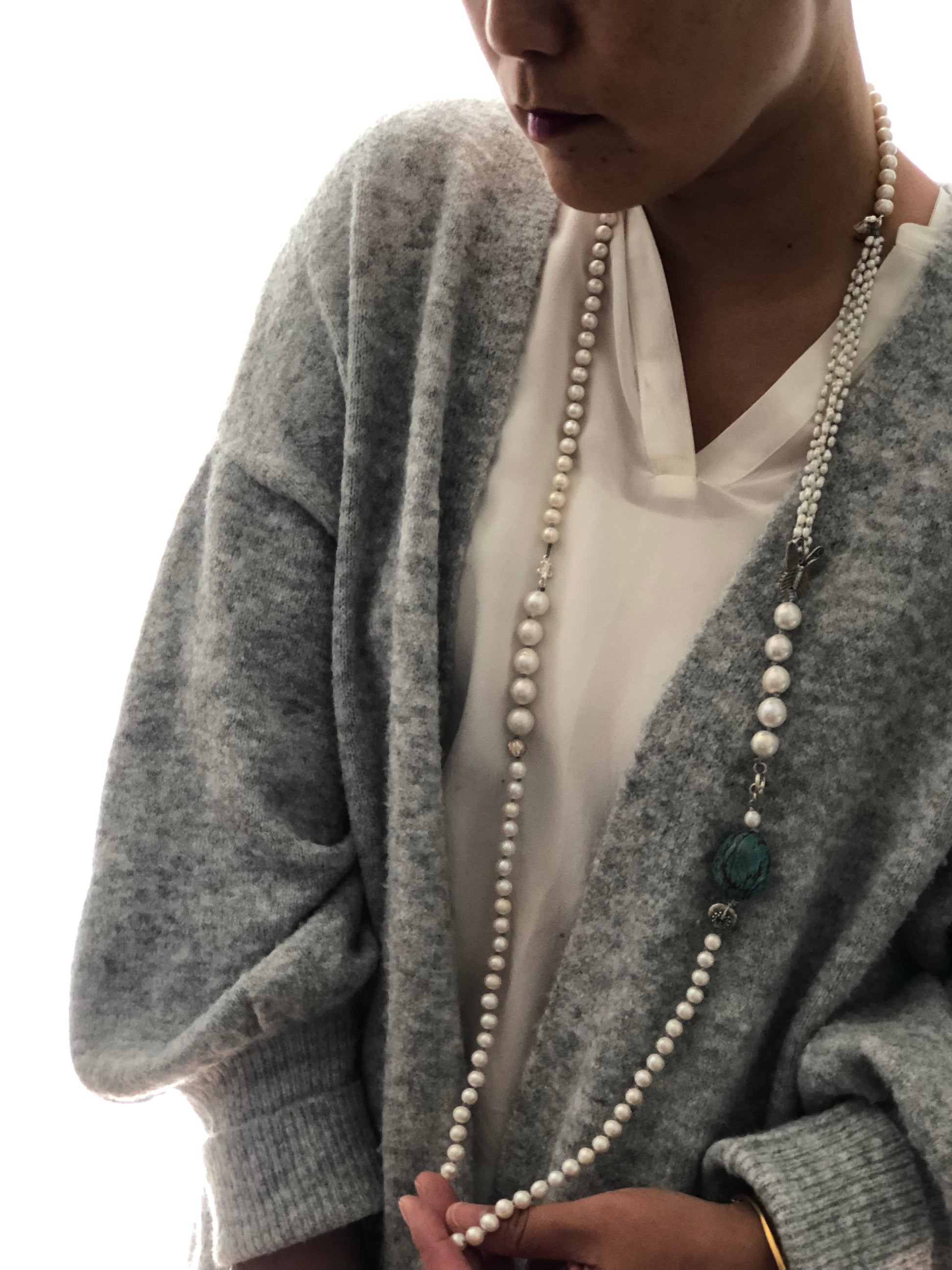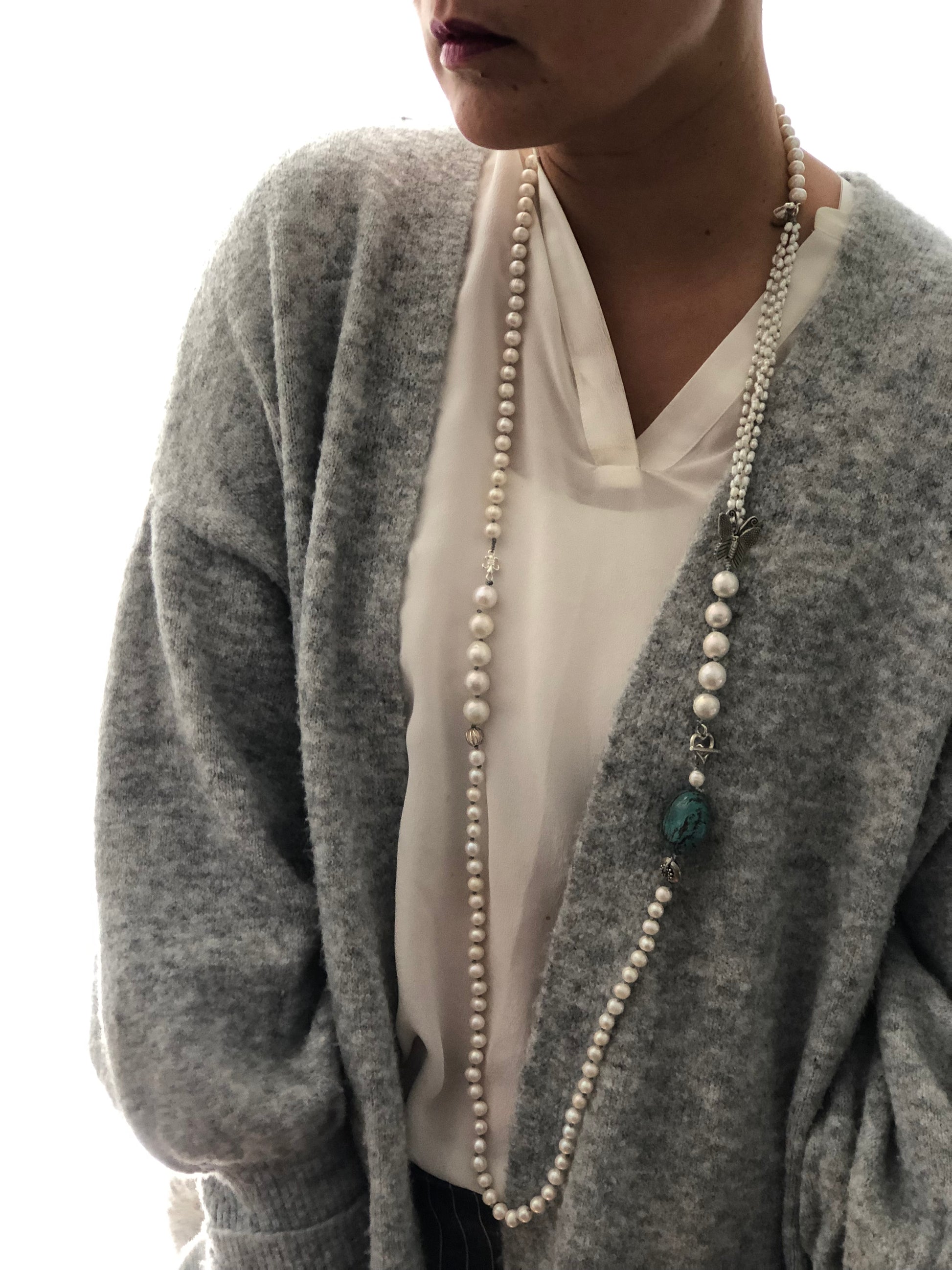 Materials : Fresh ayoka pearl, turquoise, fine silver