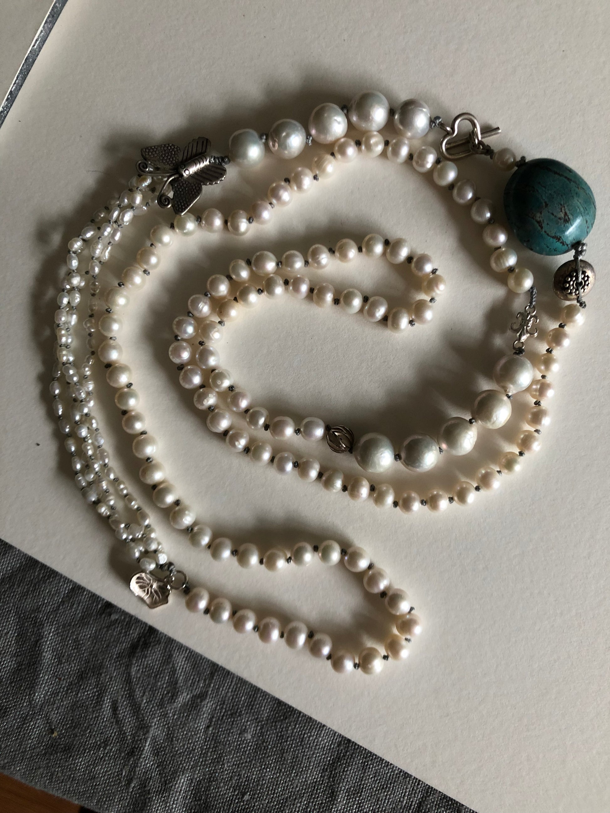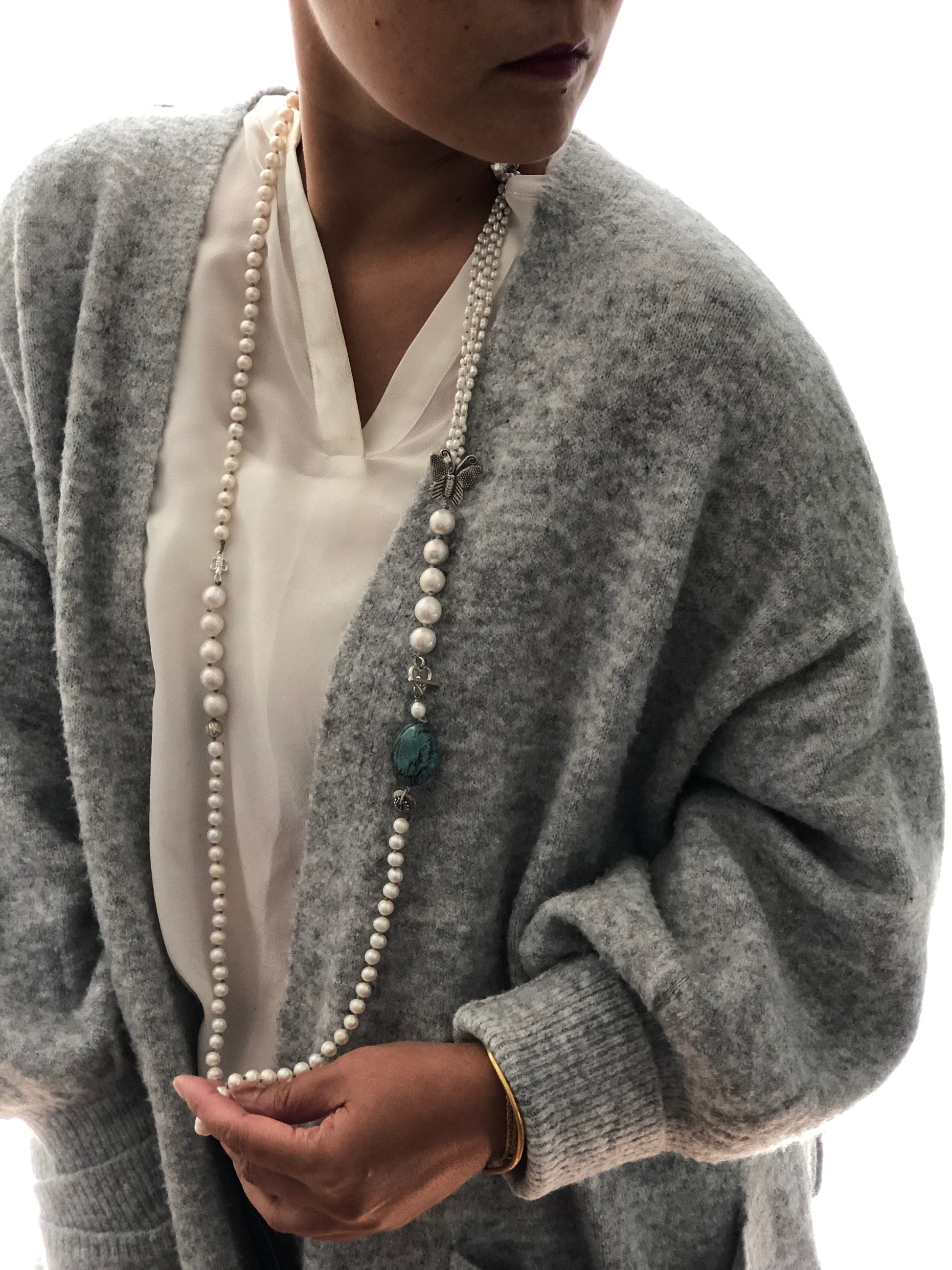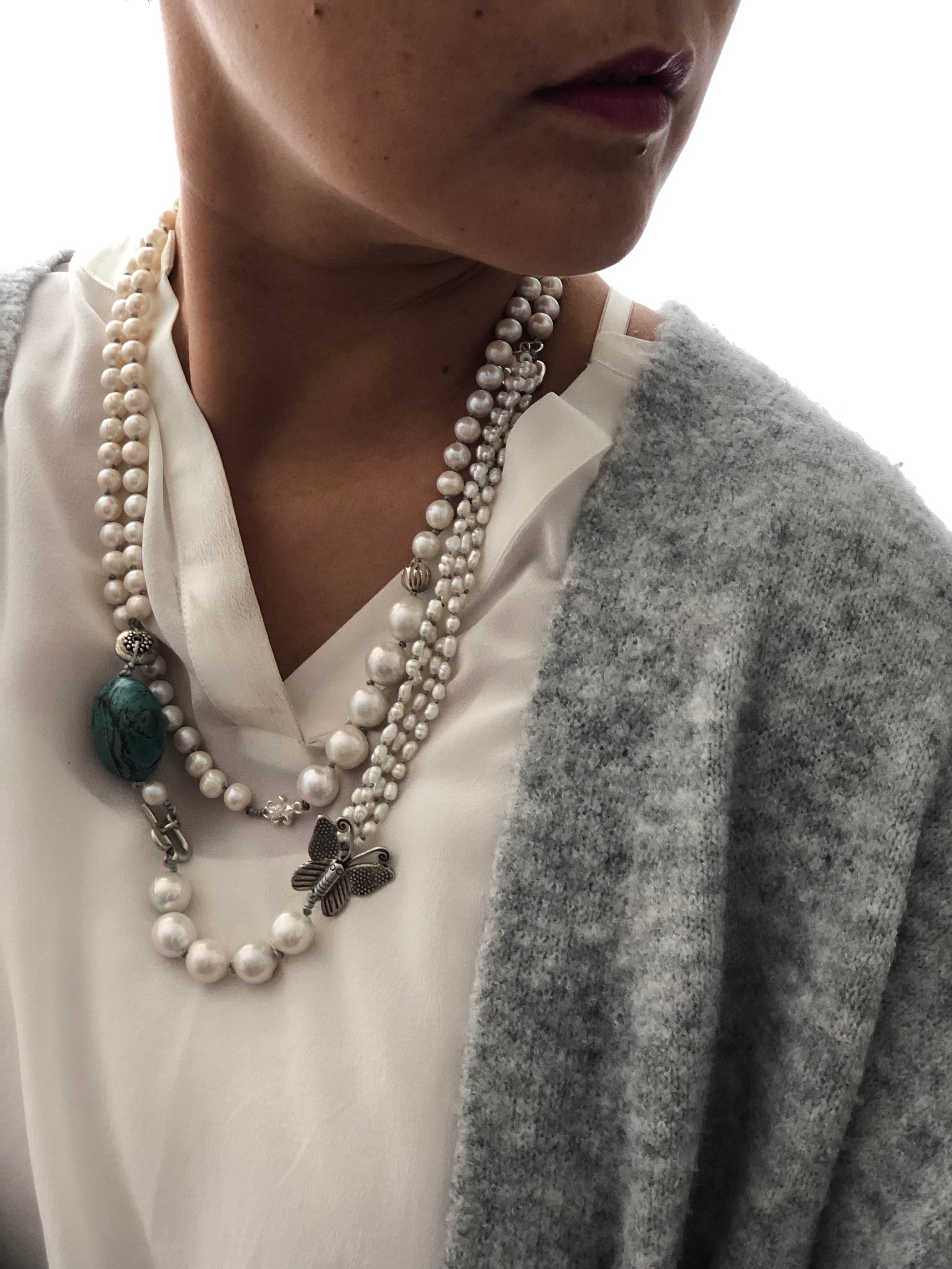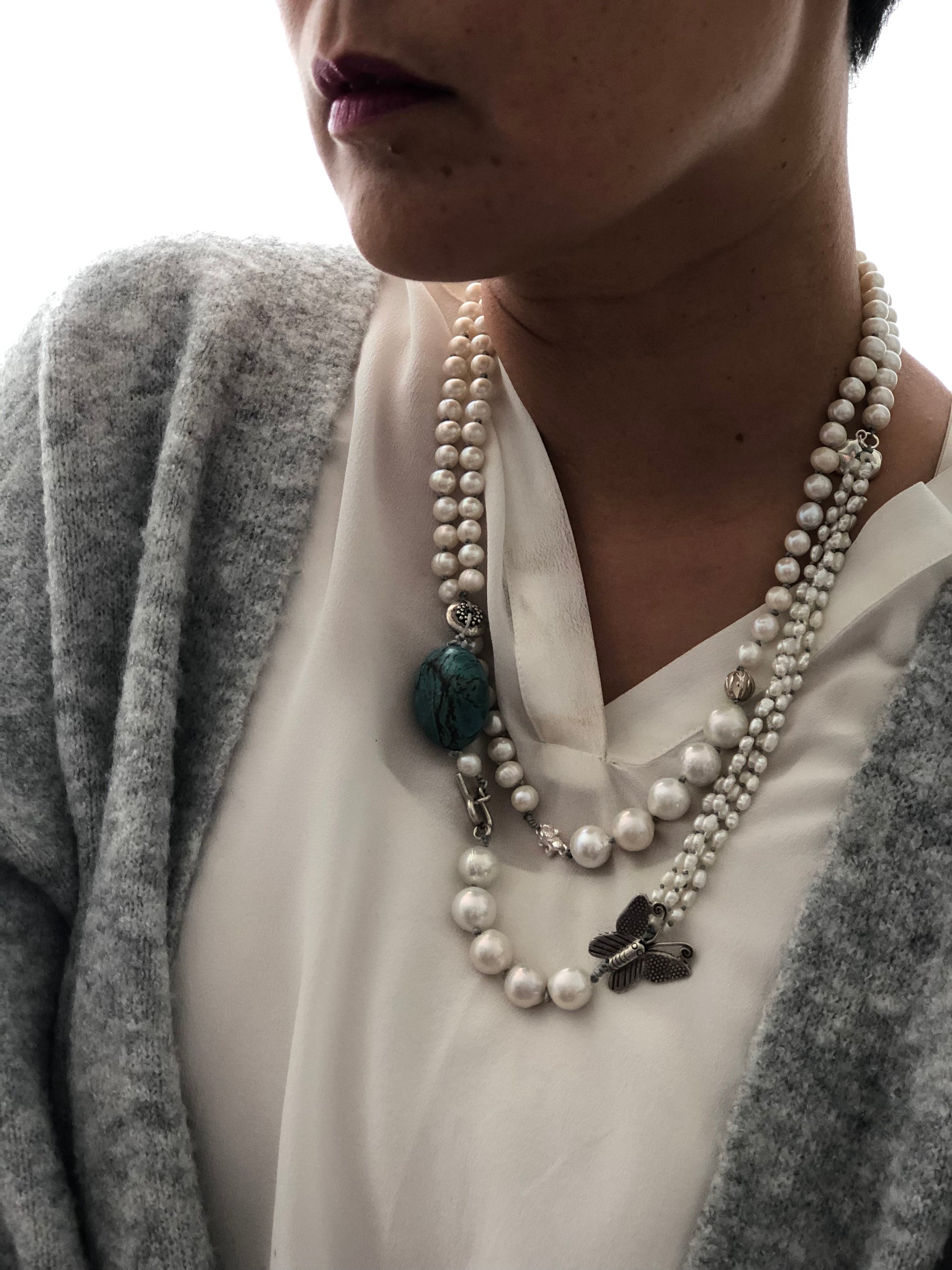 Materials : Fresh ayoka pearl, turquoise, fine silver