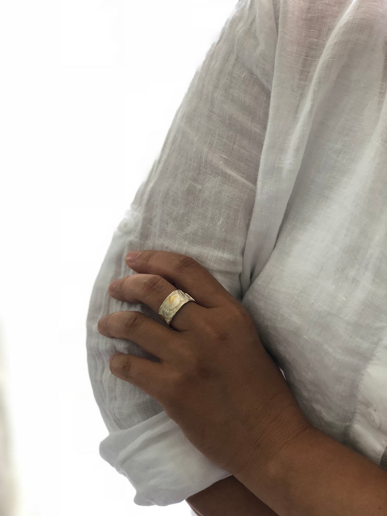 Using traditional Tibetan silver skill, free hand patterned and hammered on fine sliver. Only hand tools are used .
