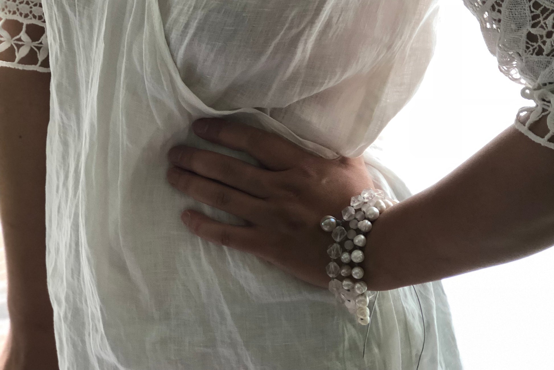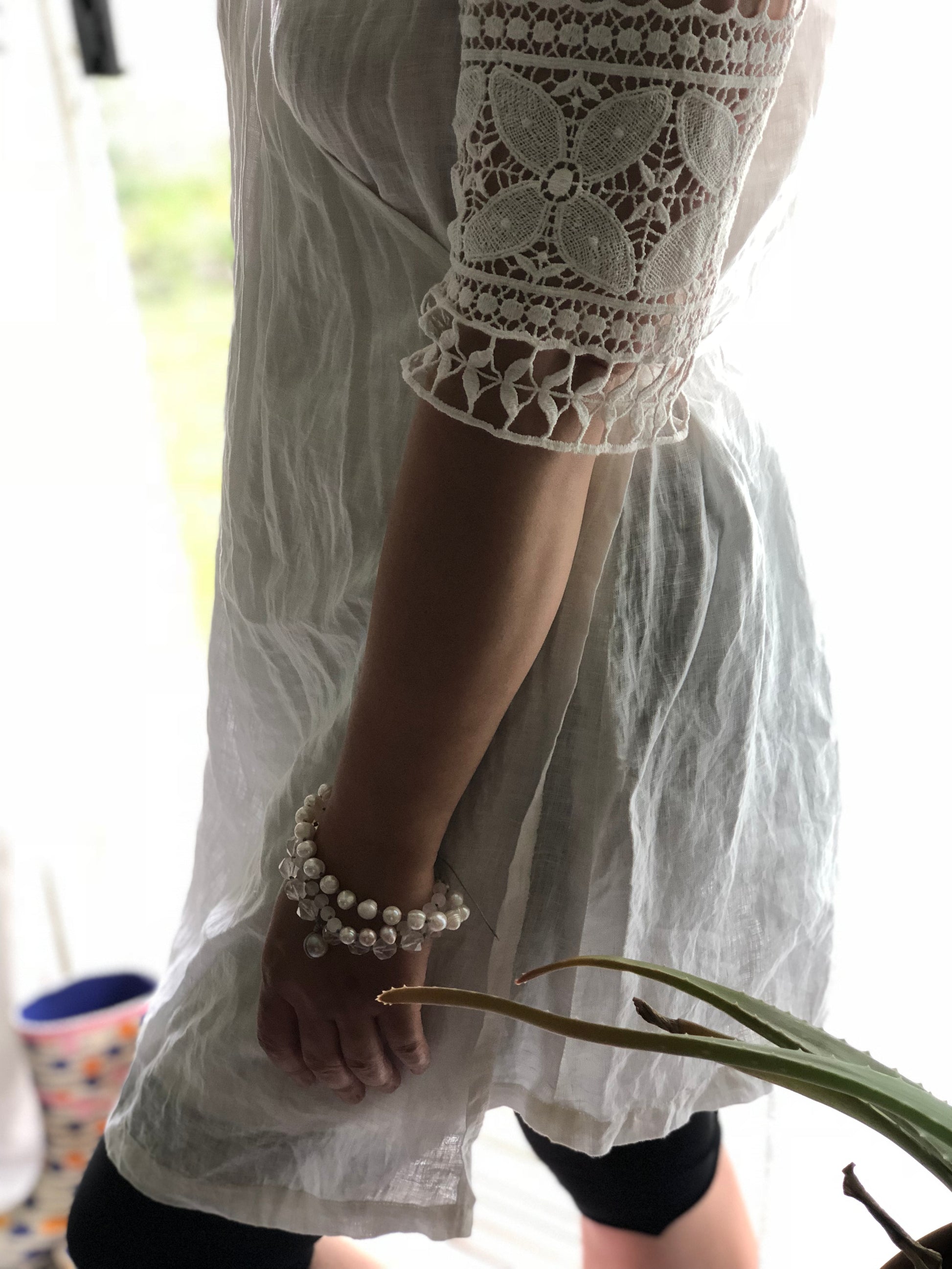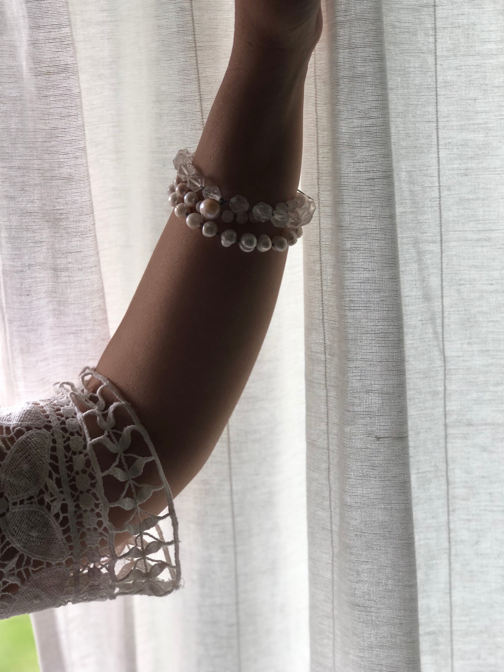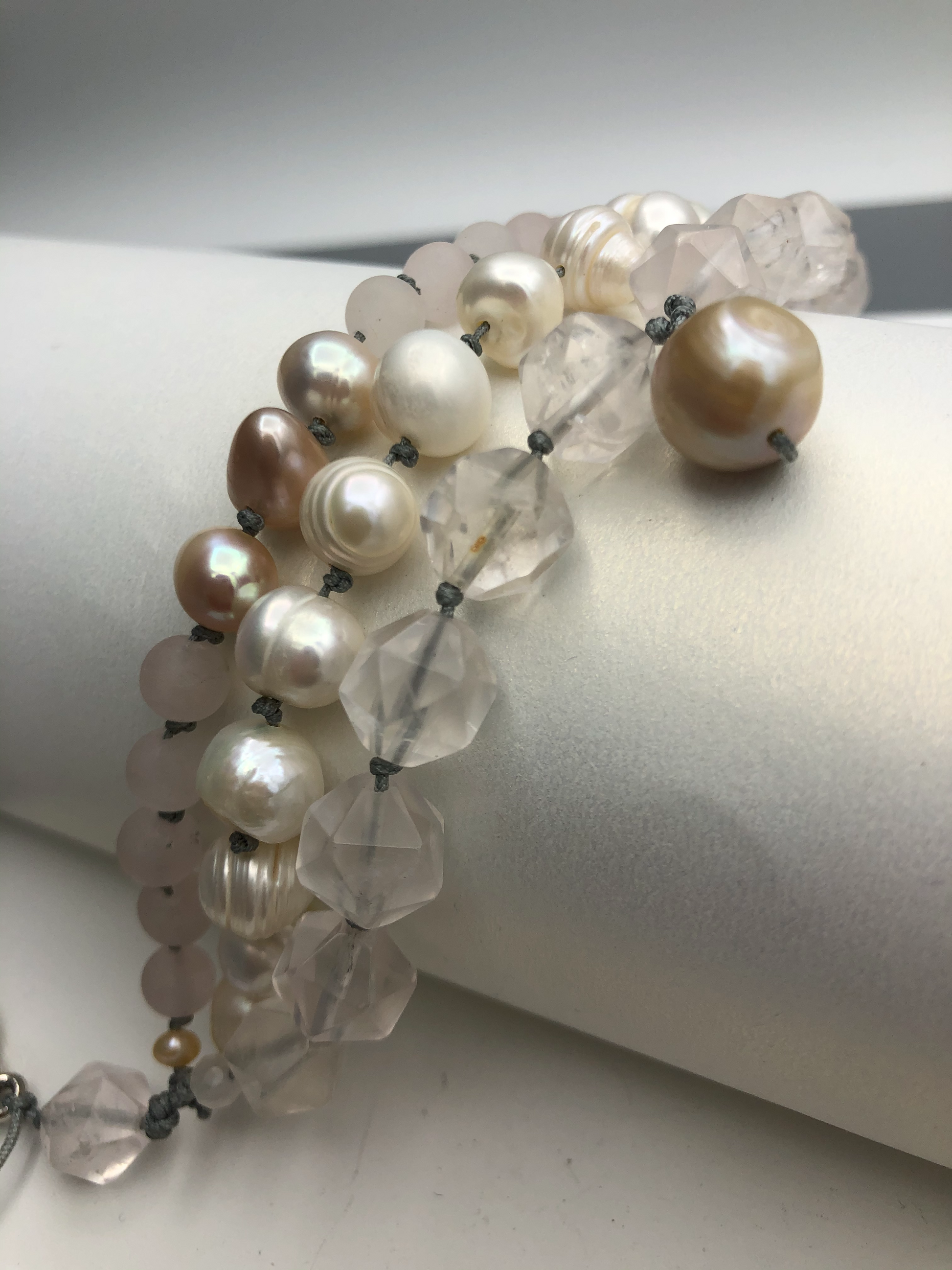Multi strand of semi precious beads, very soft color bracelet. Hand knotted between each beads.