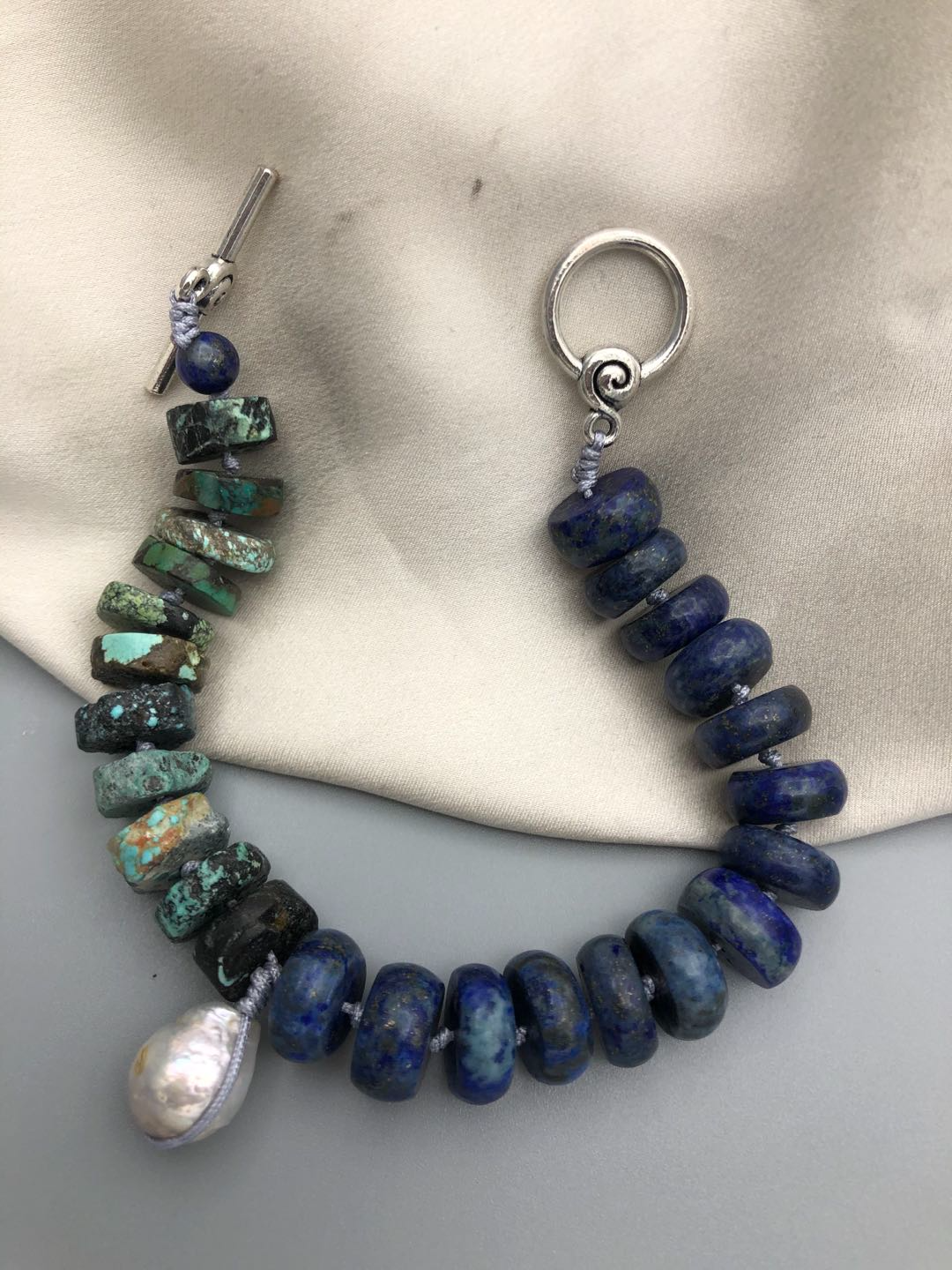 Materials : Turquoise, lapis, fresh water pearl