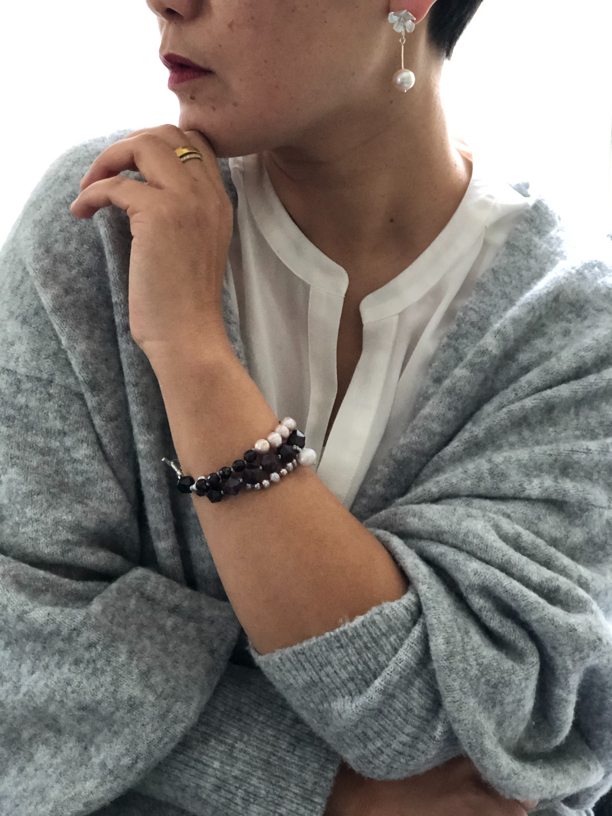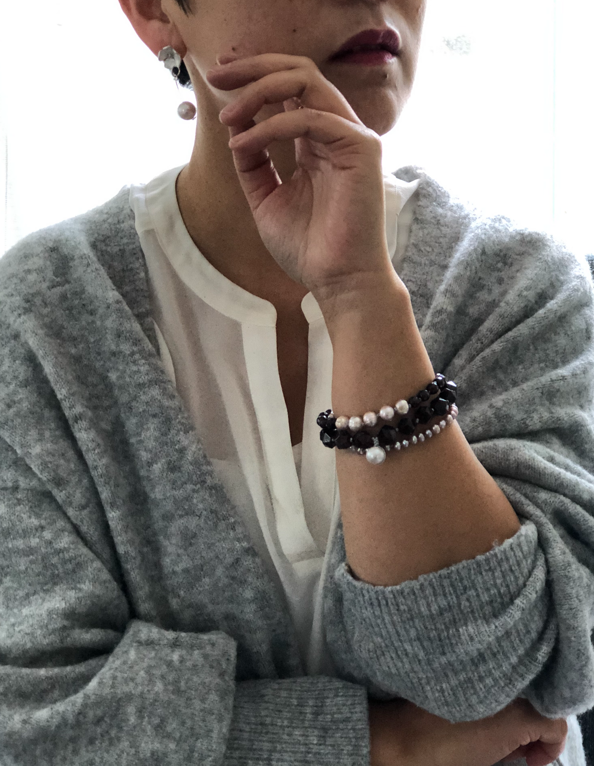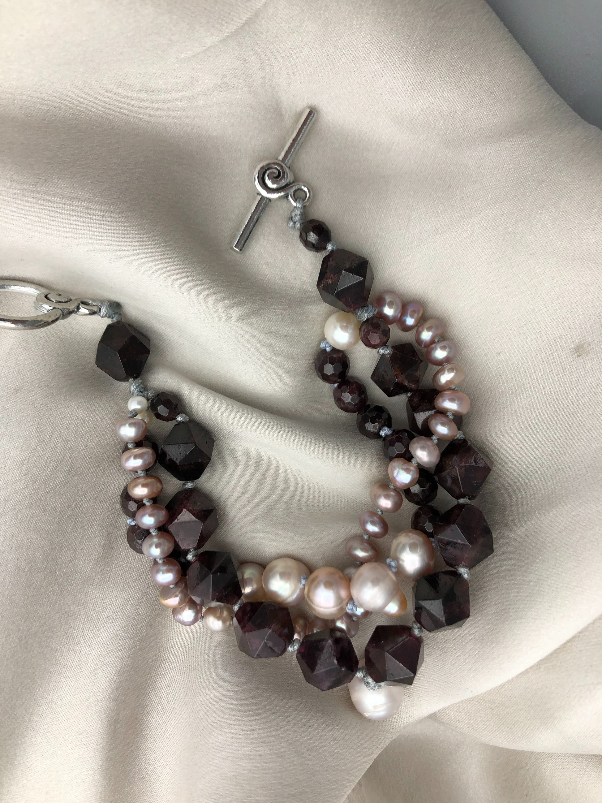 Materials : Garnet , fresh water pearl