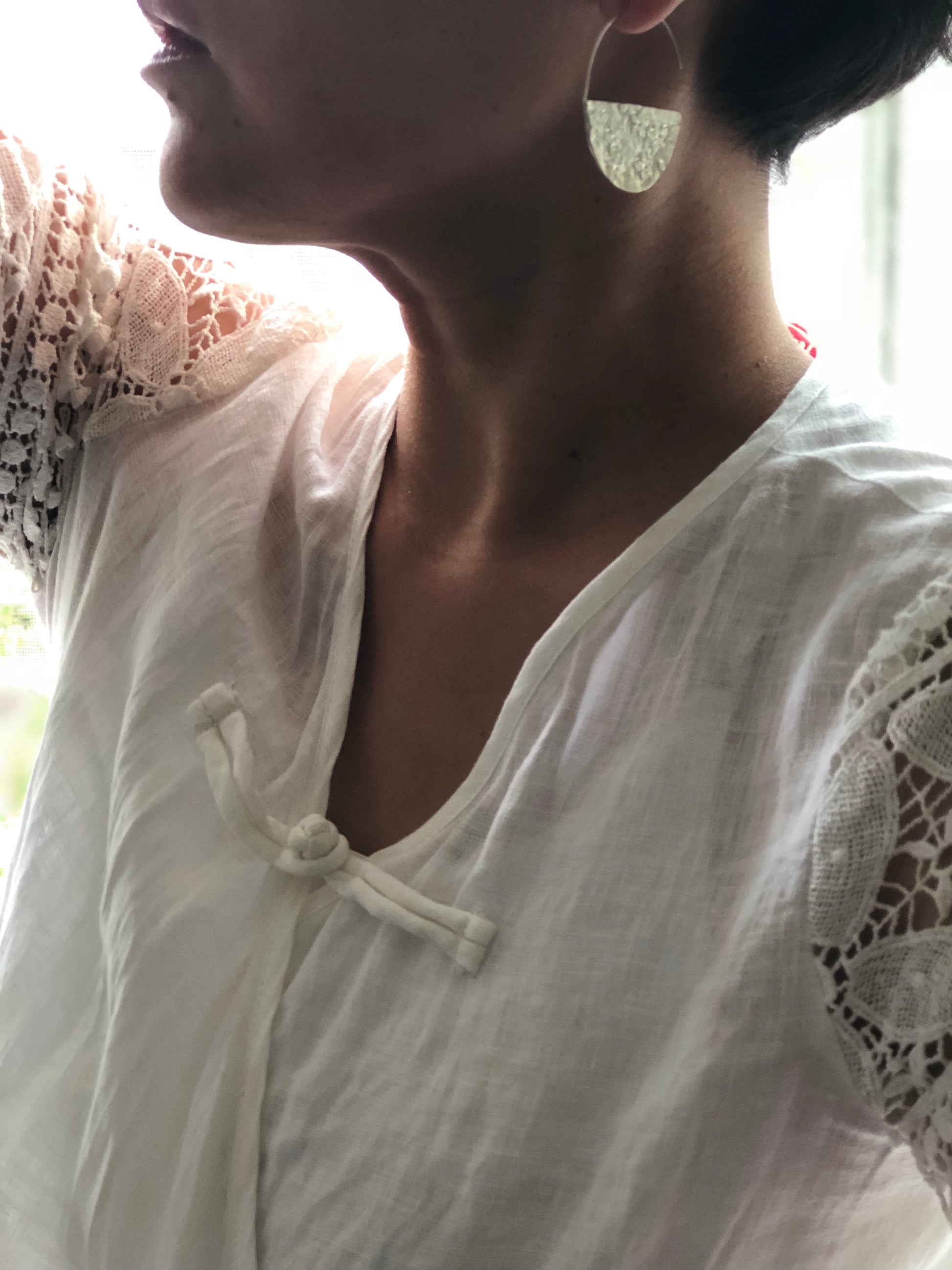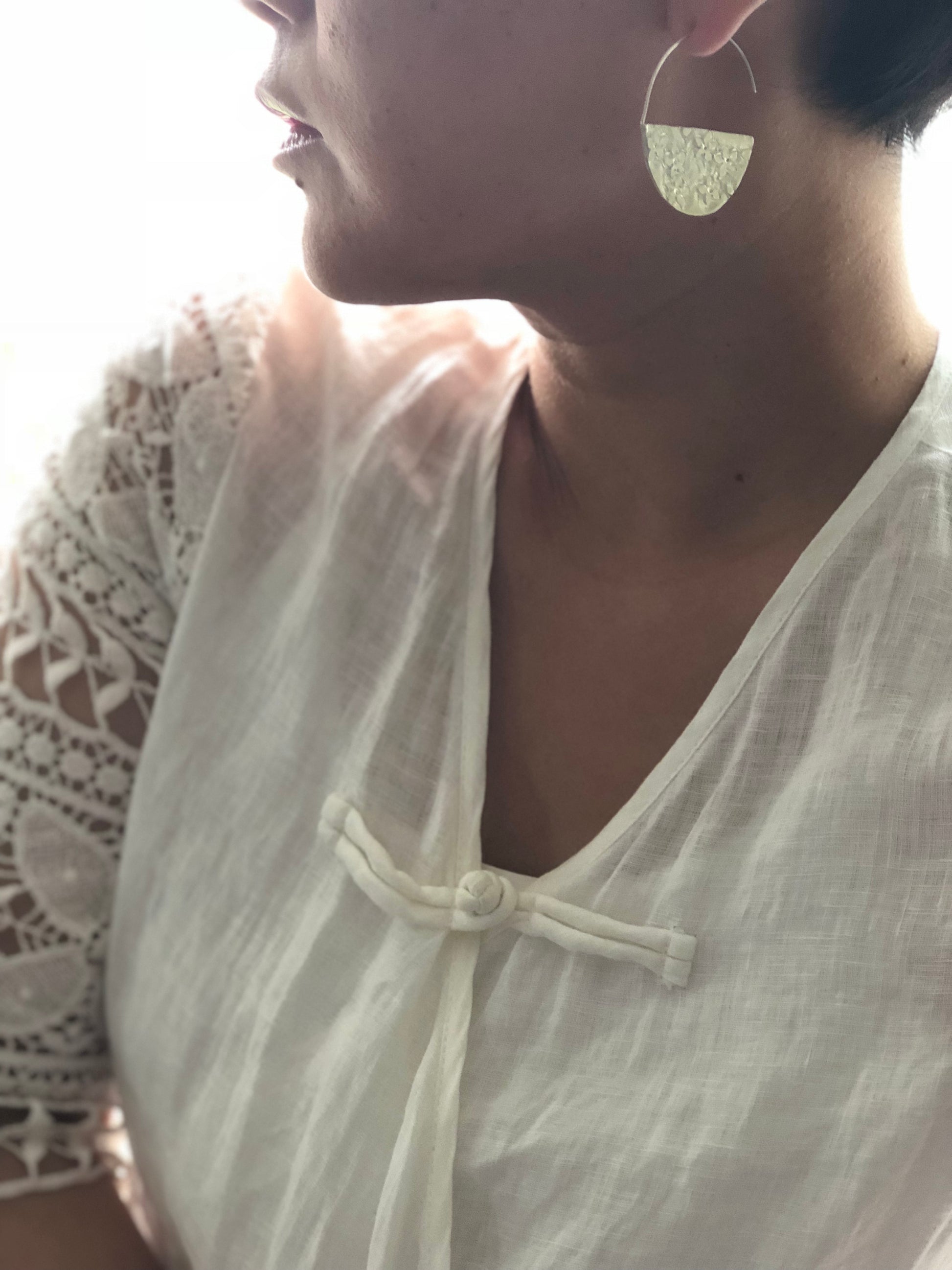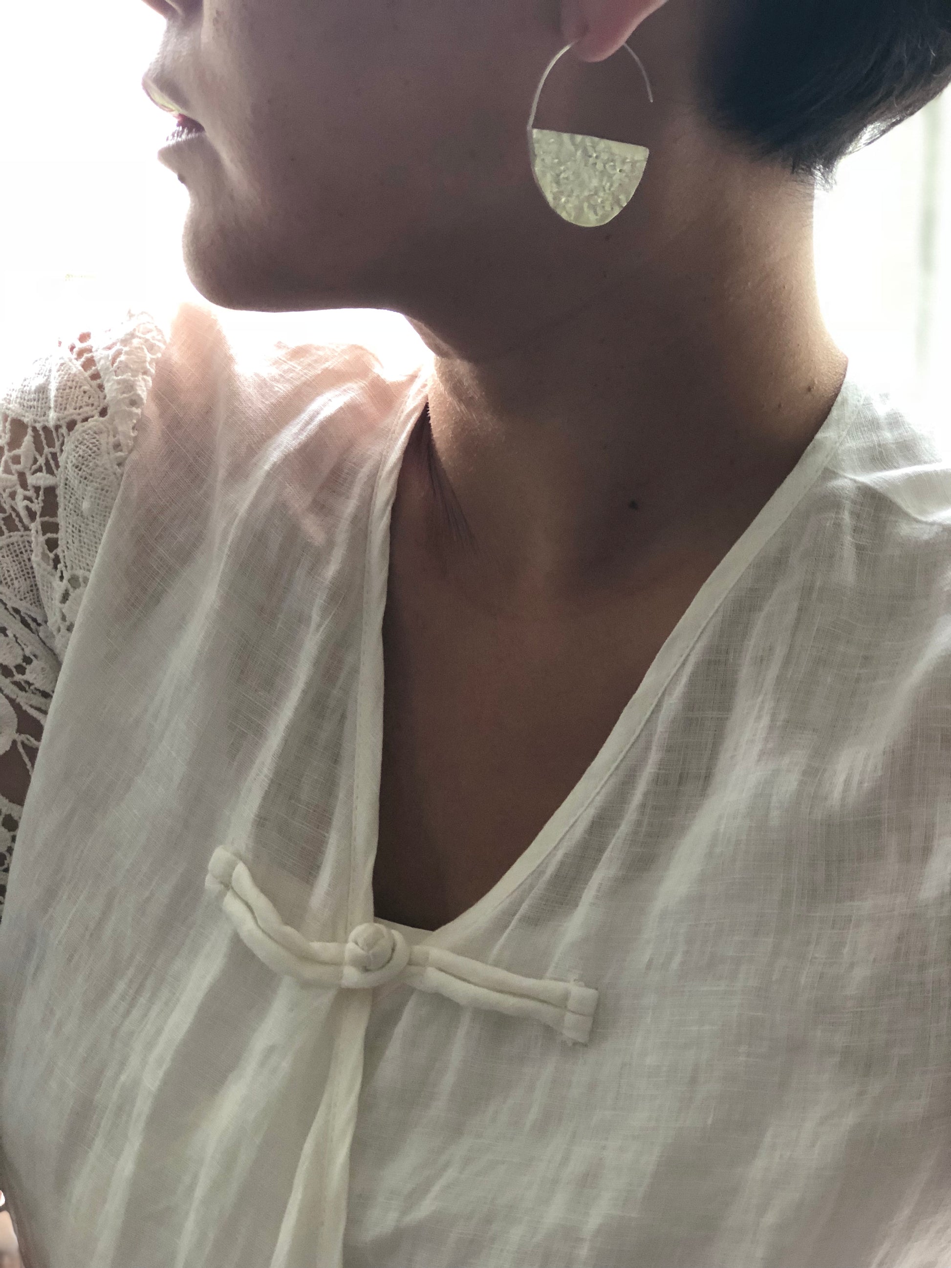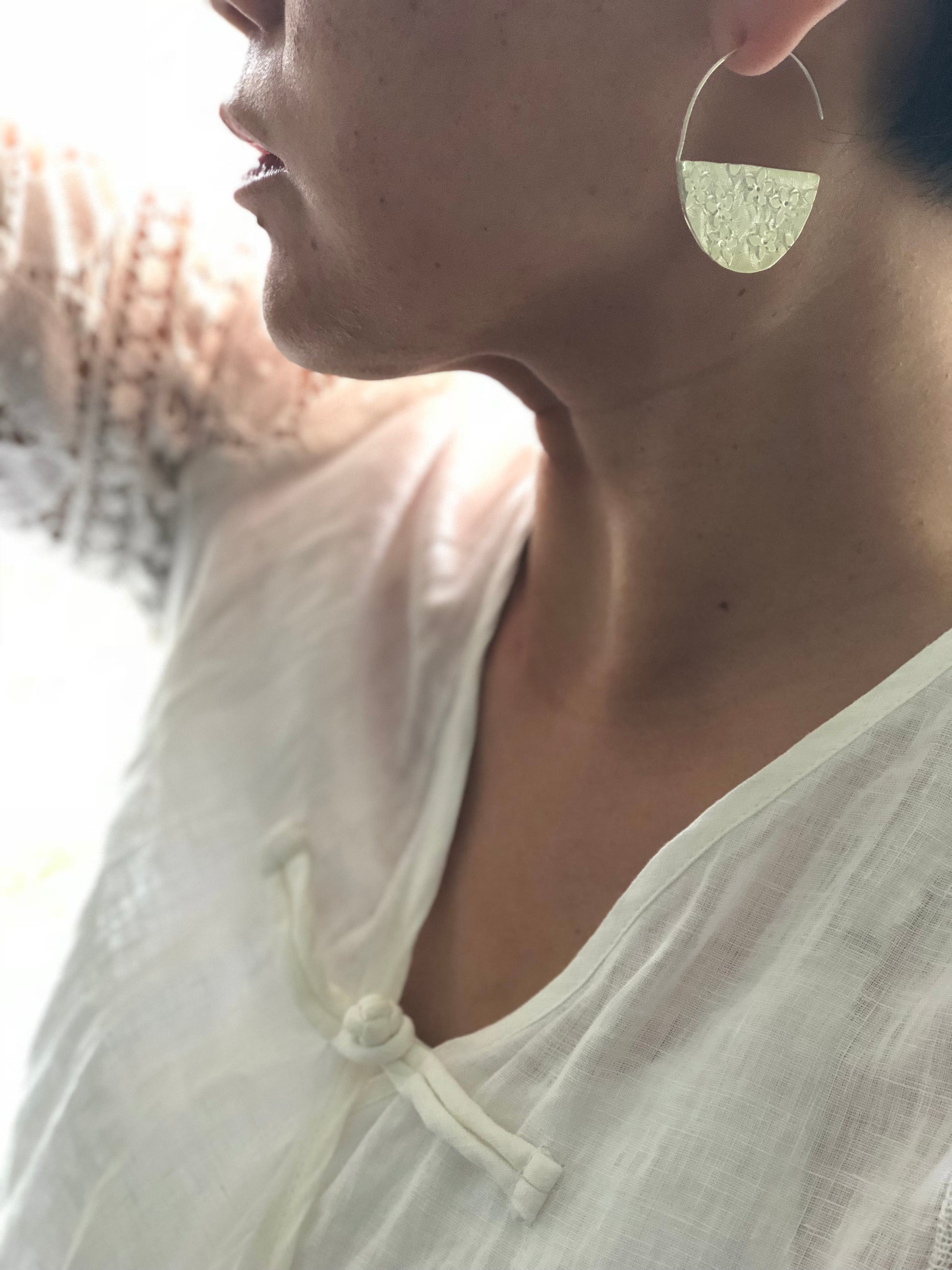 Free hand patterned and hammered on fine silver, one of a kind design.