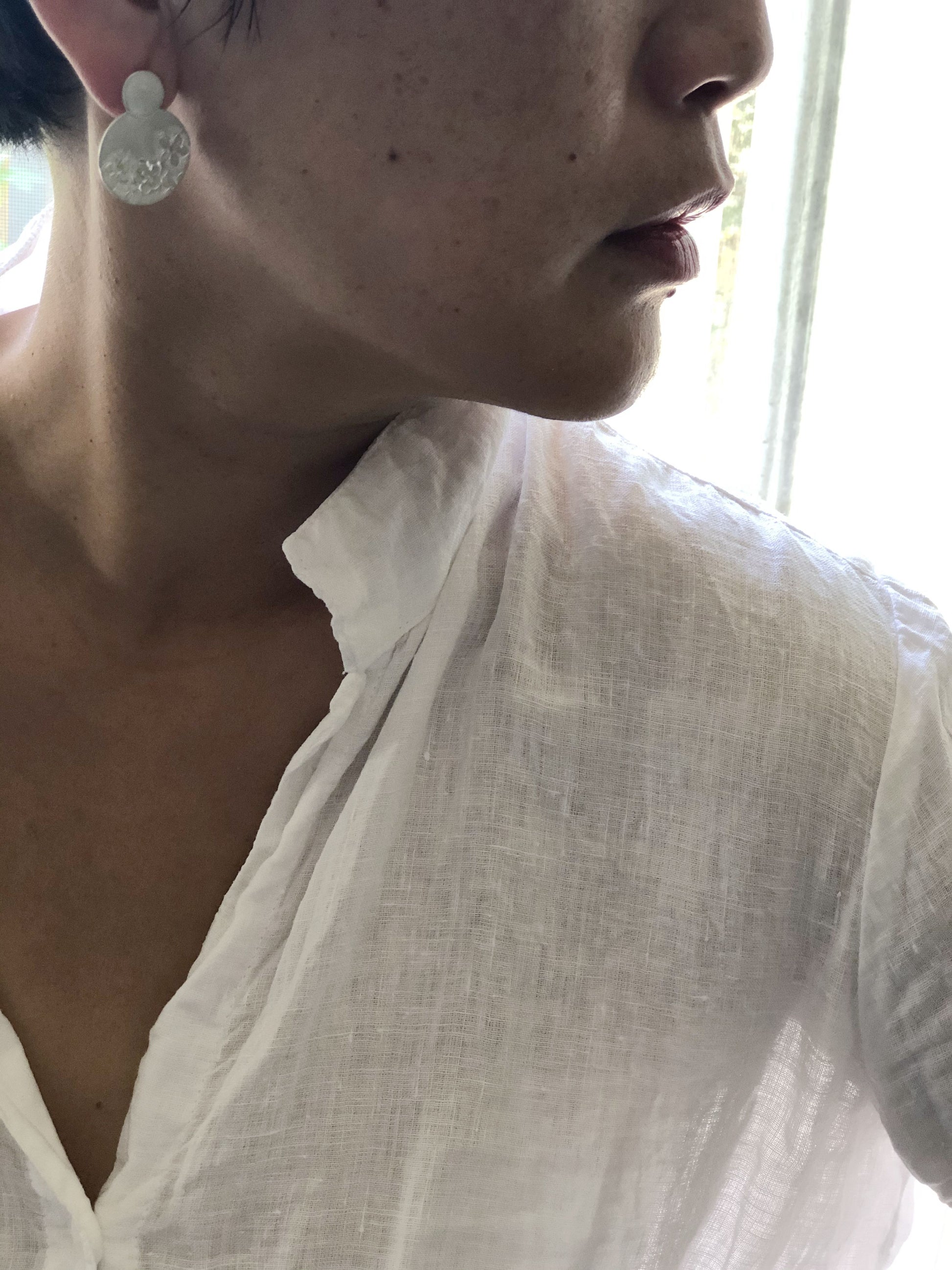 Free hand patterned and hammered on fine silver.