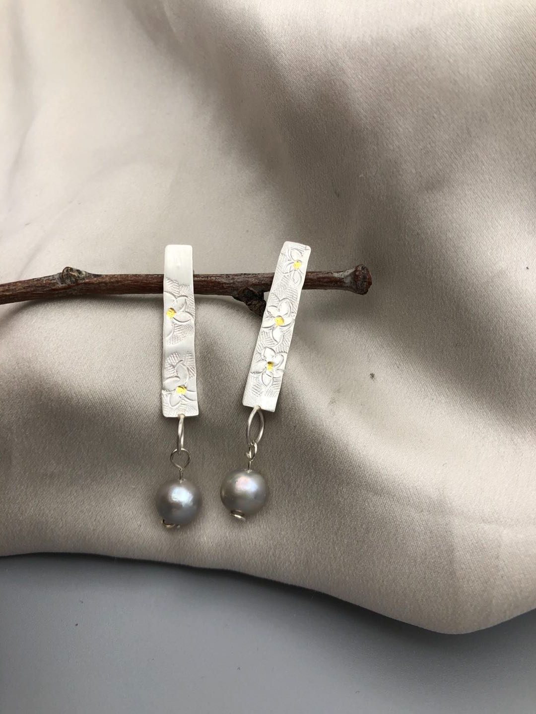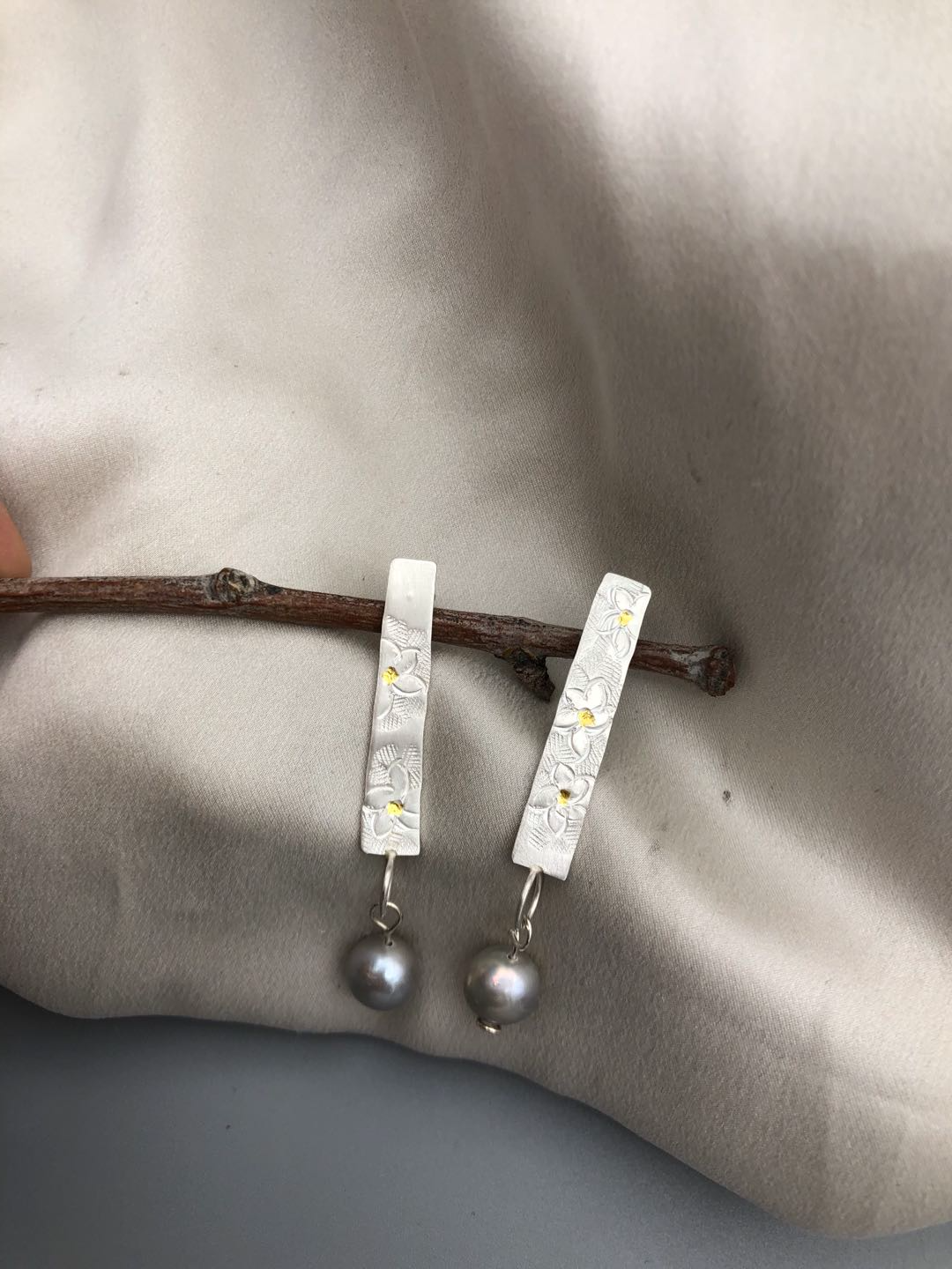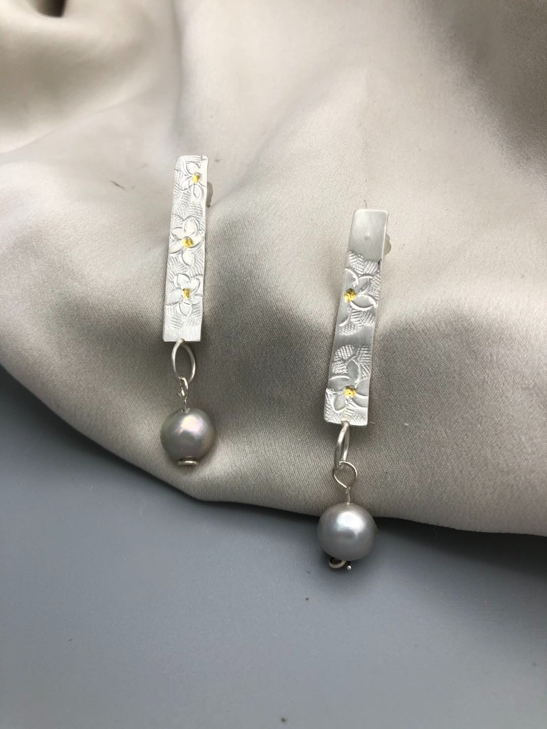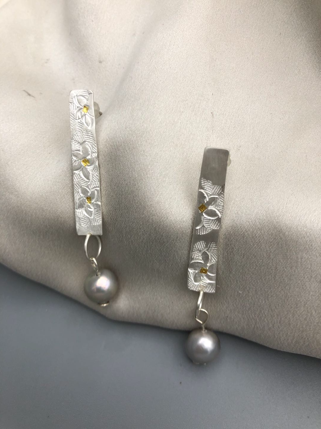 Materials : Fine silver , fine gold ( kumboo ), fresh water pearl