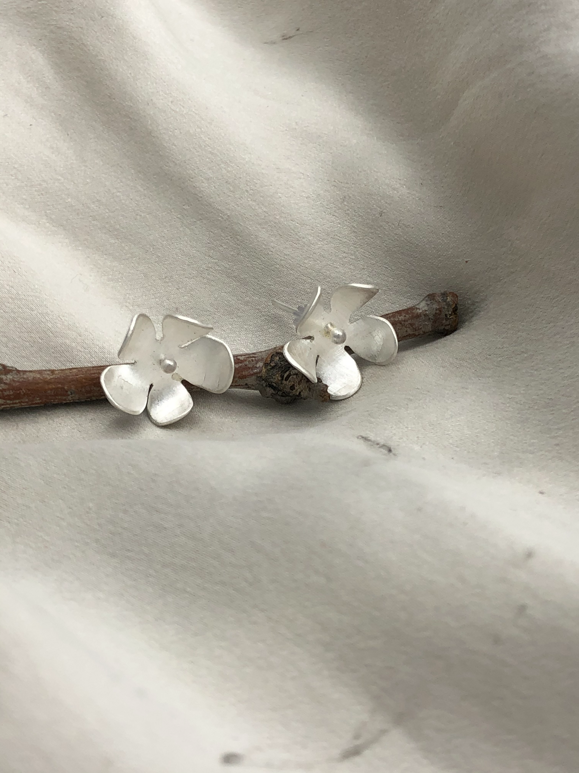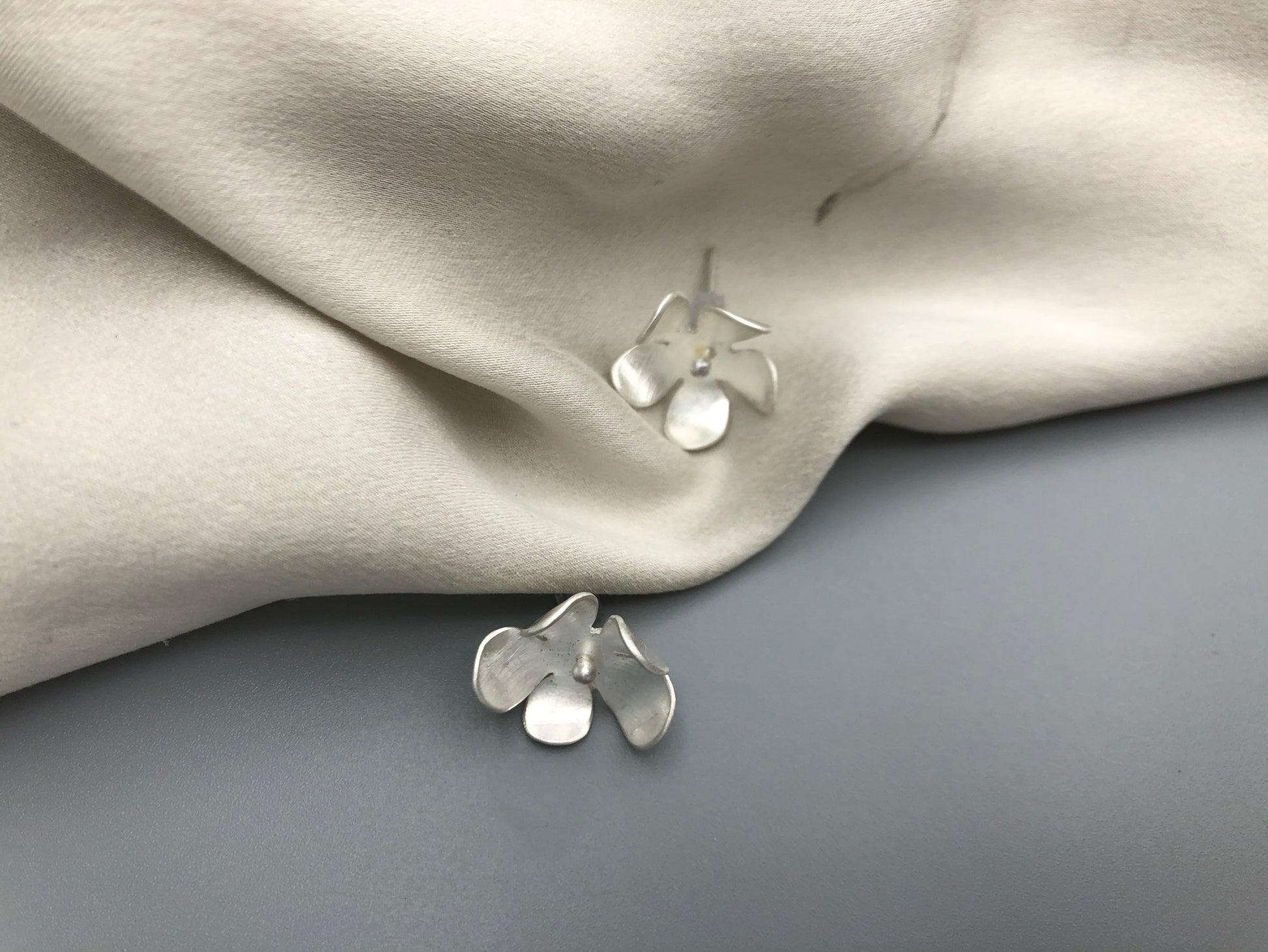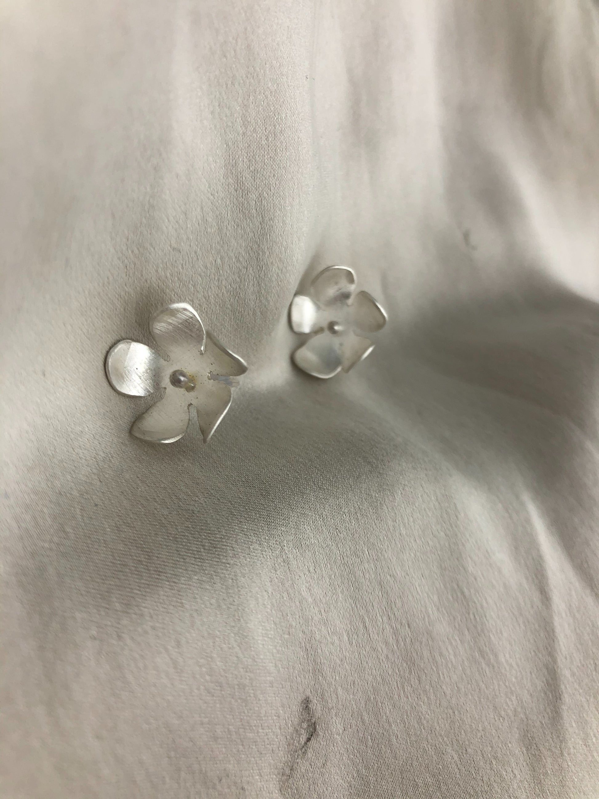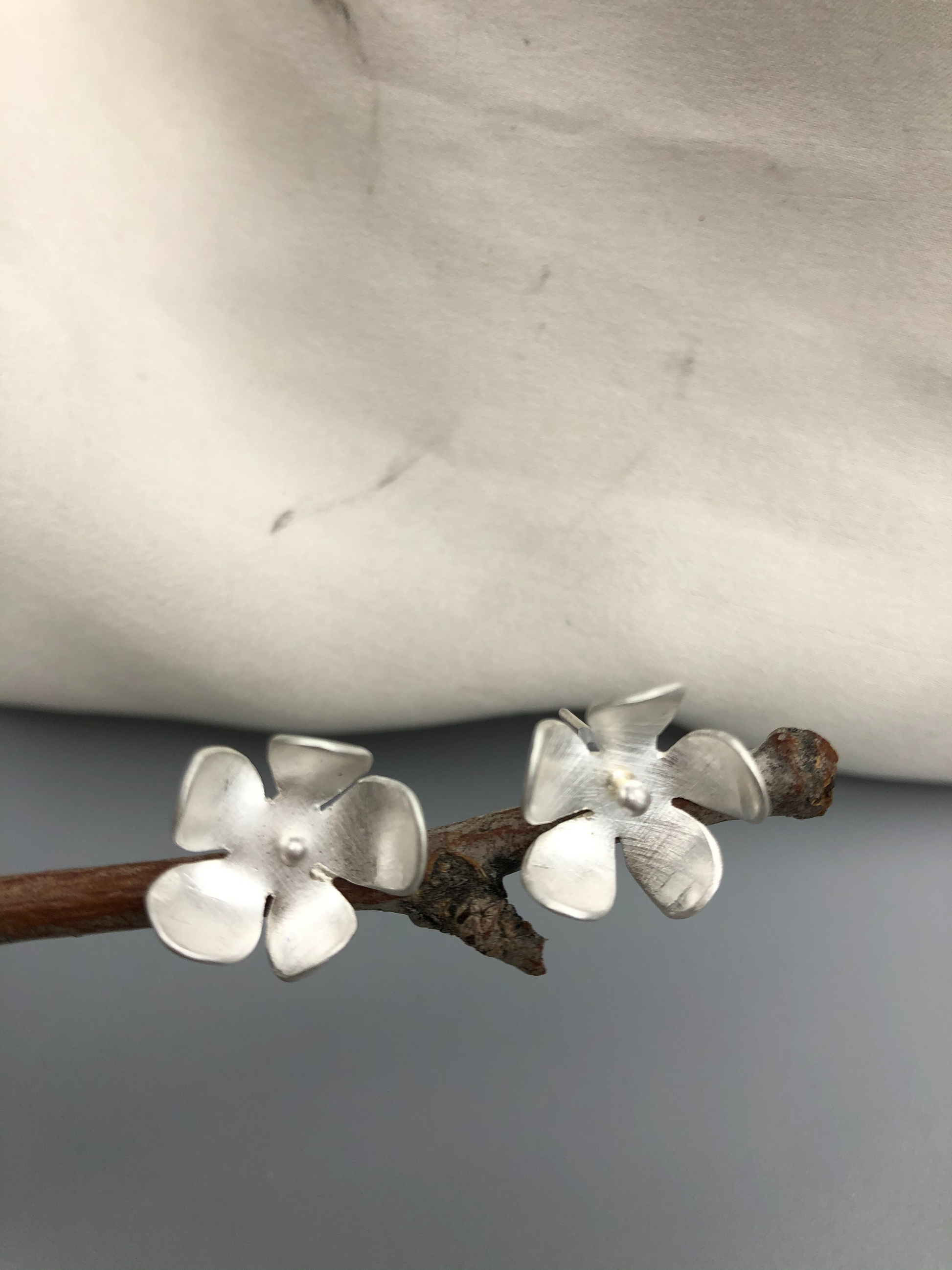 Free hand patterned and hammered on fine silver . Each flower will be different since they are all hand patterned.