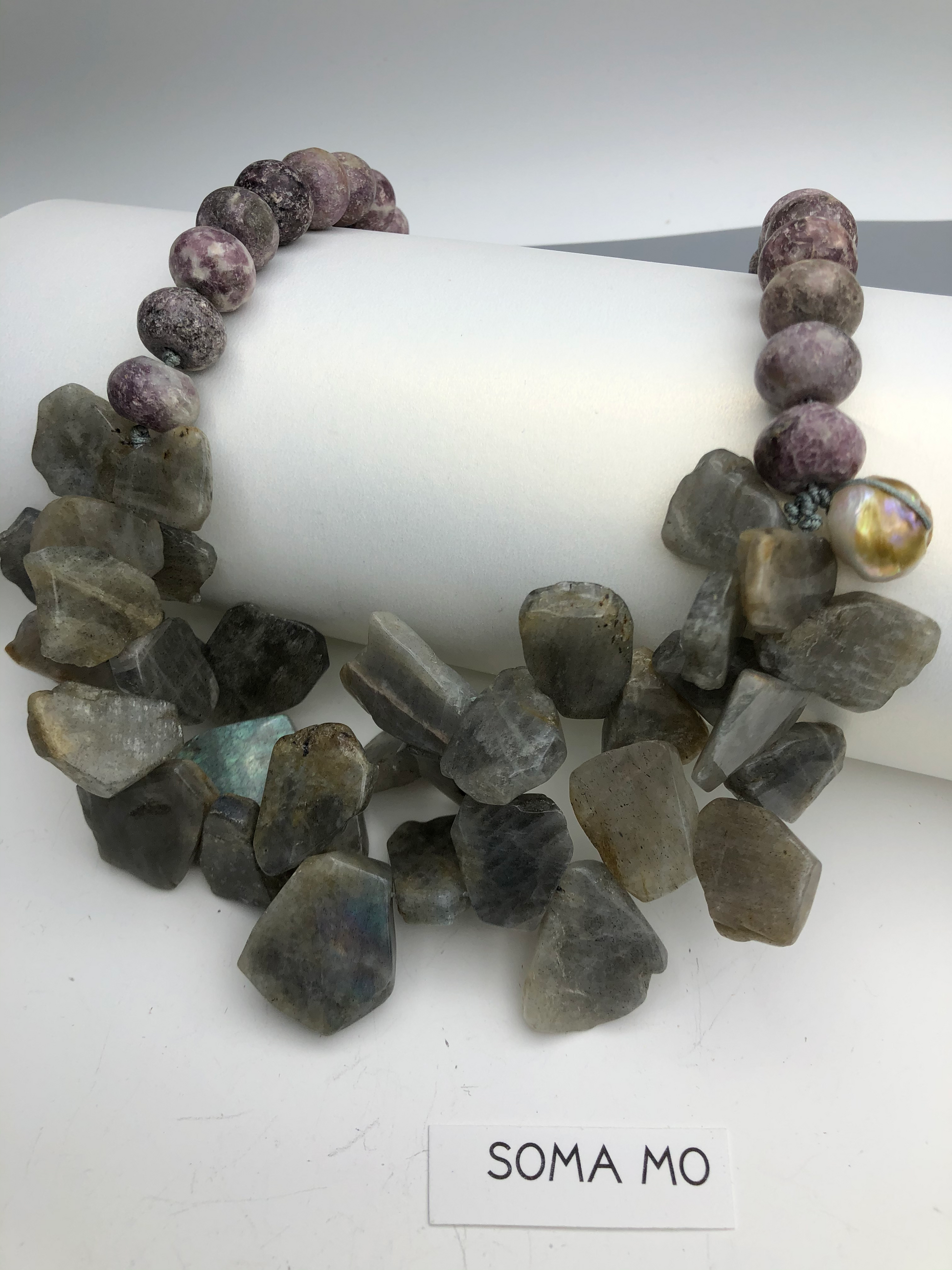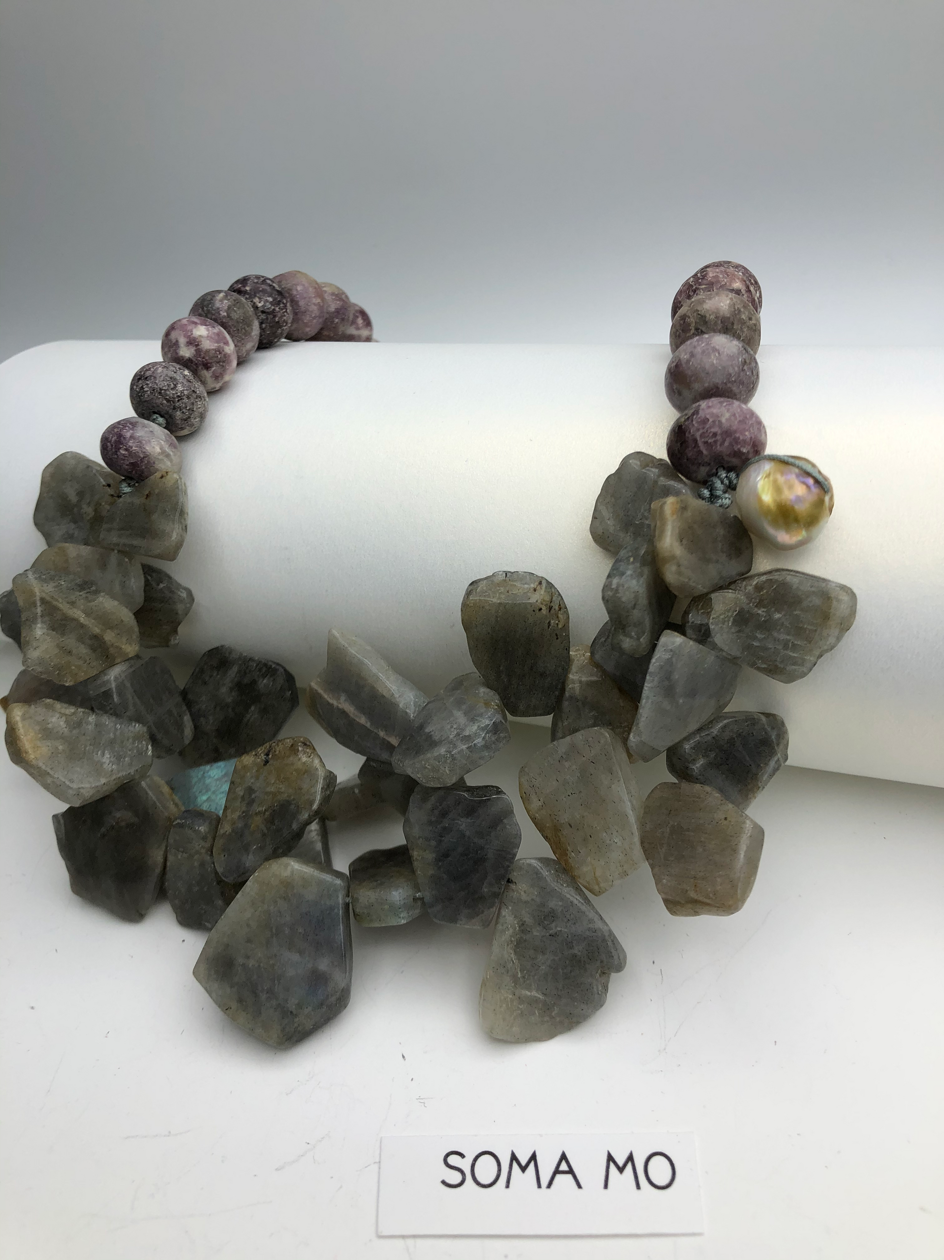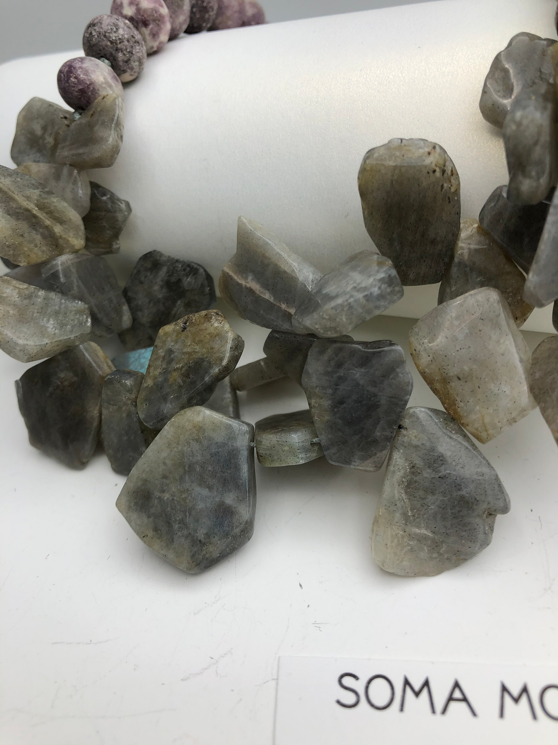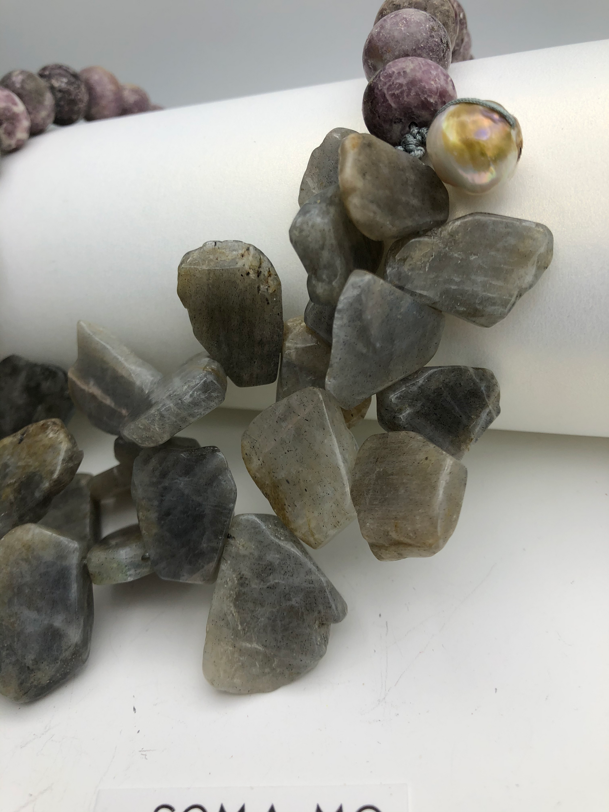 Petal shape of labrodrite. Hand knotted , can be resized for special request.