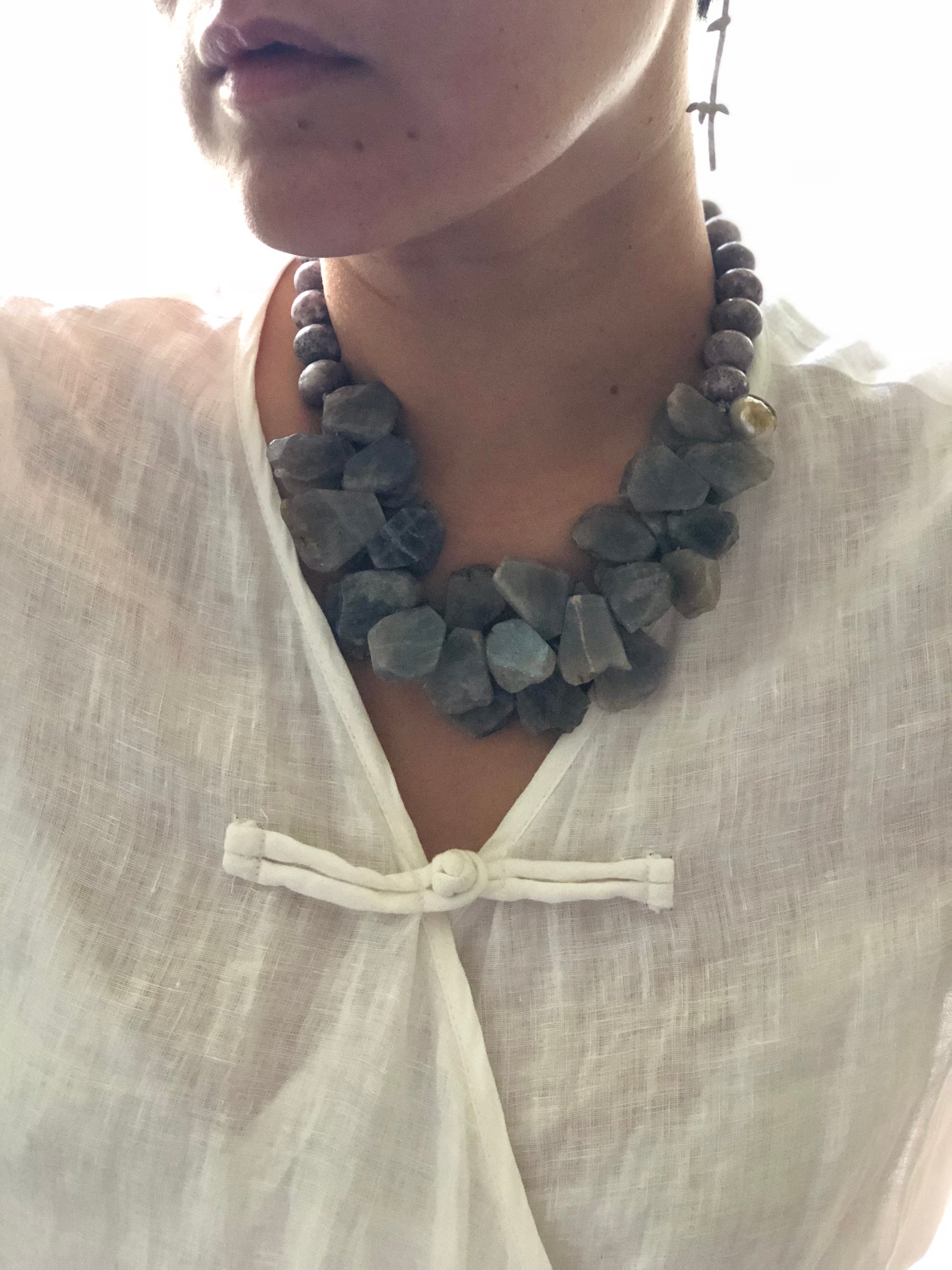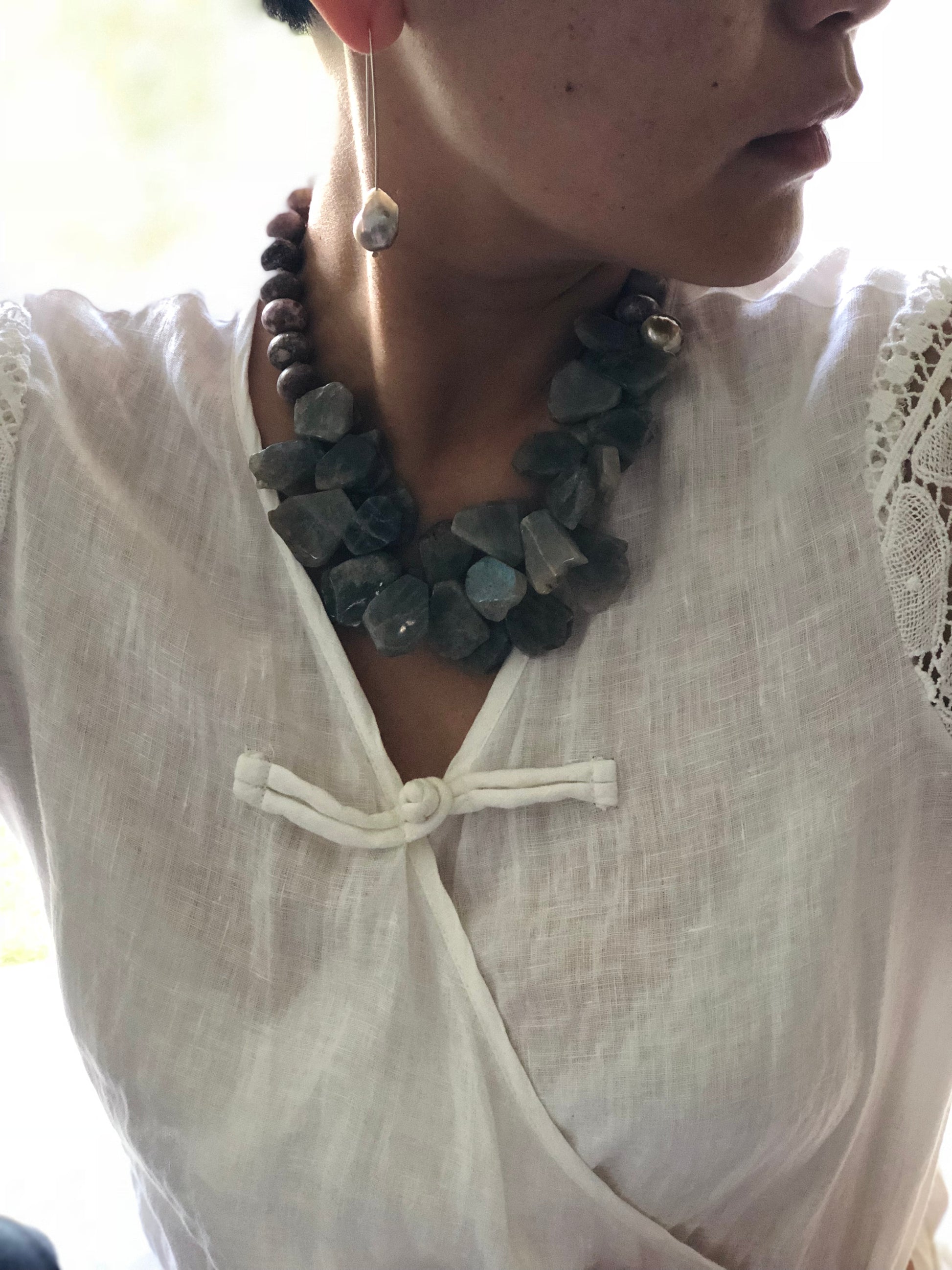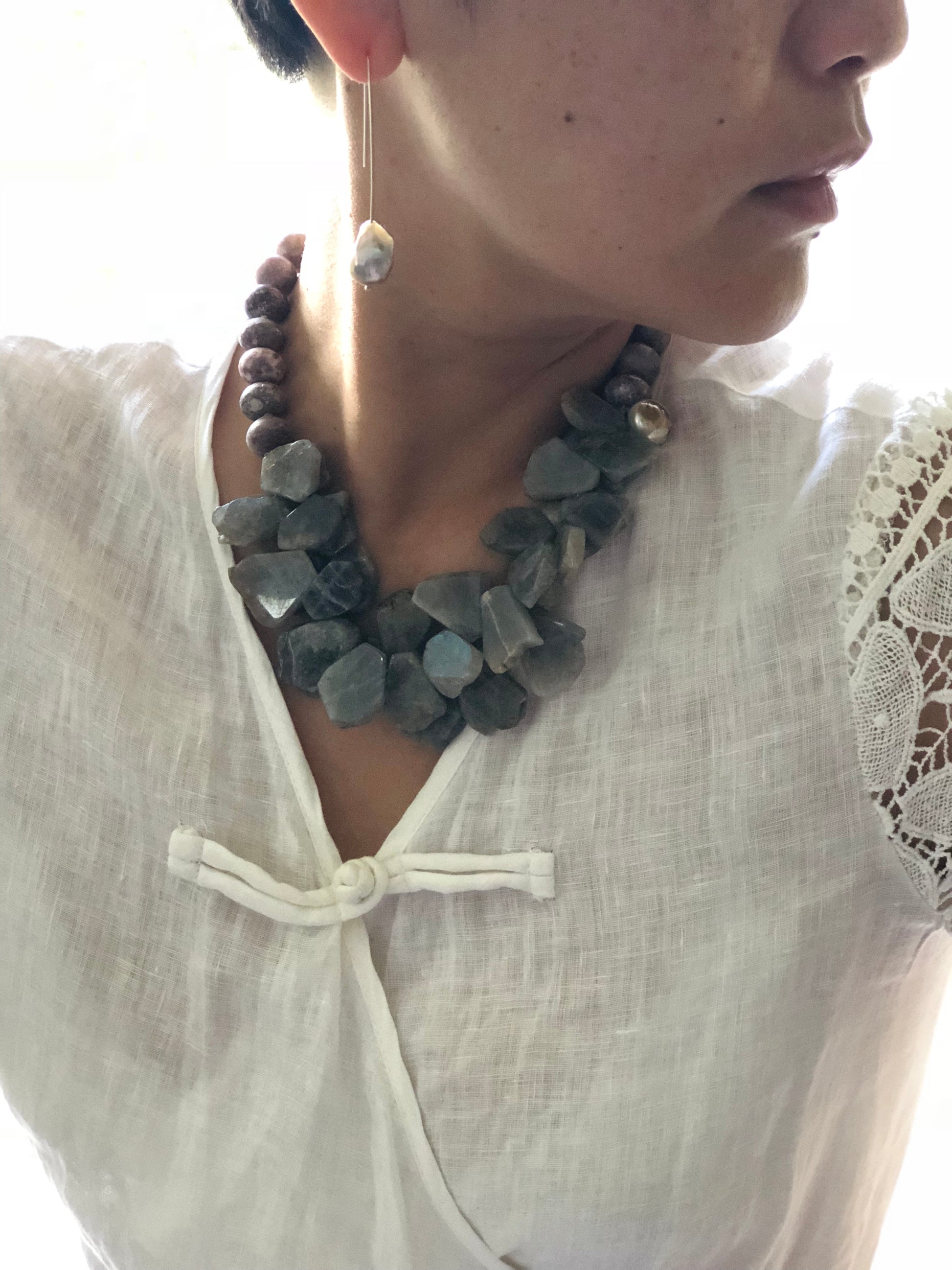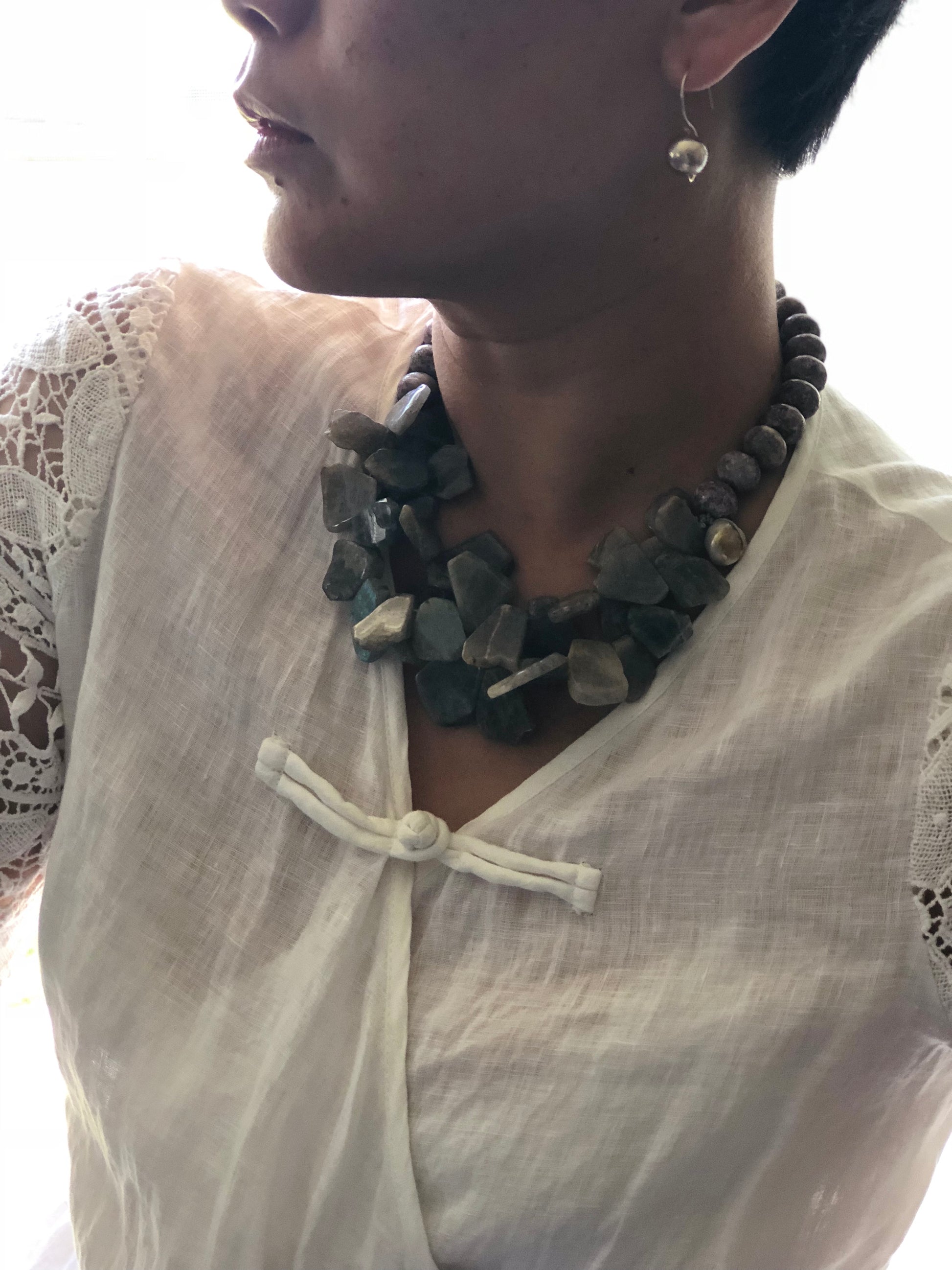 Petal shape of labrodrite. Hand knotted , can be resized for special request.
