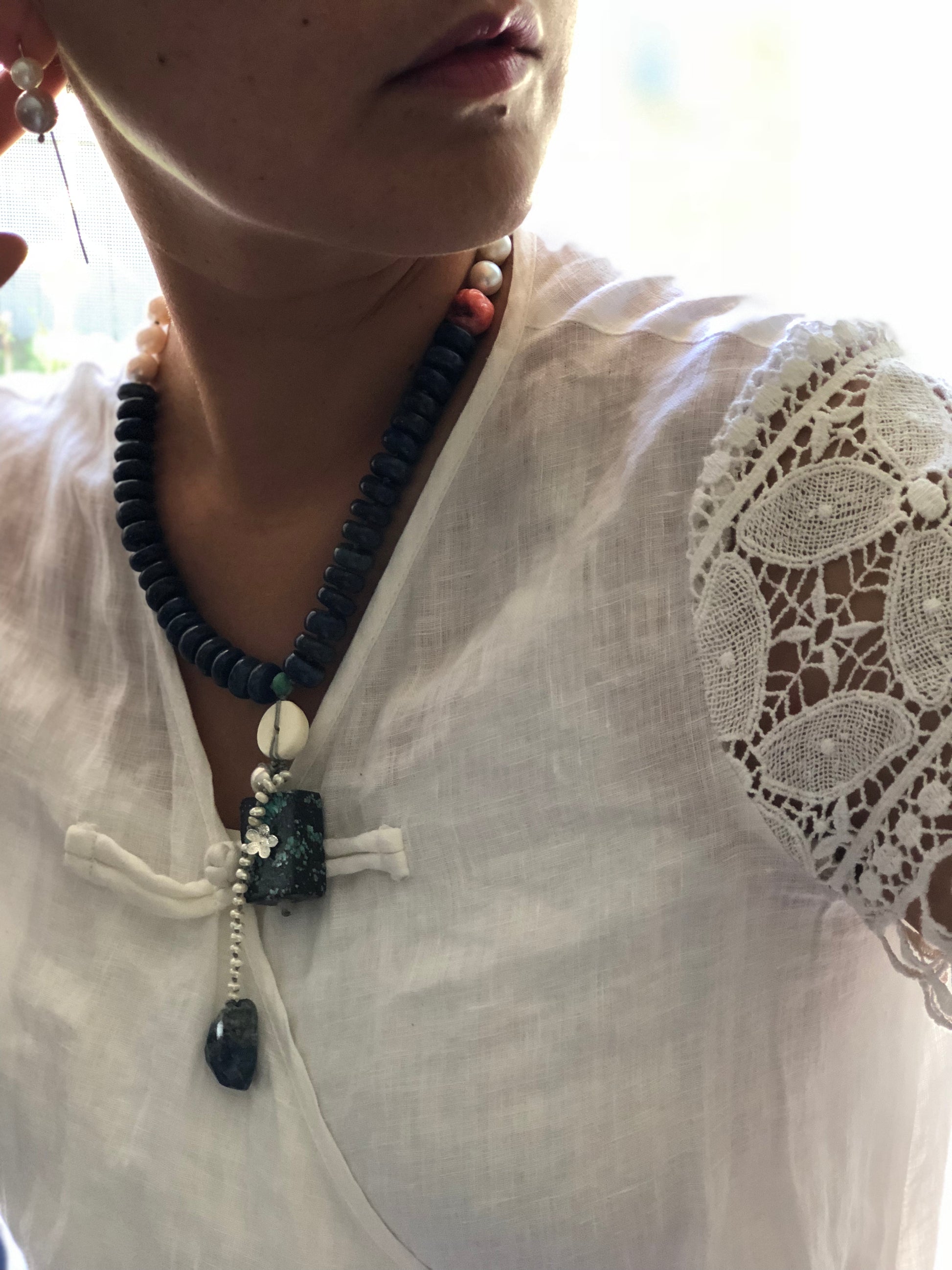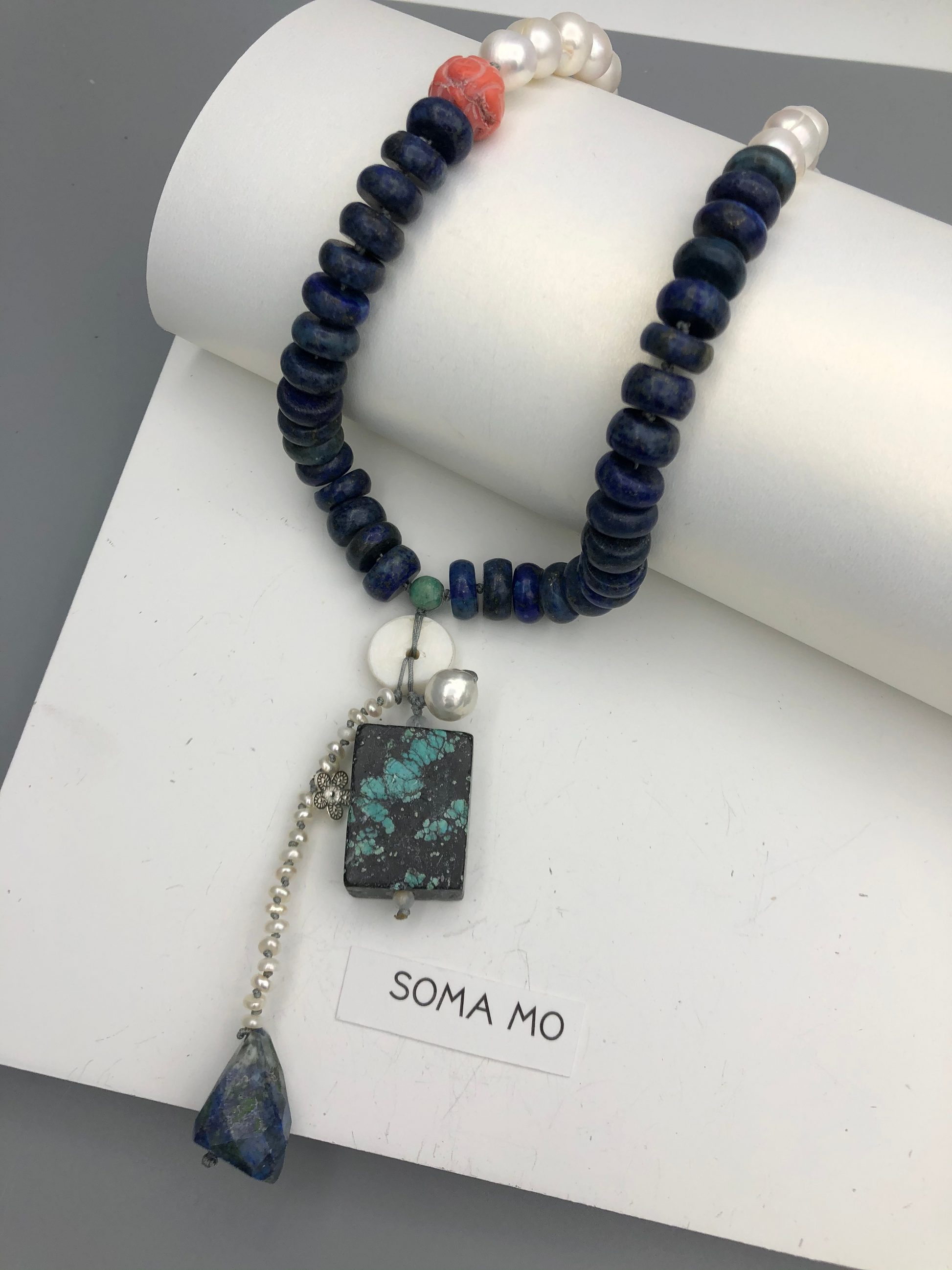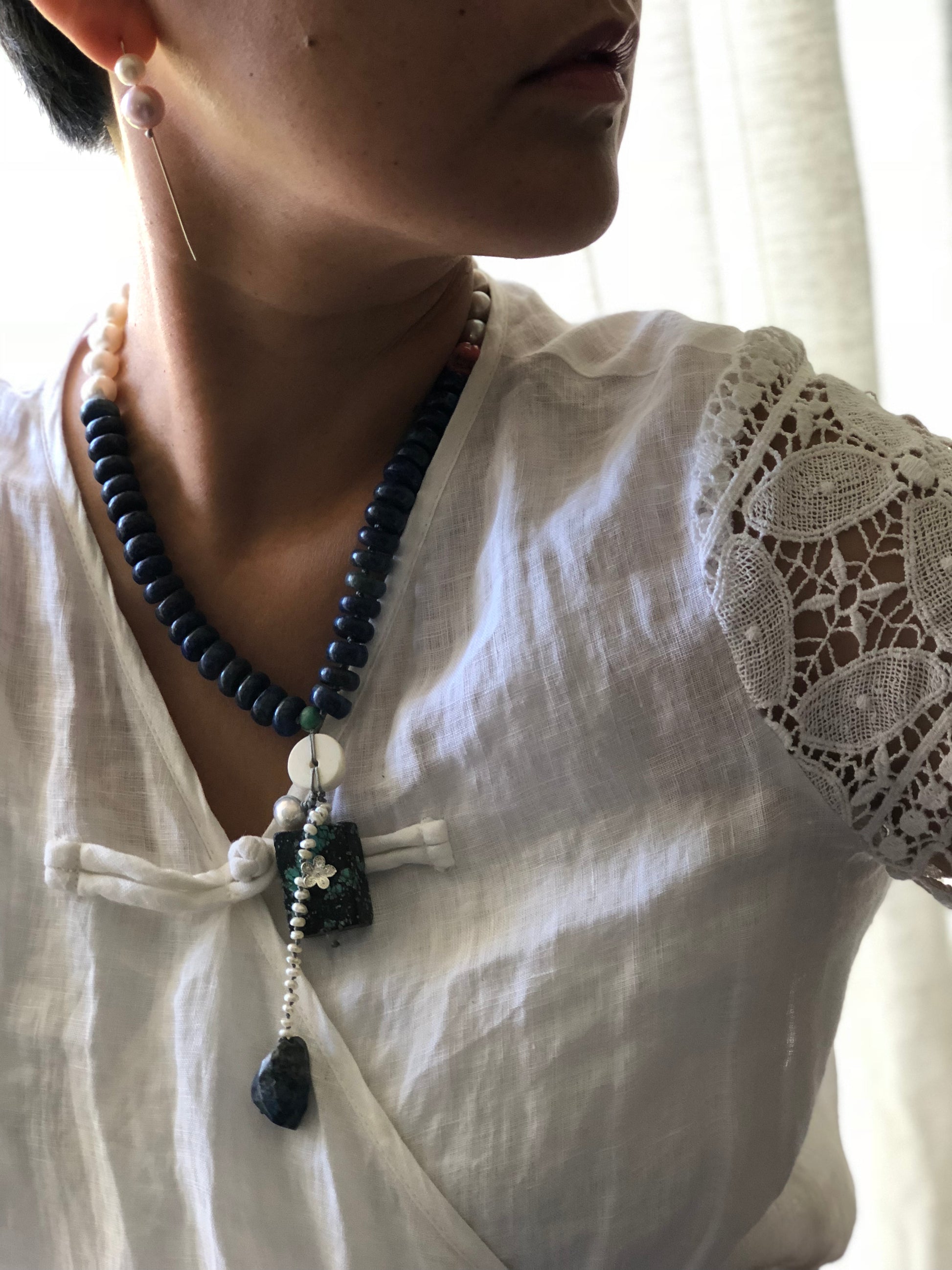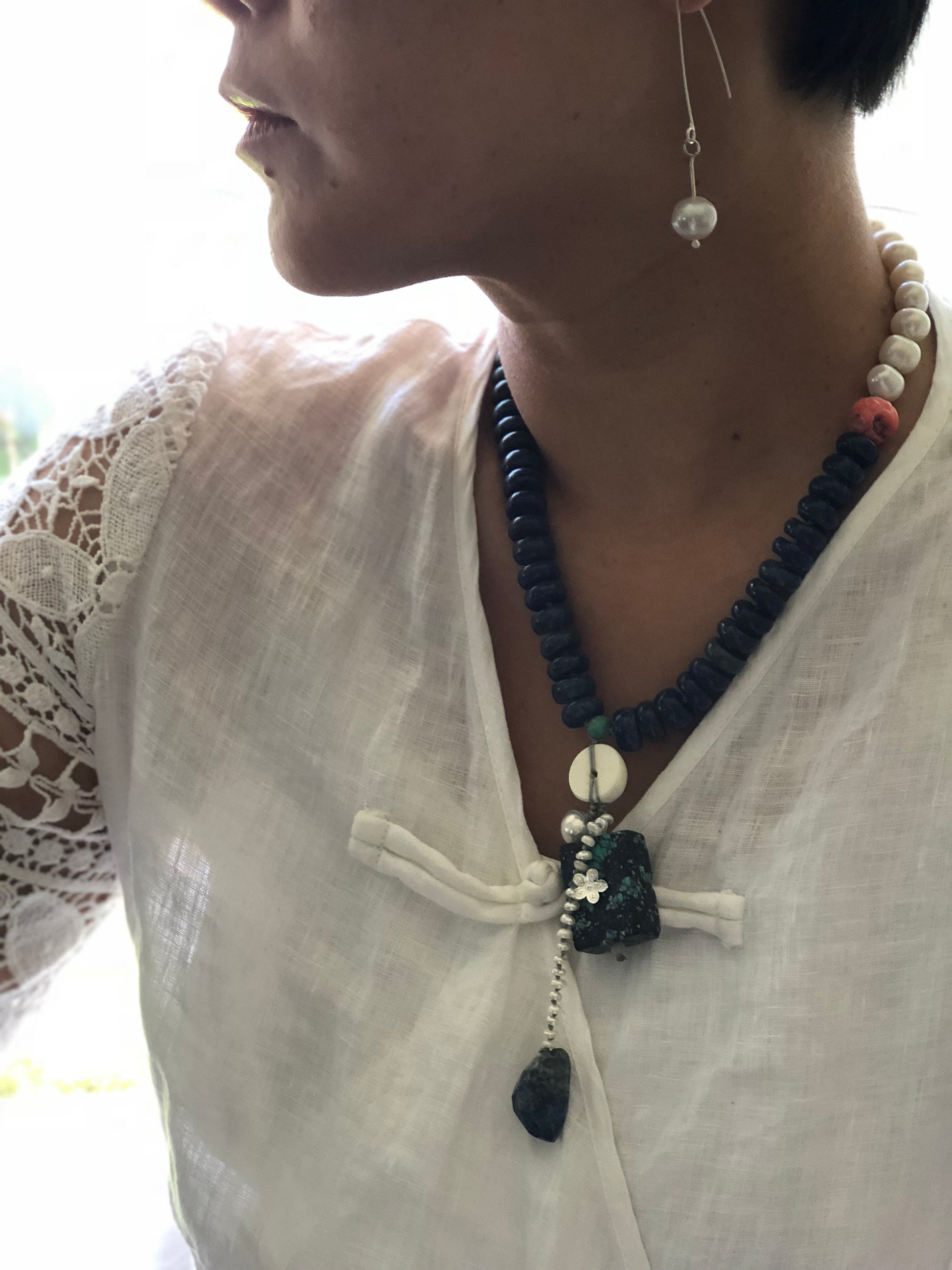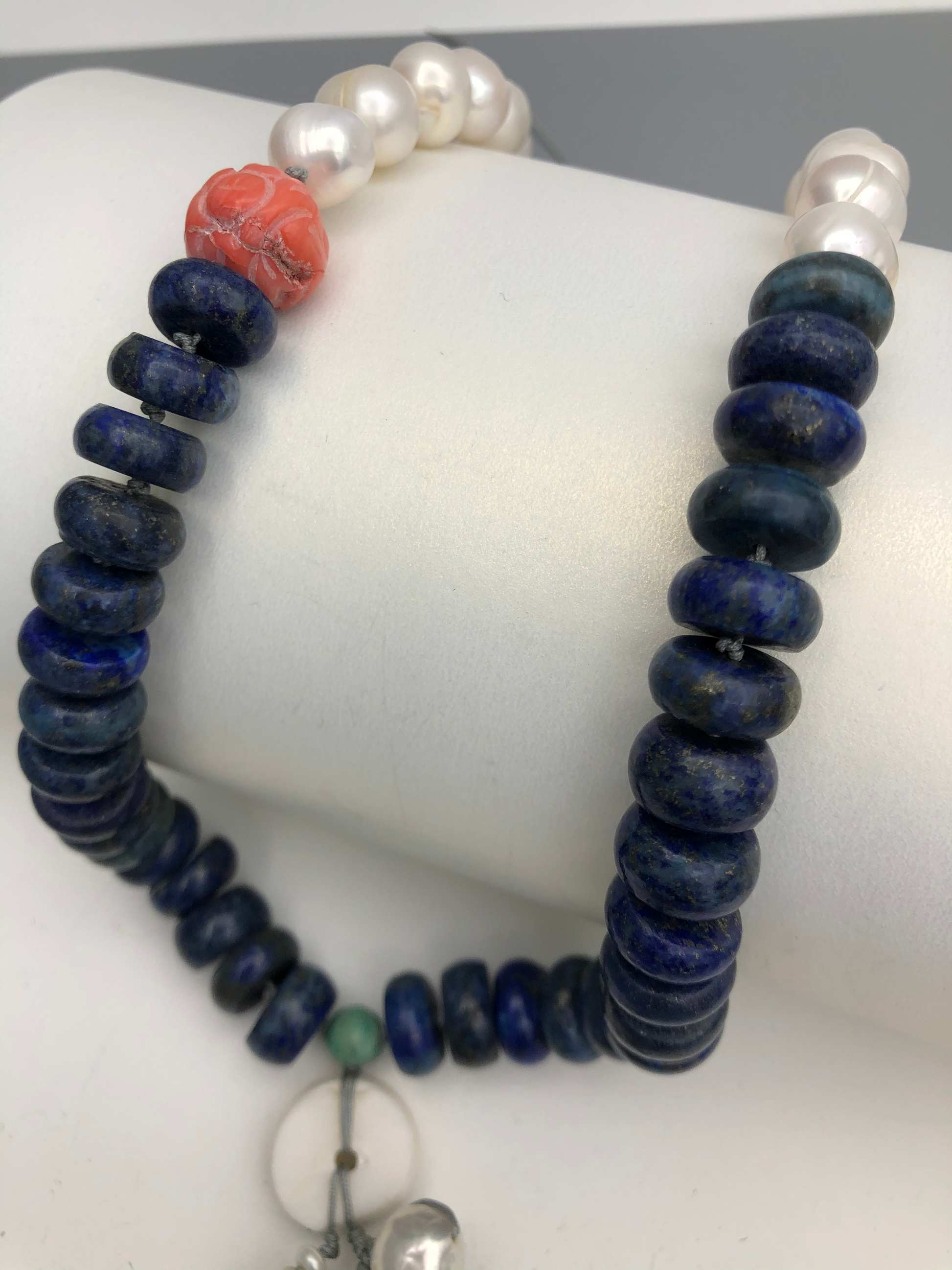 Materials : Lapis, red coral, fresh water pearl, turquoise, agate