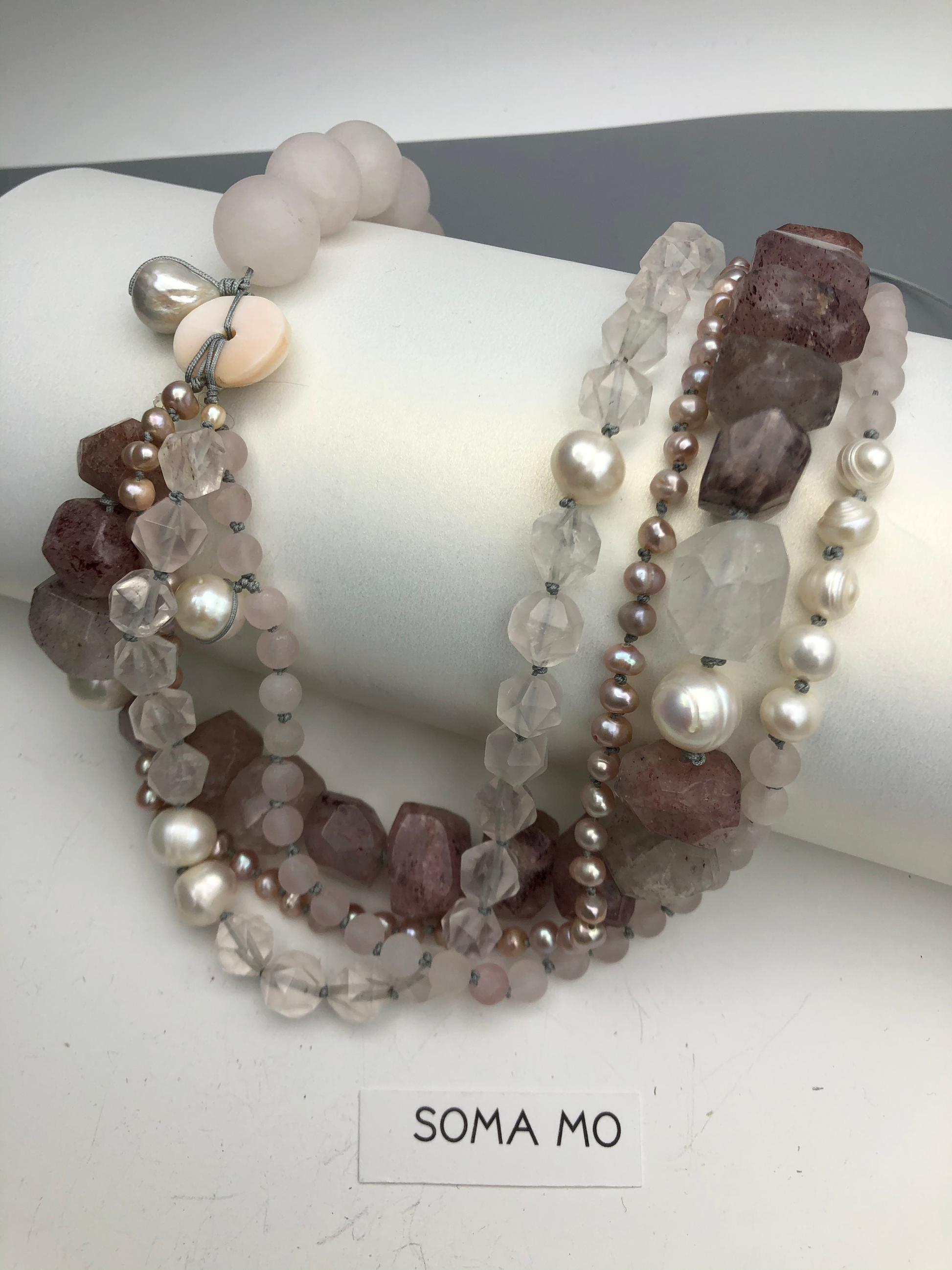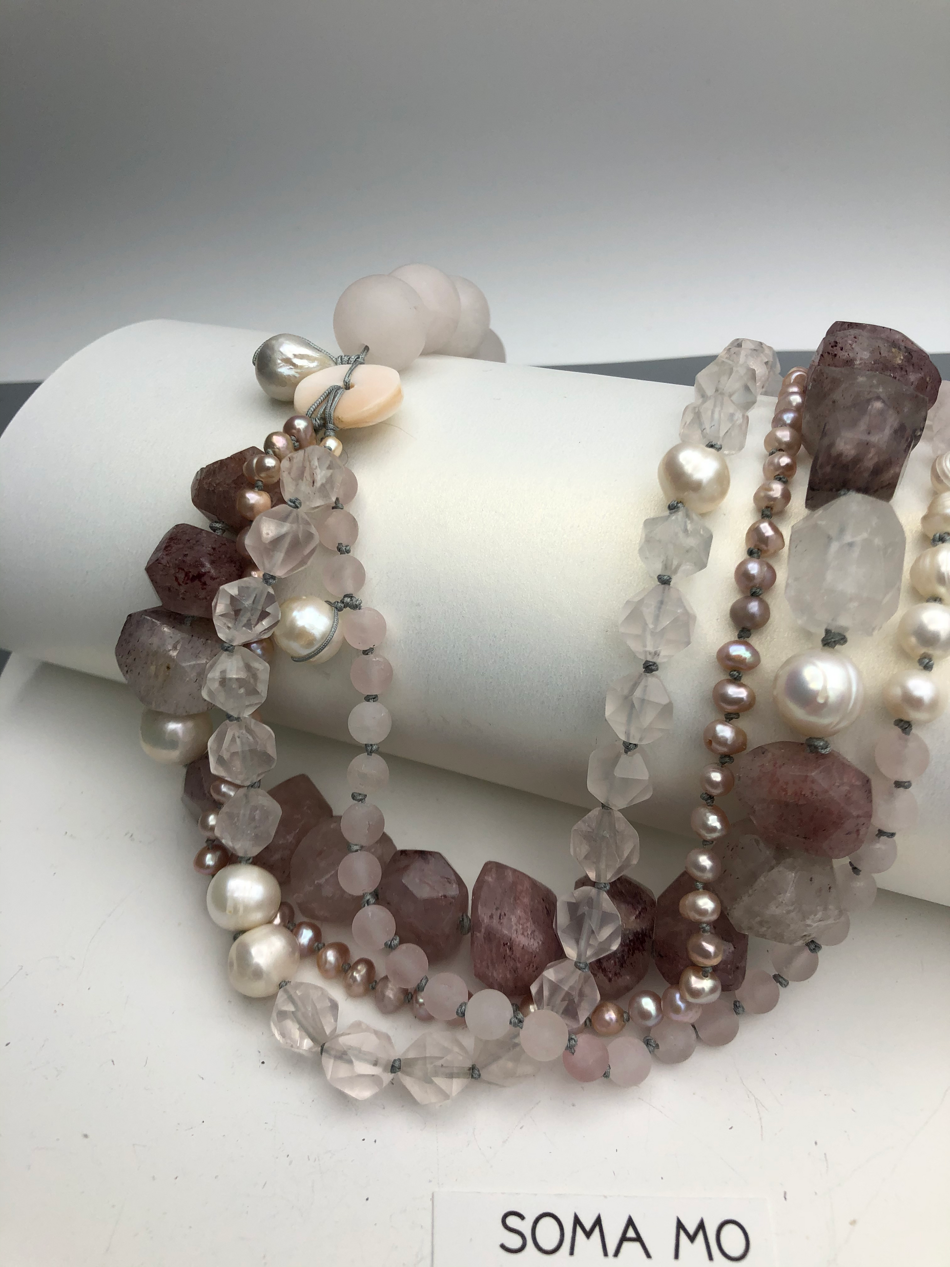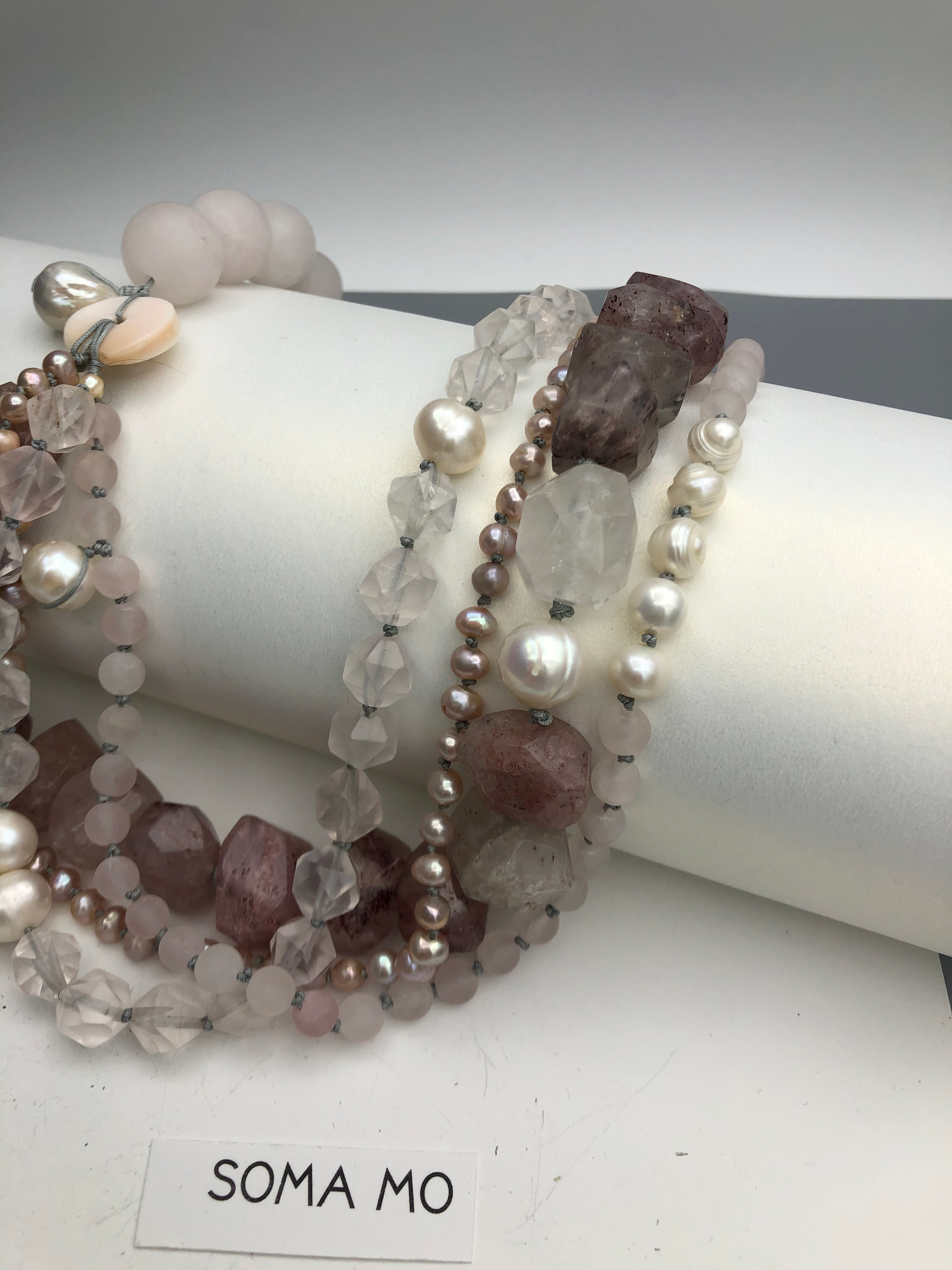 Materials : Strawberry quartz, rose quartz, fresh water pearl