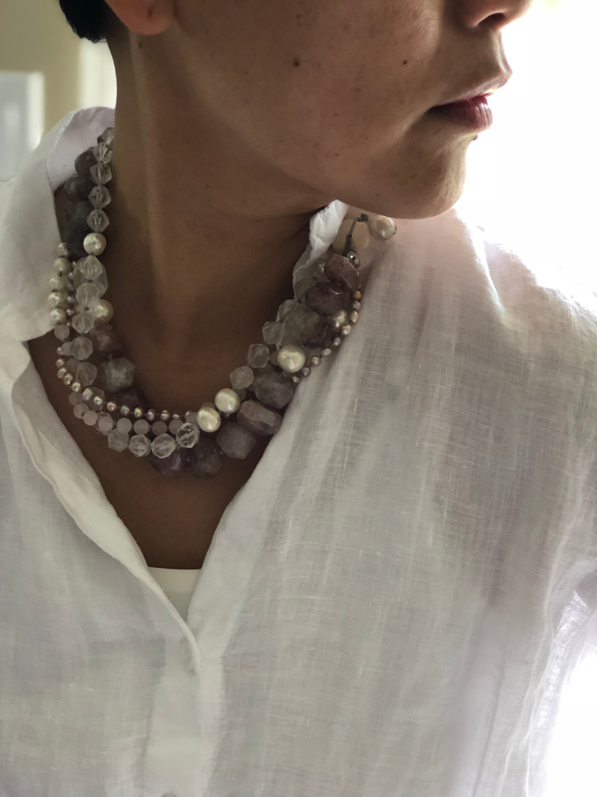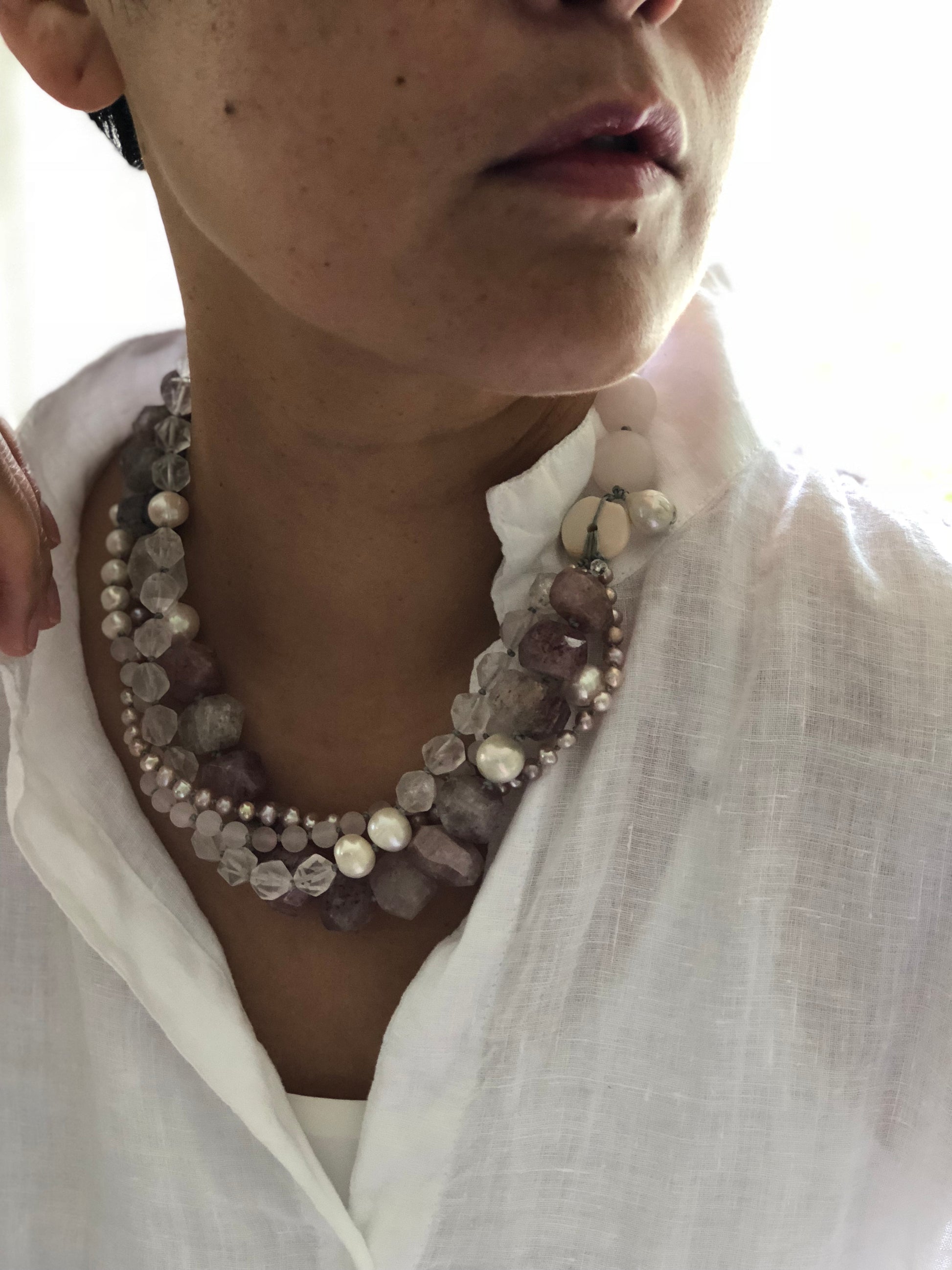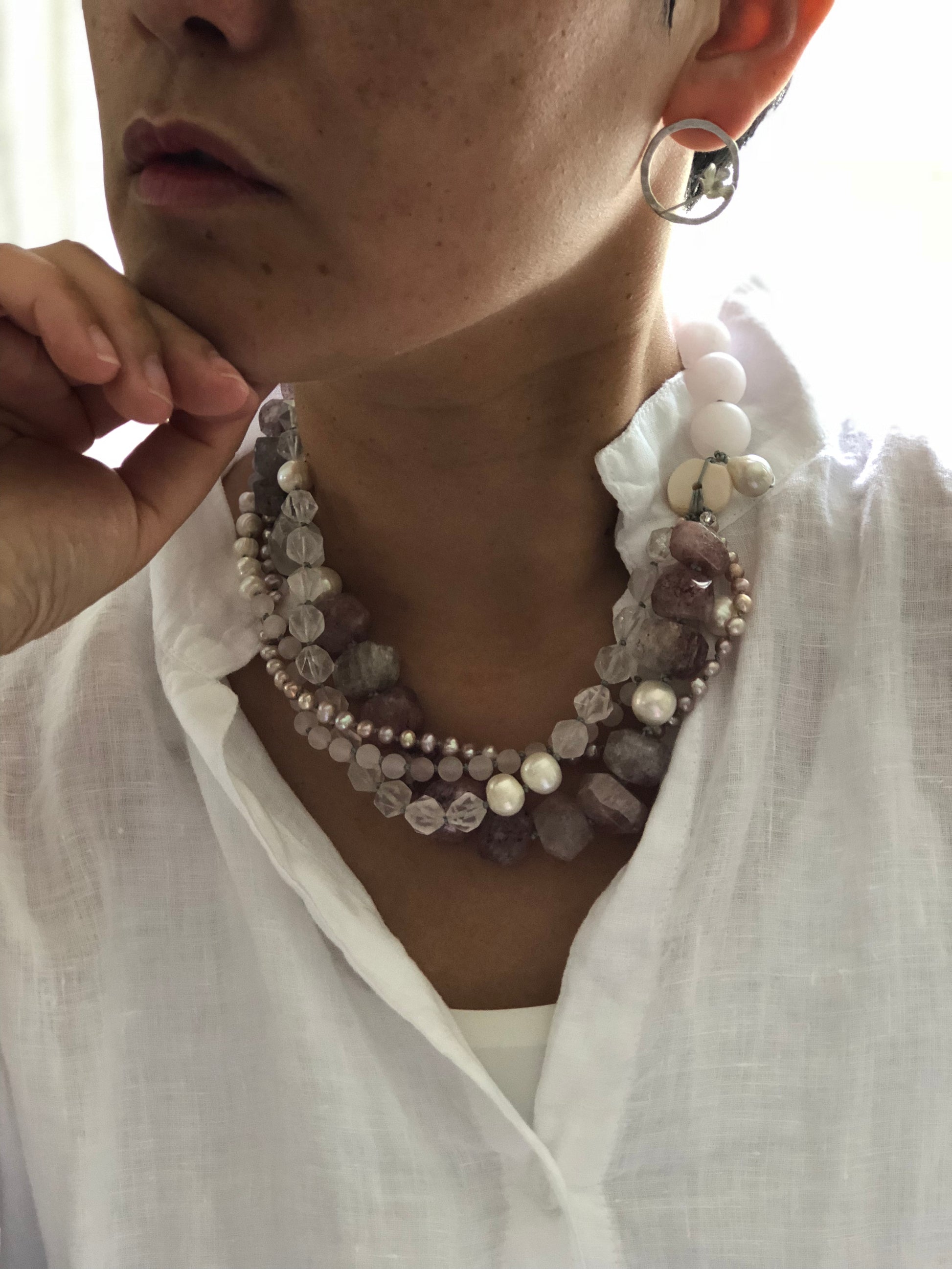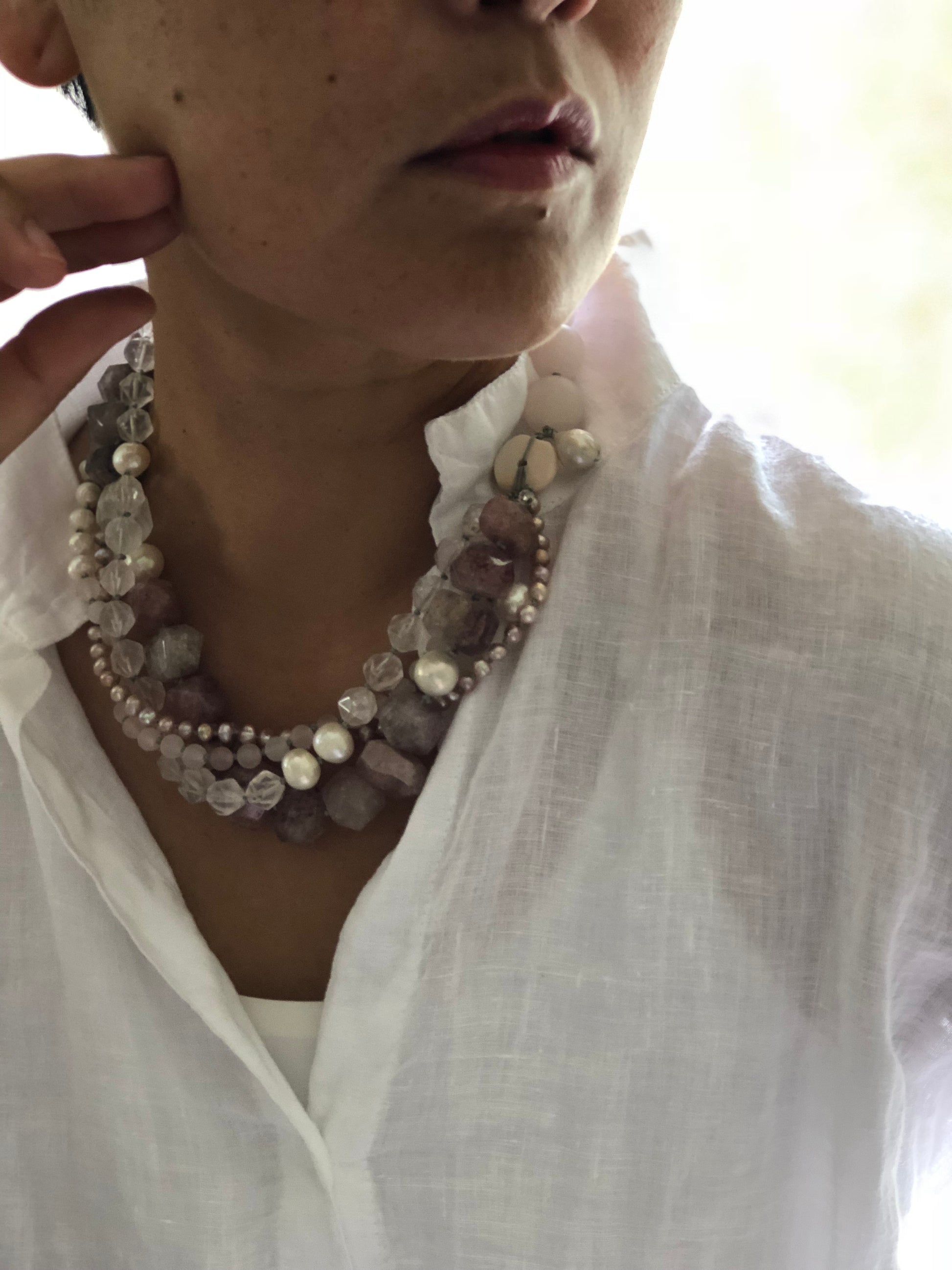 Materials : Strawberry quartz, rose quartz, fresh water pearl