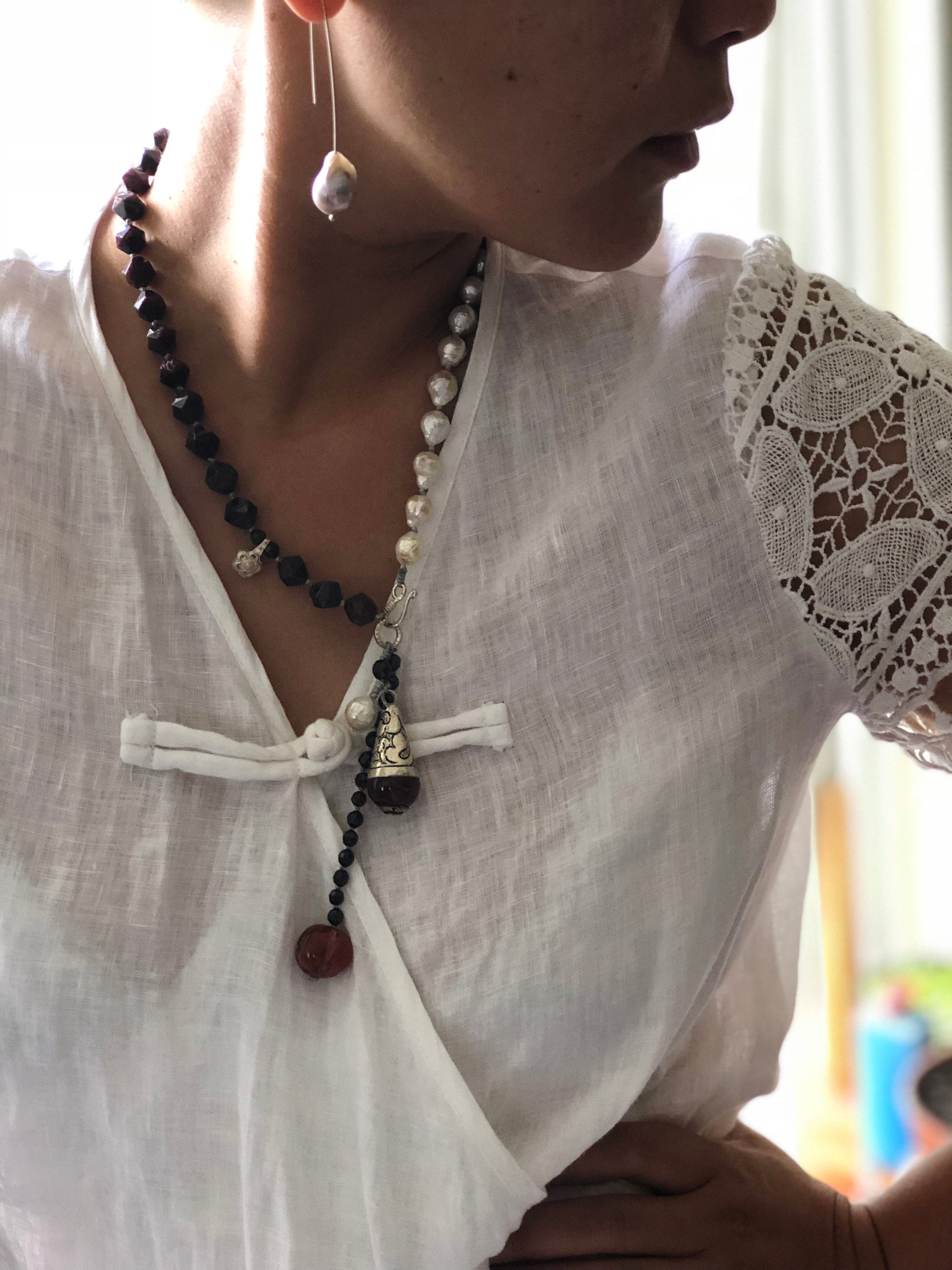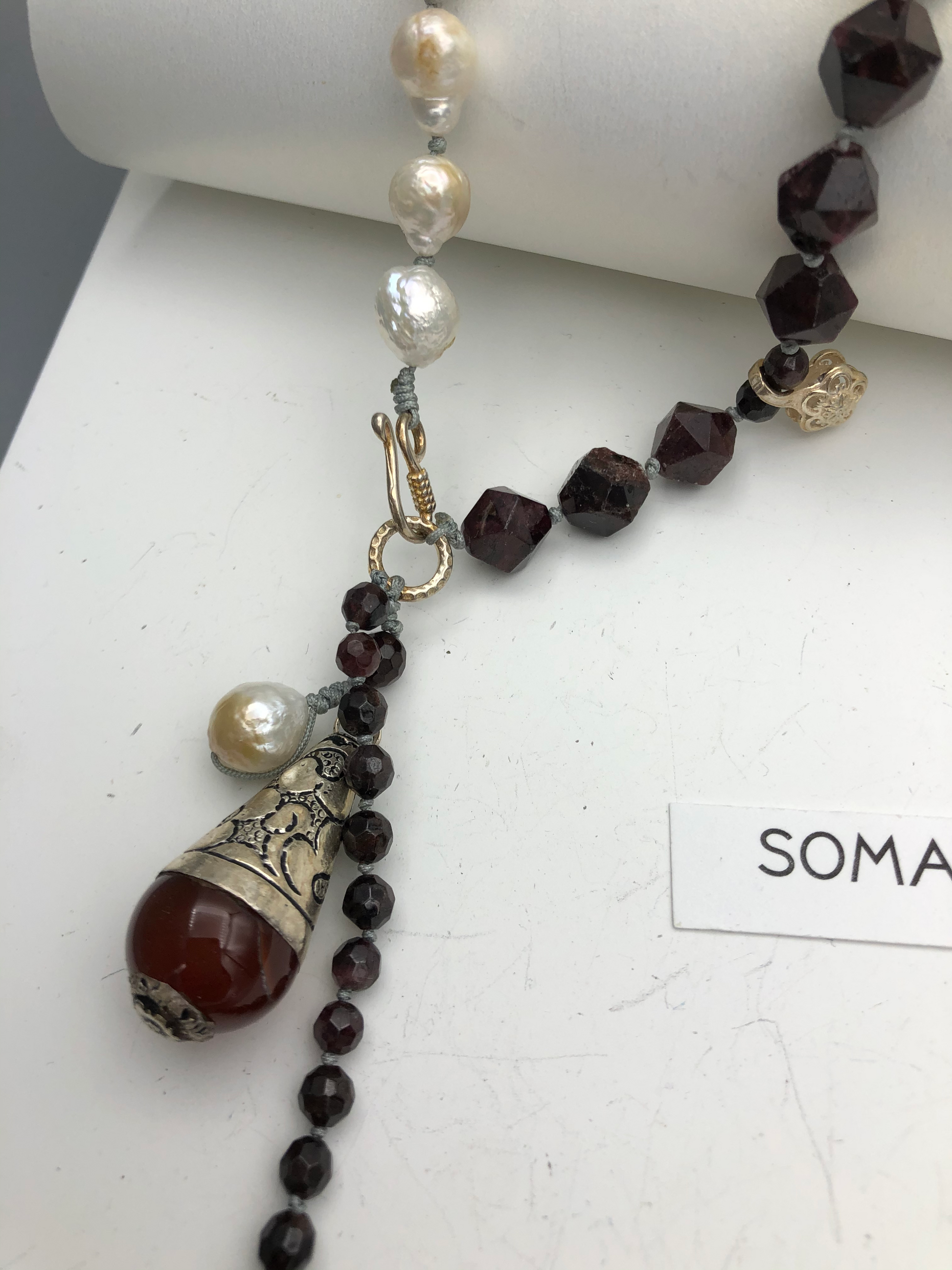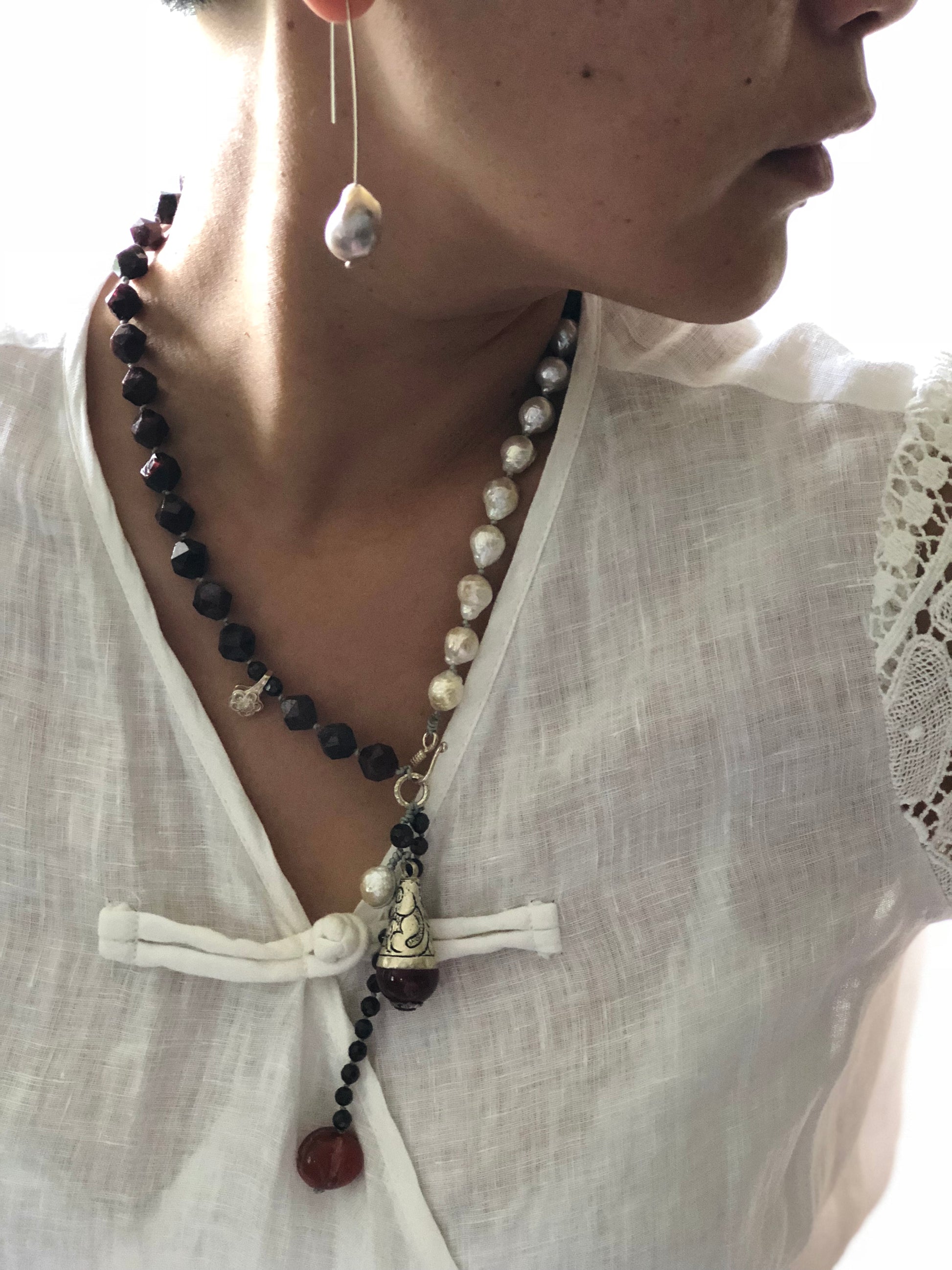 Materials : Garnet, Tibetan ruby pendent with silver, fresh water pearl, silver