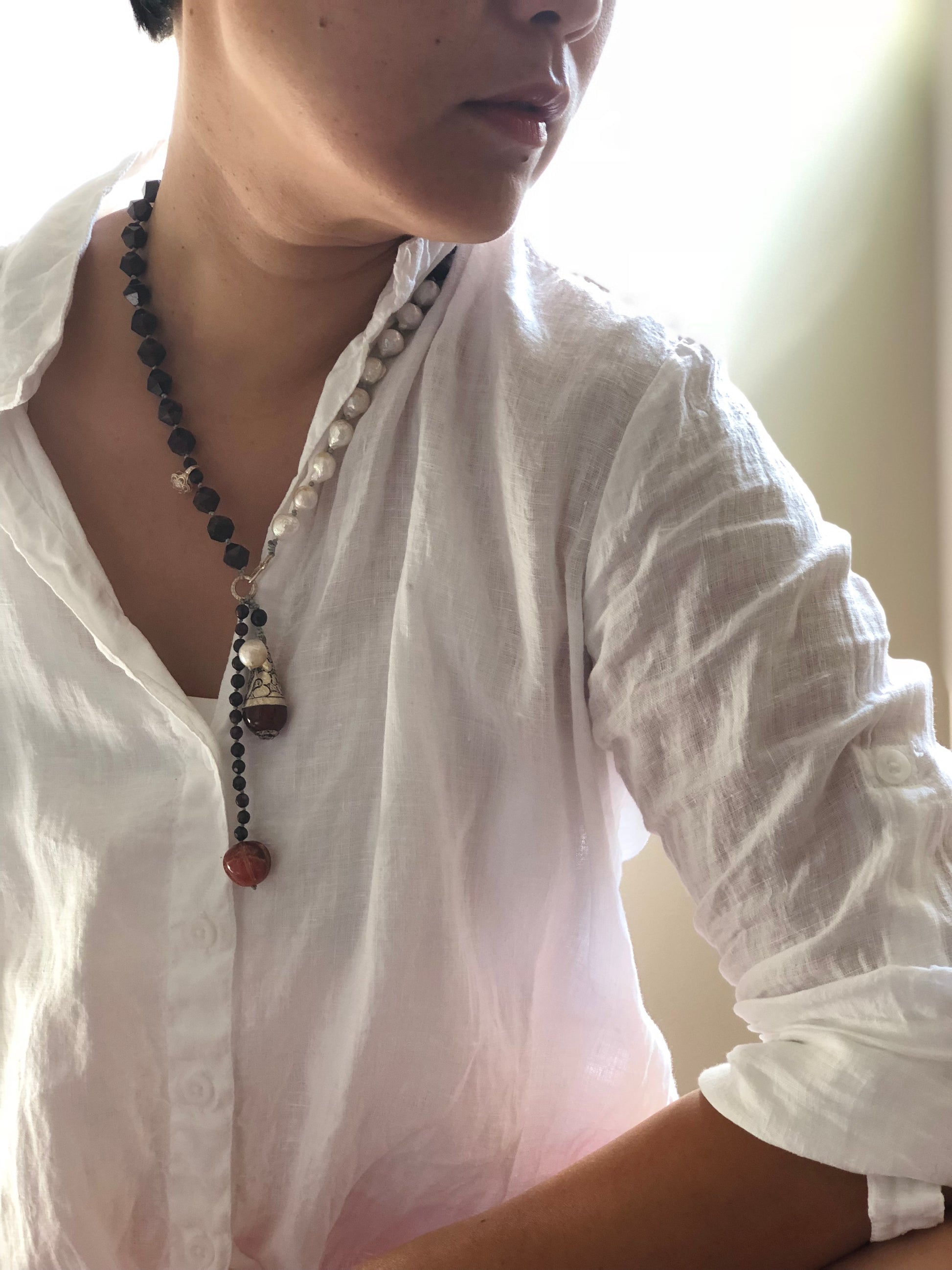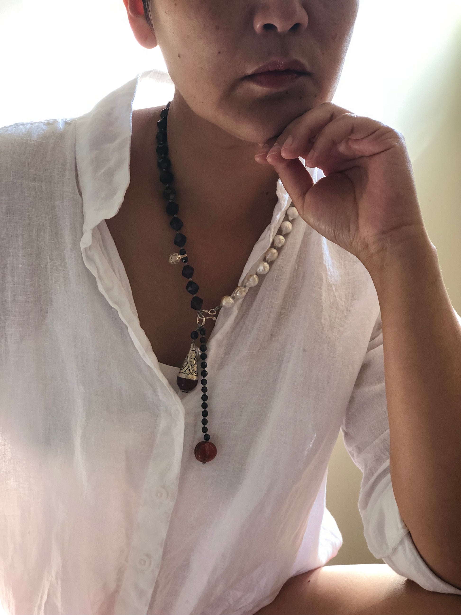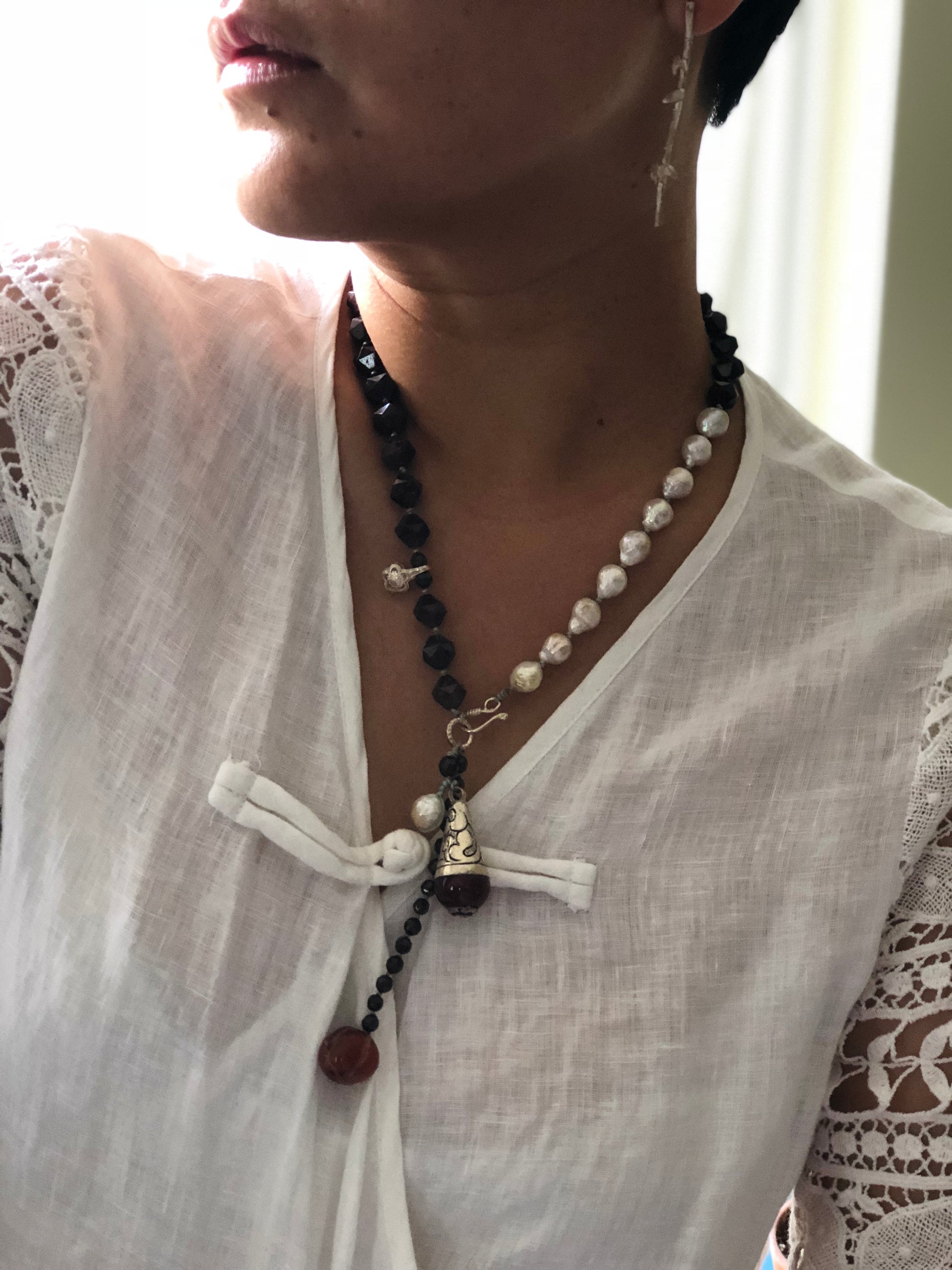 Materials : Garnet, Tibetan ruby pendent with silver, fresh water pearl, silver