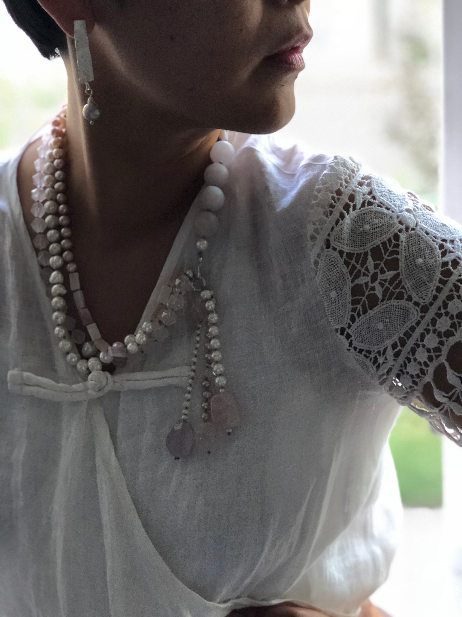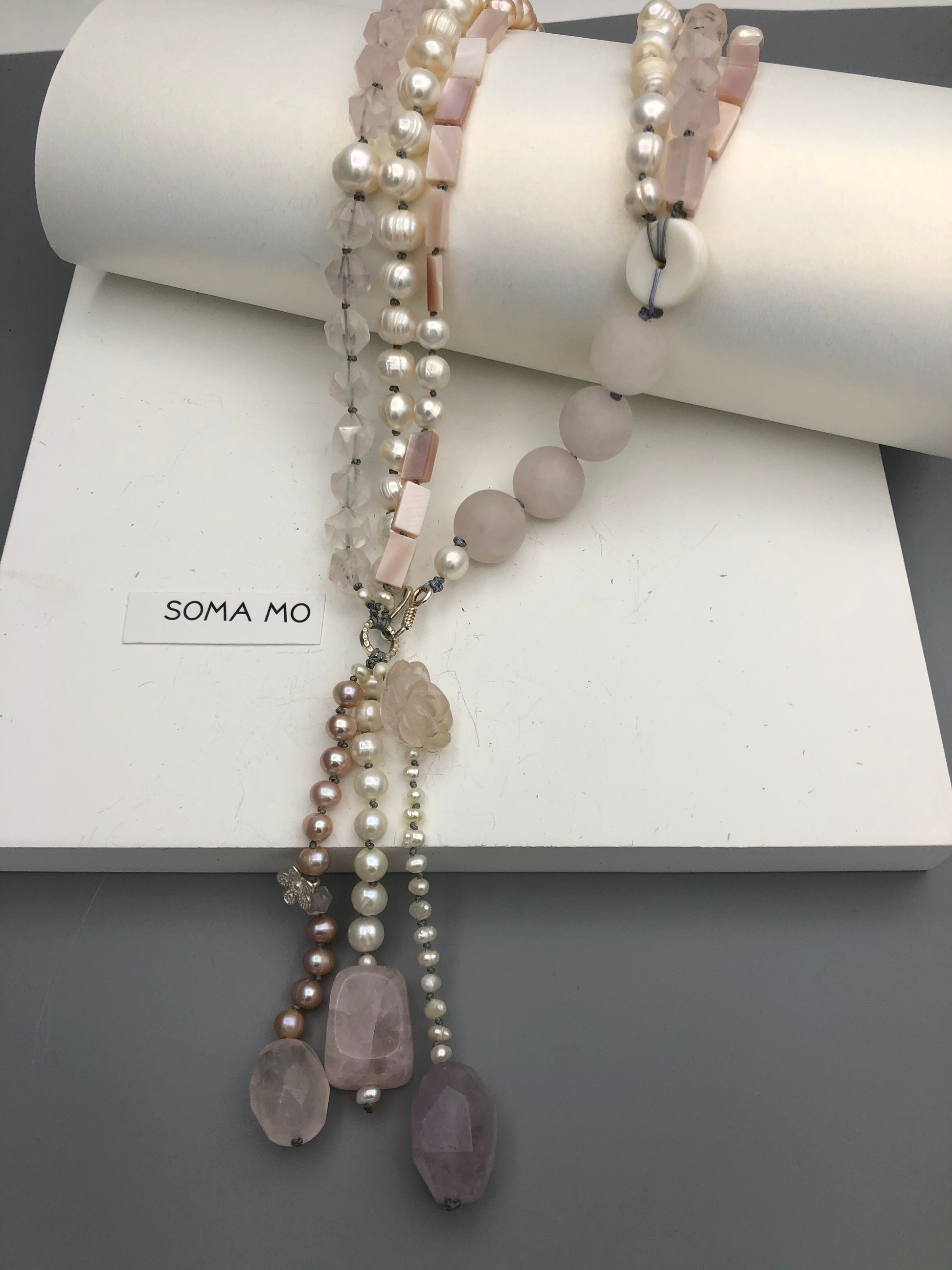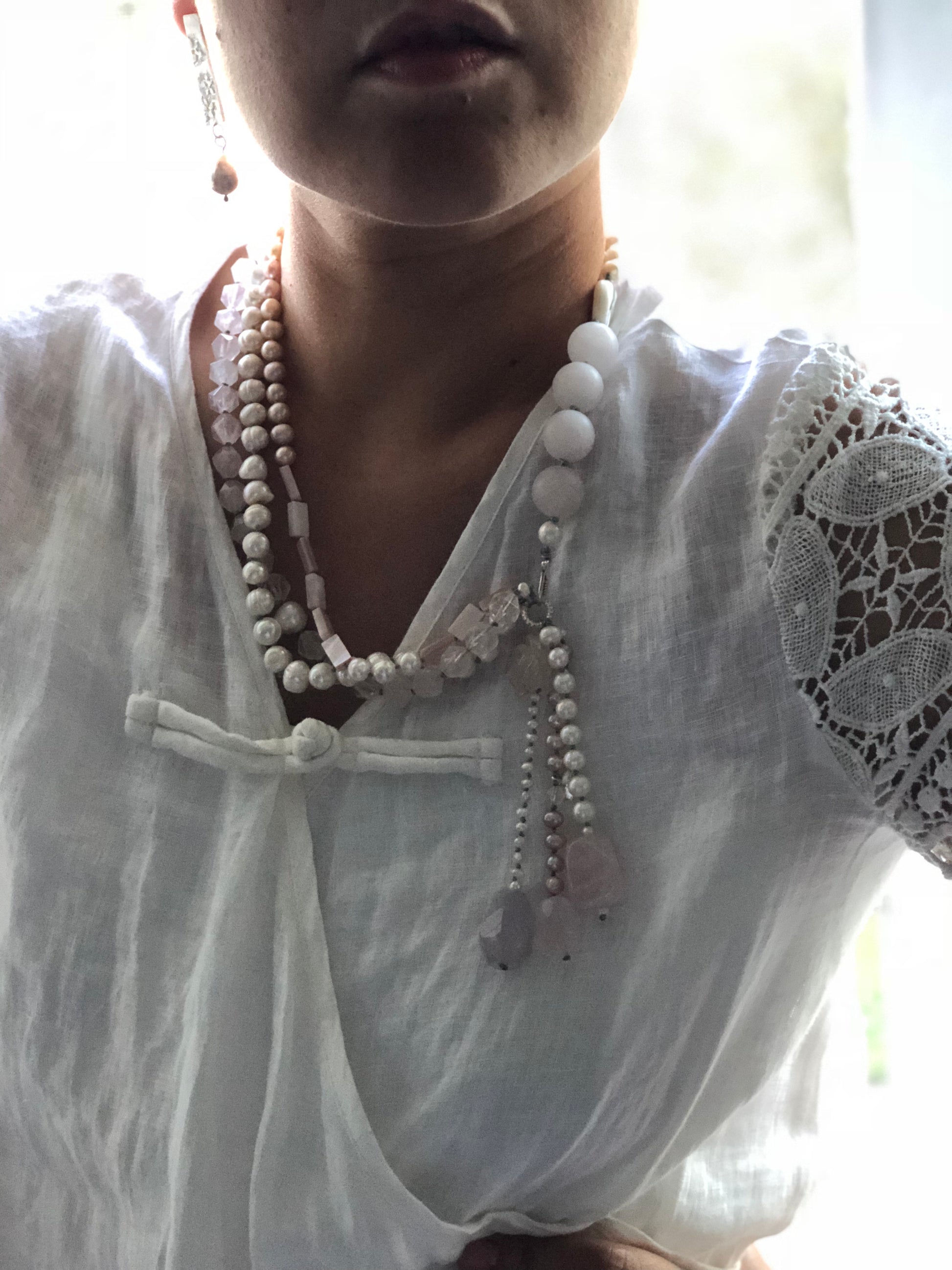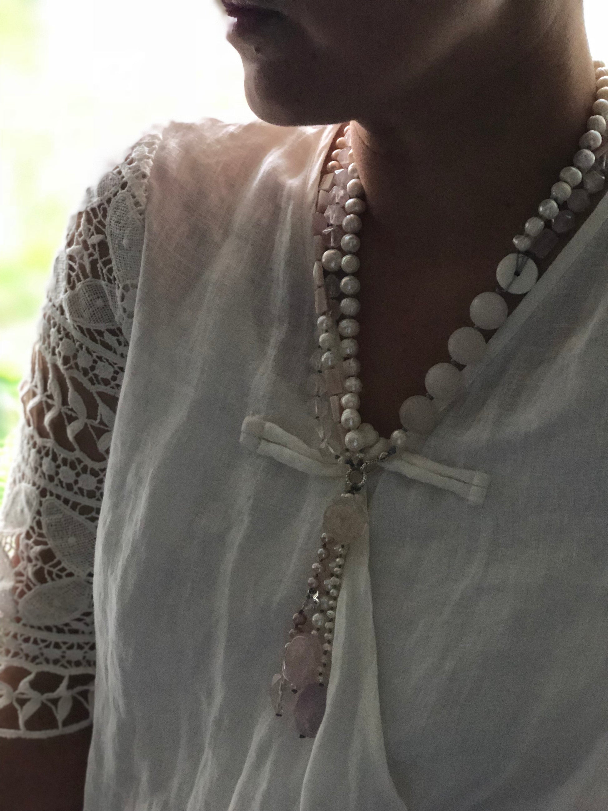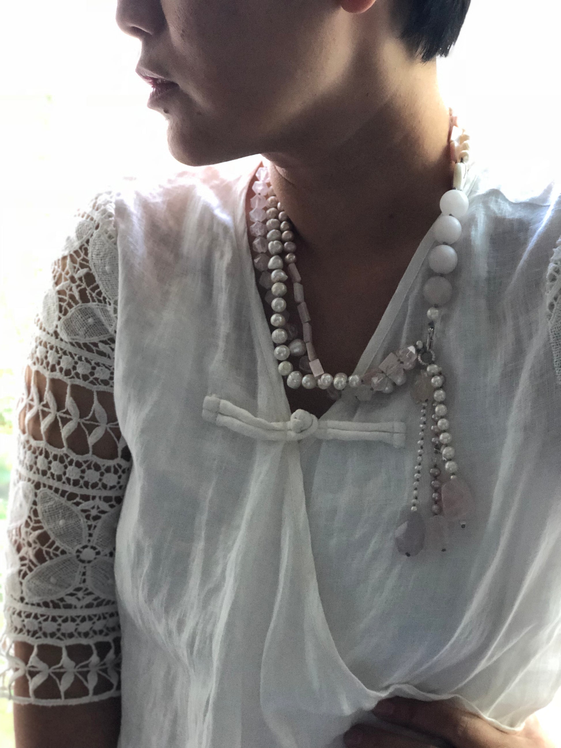 Materials : Rose quartz, fresh water pearl, silver, amethyst