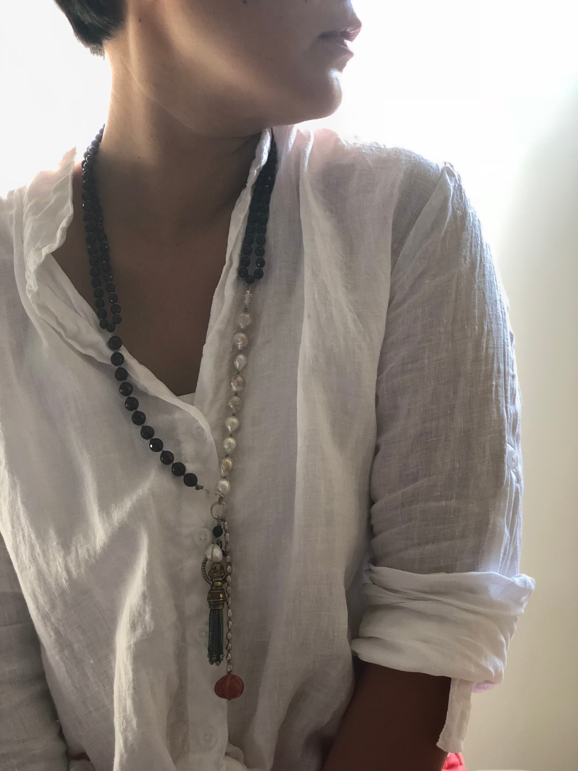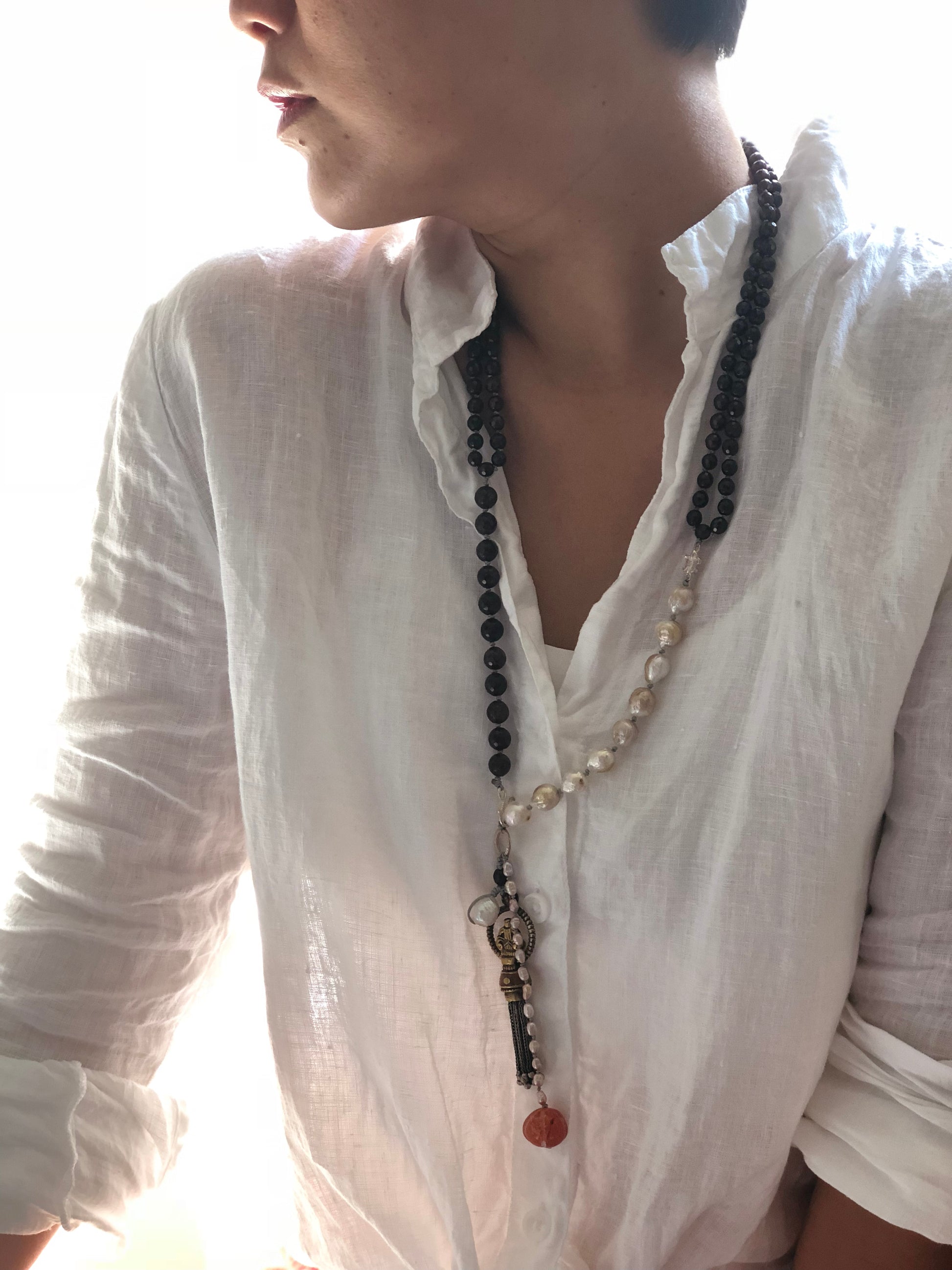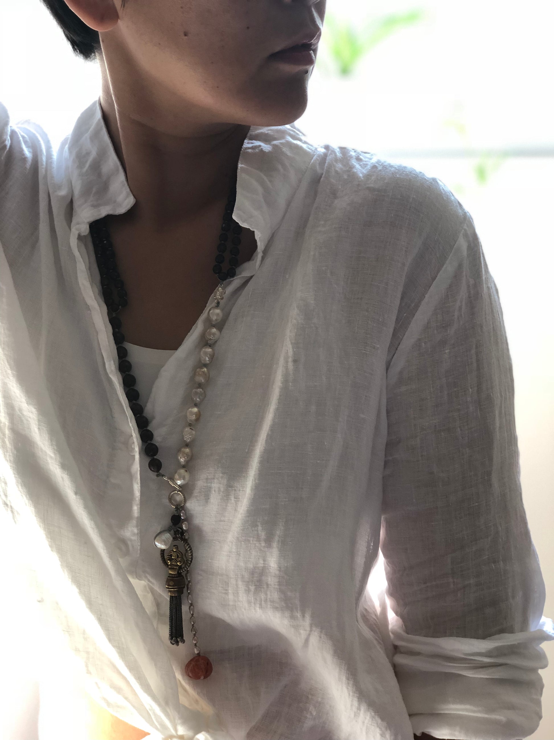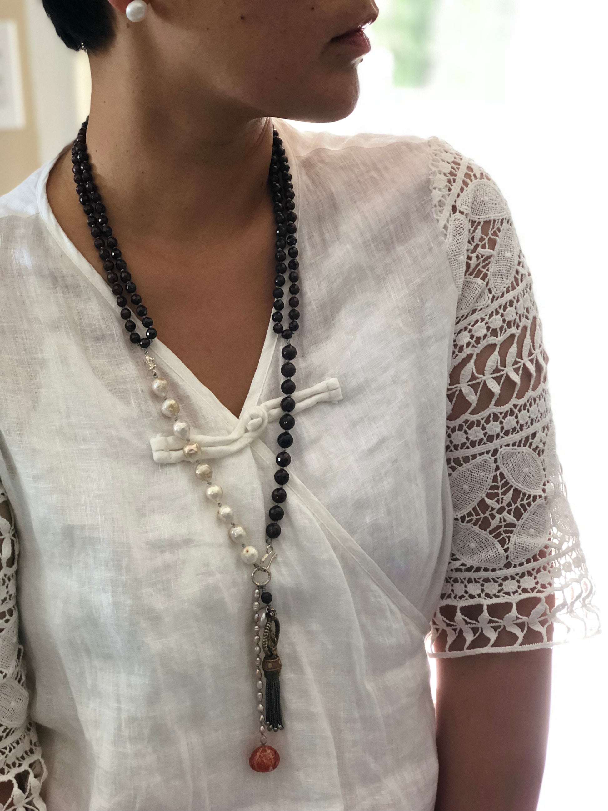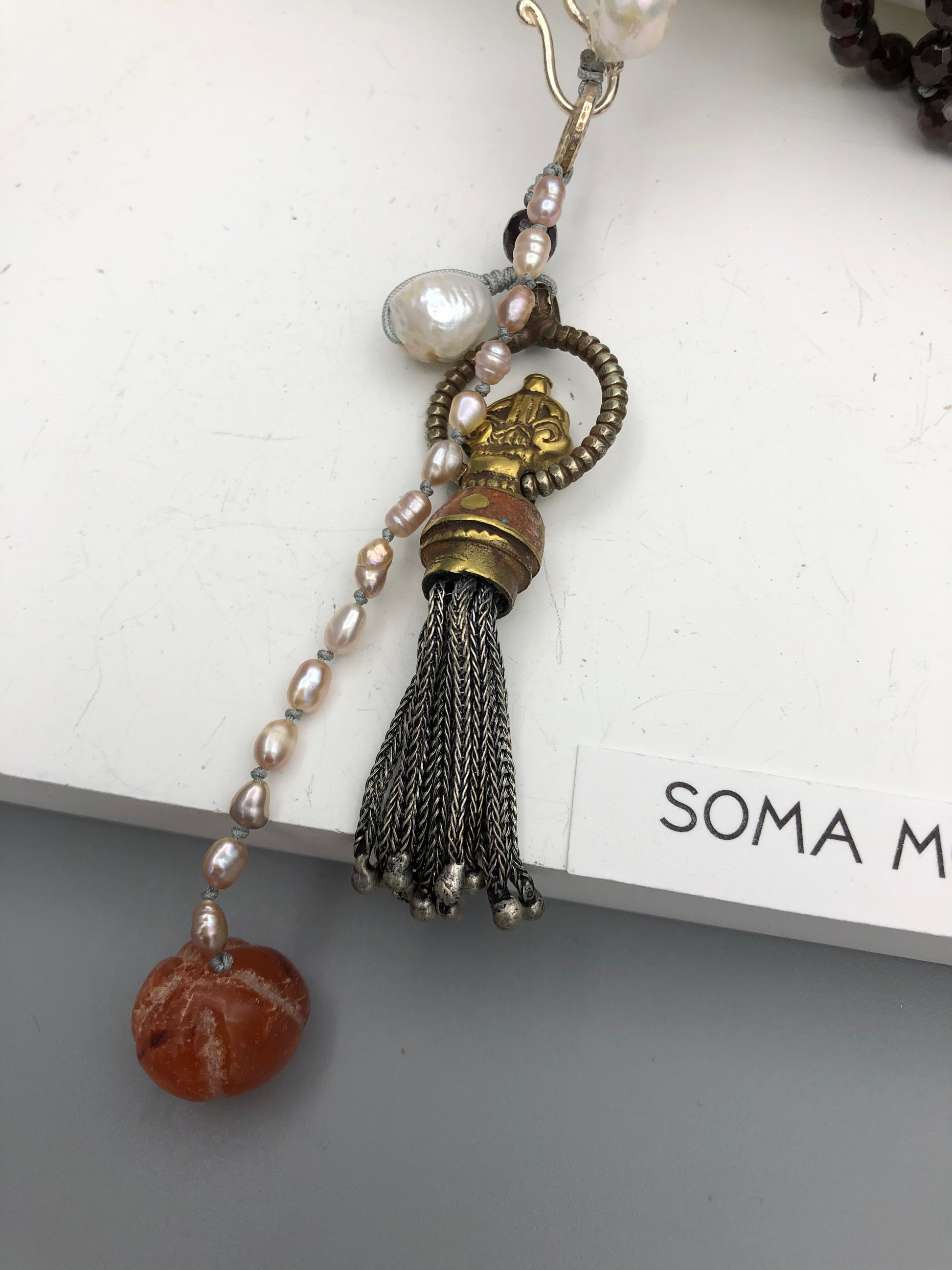 Materials : Garnet, fresh water pearl, agate, Tibetan pendent