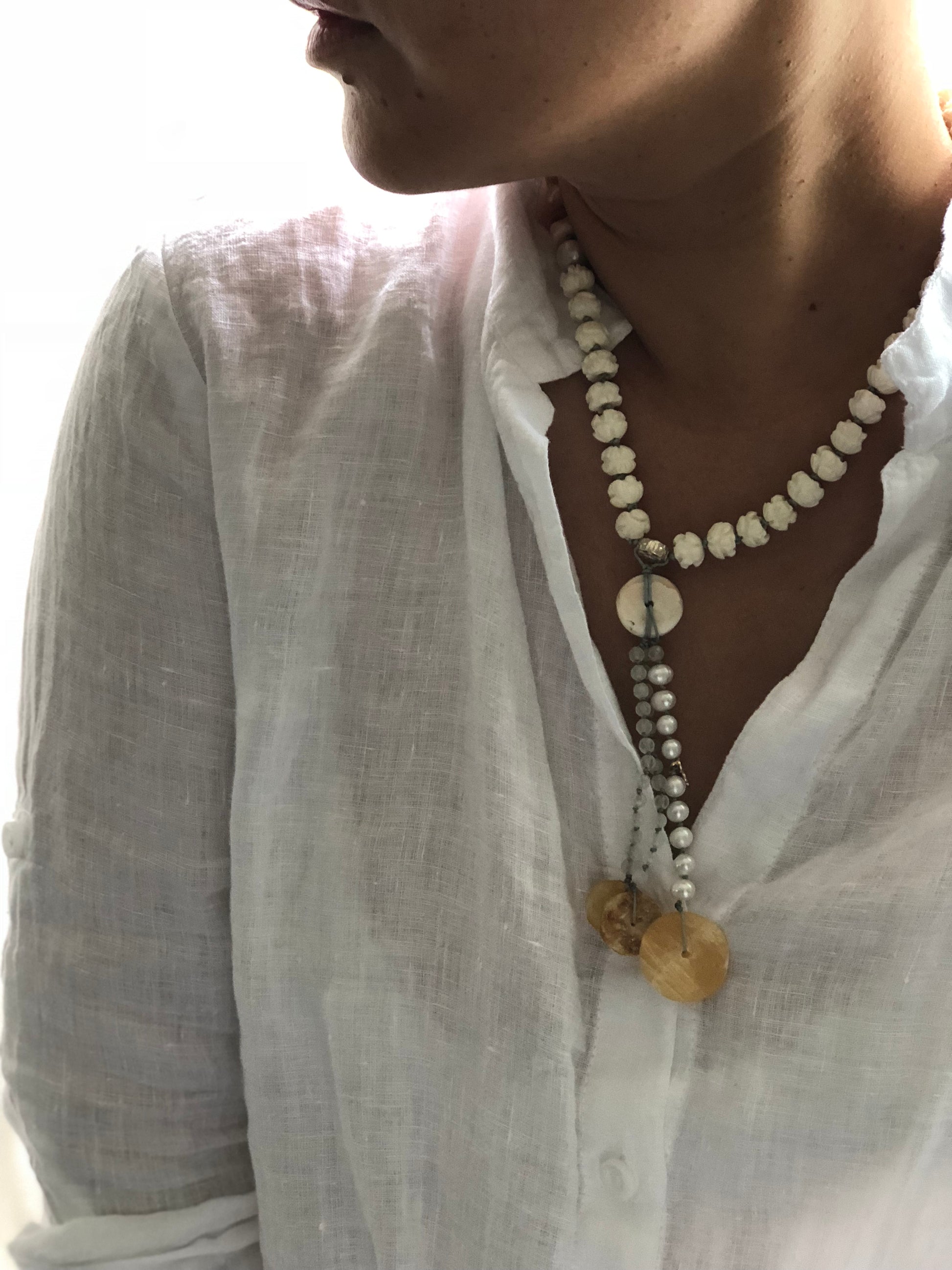 Usually I like to use stone beads, but love to work with this carved beautiful Budhi seeds from Tibet.