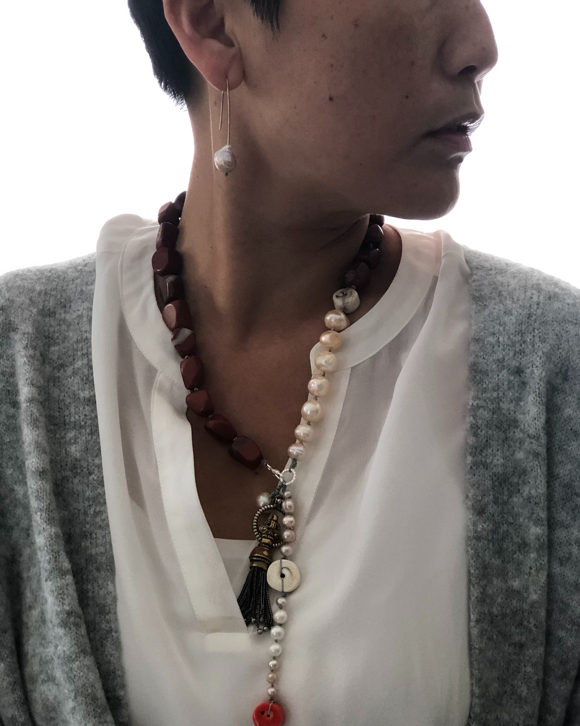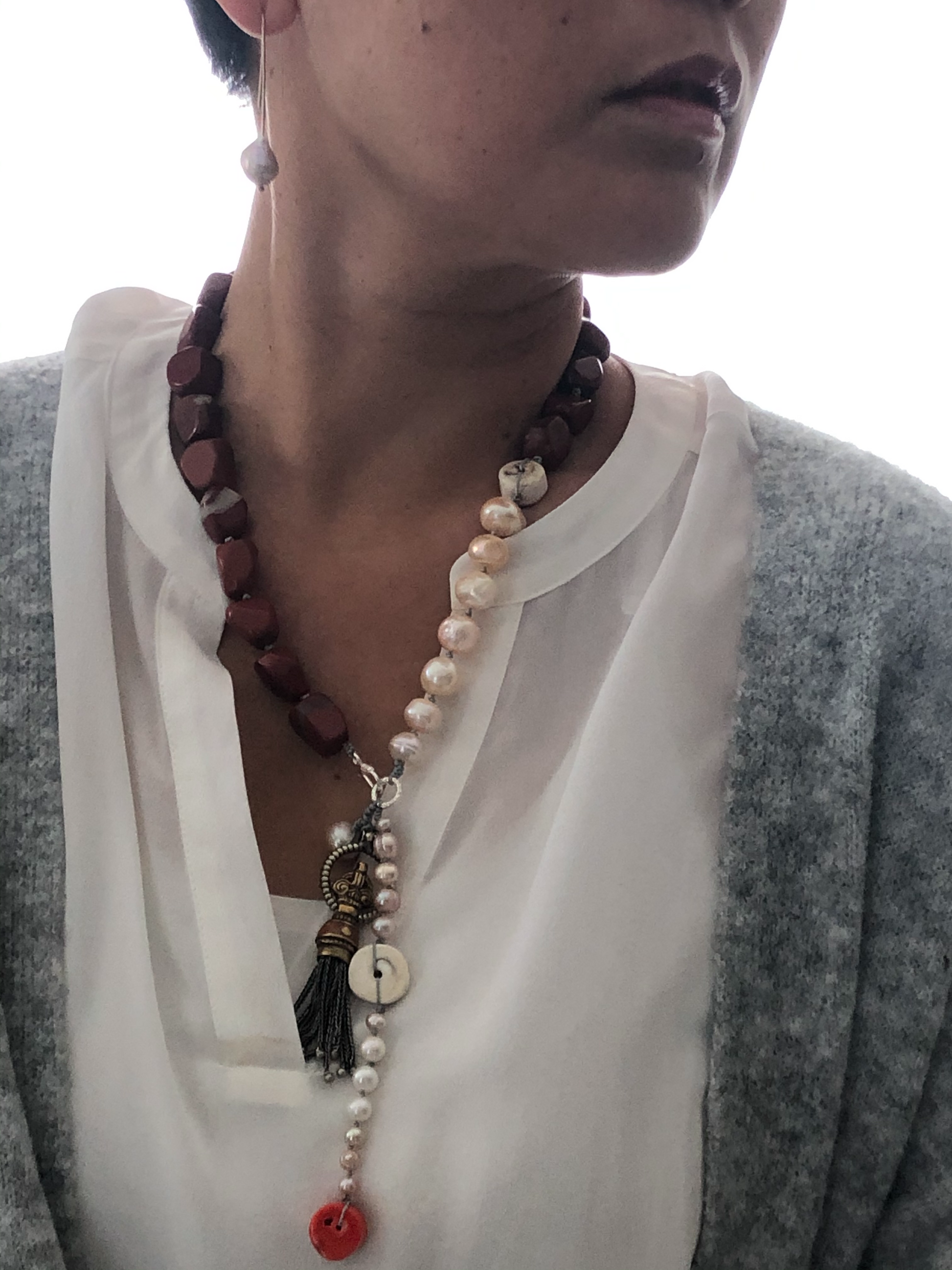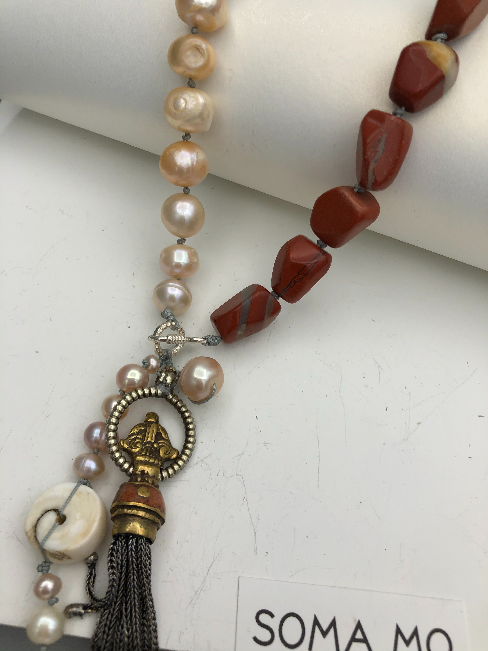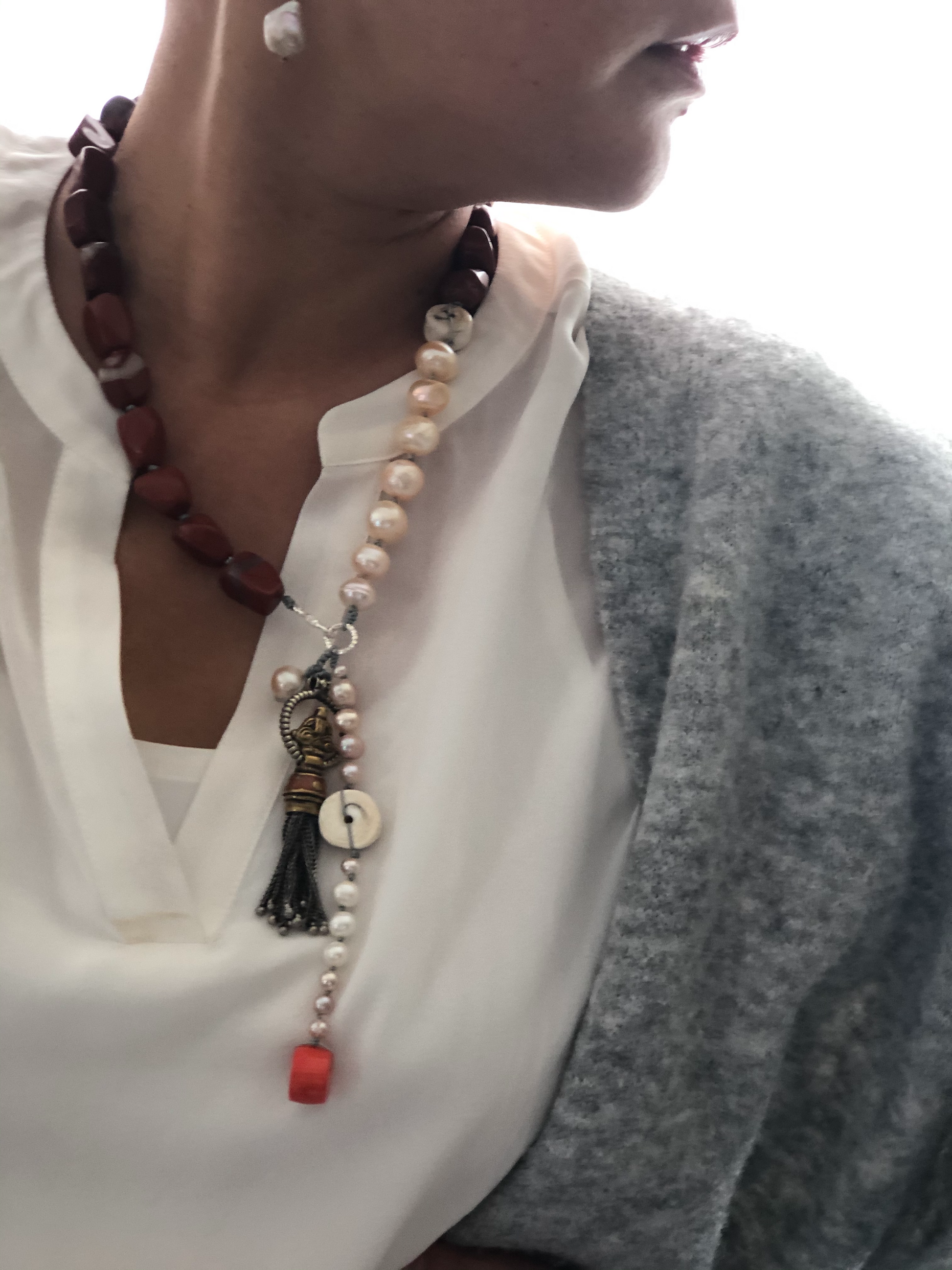 Materials : Red jasper, fresh water pearl, Tibetan pendent