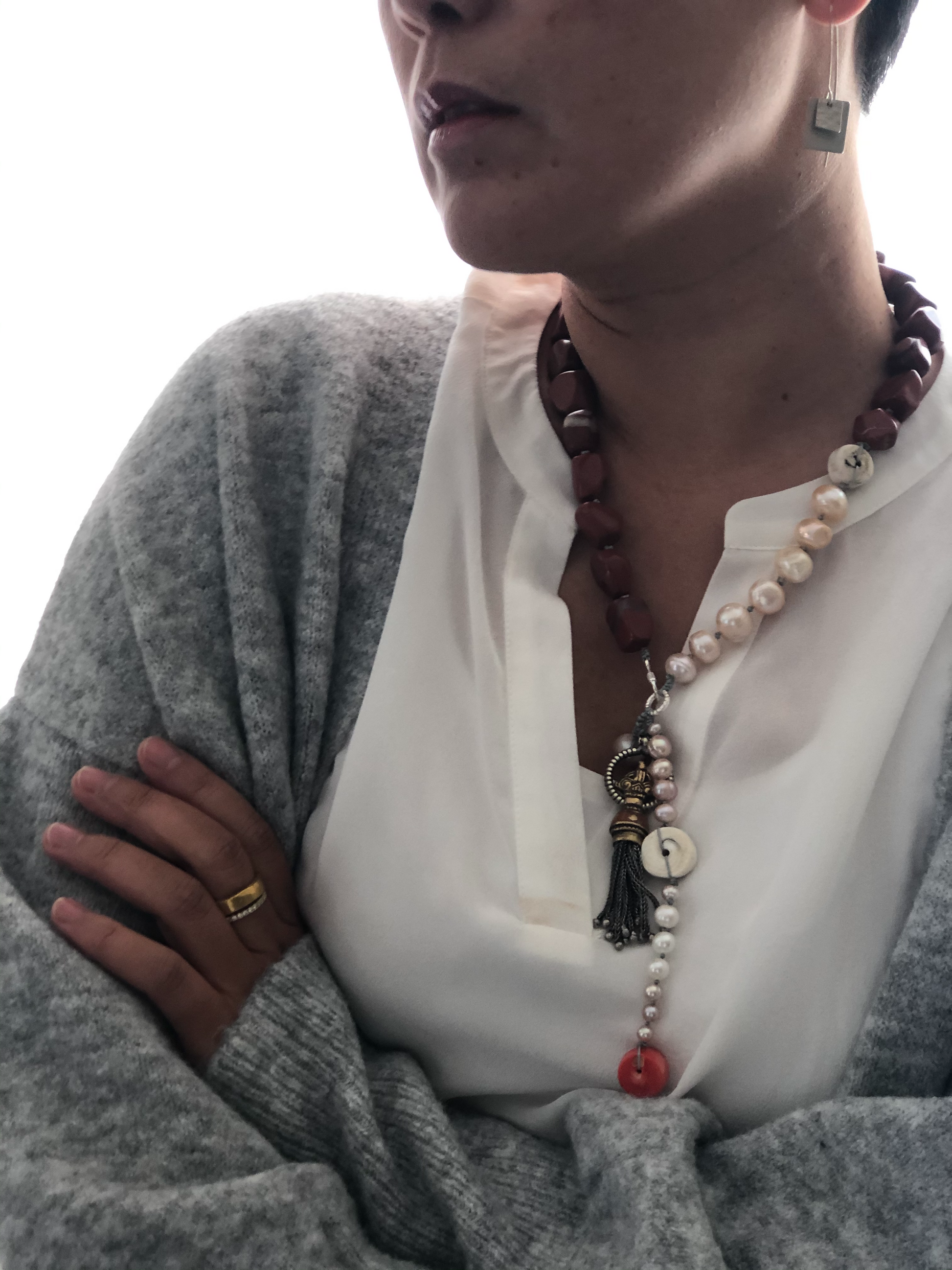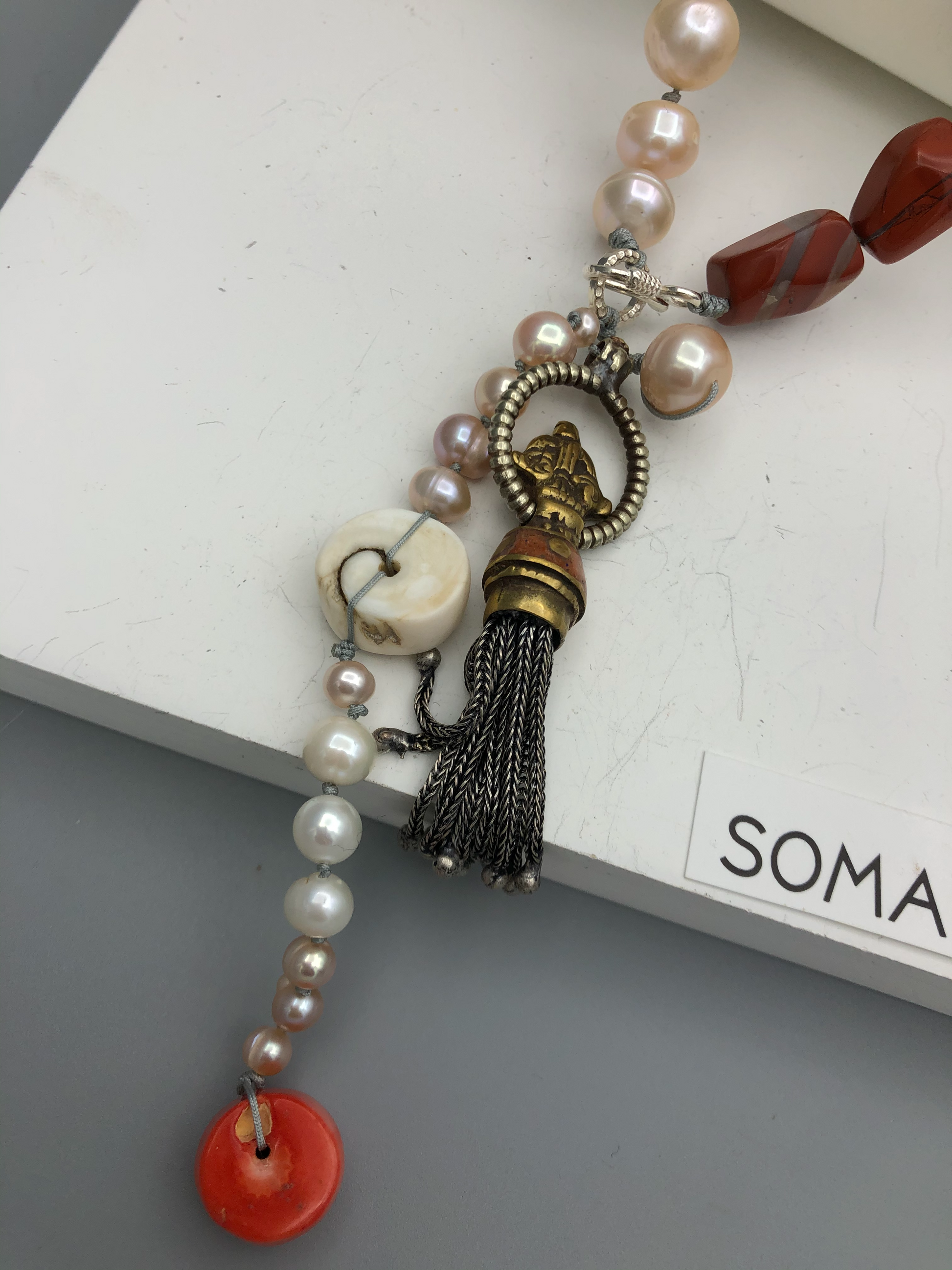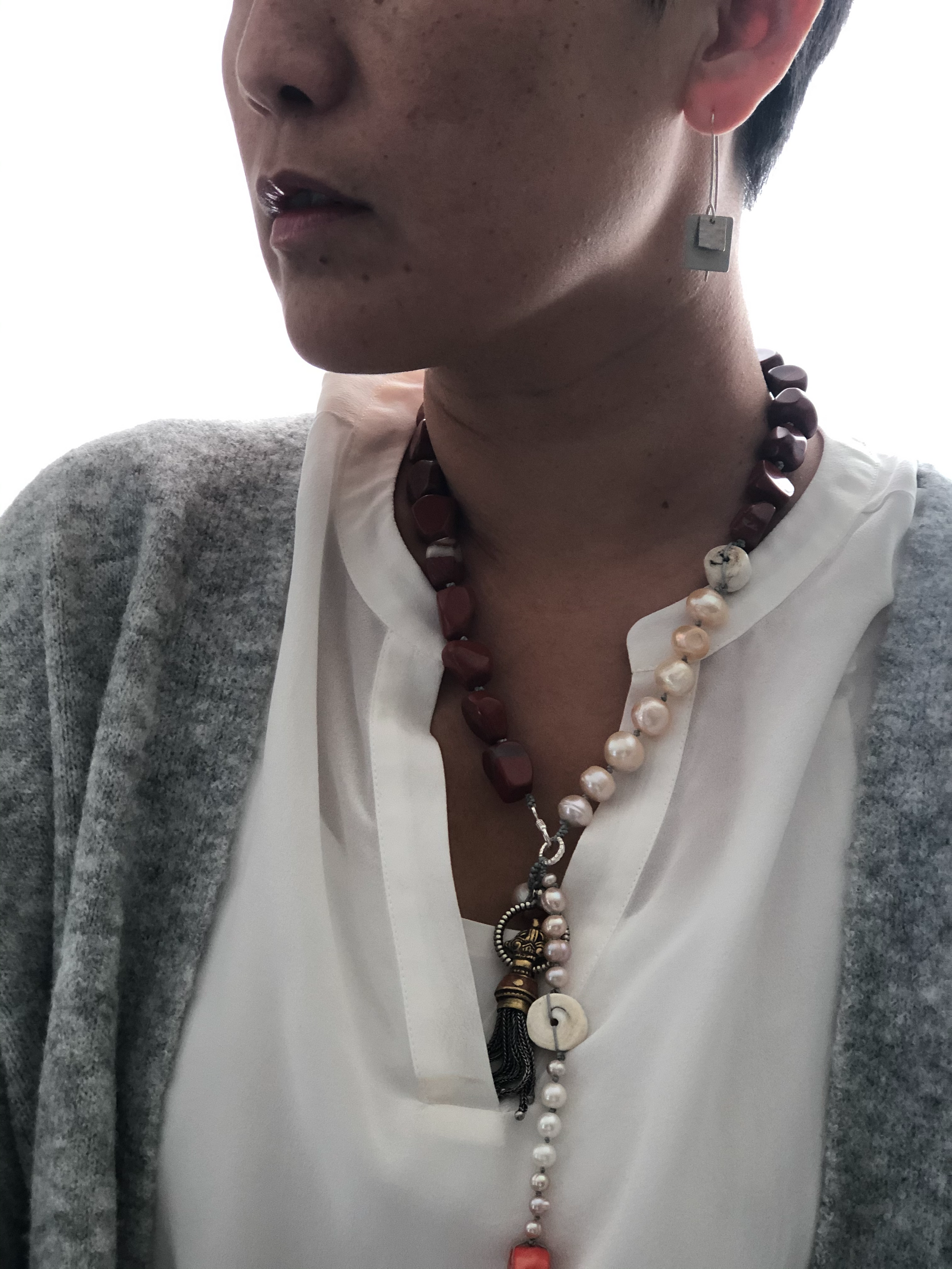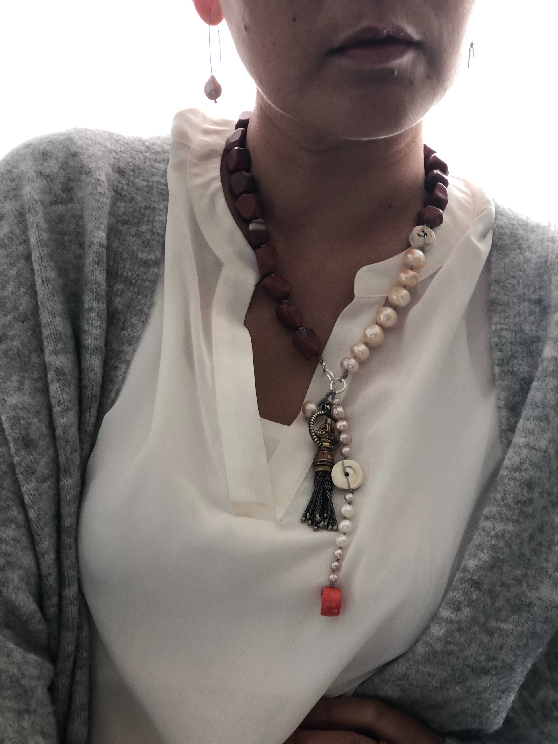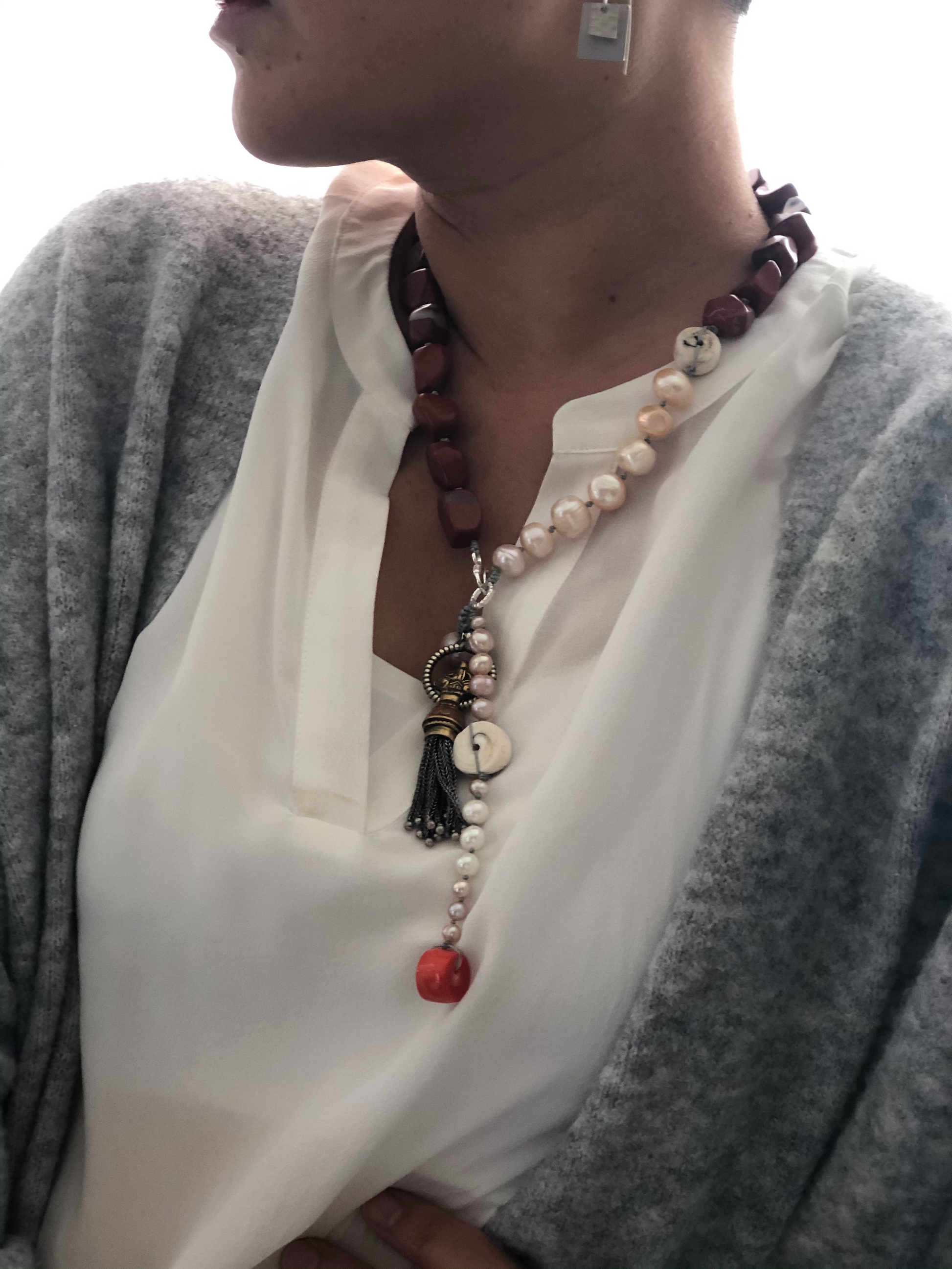 Materials : Red jasper, fresh water pearl, Tibetan pendent
