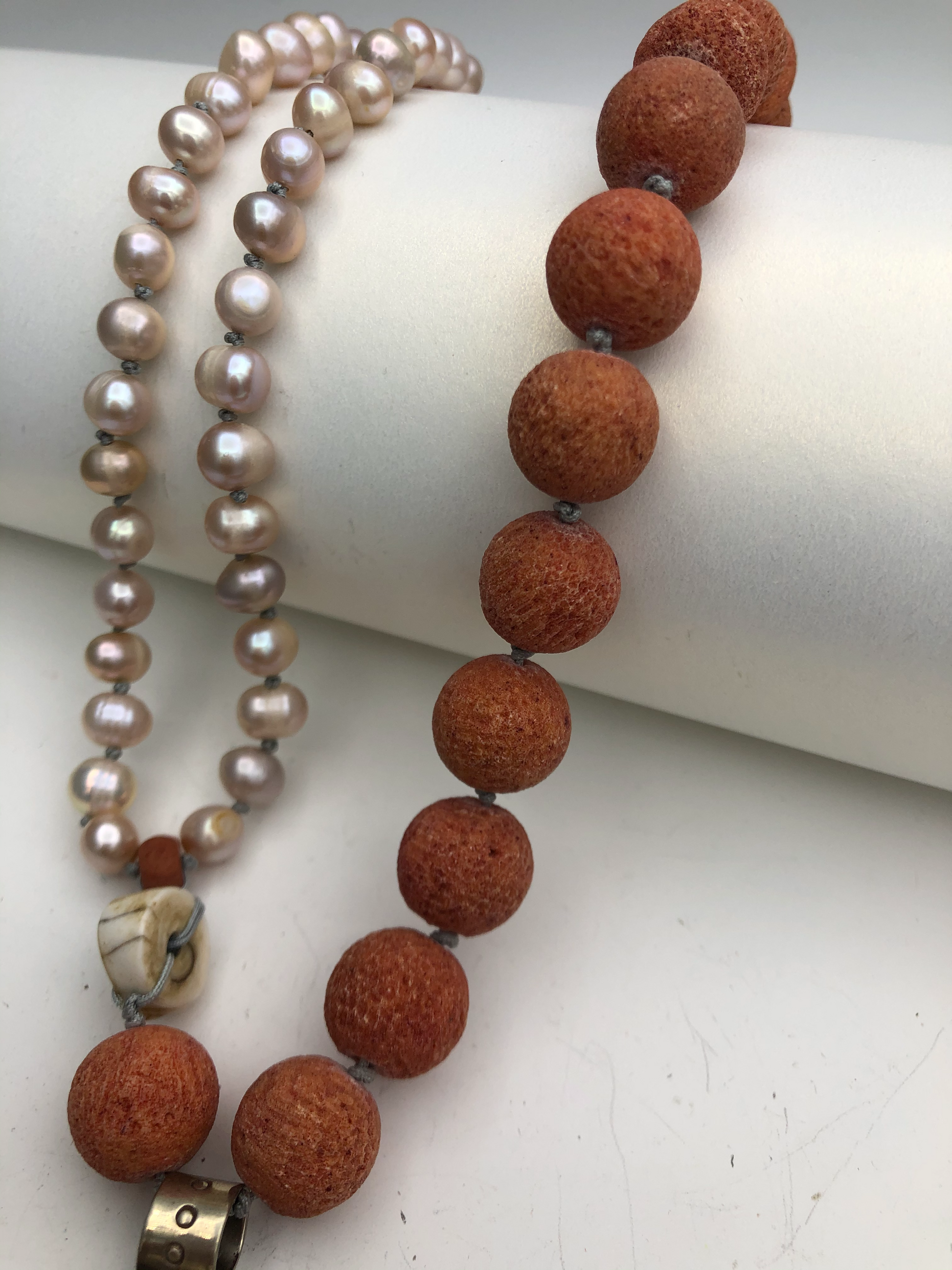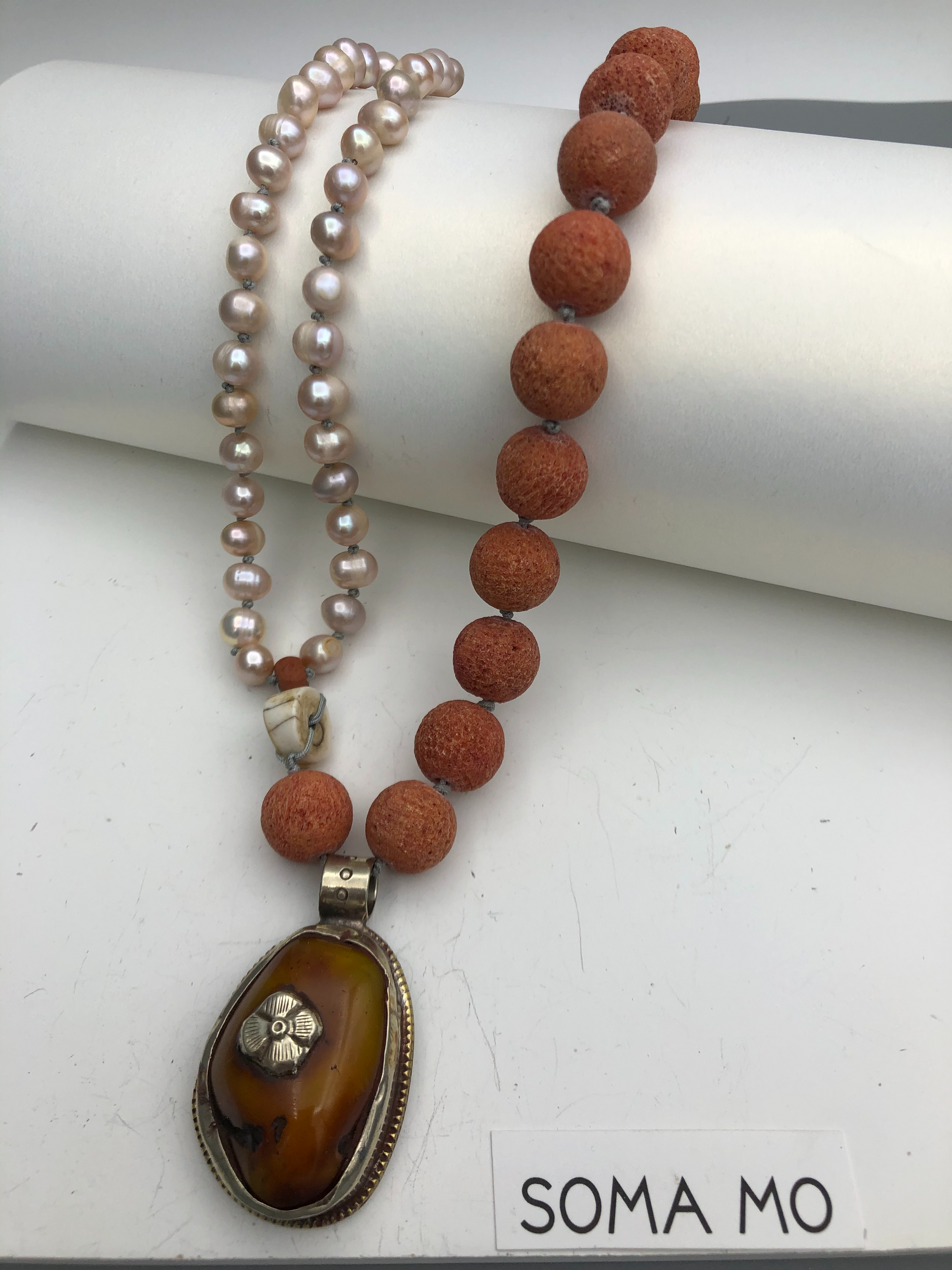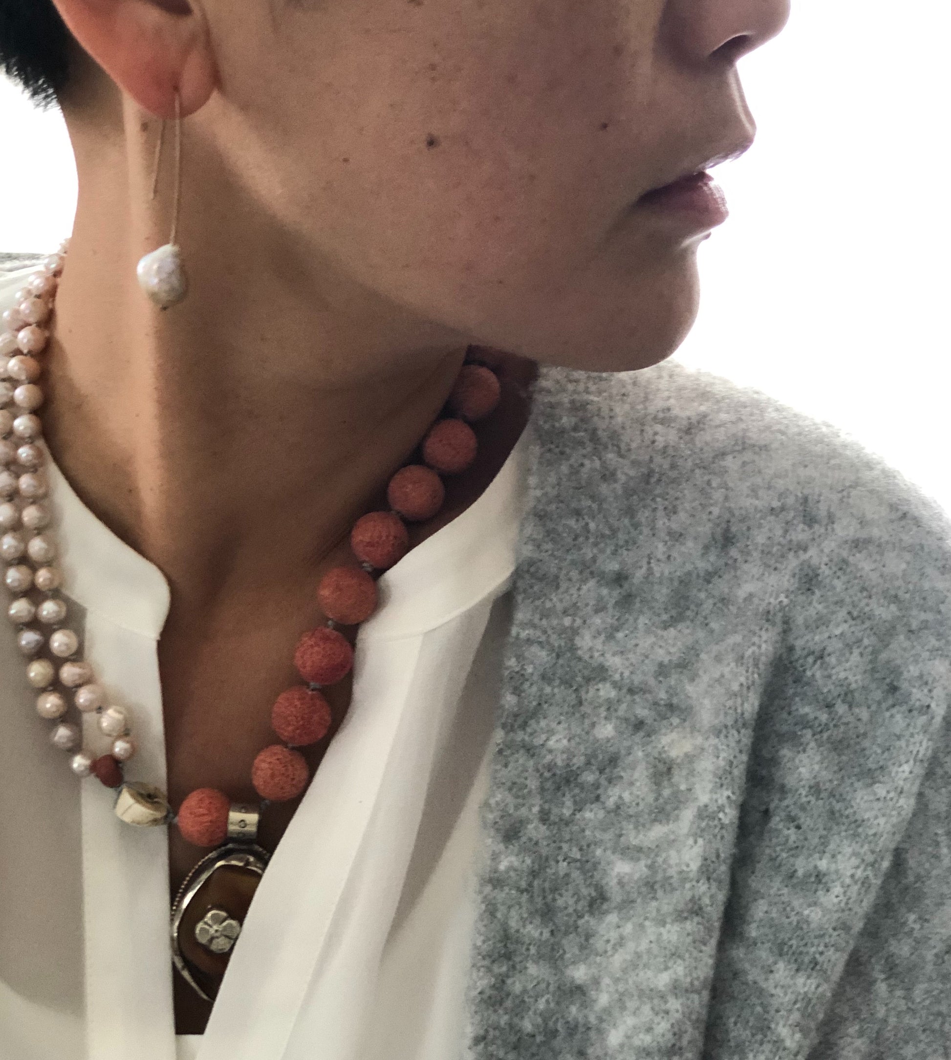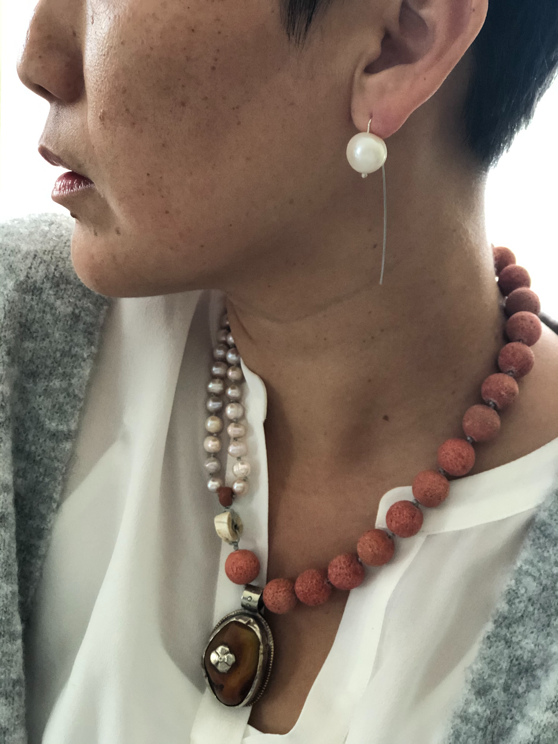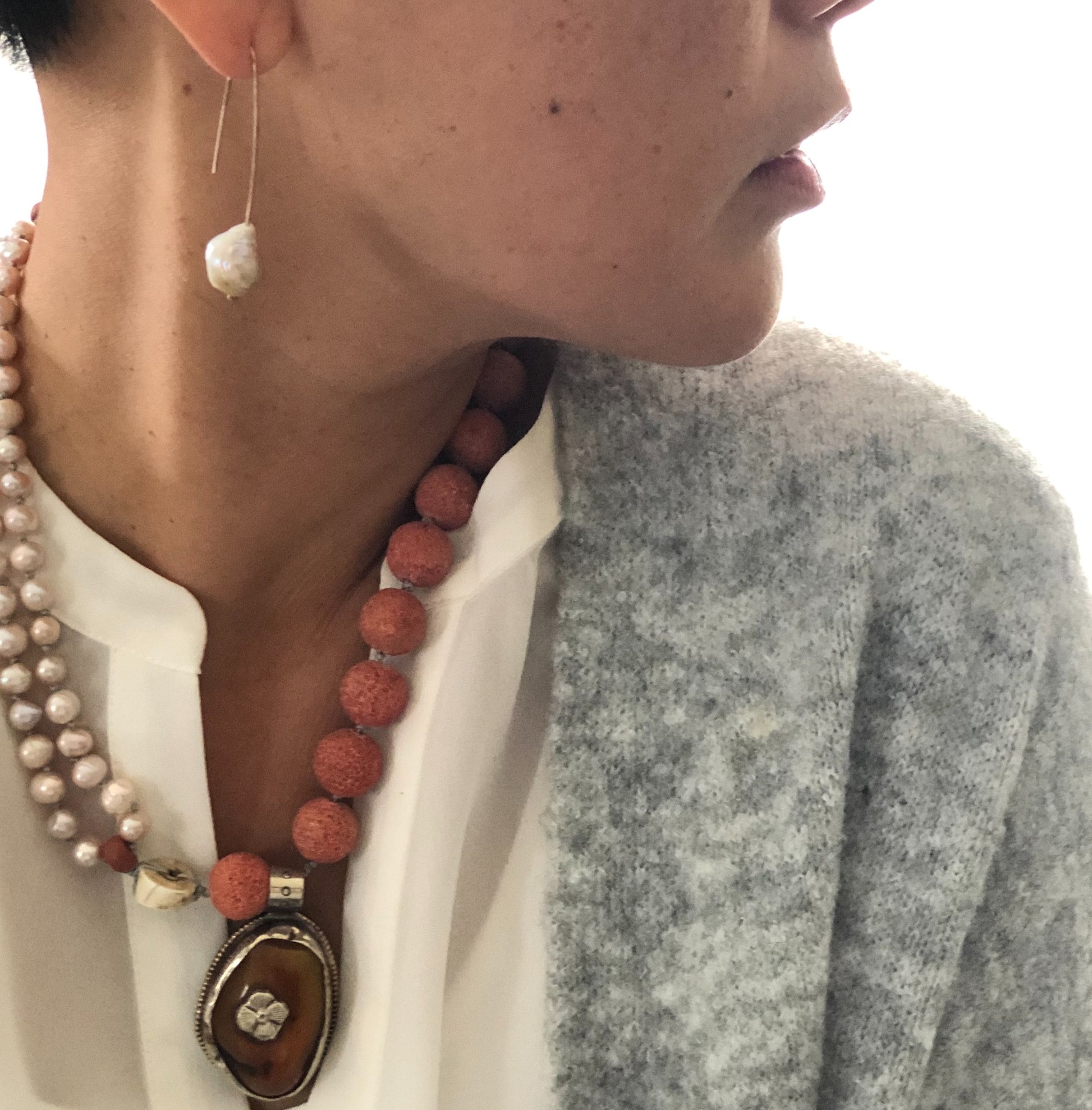 Materials : Sponge coral, fresh water pearl, old Tibetan pendent