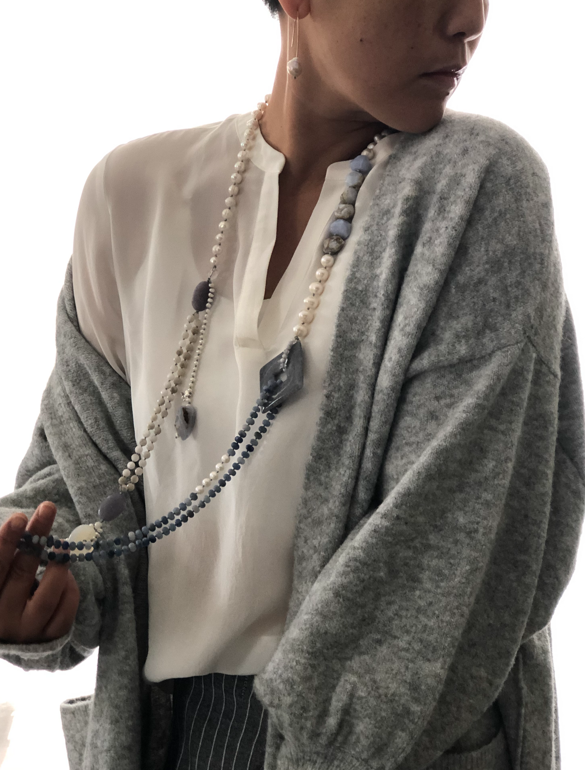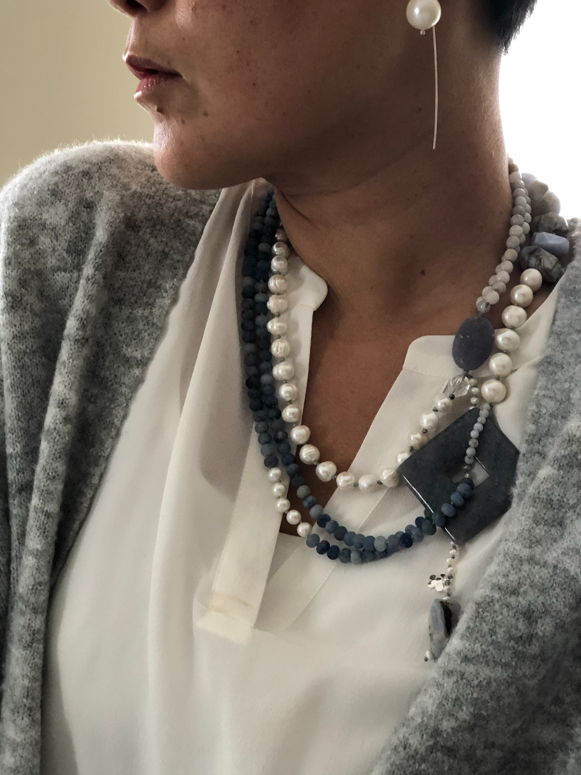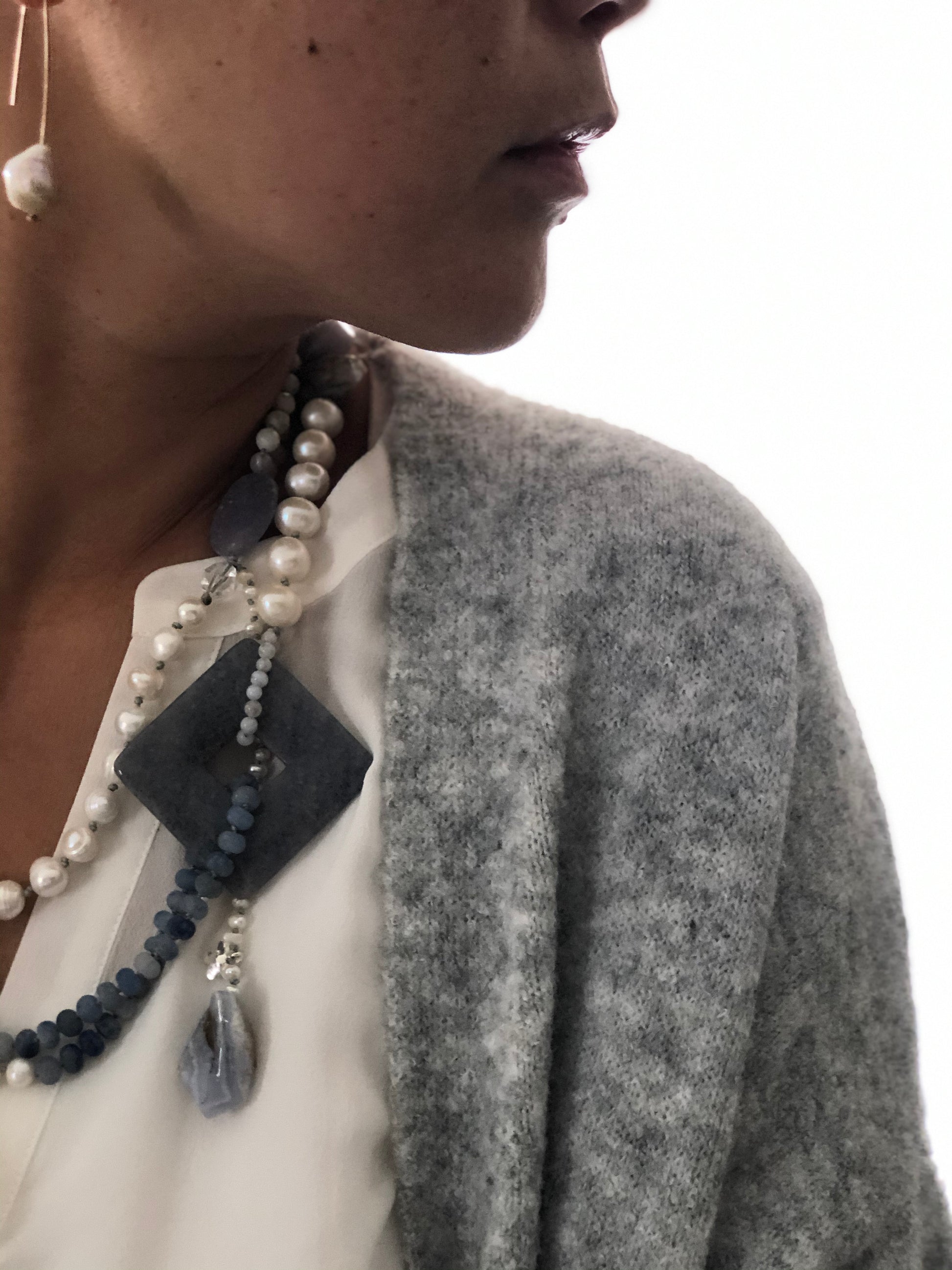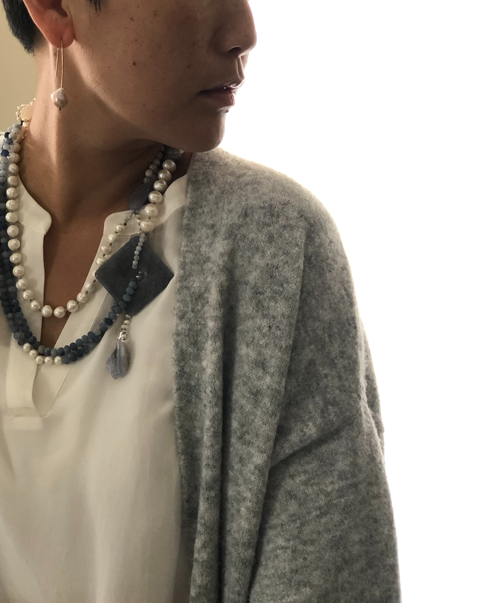 Materials : Fresh water pearl, blue agate, blue lace agate.