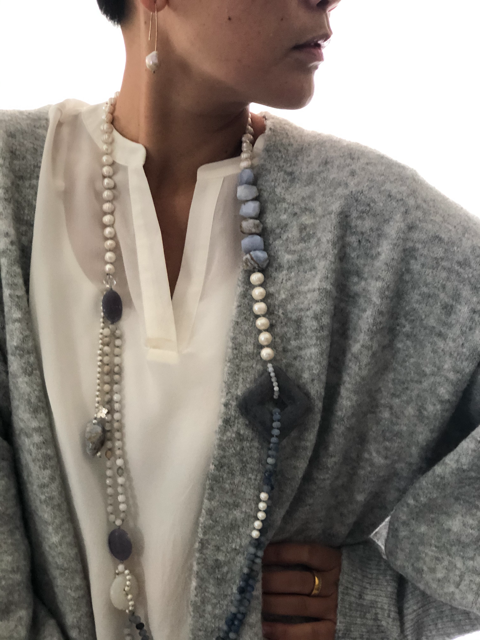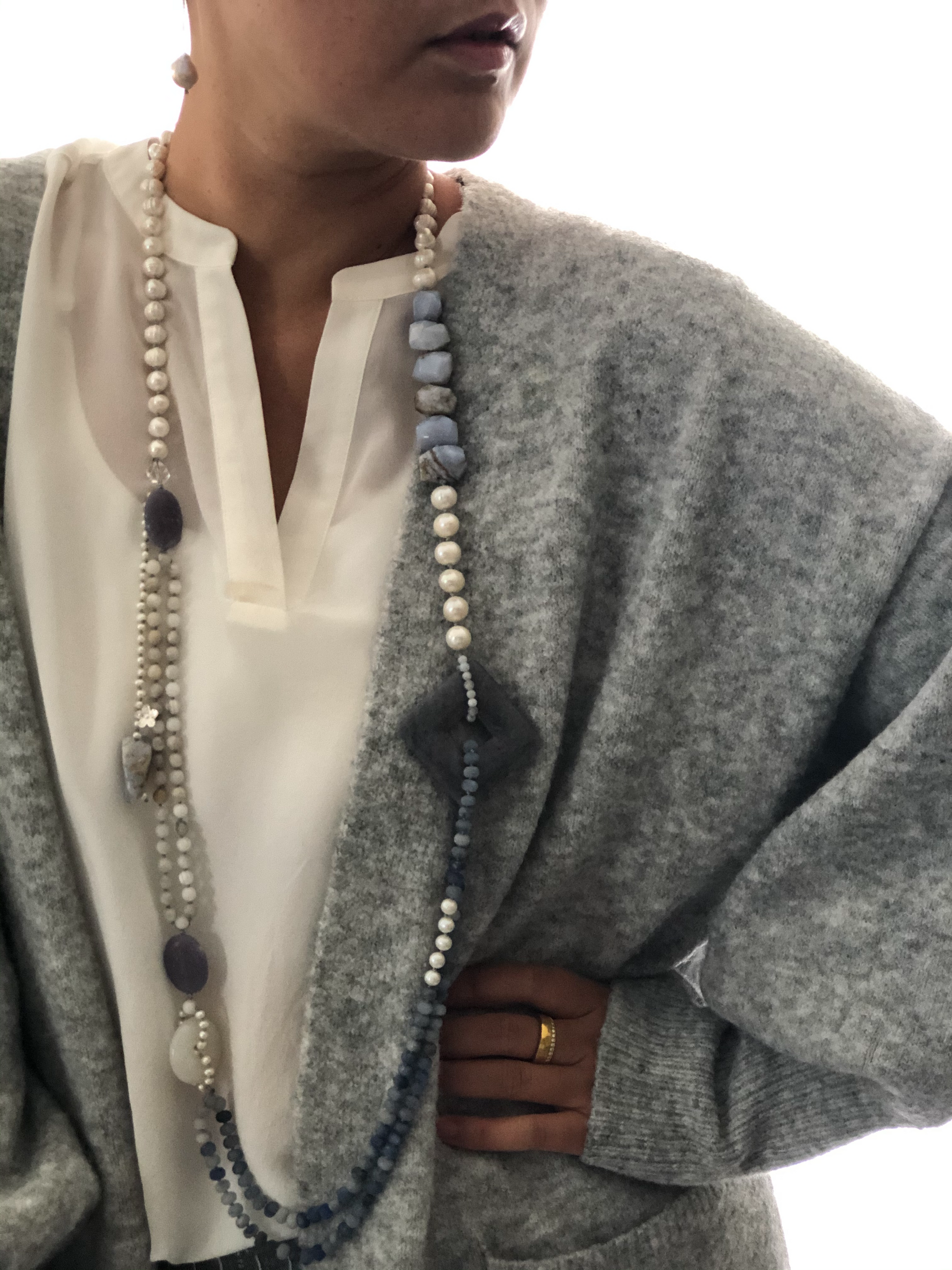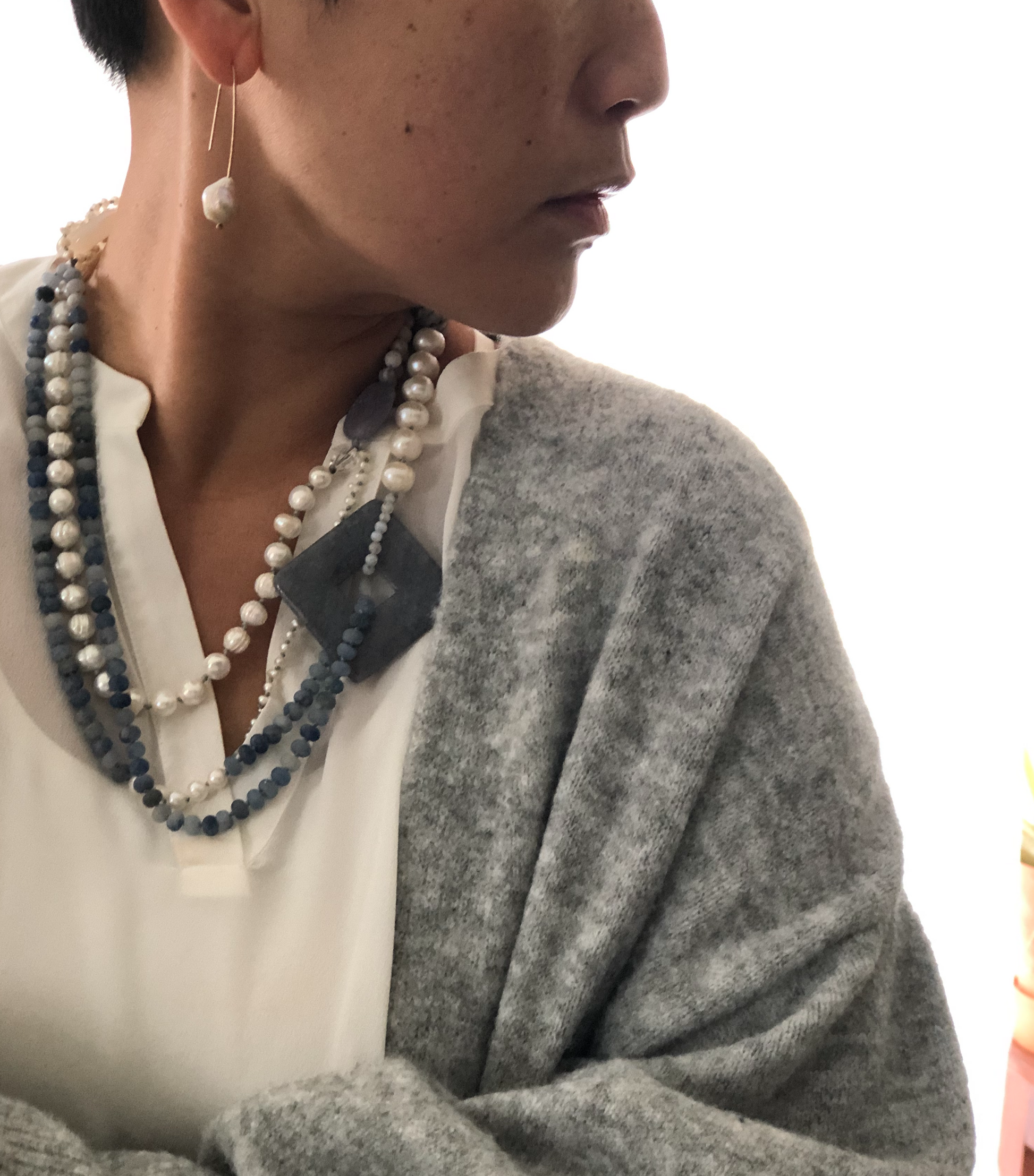 Materials : Fresh water pearl, blue agate, blue lace agate.