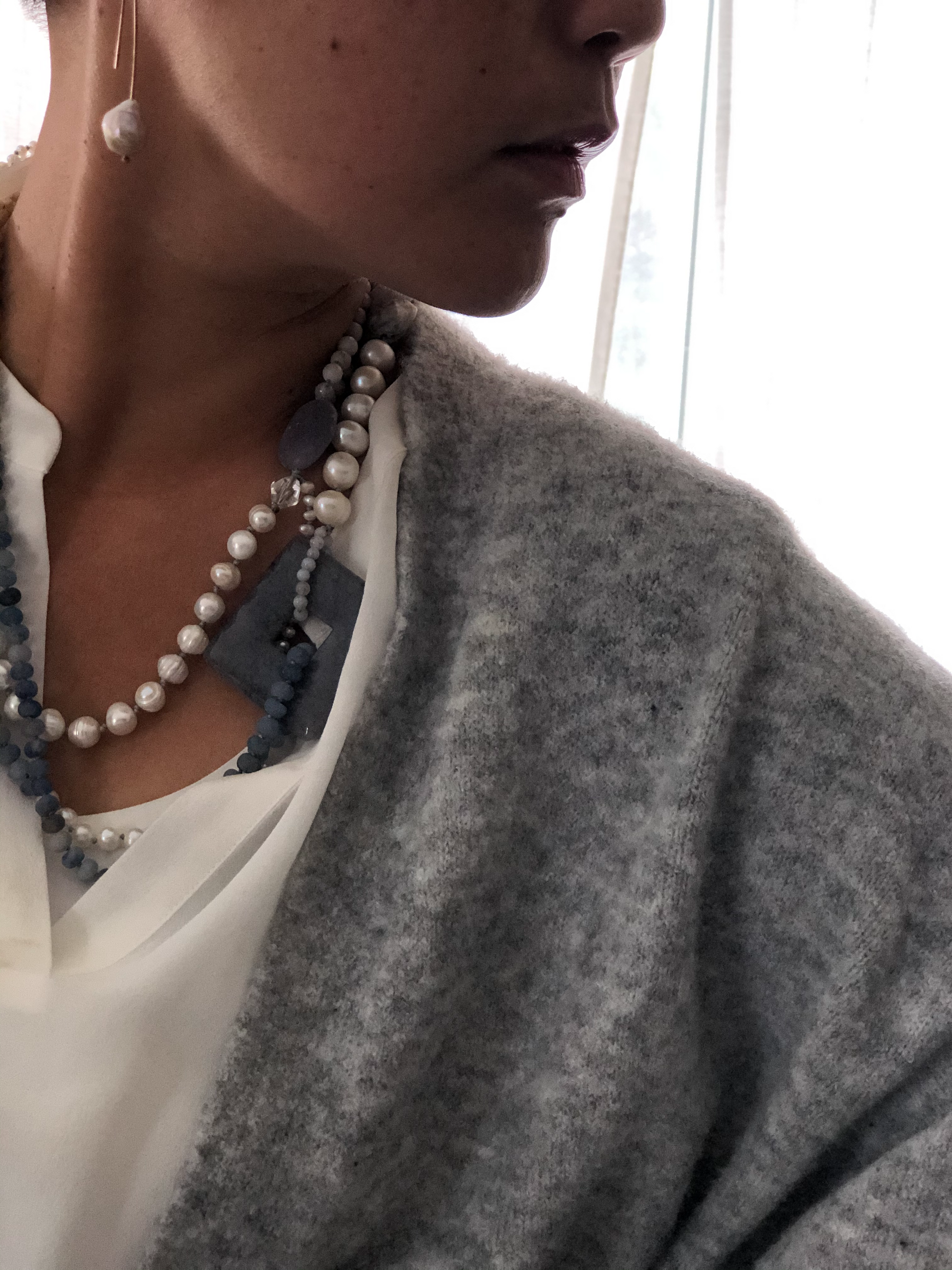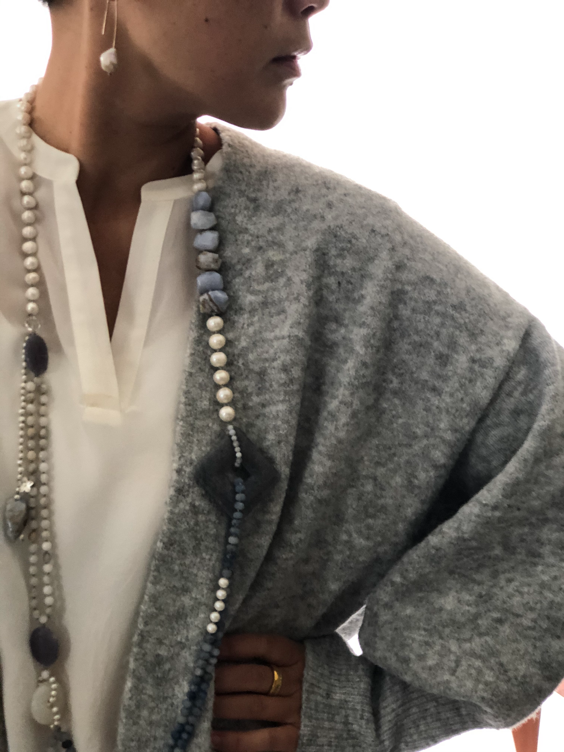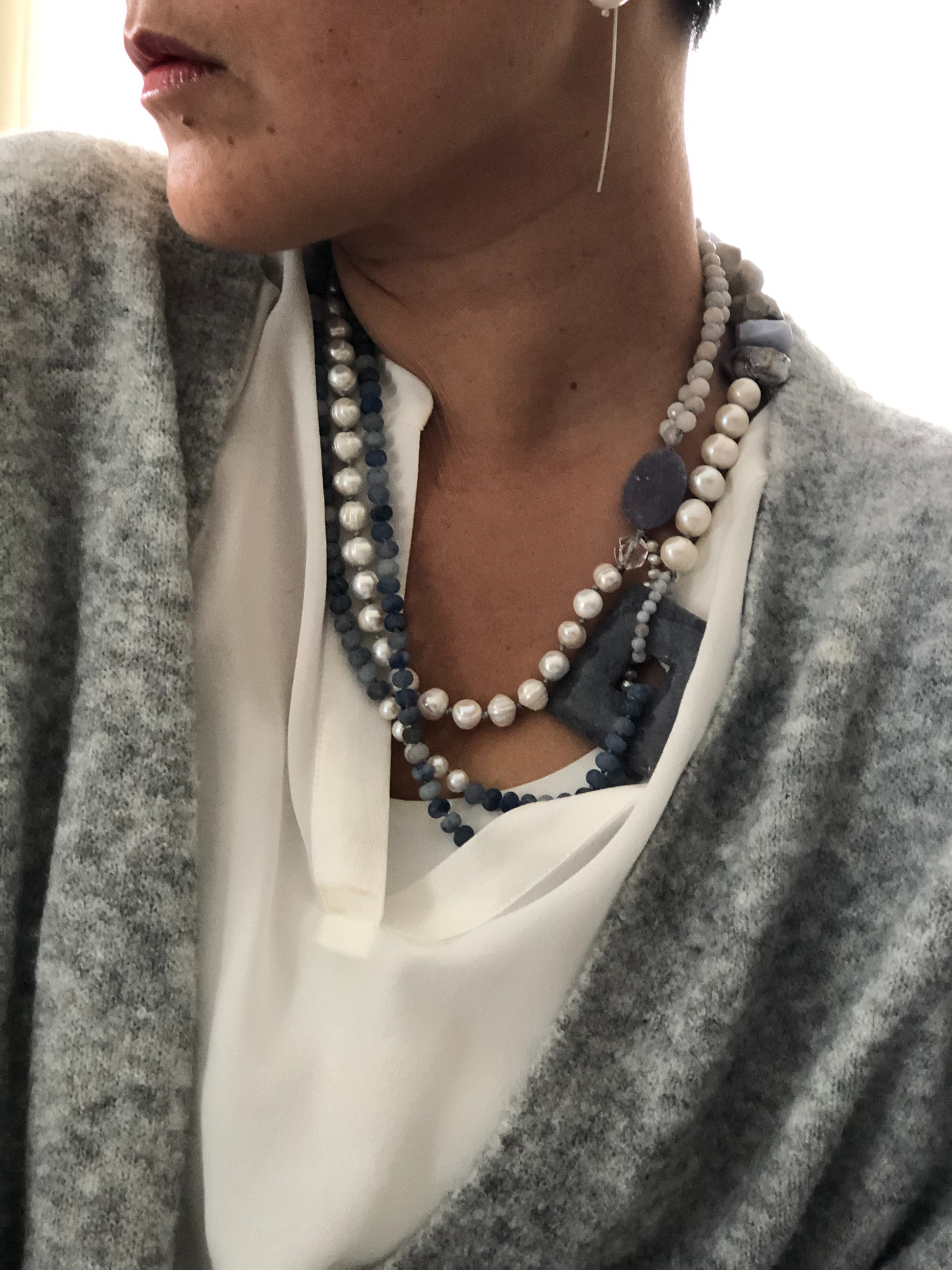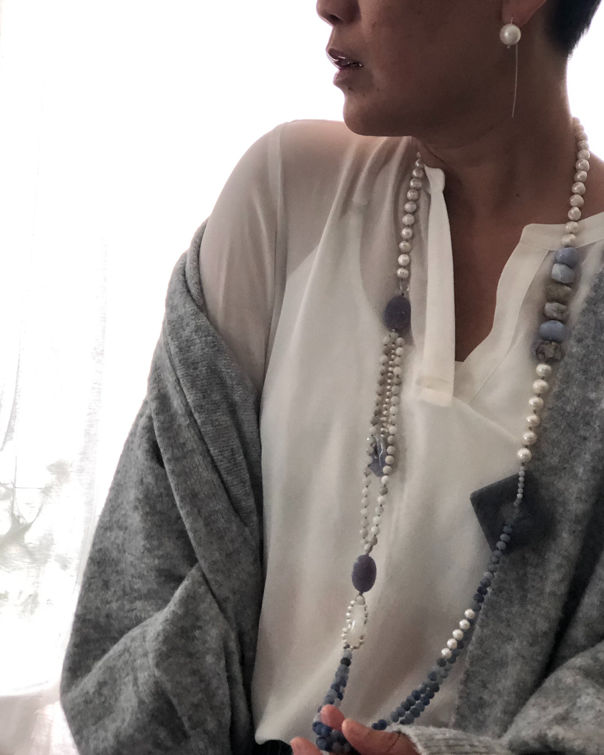 Materials : Fresh water pearl, blue agate, blue lace agate.