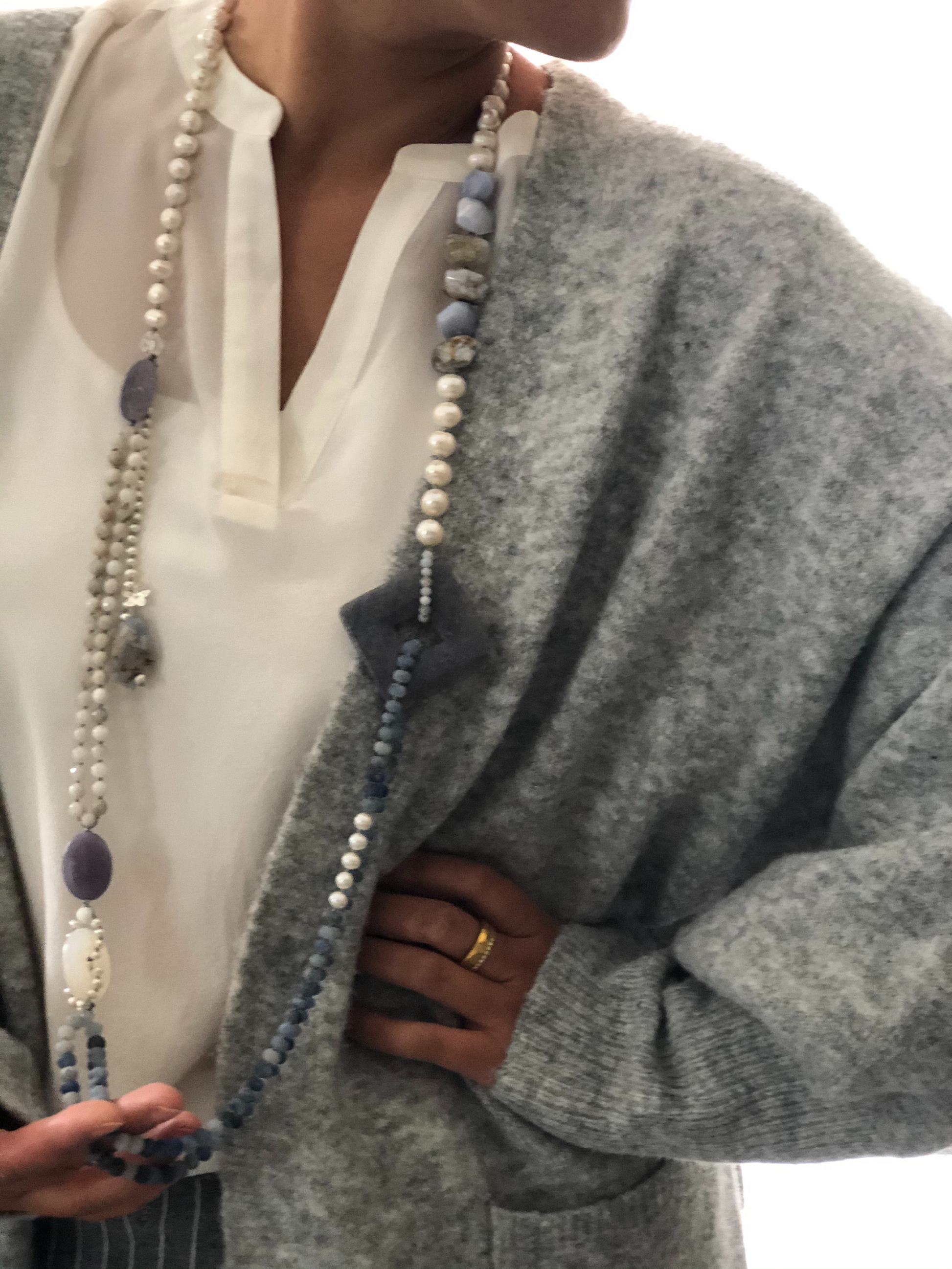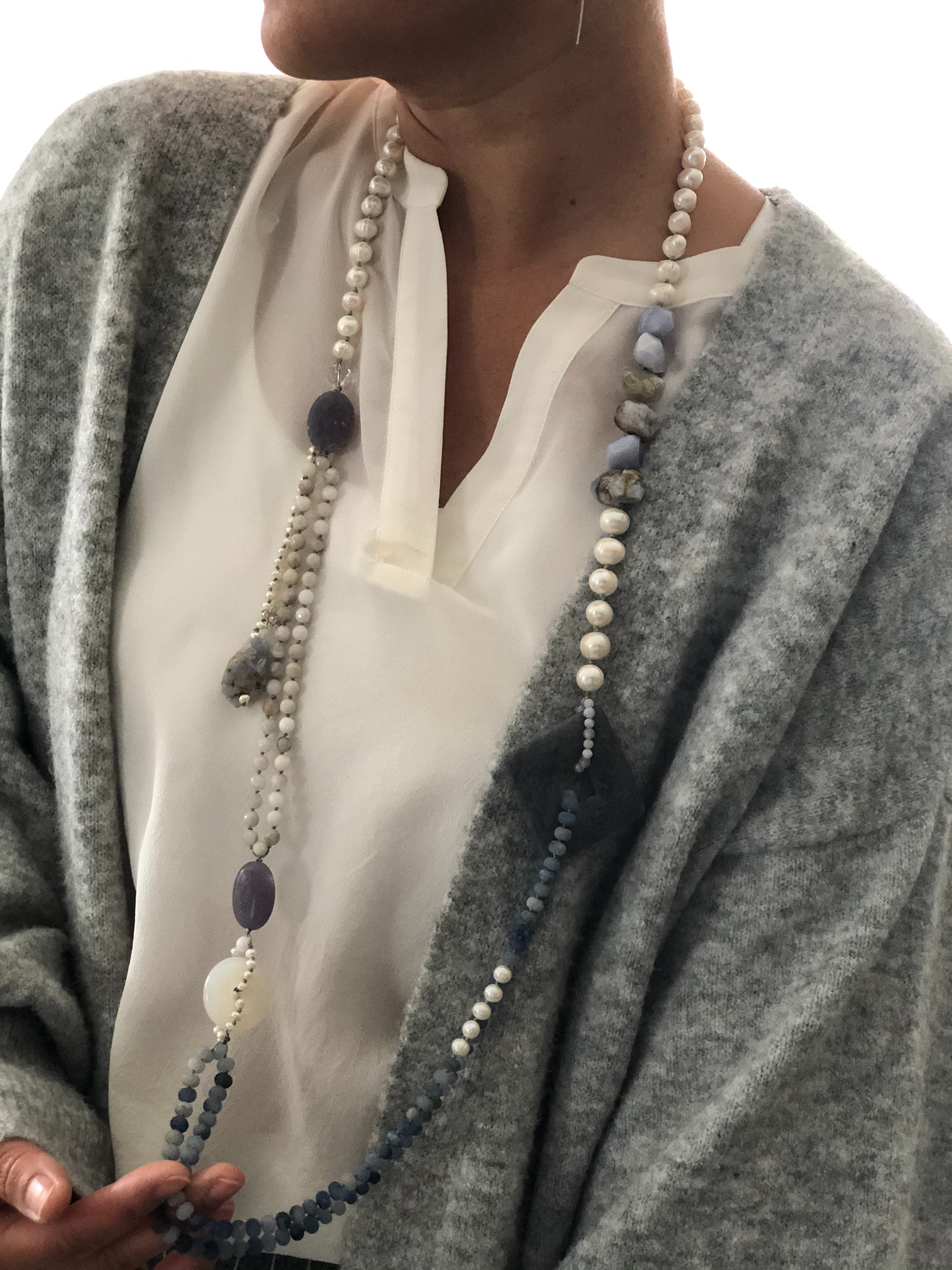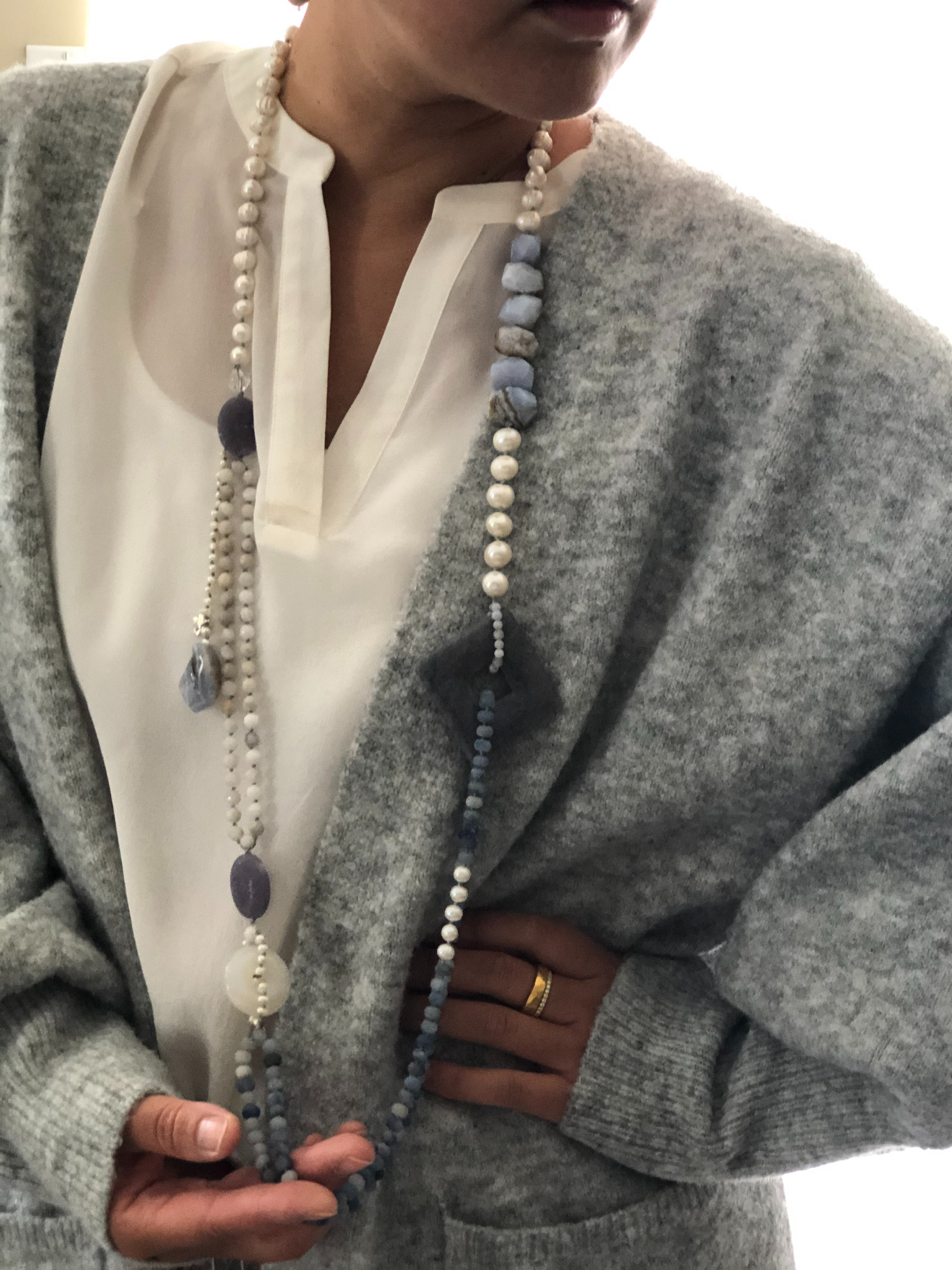 Hand knotted between each beads. Very long strand , can be wear long or doubled.
