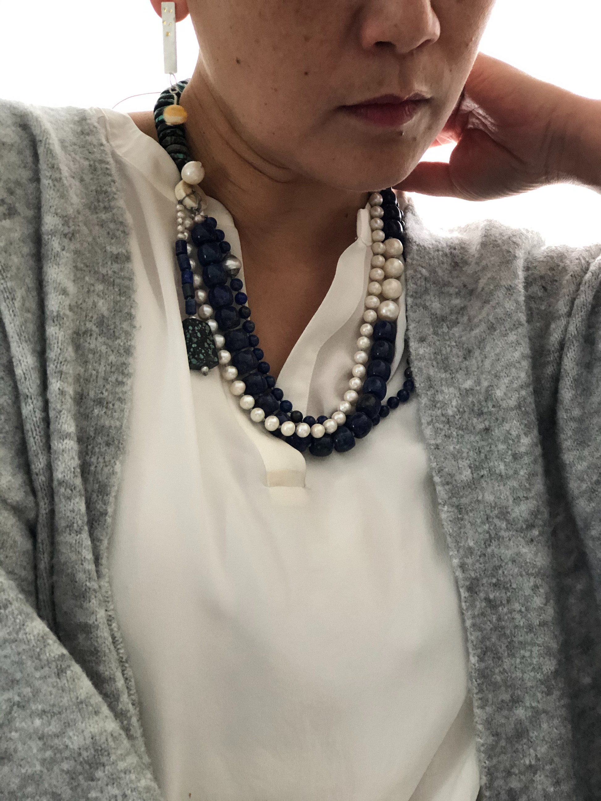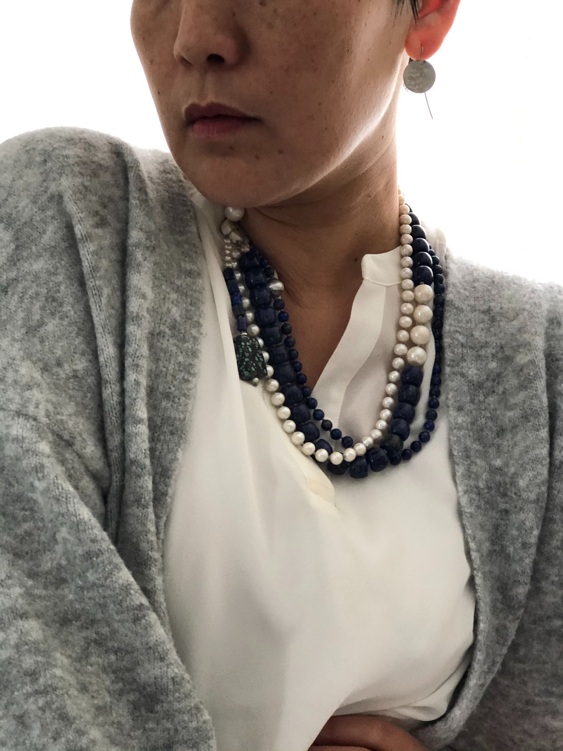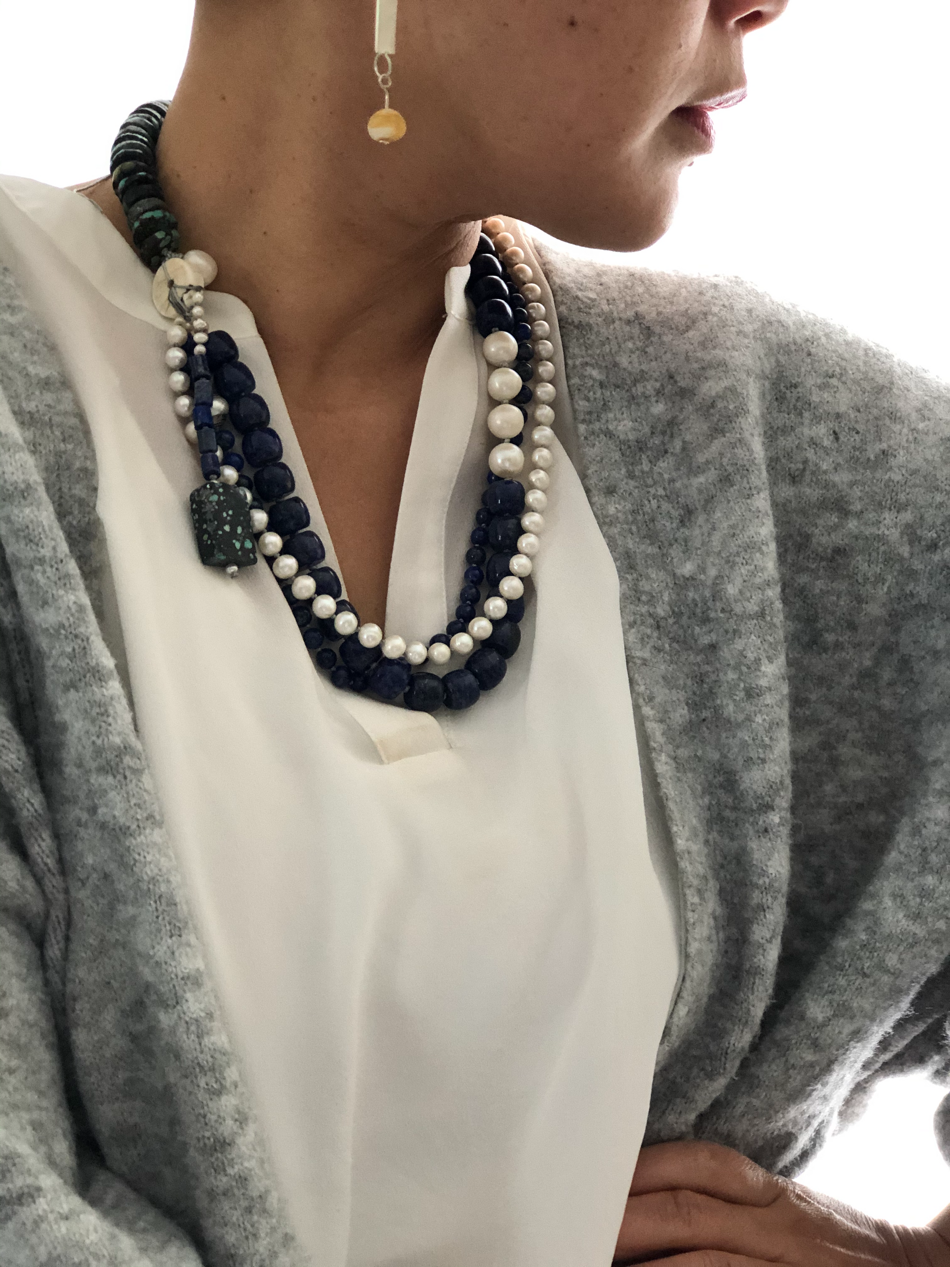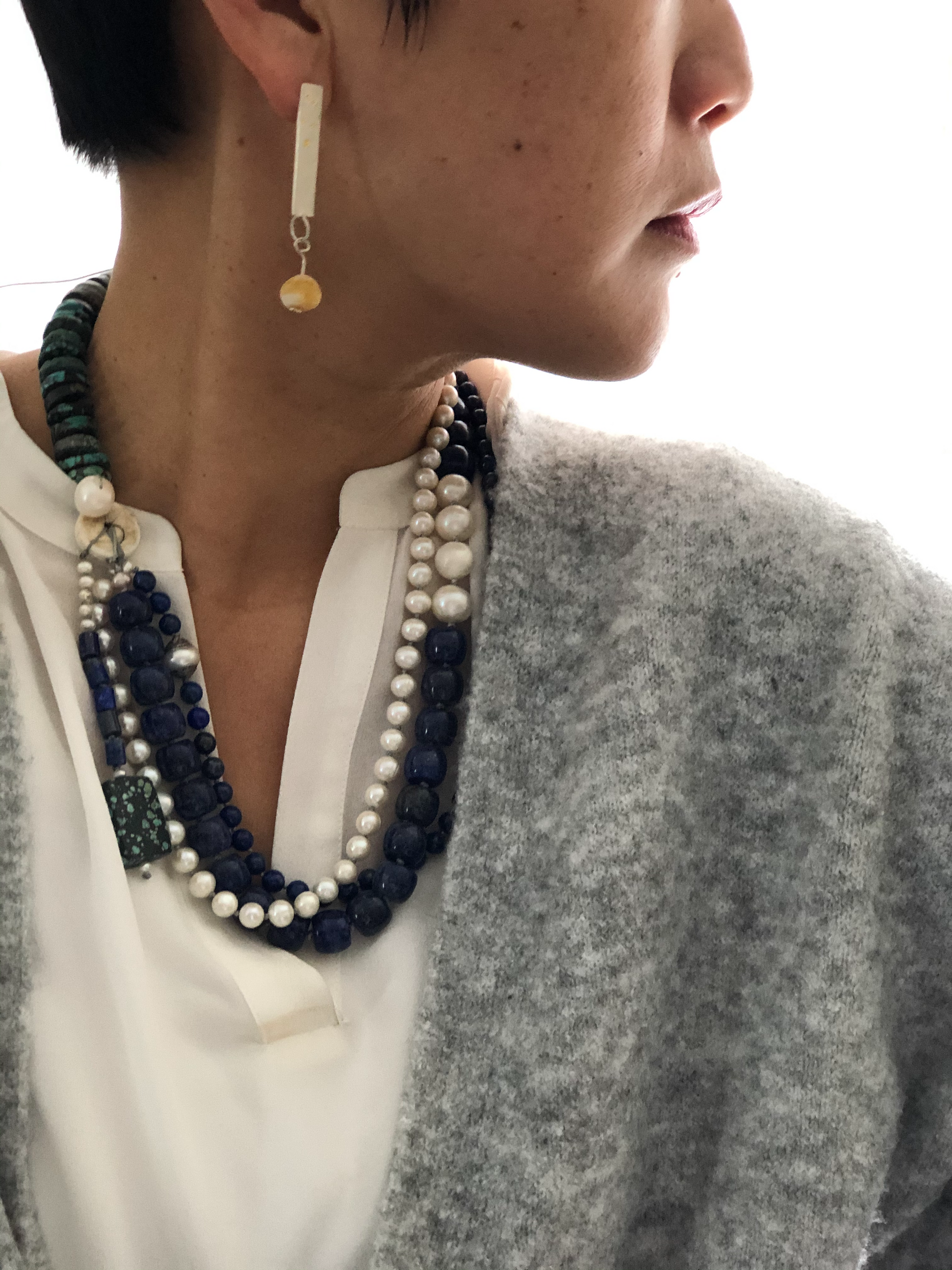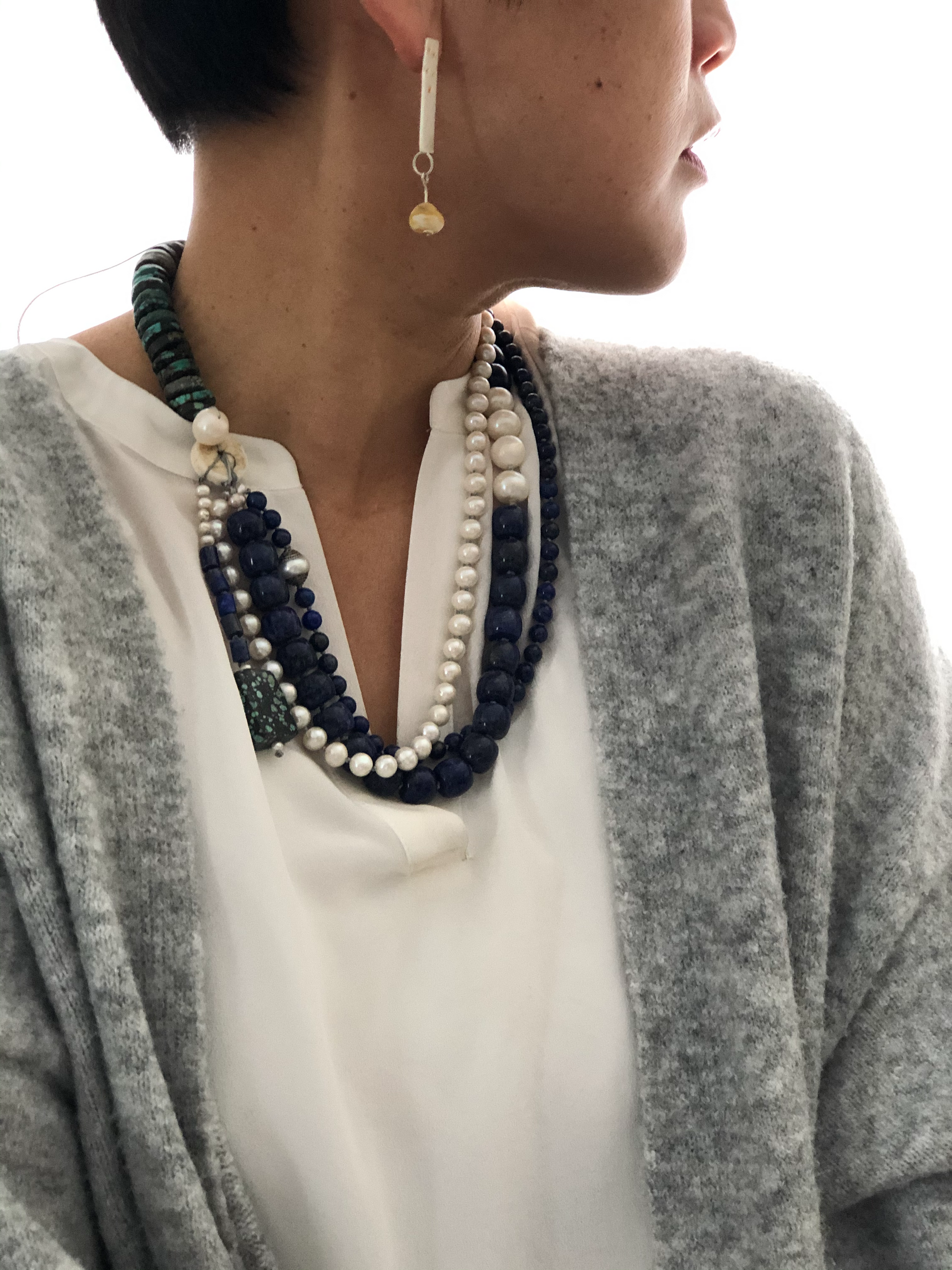 Materials : Lapis, fresh water pearl, tequoise